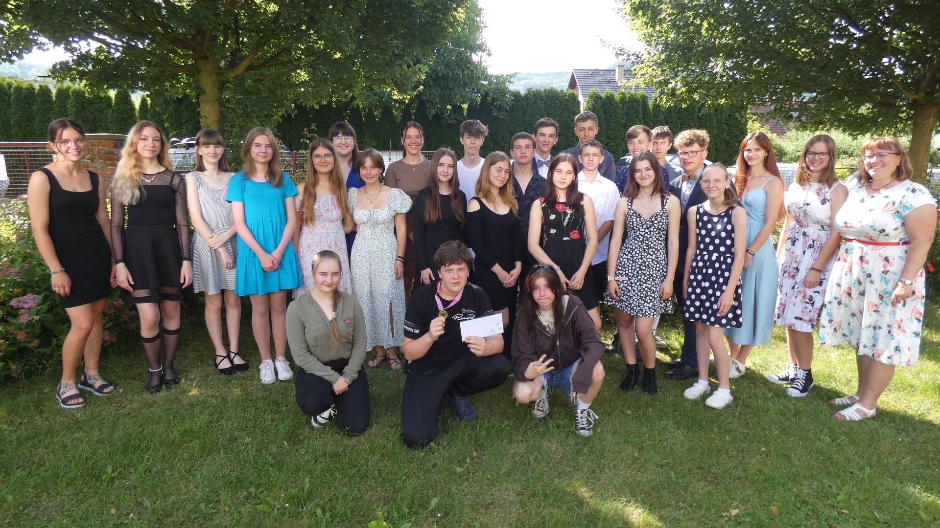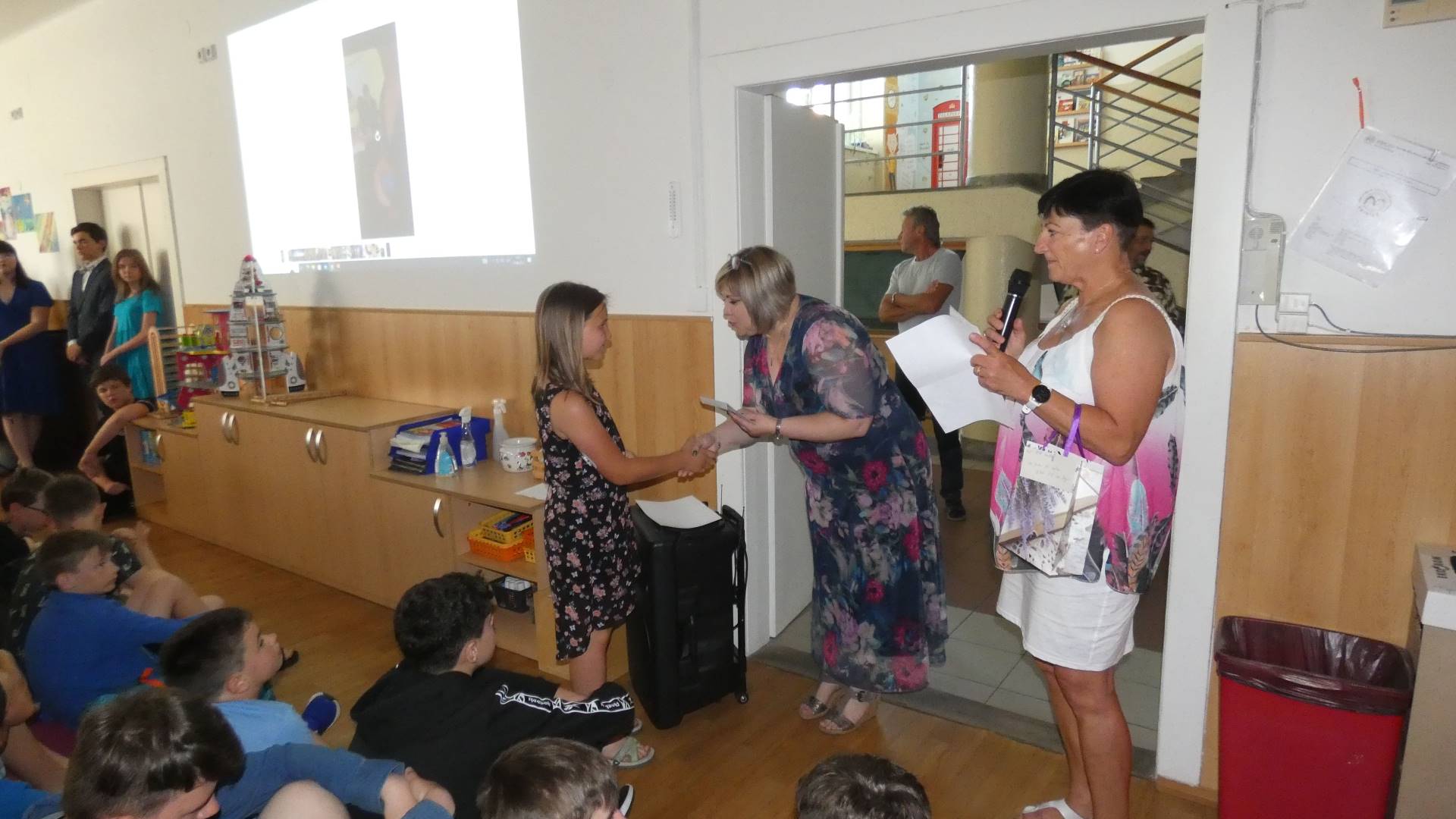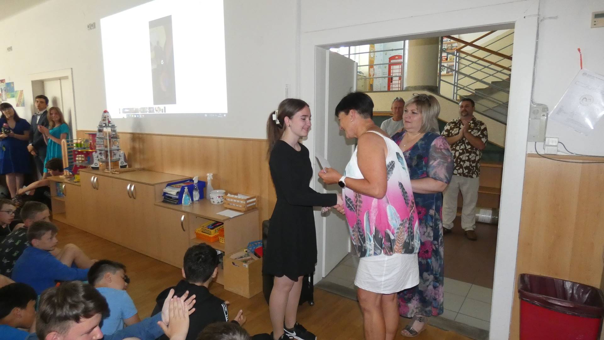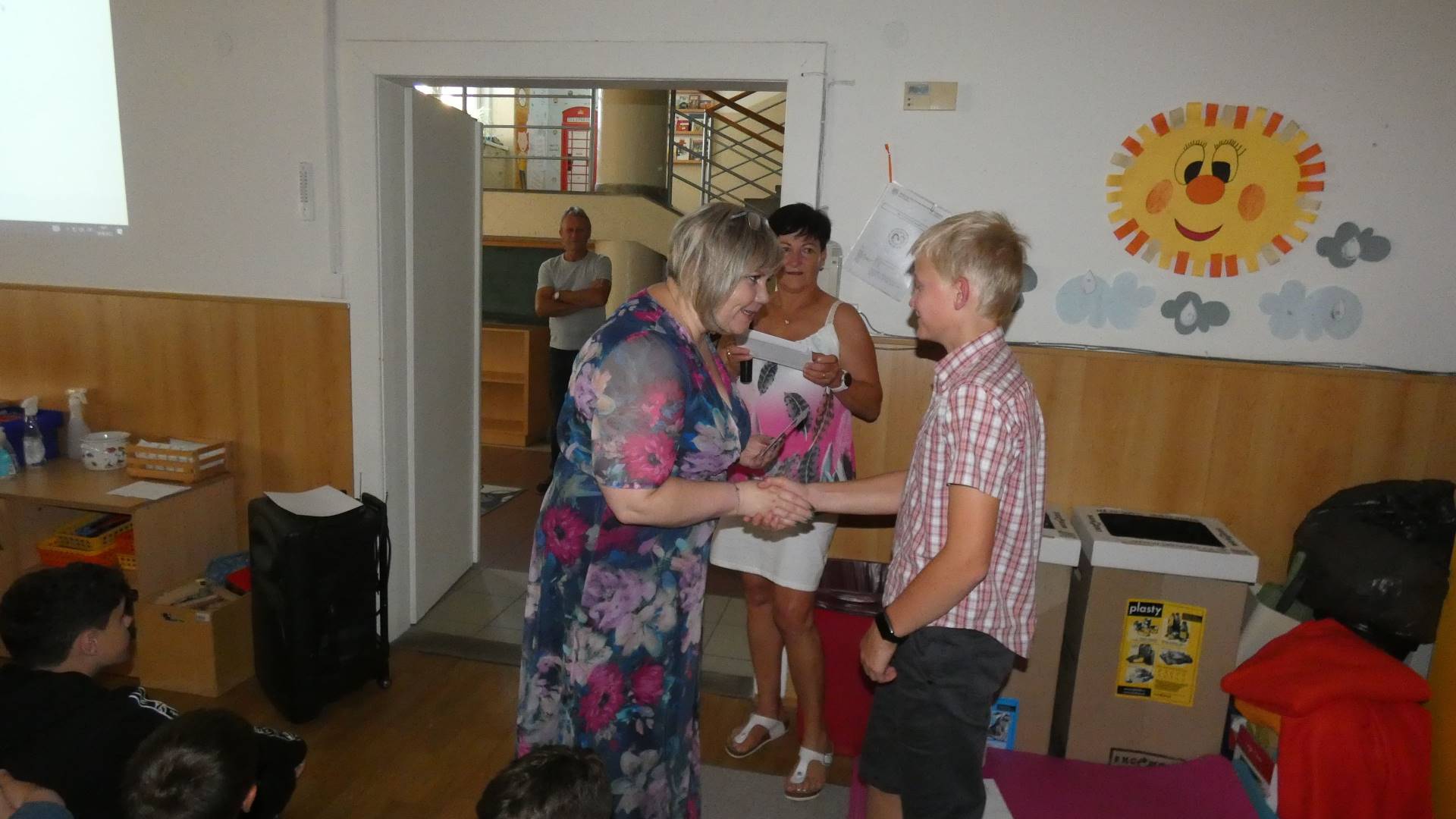 Dnes se s námi rozloučili žáci devátého ročníku. Připravili si poděkování vyučujícím i vzpomínkové video. Během společného slavnostního zakončení byli také oceněni žáci, kteří školu reprezentovali nebo výrazně pomáhali ve třídních kolektivech nebo na akcích školy. Knínickou jedničkou se pro letošní rok stala Anička Fialová, která neúnavně pracovala pro kolektiv, každému ochotně pomohla a vždy se na ni dalo spolehnout. Po ukončení slavnostního rozloučení jsme deváťákům zazvonili na jejich poslední společnou cestu z naší školy. Přejeme jim hodně úspěchů na středních školách a těšíme se, že se za námi někdy zase přijdou podívat.