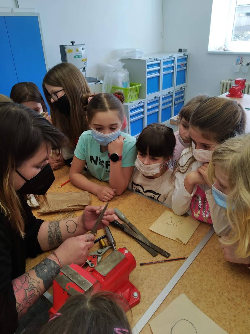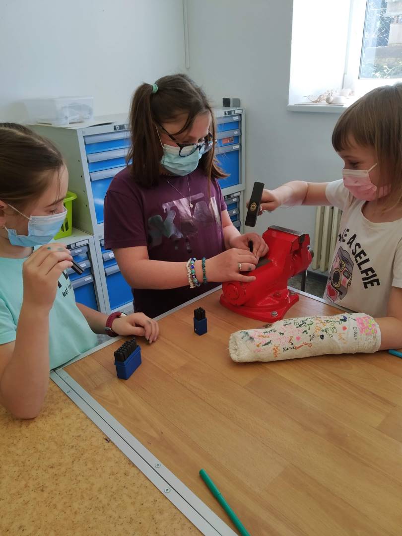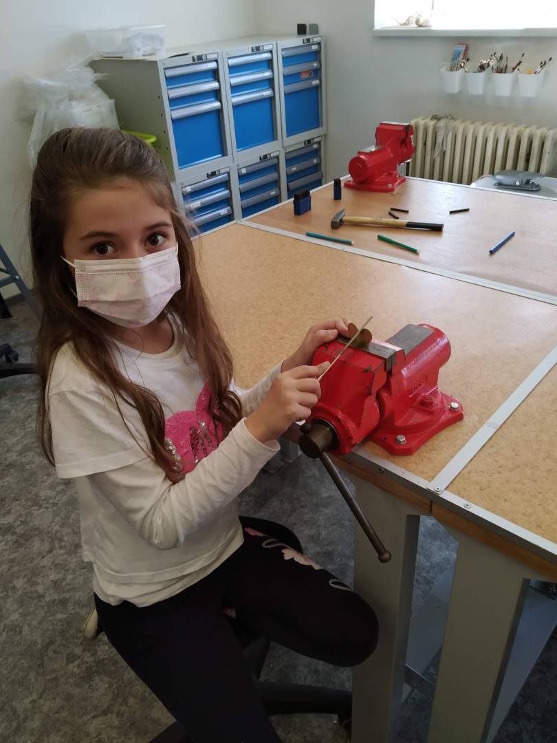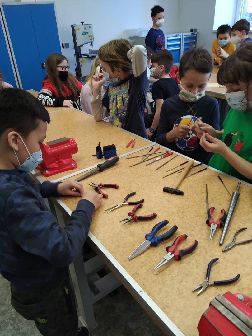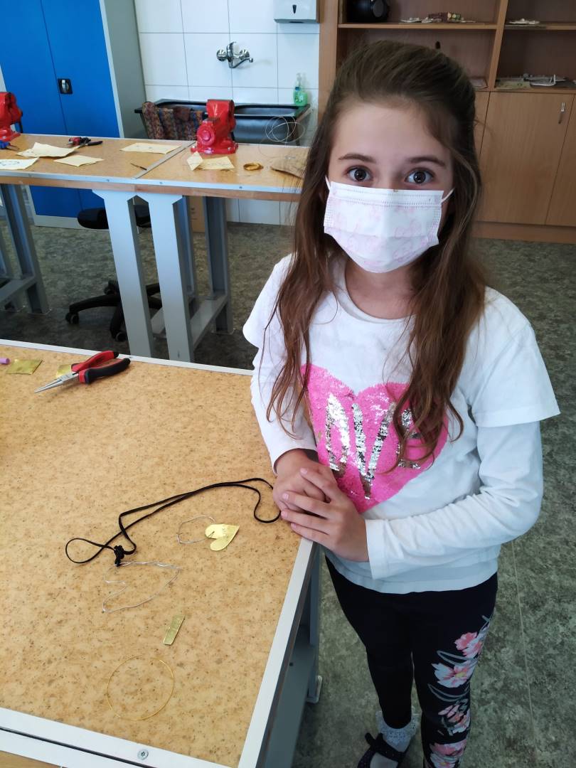 V úvodu byli účastníci seznámeni s teoretickým základem a bezpečností práce. Veškerá teorie byla doplněna o praktickou ukázku. Poté si děti vytvořily návrh na šperk, který si pak samy, nebo s dopomocí vytvořily. Dětem se výroba šperků líbila, odcházely spokojeni a s úsměvem domů.