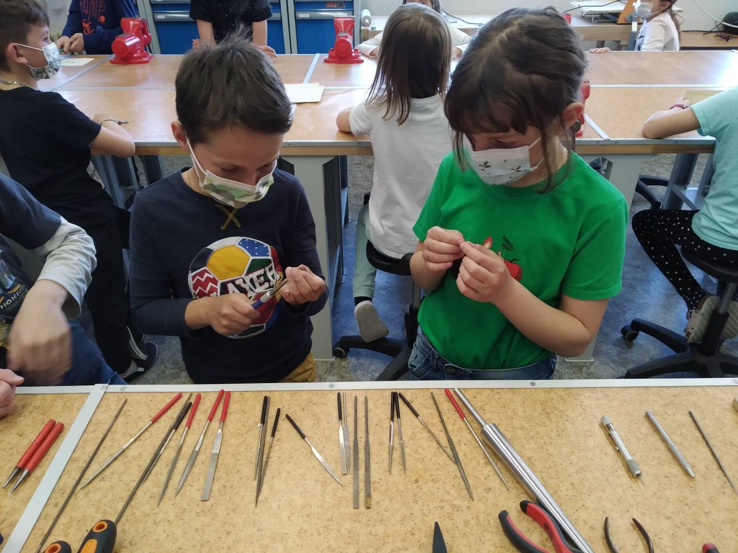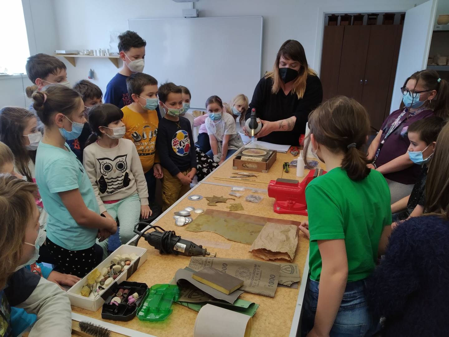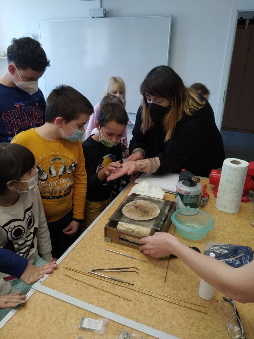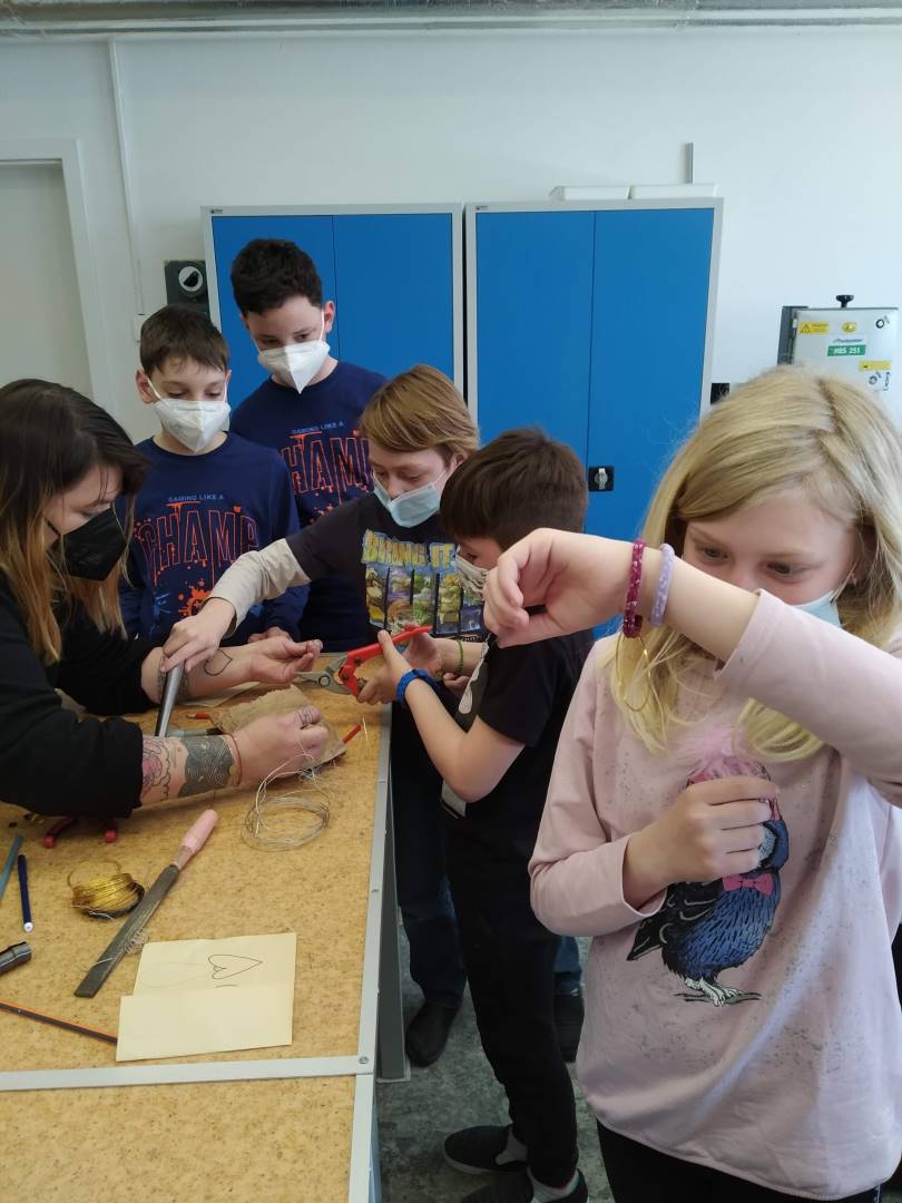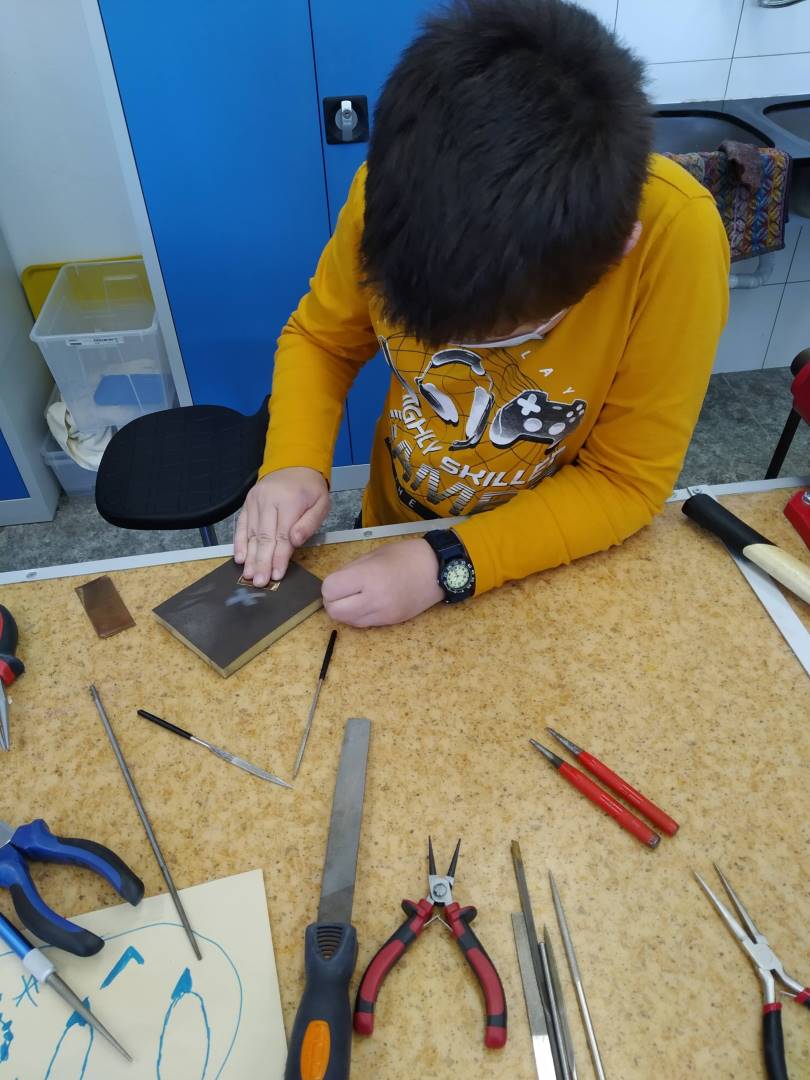 V úvodu byli účastníci seznámeni s teoretickým základem a bezpečností práce. Veškerá teorie byla doplněna o praktickou ukázku. Poté si děti vytvořily návrh na šperk, který si pak samy, nebo s dopomocí vytvořily. Dětem se výroba šperků líbila, odcházely spokojeni a s úsměvem domů.