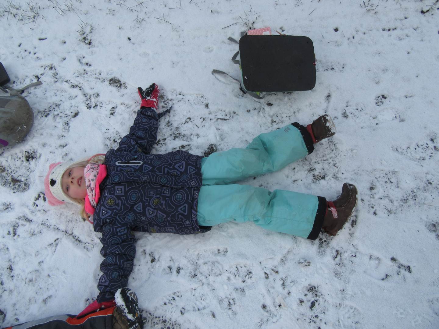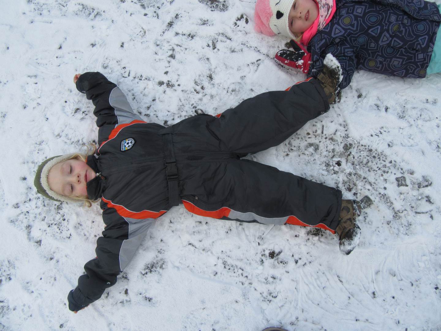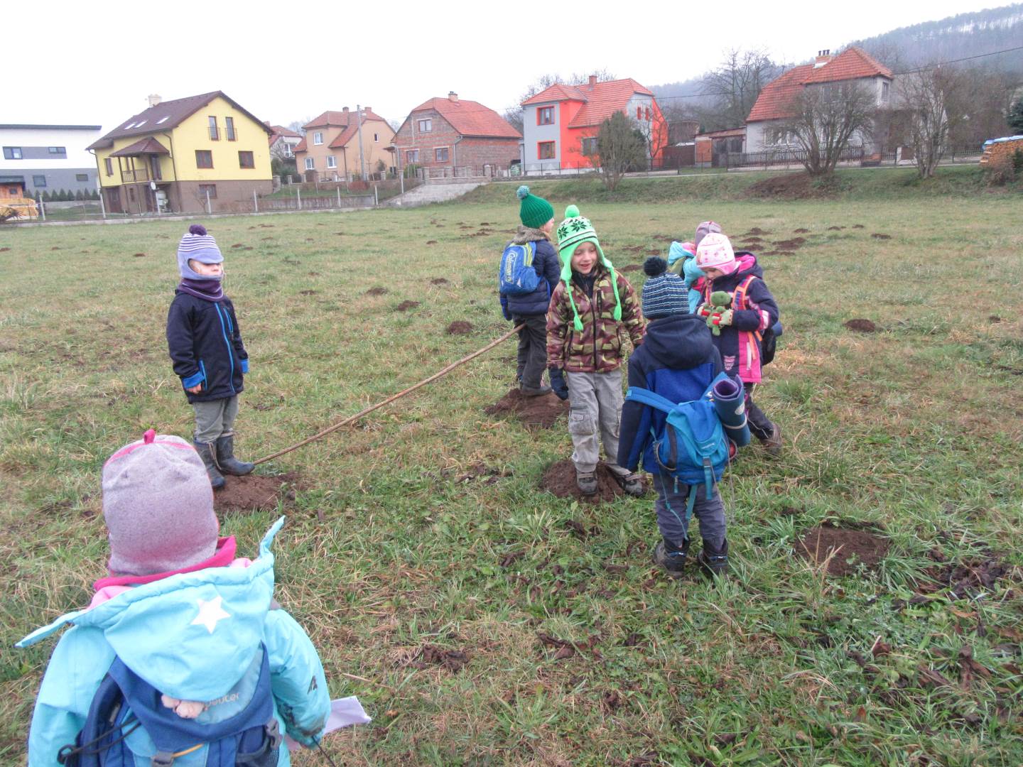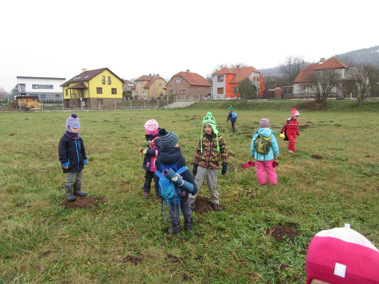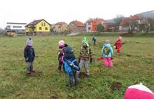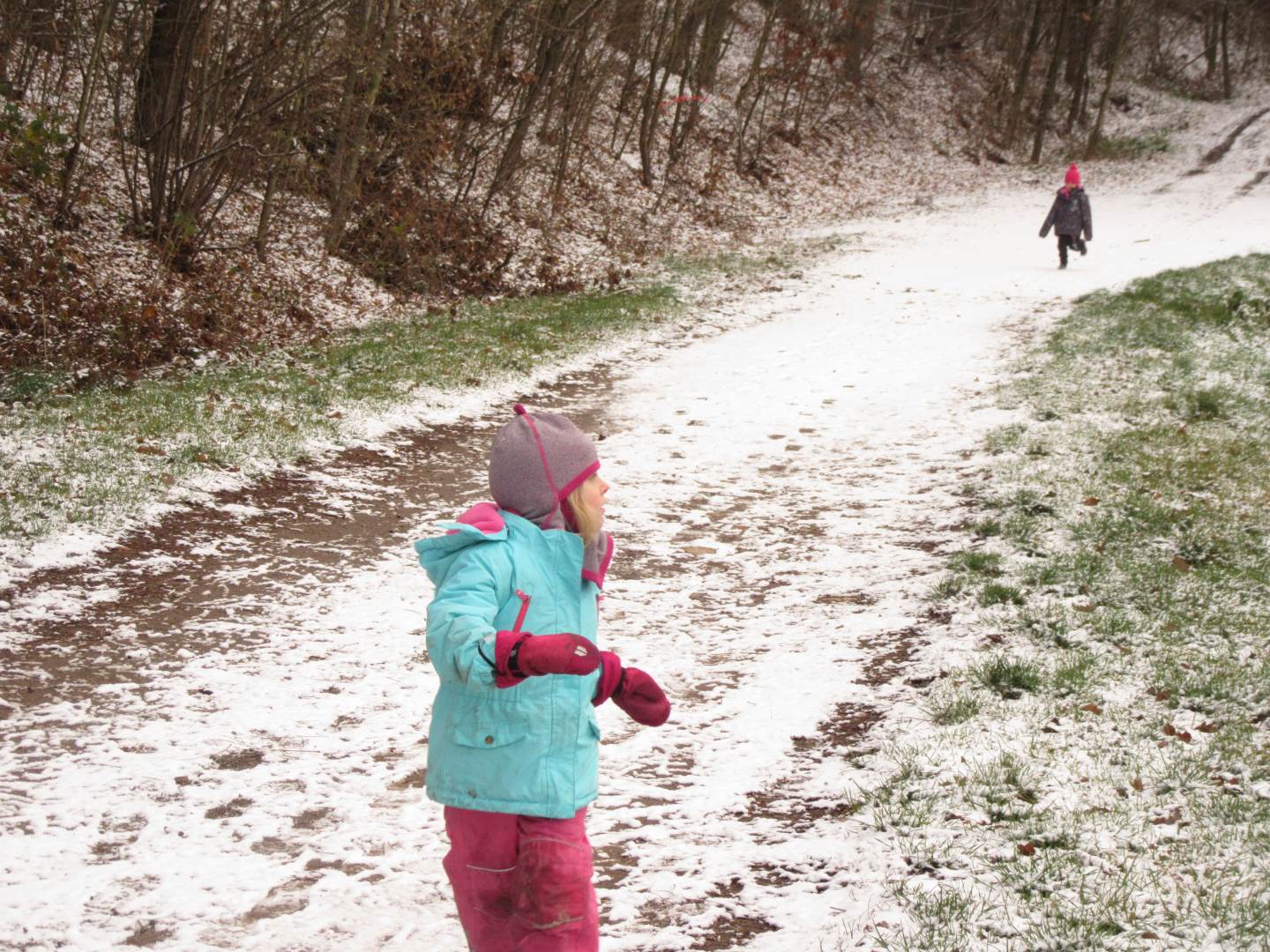 V úterý nám napadl první sních. Vyrazili jsme k maringotce postavit sněhuláky, zahrát si koulovačku, udělat ve sněhu andílka a nazdobit stromeček. Seznámili jsme se s písničkou „Prosinec“ od Uhlíře a Svěráka. Cestou jsme objevili ve sněhu stopy různých zvířátek. Zjistili jsme, že rybník u lesní školky je poloprázdný a zamrzlý. I my jsme byli zmrzlí a tak jsme oběhli celý rybník dokolečka.