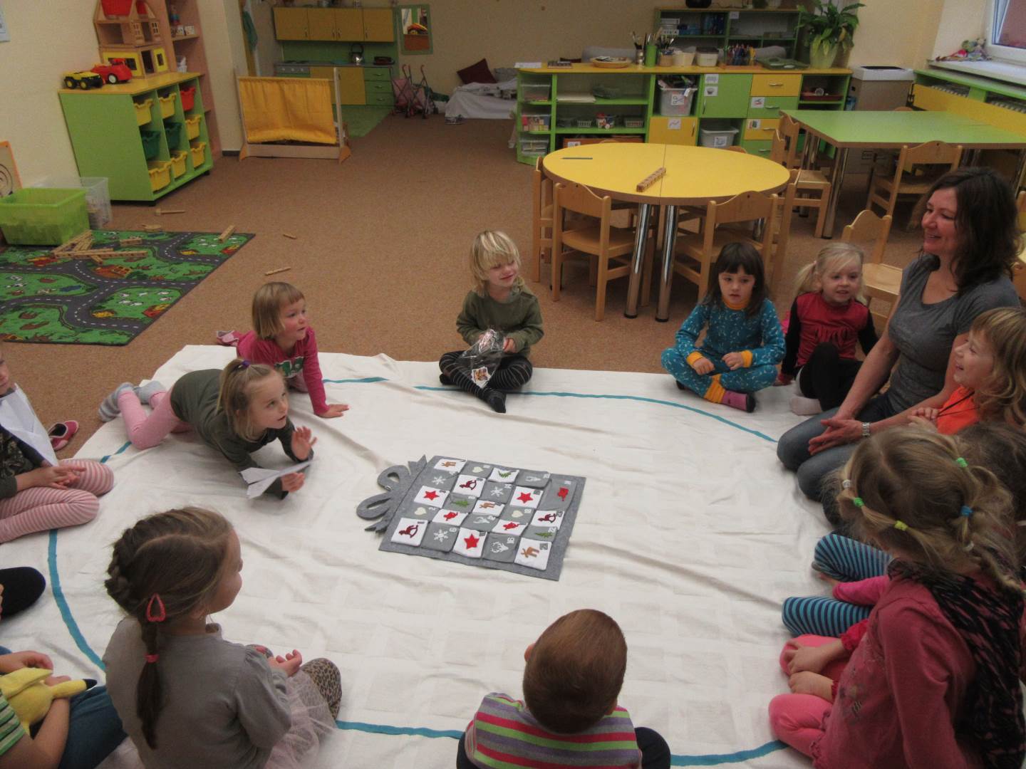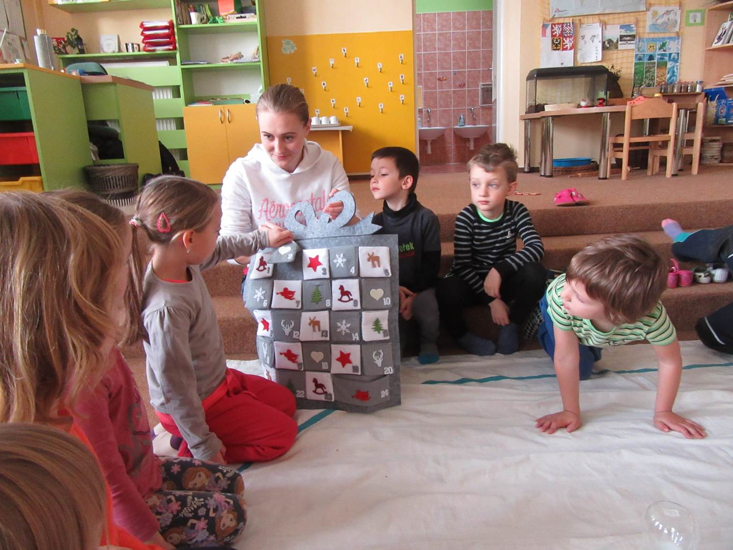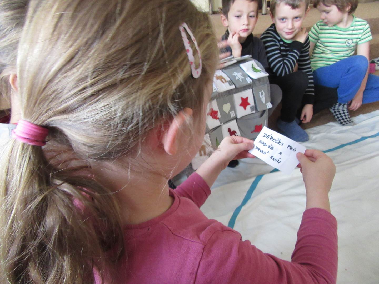 První prosincový týden jsme zahájili na elipse. Povídali jsme si o adventním čase, představili jsme si adventní kalendář, kde každý den najdeme nějaké psaníčko. Poté jsme vyrazili na farní zahradu zahrát si fotbal a zaskotačit si na průlezkách.