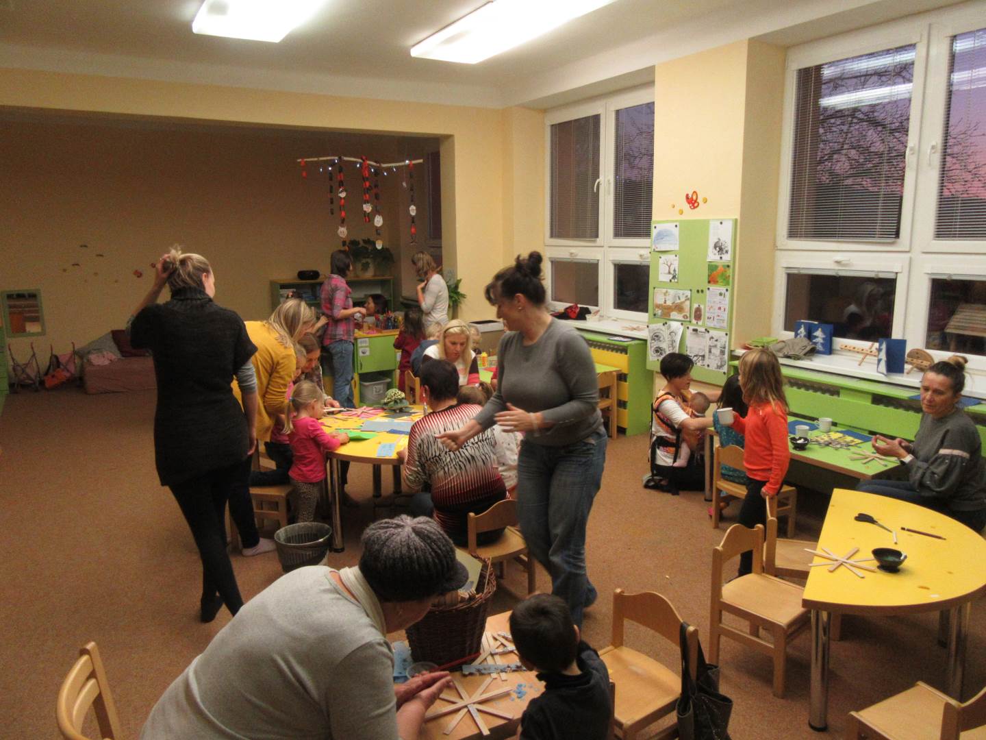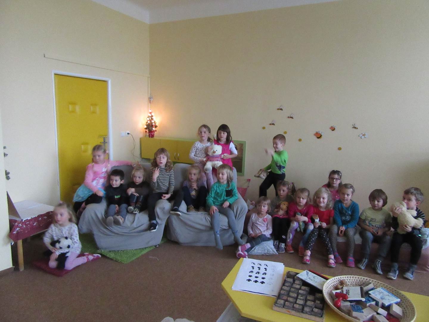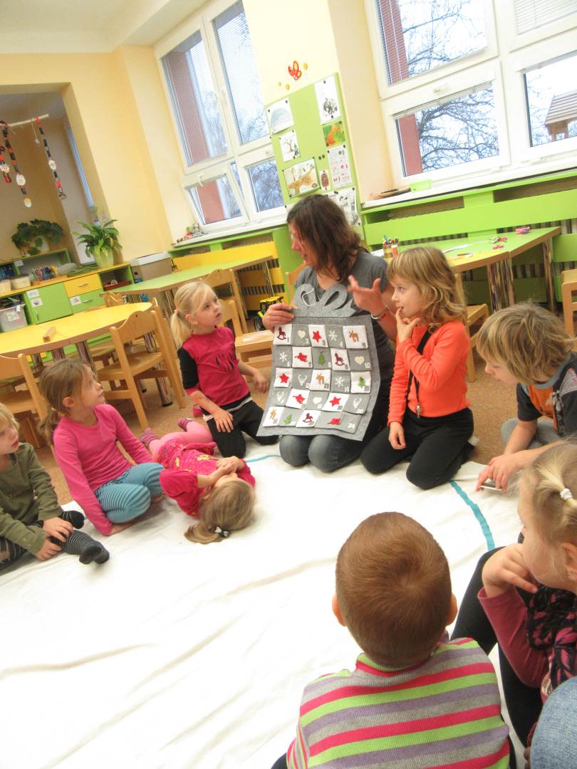 Od půl čtvrté se v naší školce konal Jarmark a Vánoční dílničky. Děti s rodiči si vyrobili vločku (hvězdu) a vánoční přáníčko a mohli si zakoupit nějakou vánoční dekoraci. V pět hodin jsme se všichni sešli u stromečku, zazpívali koledy, řekli básničku o stromečku a stromeček se rozsvítil. Poté se všichni rozešli domů.