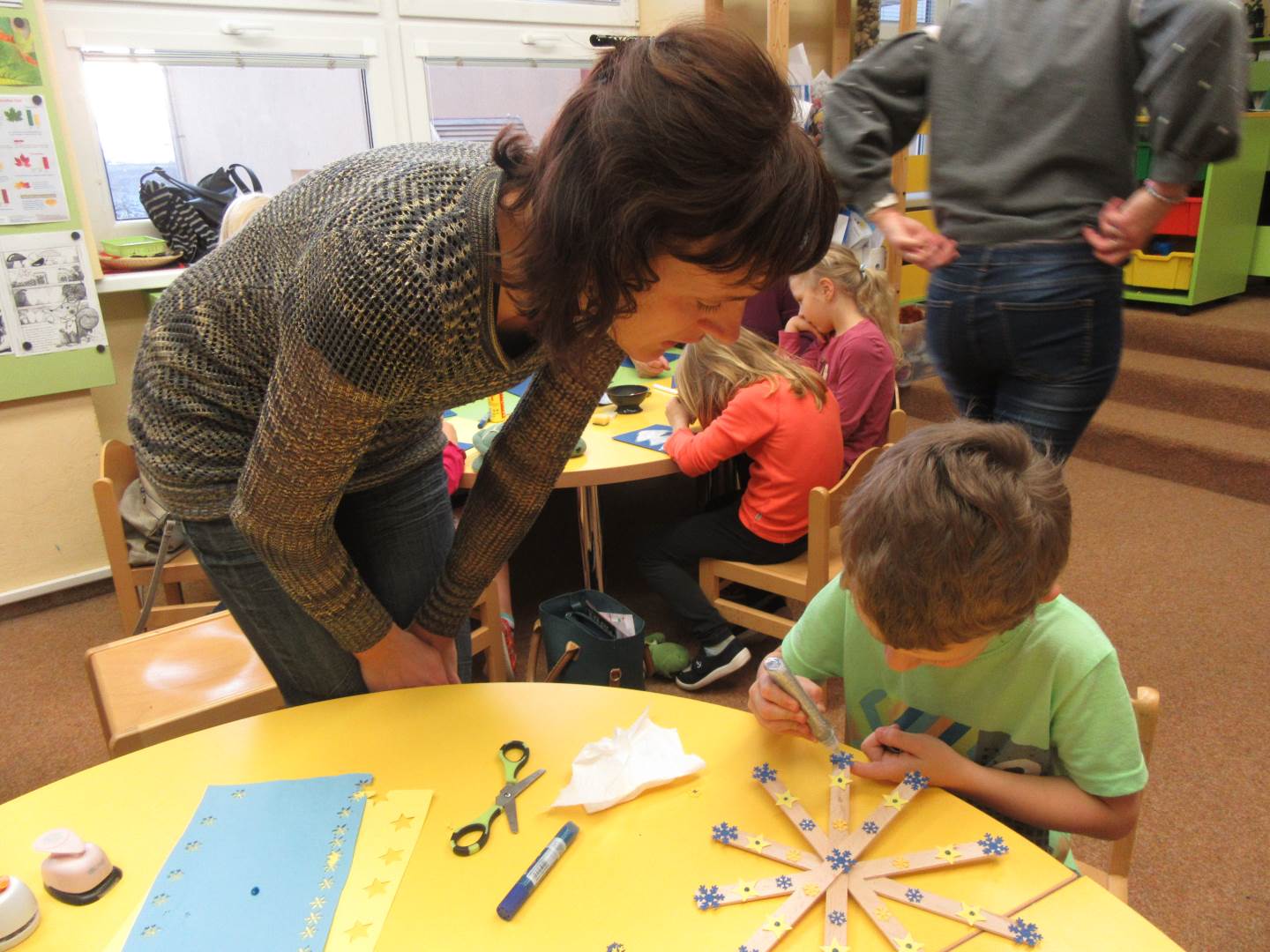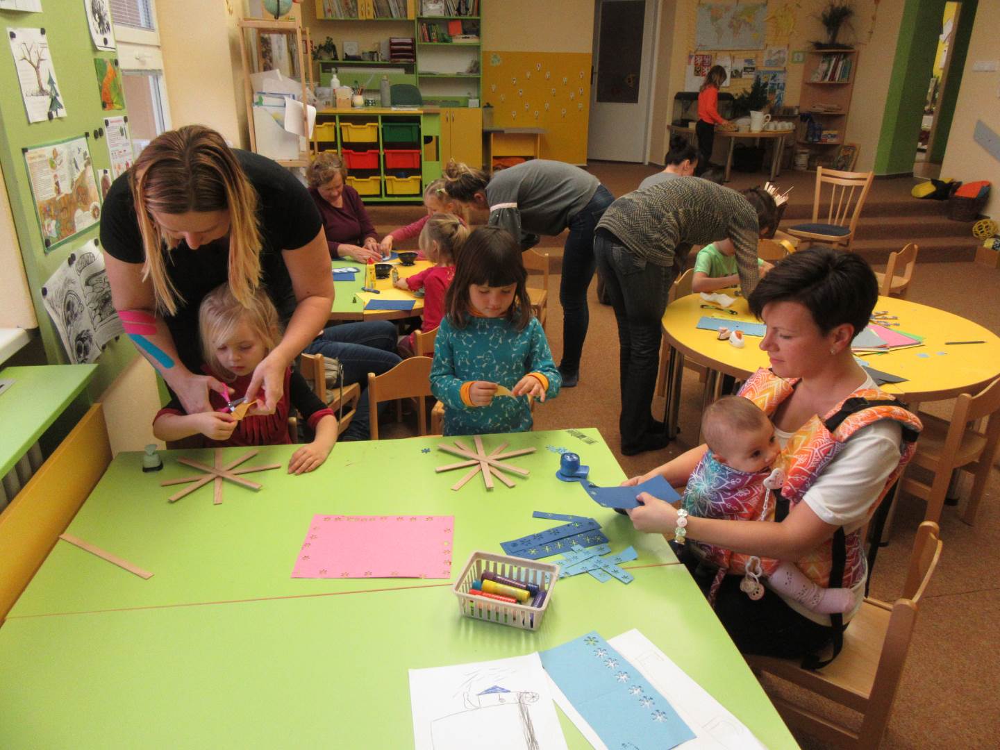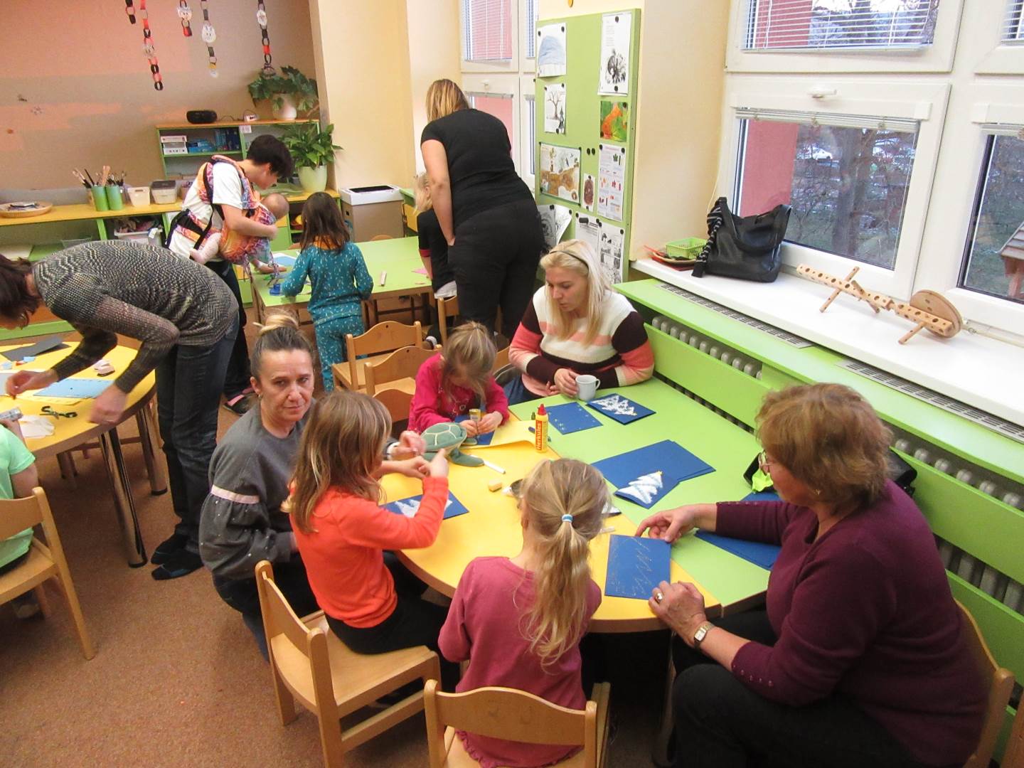 Od půl čtvrté se v naší školce konal Jarmark a Vánoční dílničky. Děti s rodiči si vyrobili vločku (hvězdu) a vánoční přáníčko a mohli si zakoupit nějakou vánoční dekoraci. V pět hodin jsme se všichni sešli u stromečku, zazpívali koledy, řekli básničku o stromečku a stromeček se rozsvítil. Poté se všichni rozešli domů.