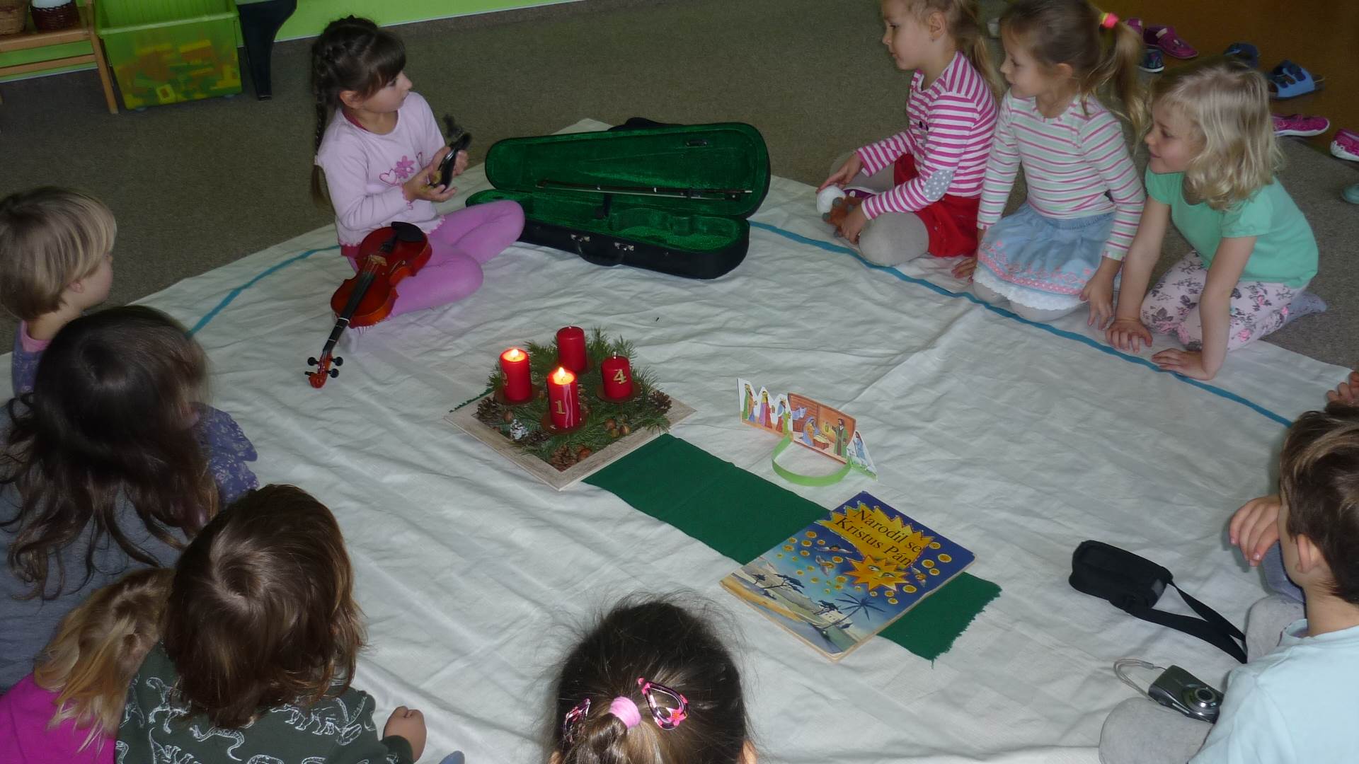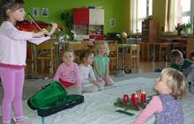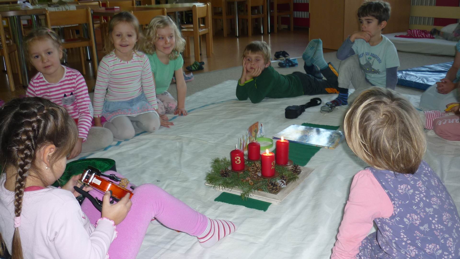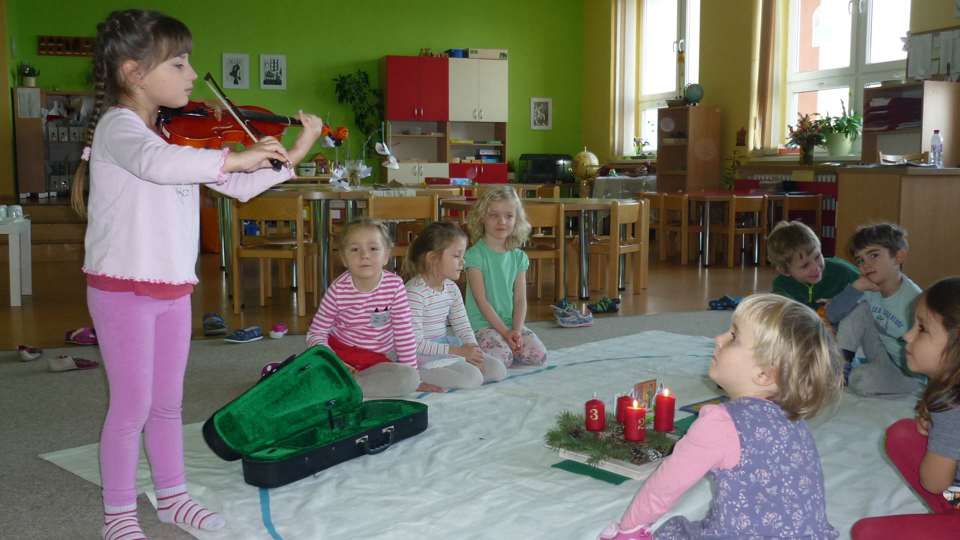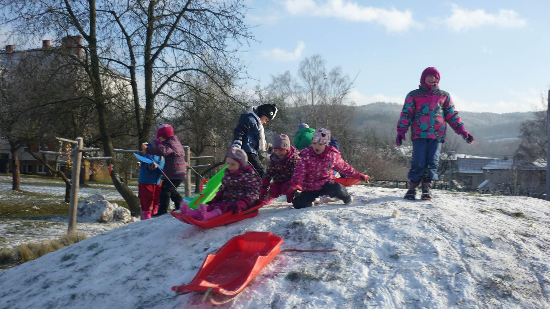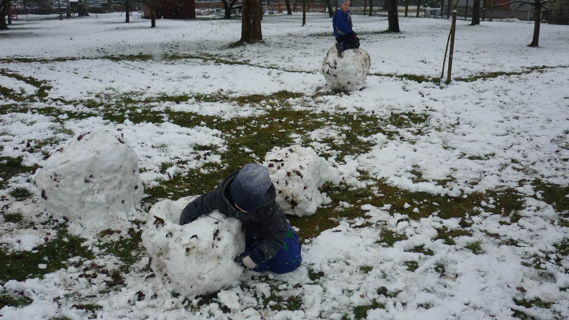 Tento týden začal pohádkově. Vyjeli jsme na divadelní představení pohádky Mrazík, kterou nám v zámeckm skleníku v Boskovicích zahráli studenti ubytovaní v domově mládeže. Jako každoročně se jim to moc povedlo. Hned jsme jim namalovali pár obrázků inspirovaných jejich vystoupením. Druhý den nás čekalo předvánoční koledování učitelů ze ZUŠ Velké Opatovice. A protože je venku sníh, učíme se říkanku s pohybem o sněhulákoví a pár sněhuláků si pak venku postavíme. Zbyde čas i na koulování , vyrábění sněhových stromových skřítků a skoky z koule. Ti zdatnější skáčou i přes kouli jako přes kozu! Se sněhem si hrajeme i další dny: bobujeme, jezdíme na lopatách a snowboardech, pozorujeme stopy ve sněhu i to, jak sníh taje. Ve třídě pak stříháme sněhové vločky a začínáme vyrábět andělská vánoční přáníčka. Snad se vám budou líbit!