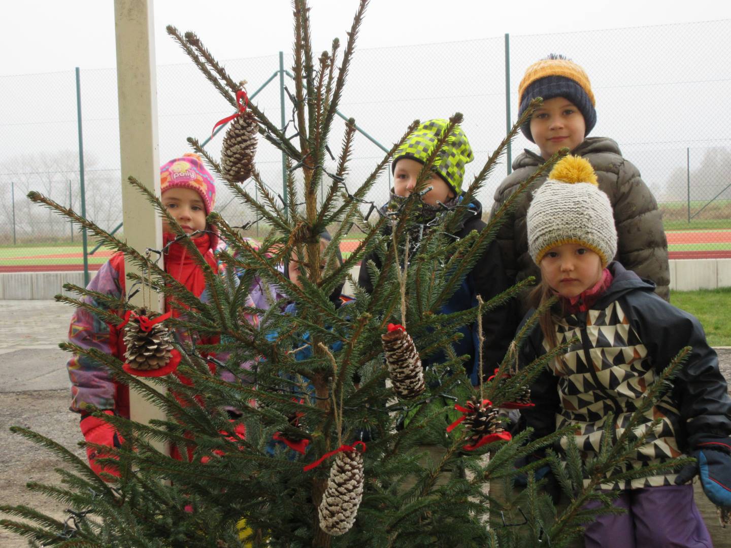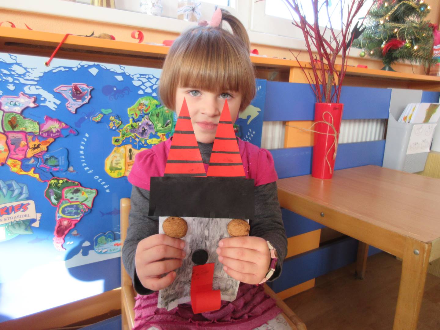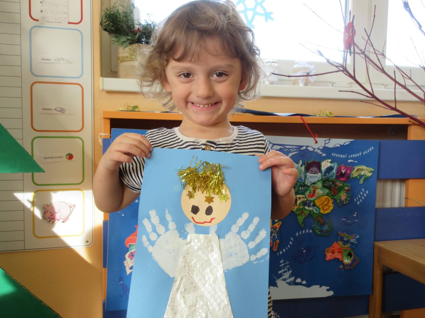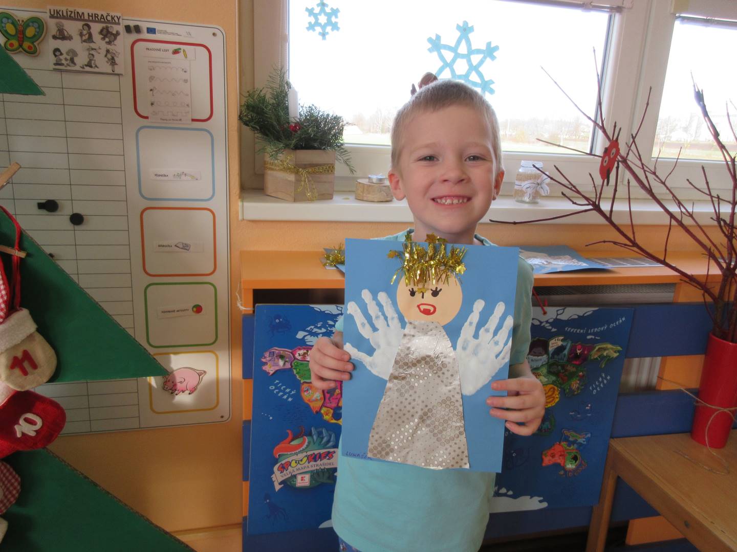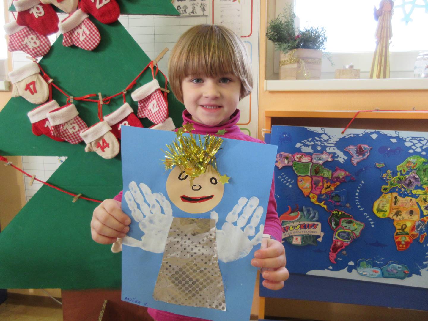 V prosinci jsme se věnovali tématu ,,Vánoční pohádka". Děti ozdobily vánoční stromeček před MŠ. Naučili jsme se nové básničky a písničky pro Mikuláše, který nás navštívil ve třídě a děti odměnil balíčkem. Postupně rozsvěcujeme svíčky na adventním věnci a také plníme úkoly z našeho adventního kalendáře. Vánoční příběh dětem vyprávěla paní Muchová, která jim poutavým způsobem přiblížila narození Ježíška. Vyrobili jsme krásná přáníčka z kapradin, zdobili perníčky a napsali dopis Ježíškovi. Předškoláci si udělali několik pracovních listů a nechybělo ani sportovní vyžití. V tělocvičně jsme se seznámili s novým gymnastickým nářadím RinoGym, které děti velmi zaujalo.
