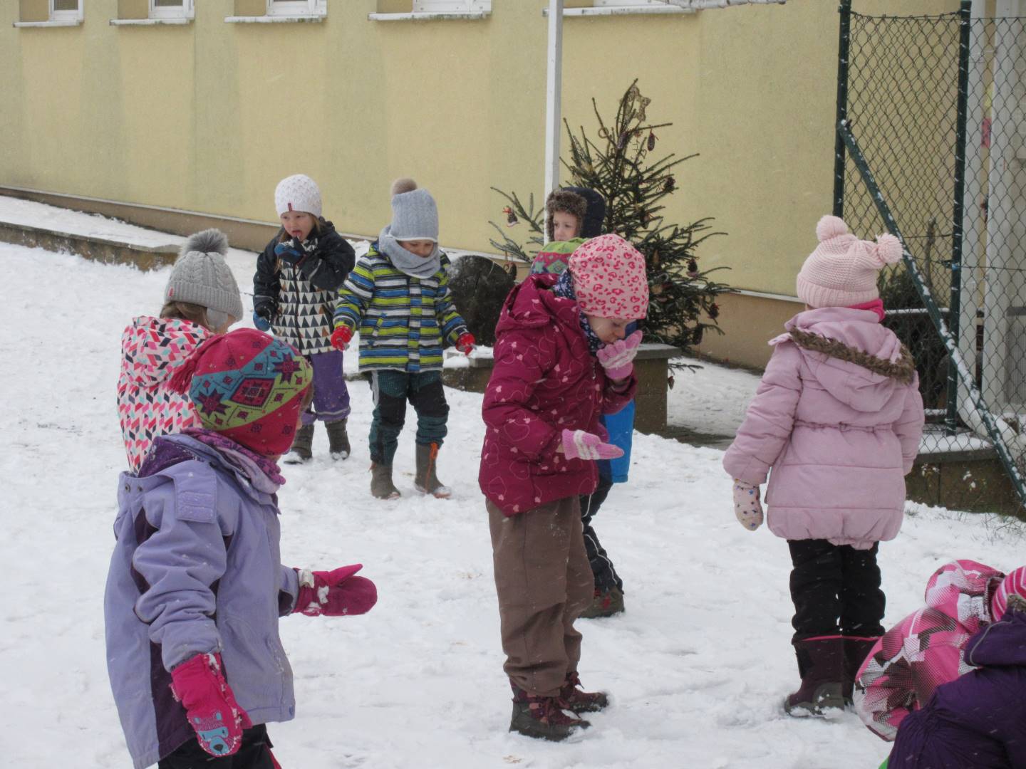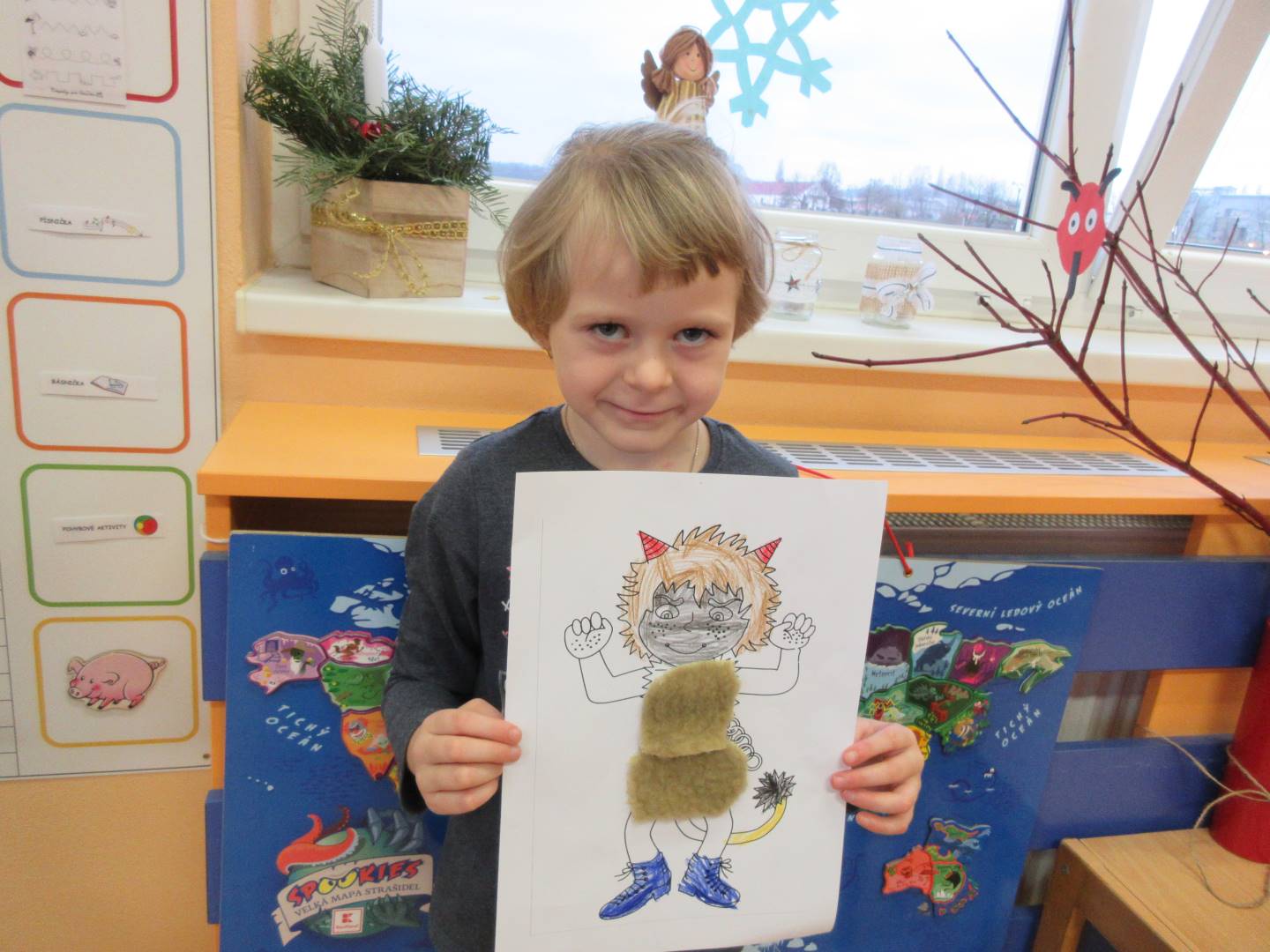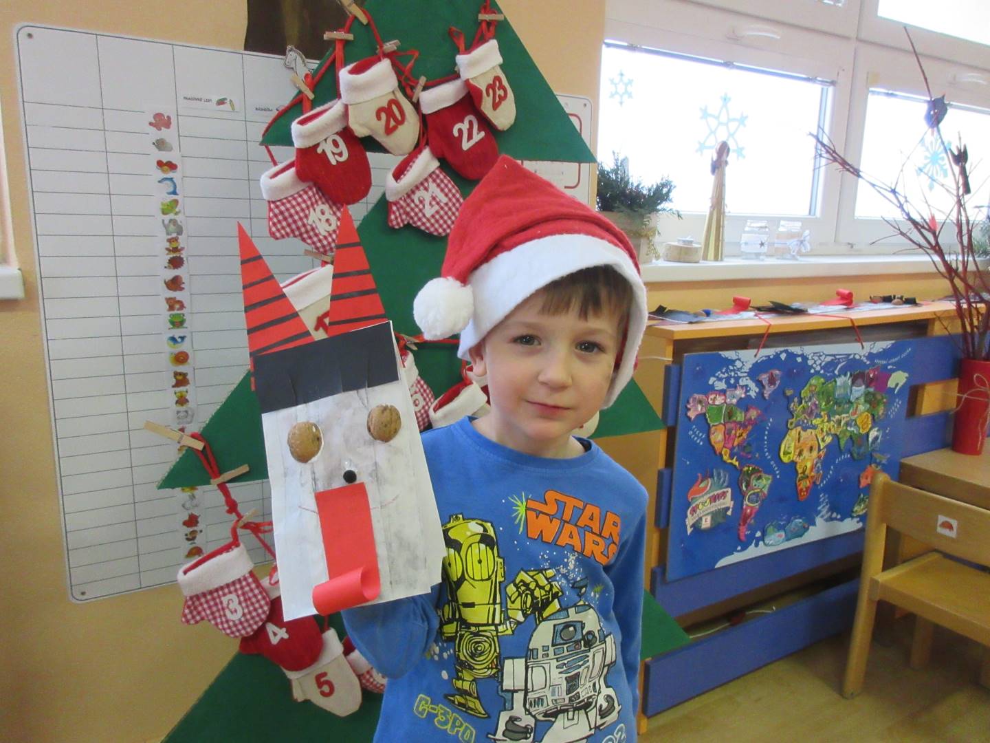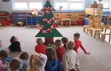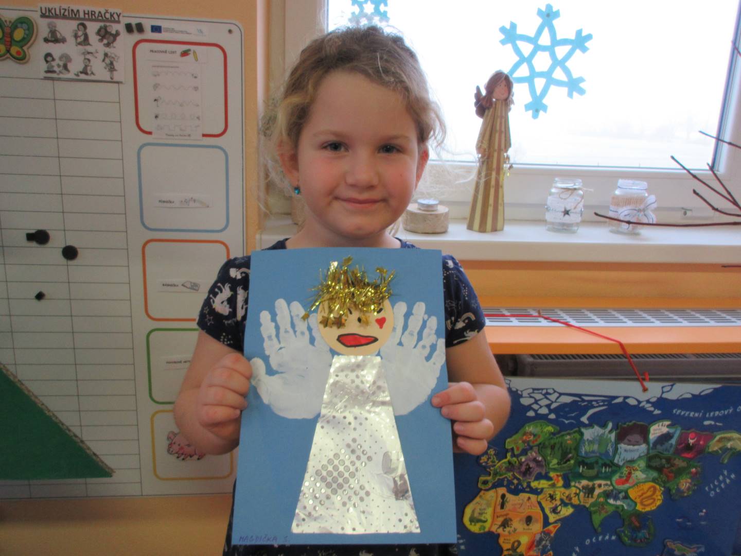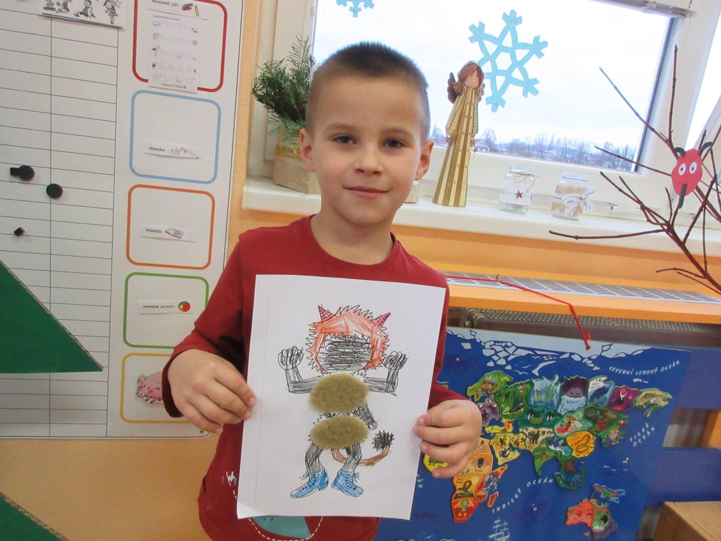 V prosinci jsme se věnovali tématu ,,Vánoční pohádka". Děti ozdobily vánoční stromeček před MŠ. Naučili jsme se nové básničky a písničky pro Mikuláše, který nás navštívil ve třídě a děti odměnil balíčkem. Postupně rozsvěcujeme svíčky na adventním věnci a také plníme úkoly z našeho adventního kalendáře. Vánoční příběh dětem vyprávěla paní Muchová, která jim poutavým způsobem přiblížila narození Ježíška. Vyrobili jsme krásná přáníčka z kapradin, zdobili perníčky a napsali dopis Ježíškovi. Předškoláci si udělali několik pracovních listů a nechybělo ani sportovní vyžití. V tělocvičně jsme se seznámili s novým gymnastickým nářadím RinoGym, které děti velmi zaujalo.