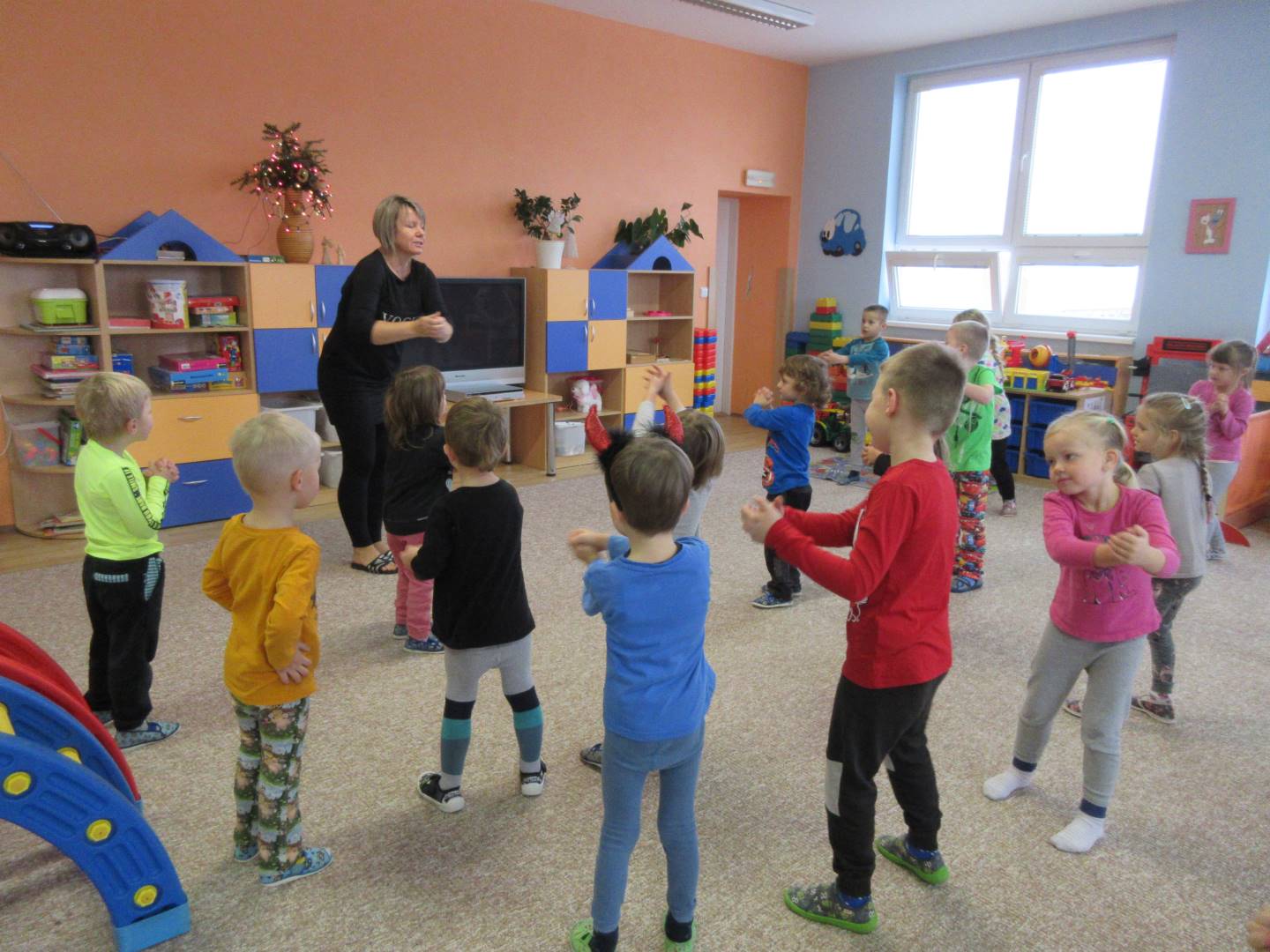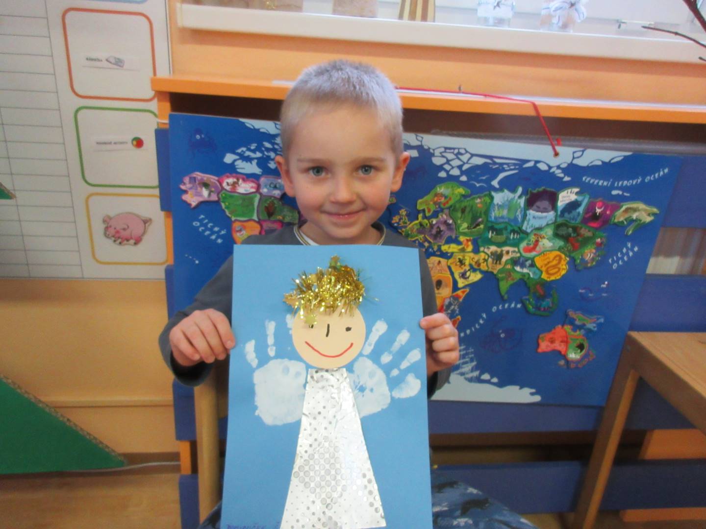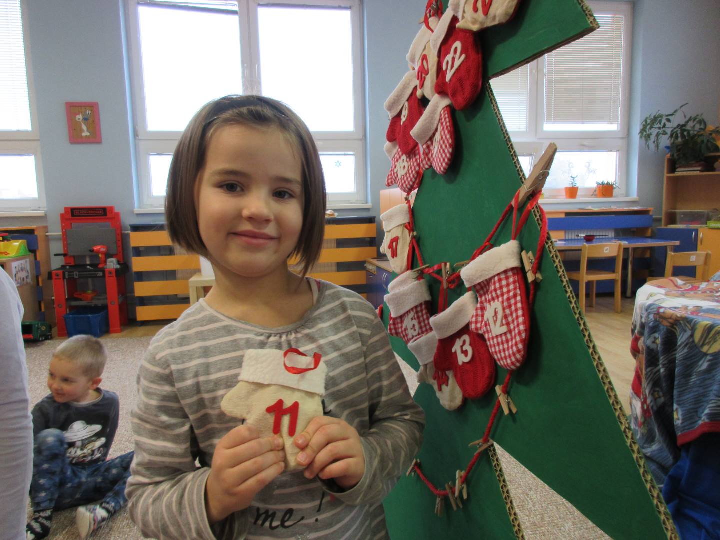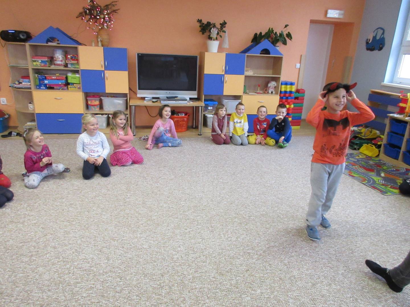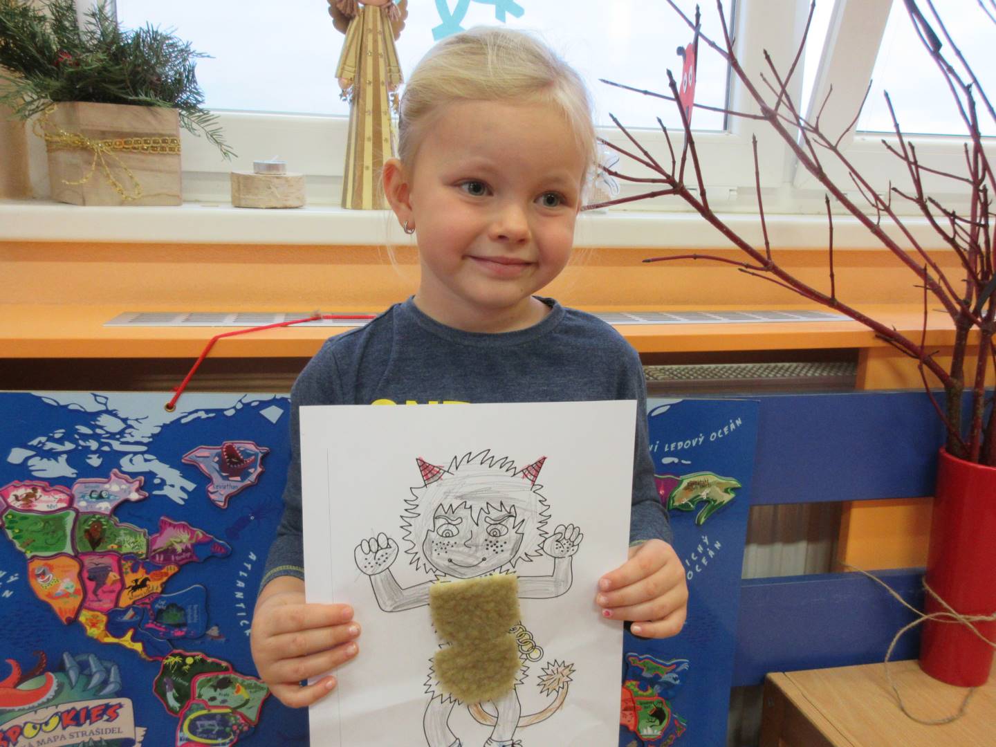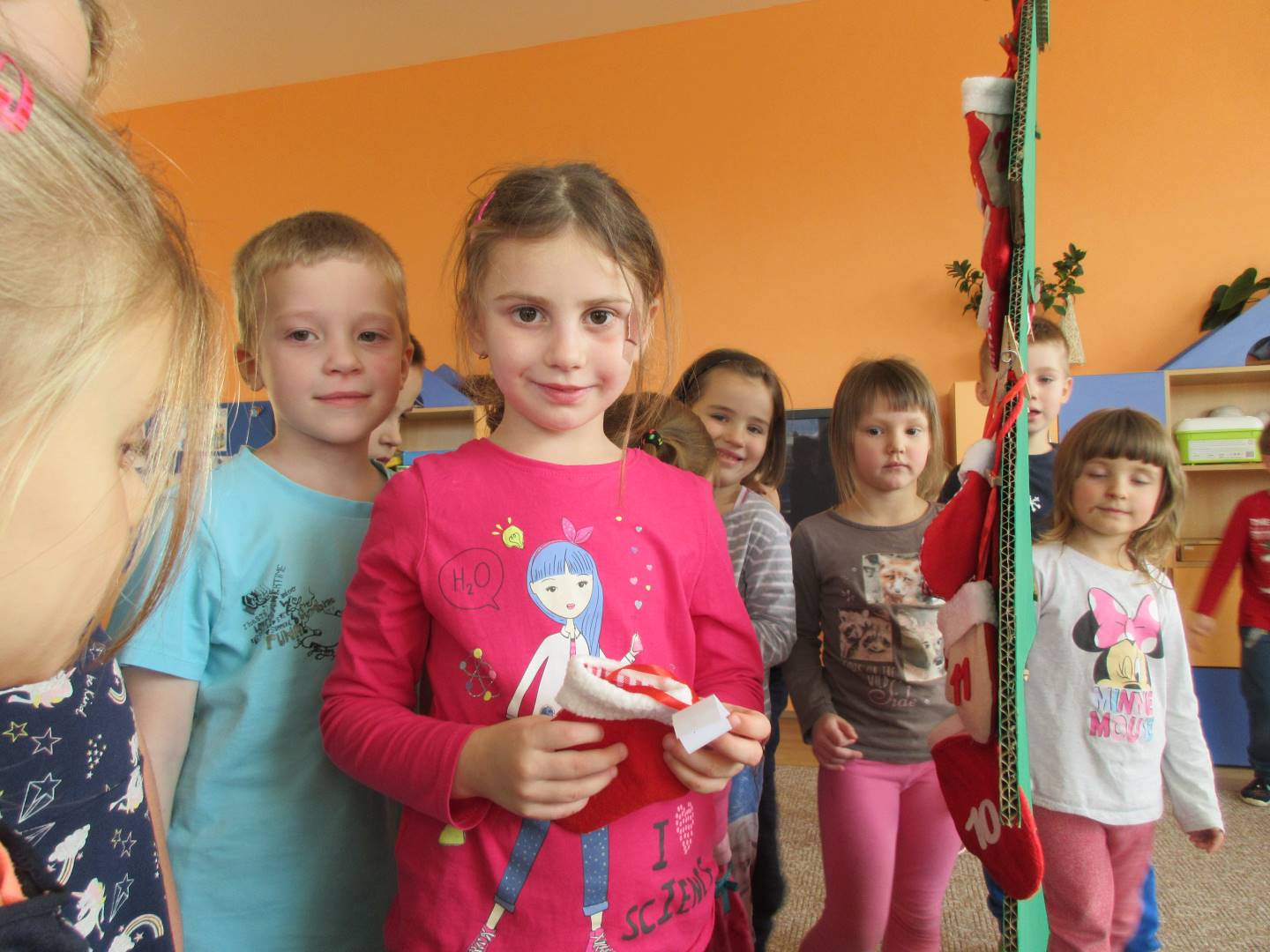 V prosinci jsme se věnovali tématu ,,Vánoční pohádka". Děti ozdobily vánoční stromeček před MŠ. Naučili jsme se nové básničky a písničky pro Mikuláše, který nás navštívil ve třídě a děti odměnil balíčkem. Postupně rozsvěcujeme svíčky na adventním věnci a také plníme úkoly z našeho adventního kalendáře. Vánoční příběh dětem vyprávěla paní Muchová, která jim poutavým způsobem přiblížila narození Ježíška. Vyrobili jsme krásná přáníčka z kapradin, zdobili perníčky a napsali dopis Ježíškovi. Předškoláci si udělali několik pracovních listů a nechybělo ani sportovní vyžití. V tělocvičně jsme se seznámili s novým gymnastickým nářadím RinoGym, které děti velmi zaujalo.