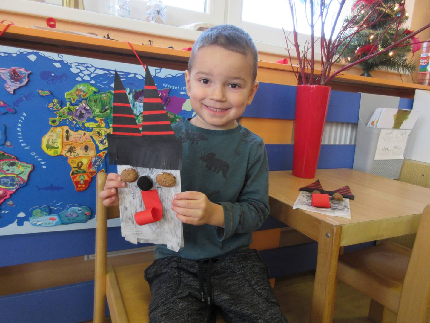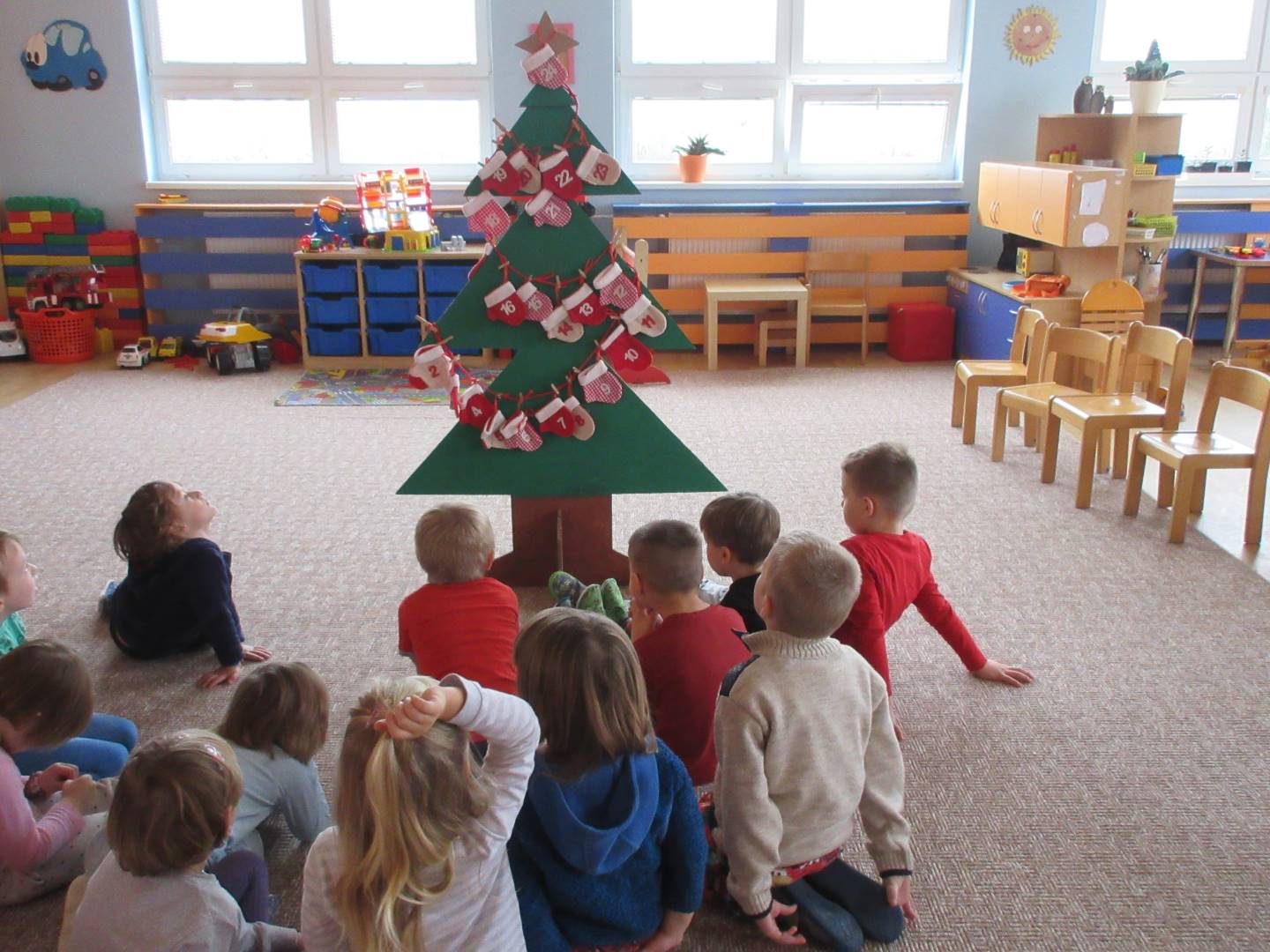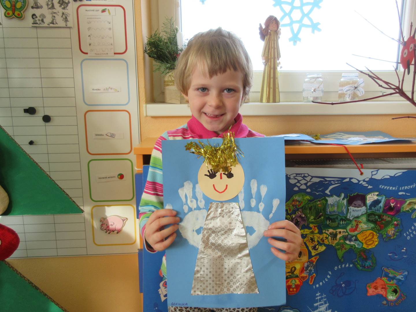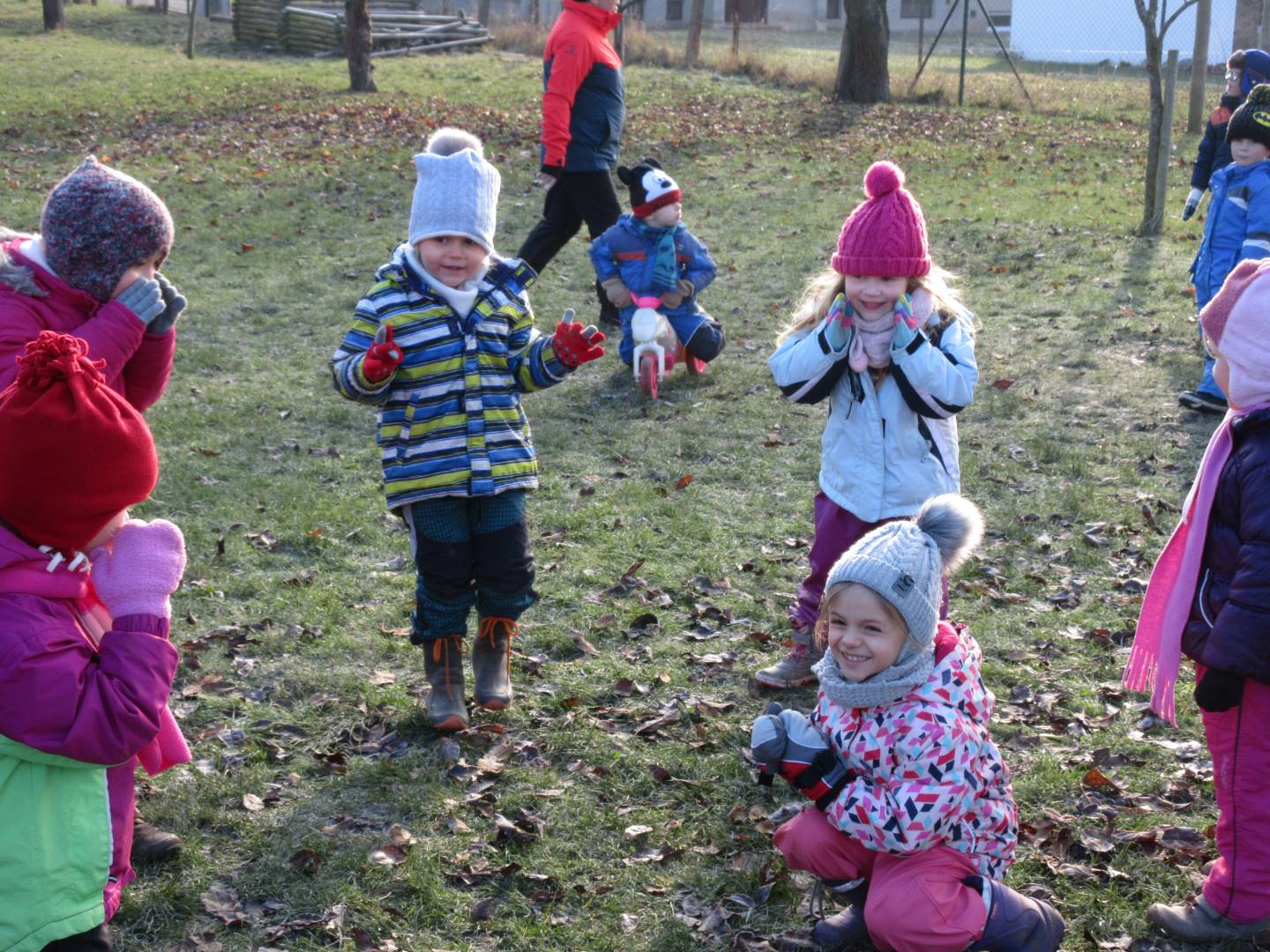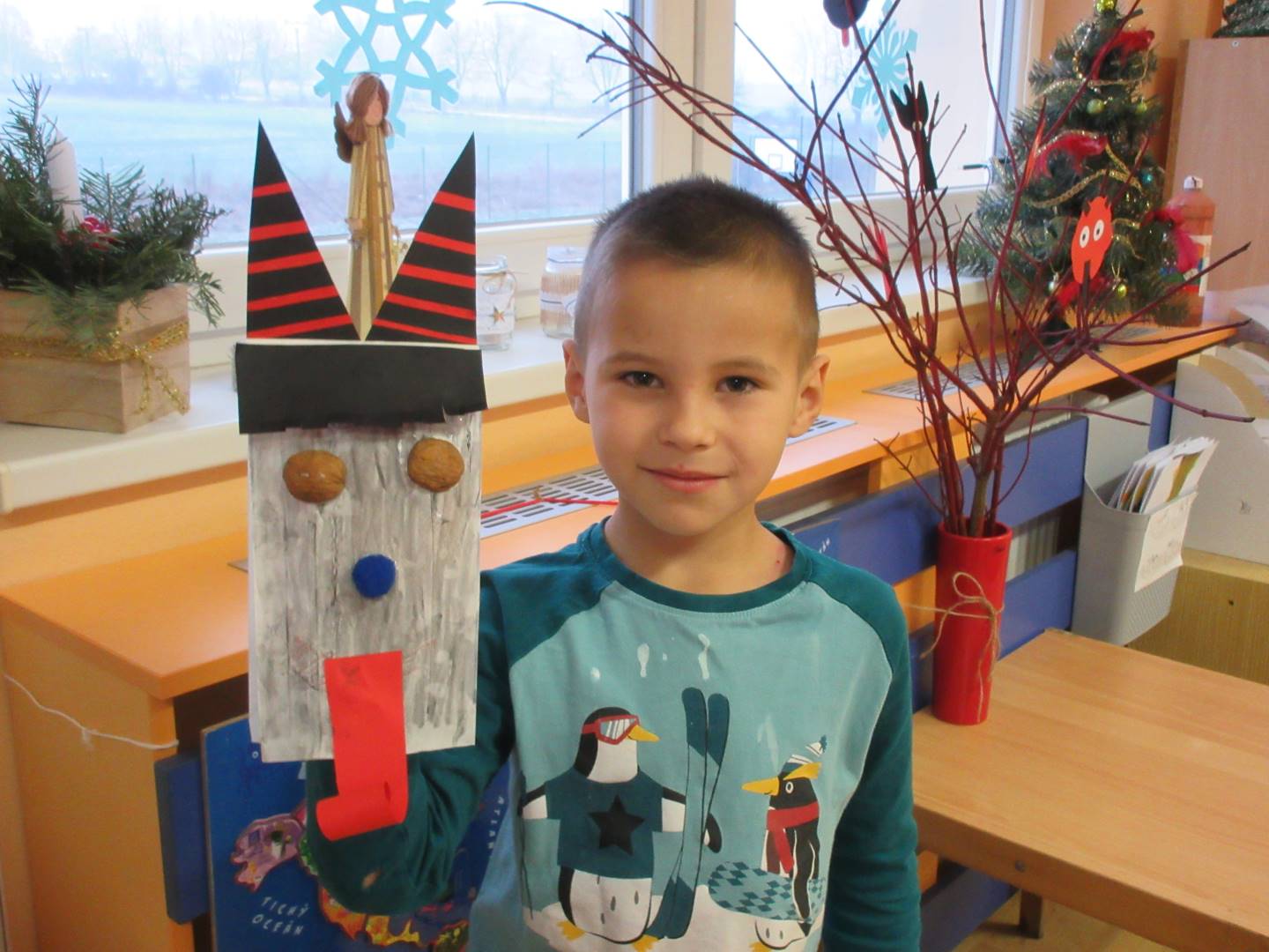 V prosinci jsme se věnovali tématu ,,Vánoční pohádka". Děti ozdobily vánoční stromeček před MŠ. Naučili jsme se nové básničky a písničky pro Mikuláše, který nás navštívil ve třídě a děti odměnil balíčkem. Postupně rozsvěcujeme svíčky na adventním věnci a také plníme úkoly z našeho adventního kalendáře. Vánoční příběh dětem vyprávěla paní Muchová, která jim poutavým způsobem přiblížila narození Ježíška. Vyrobili jsme krásná přáníčka z kapradin, zdobili perníčky a napsali dopis Ježíškovi. Předškoláci si udělali několik pracovních listů a nechybělo ani sportovní vyžití. V tělocvičně jsme se seznámili s novým gymnastickým nářadím RinoGym, které děti velmi zaujalo.