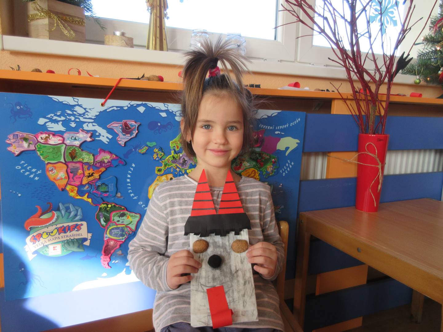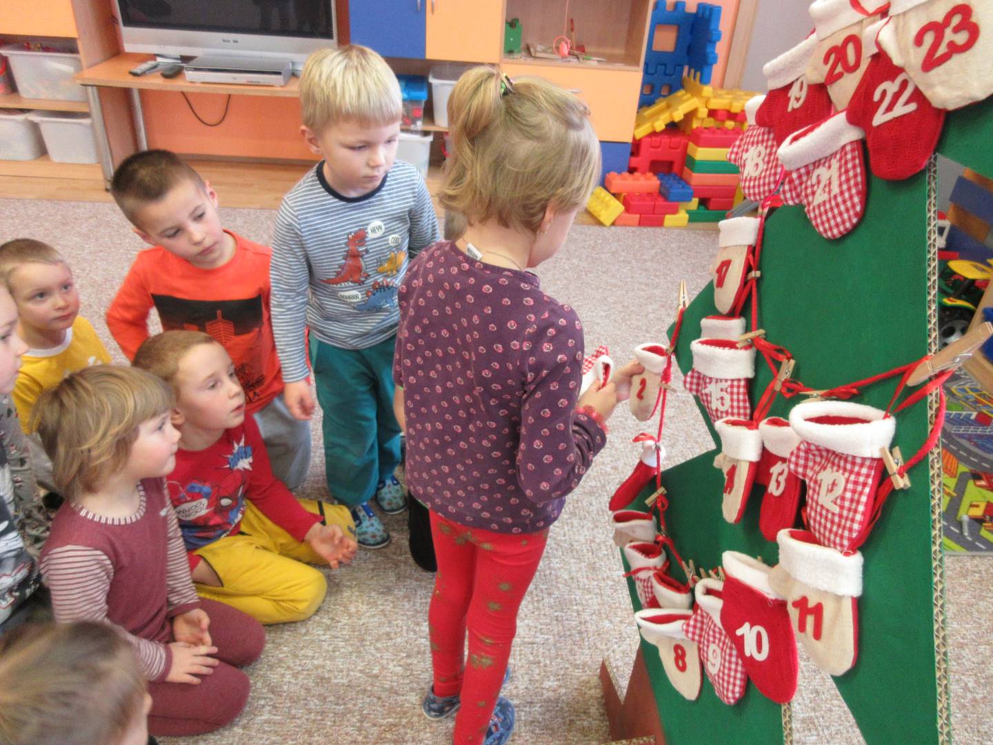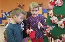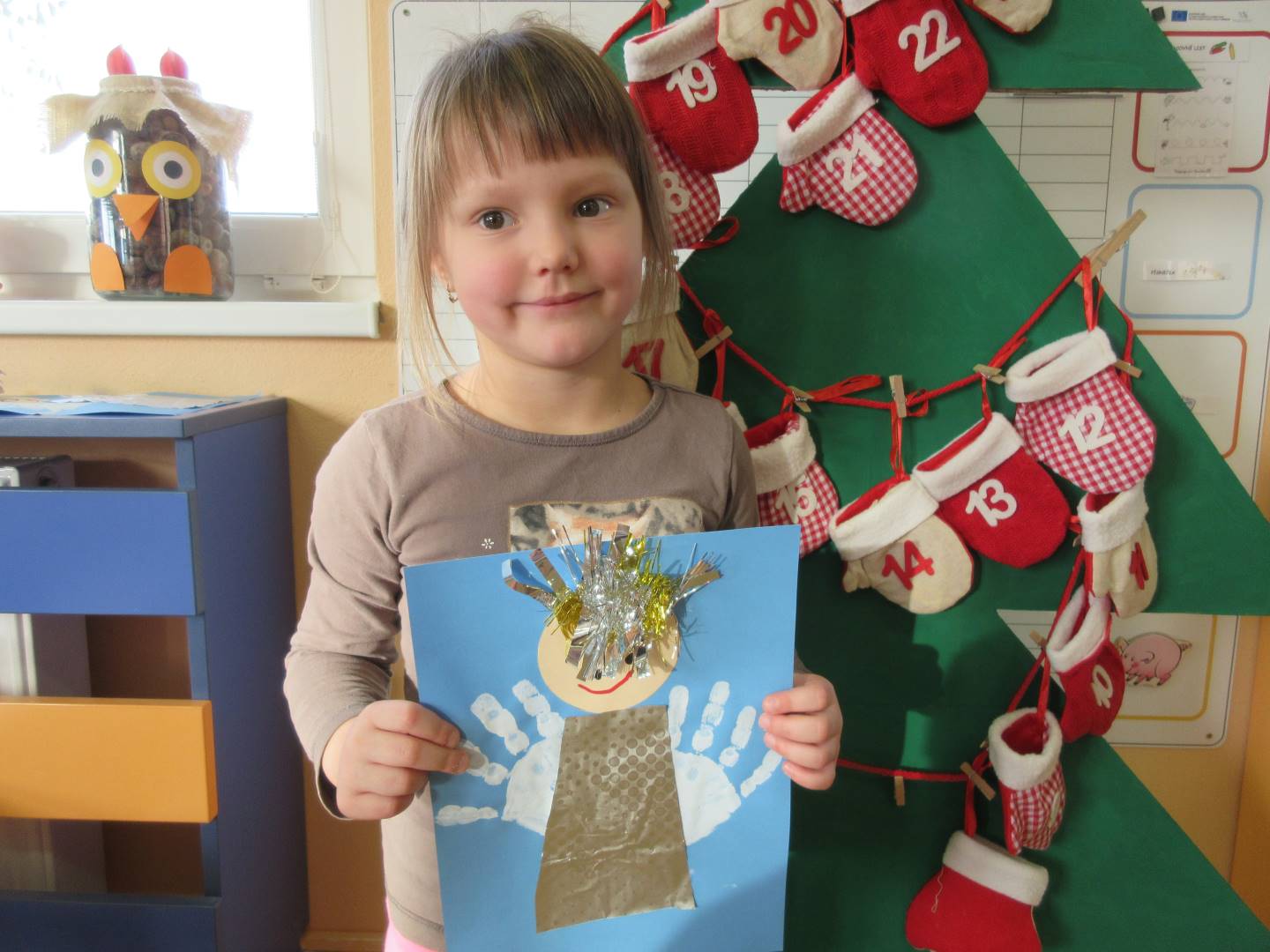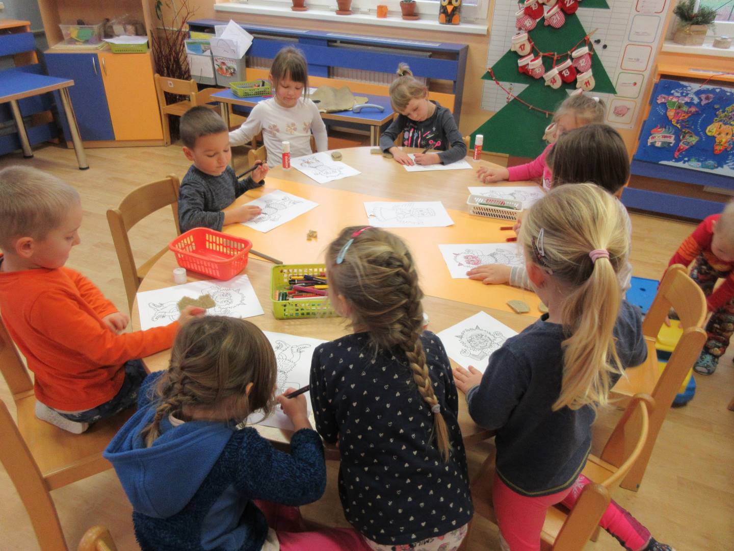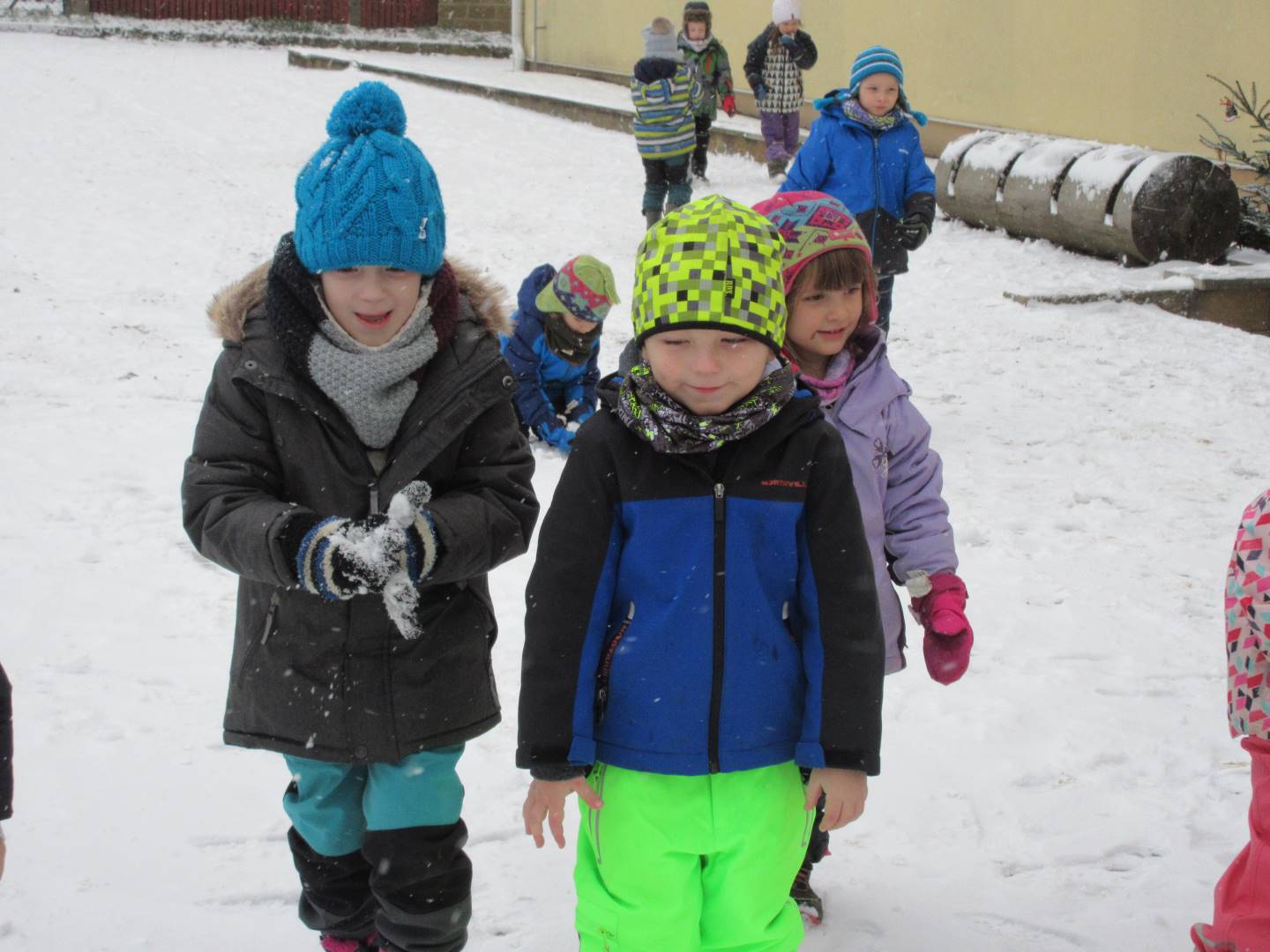 V prosinci jsme se věnovali tématu ,,Vánoční pohádka". Děti ozdobily vánoční stromeček před MŠ. Naučili jsme se nové básničky a písničky pro Mikuláše, který nás navštívil ve třídě a děti odměnil balíčkem. Postupně rozsvěcujeme svíčky na adventním věnci a také plníme úkoly z našeho adventního kalendáře. Vánoční příběh dětem vyprávěla paní Muchová, která jim poutavým způsobem přiblížila narození Ježíška. Vyrobili jsme krásná přáníčka z kapradin, zdobili perníčky a napsali dopis Ježíškovi. Předškoláci si udělali několik pracovních listů a nechybělo ani sportovní vyžití. V tělocvičně jsme se seznámili s novým gymnastickým nářadím RinoGym, které děti velmi zaujalo.