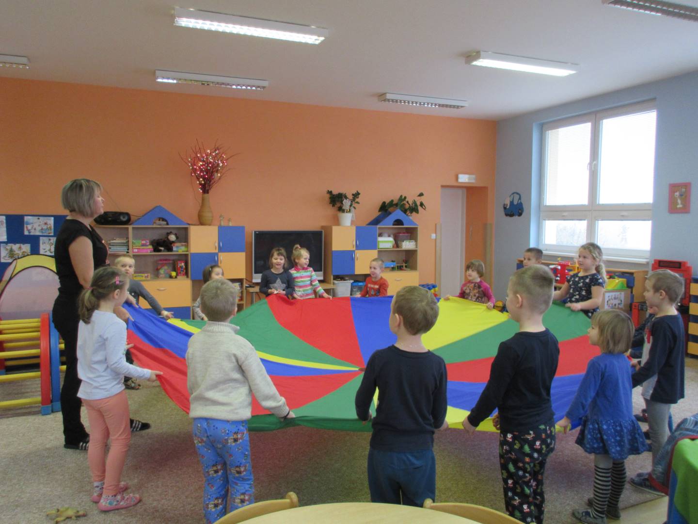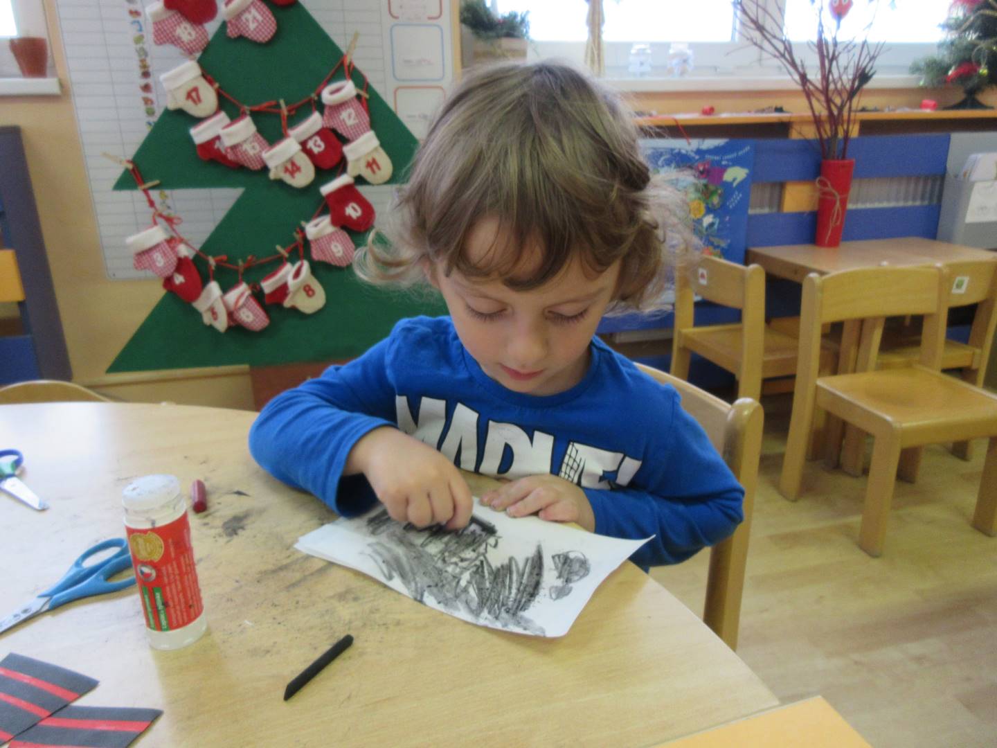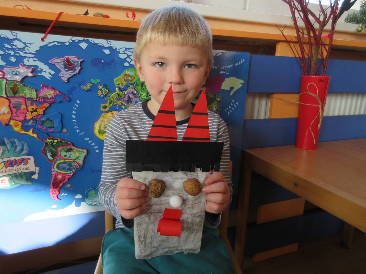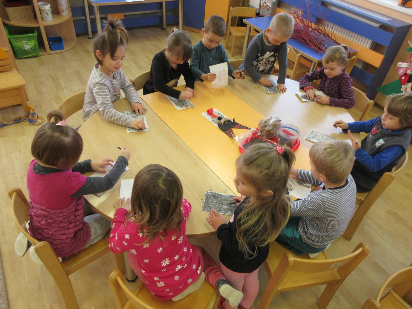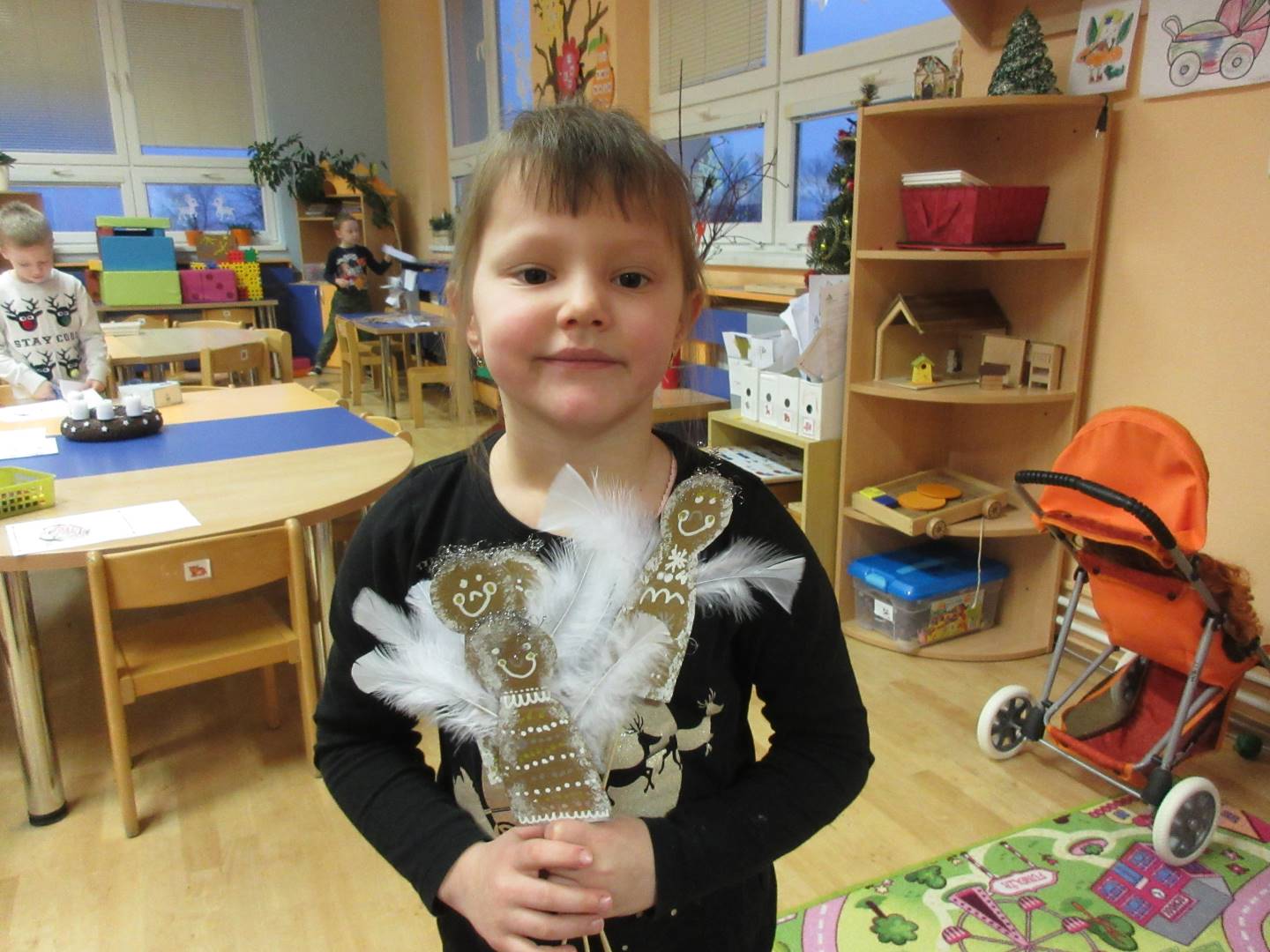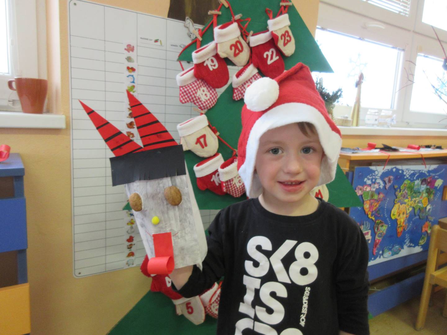 V prosinci jsme se věnovali tématu ,,Vánoční pohádka". Děti ozdobily vánoční stromeček před MŠ. Naučili jsme se nové básničky a písničky pro Mikuláše, který nás navštívil ve třídě a děti odměnil balíčkem. Postupně rozsvěcujeme svíčky na adventním věnci a také plníme úkoly z našeho adventního kalendáře. Vánoční příběh dětem vyprávěla paní Muchová, která jim poutavým způsobem přiblížila narození Ježíška. Vyrobili jsme krásná přáníčka z kapradin, zdobili perníčky a napsali dopis Ježíškovi. Předškoláci si udělali několik pracovních listů a nechybělo ani sportovní vyžití. V tělocvičně jsme se seznámili s novým gymnastickým nářadím RinoGym, které děti velmi zaujalo.