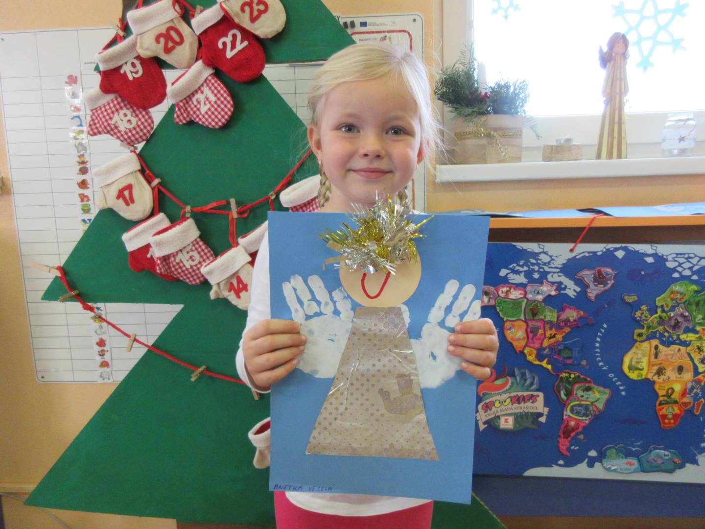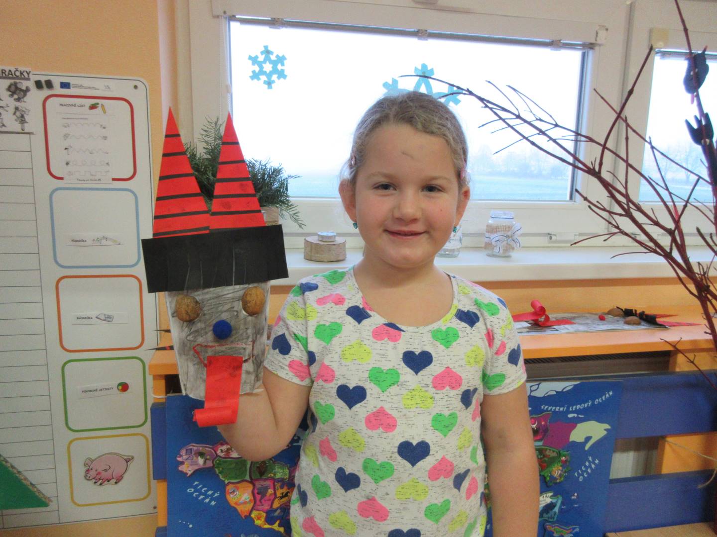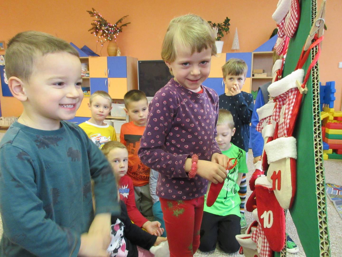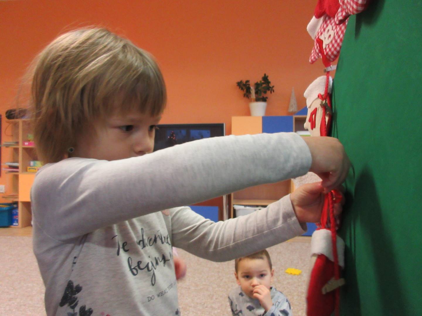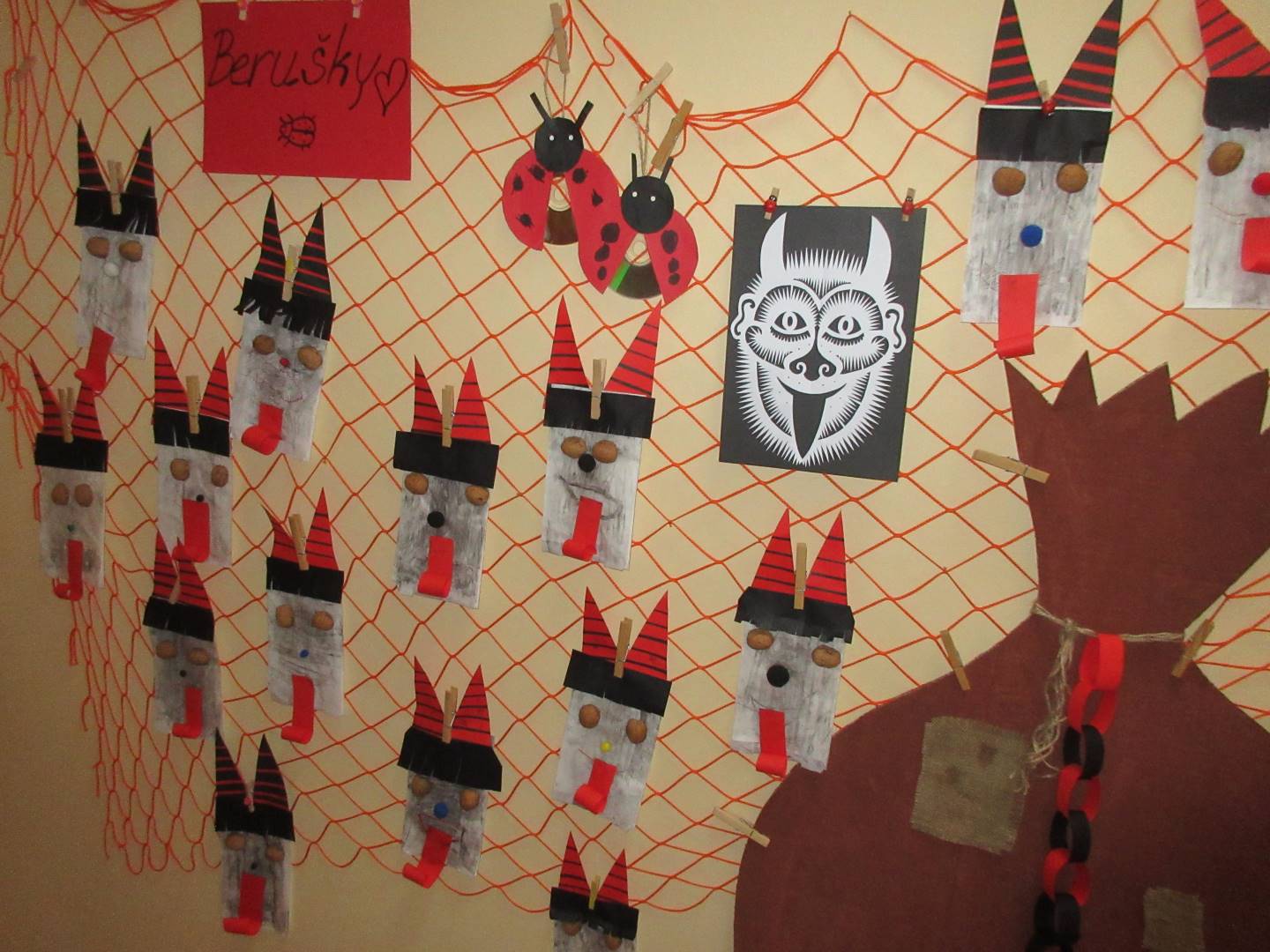V prosinci jsme se věnovali tématu ,,Vánoční pohádka". Děti ozdobily vánoční stromeček před MŠ. Naučili jsme se nové básničky a písničky pro Mikuláše, který nás navštívil ve třídě a děti odměnil balíčkem. Postupně rozsvěcujeme svíčky na adventním věnci a také plníme úkoly z našeho adventního kalendáře. Vánoční příběh dětem vyprávěla paní Muchová, která jim poutavým způsobem přiblížila narození Ježíška. Vyrobili jsme krásná přáníčka z kapradin, zdobili perníčky a napsali dopis Ježíškovi. Předškoláci si udělali několik pracovních listů a nechybělo ani sportovní vyžití. V tělocvičně jsme se seznámili s novým gymnastickým nářadím RinoGym, které děti velmi zaujalo.