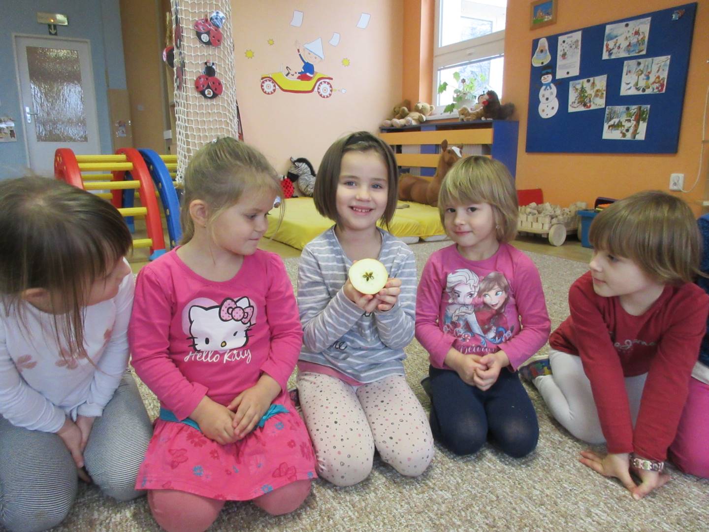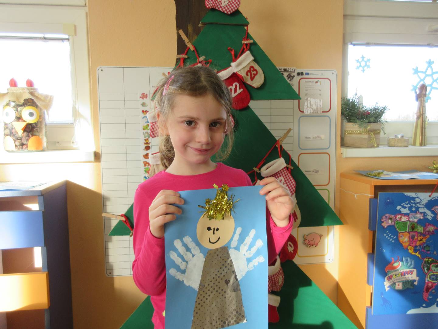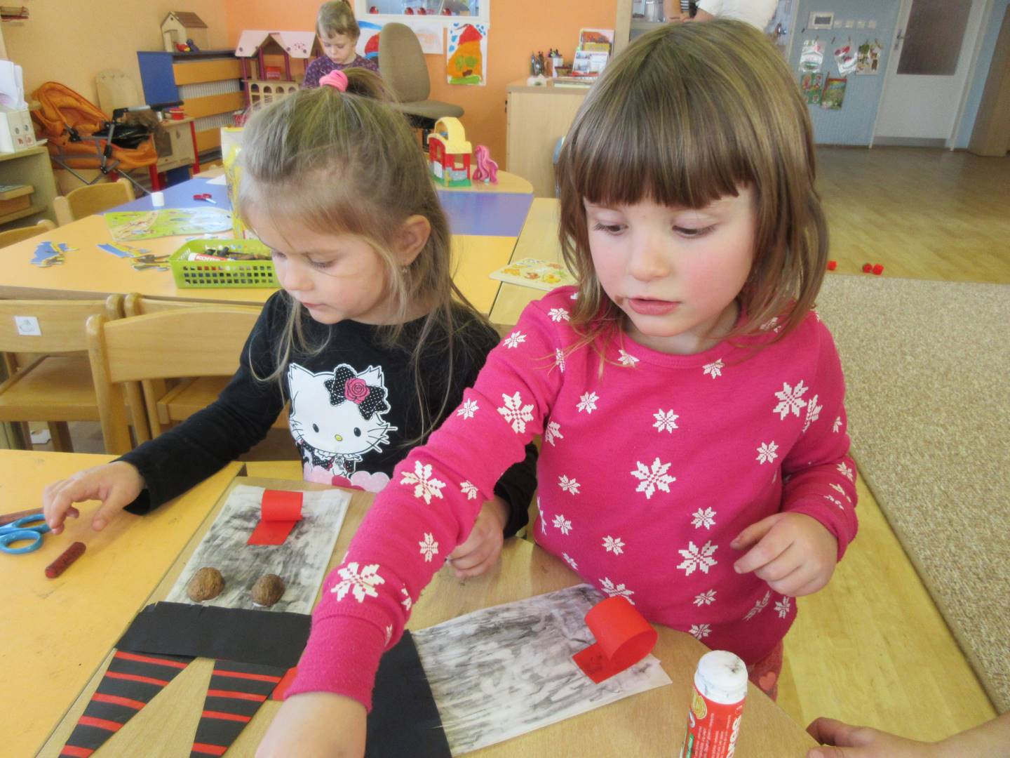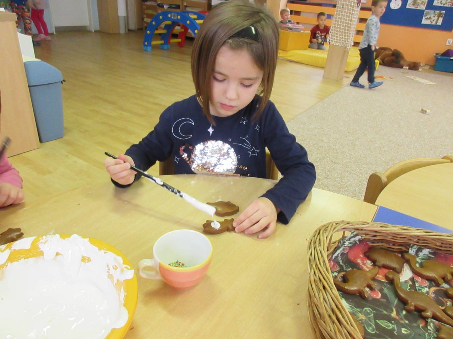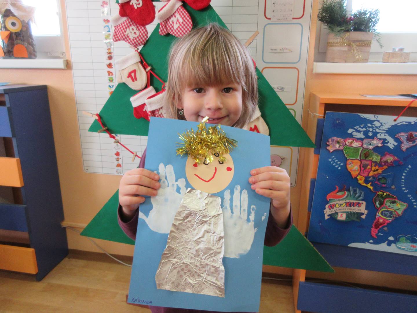 V prosinci jsme se věnovali tématu ,,Vánoční pohádka". Děti ozdobily vánoční stromeček před MŠ. Naučili jsme se nové básničky a písničky pro Mikuláše, který nás navštívil ve třídě a děti odměnil balíčkem. Postupně rozsvěcujeme svíčky na adventním věnci a také plníme úkoly z našeho adventního kalendáře. Vánoční příběh dětem vyprávěla paní Muchová, která jim poutavým způsobem přiblížila narození Ježíška. Vyrobili jsme krásná přáníčka z kapradin, zdobili perníčky a napsali dopis Ježíškovi. Předškoláci si udělali několik pracovních listů a nechybělo ani sportovní vyžití. V tělocvičně jsme se seznámili s novým gymnastickým nářadím RinoGym, které děti velmi zaujalo.