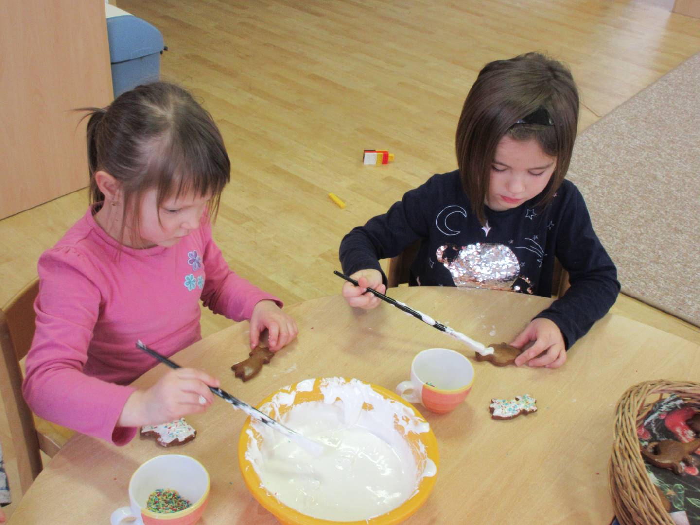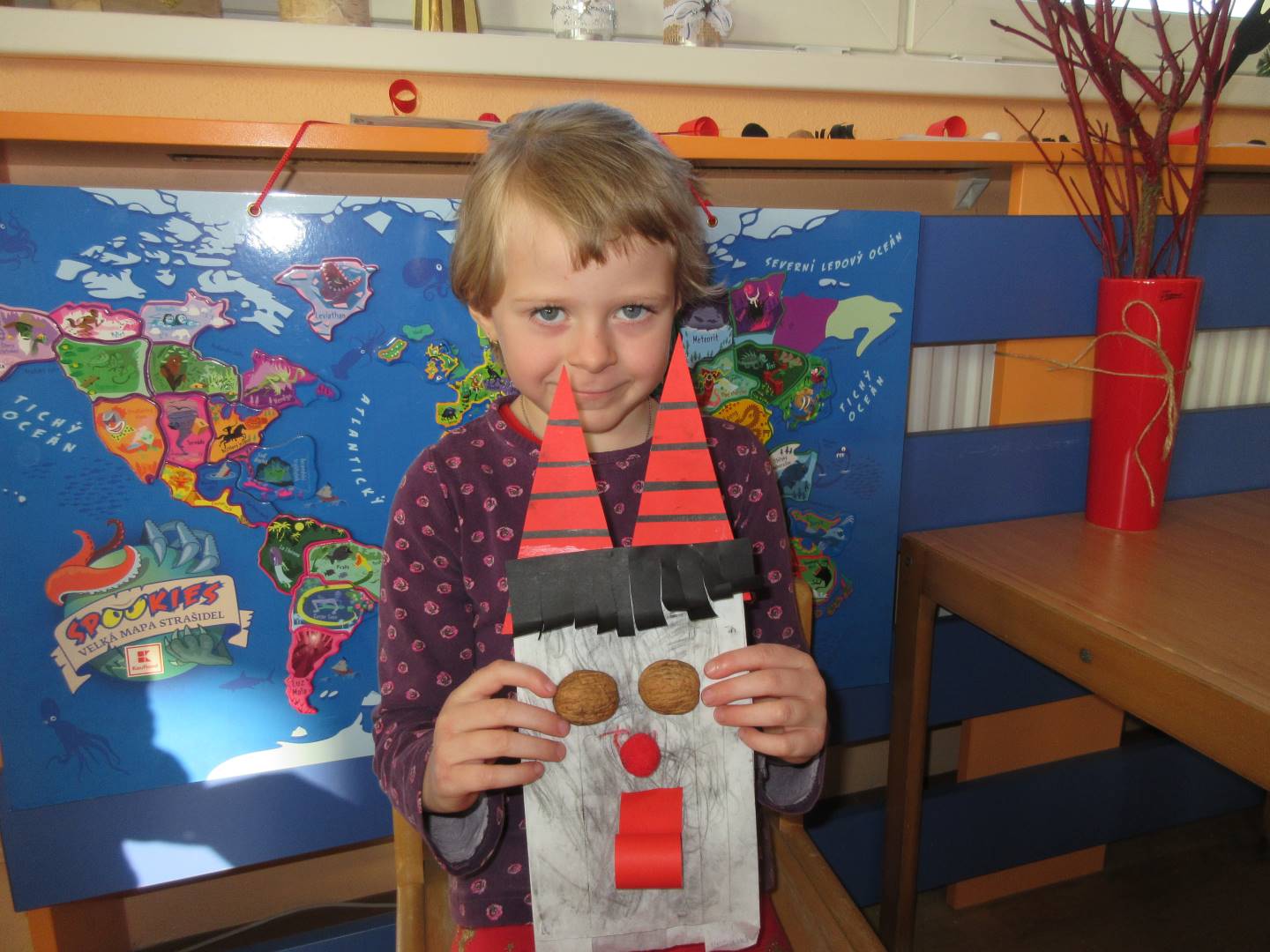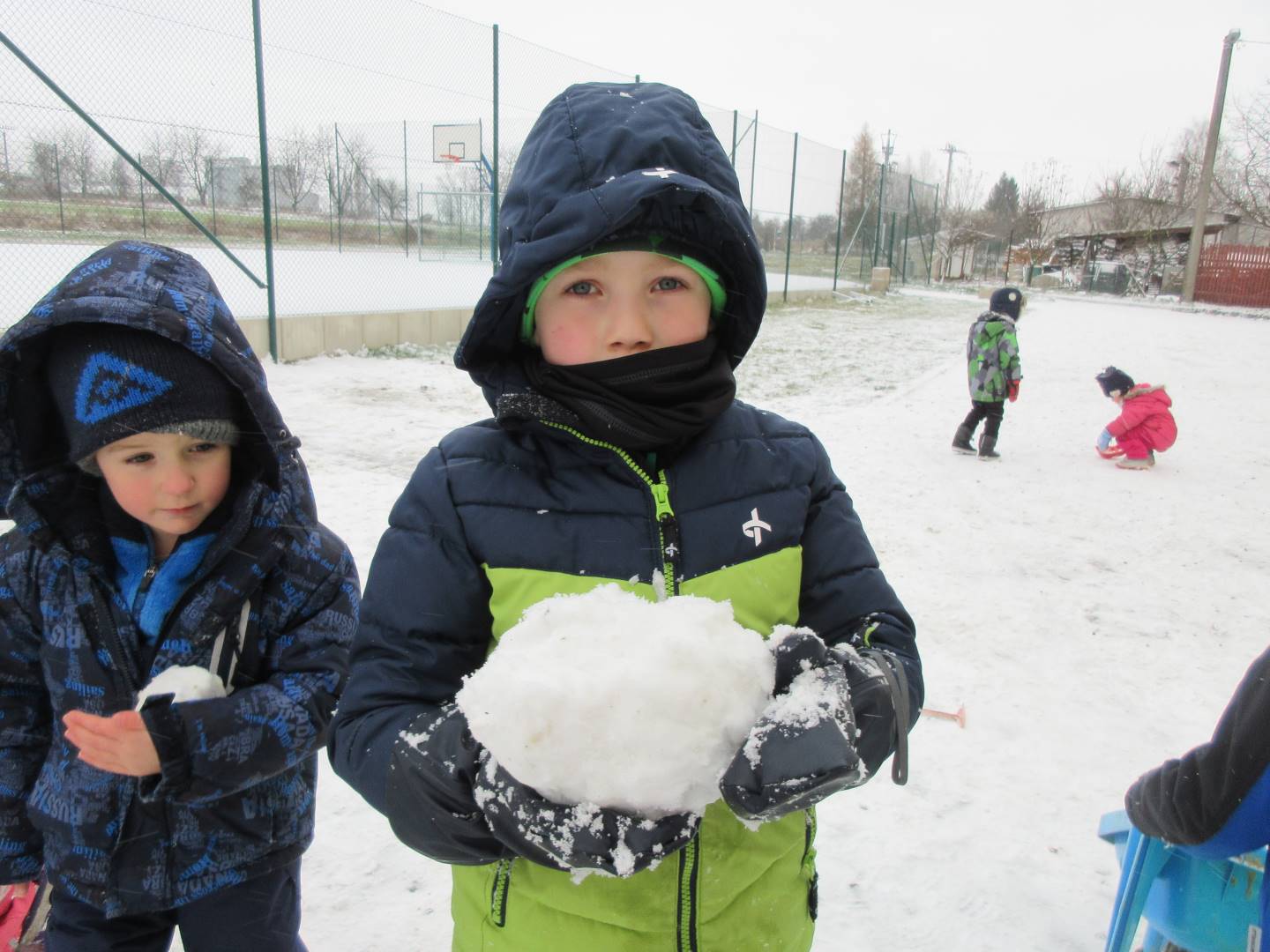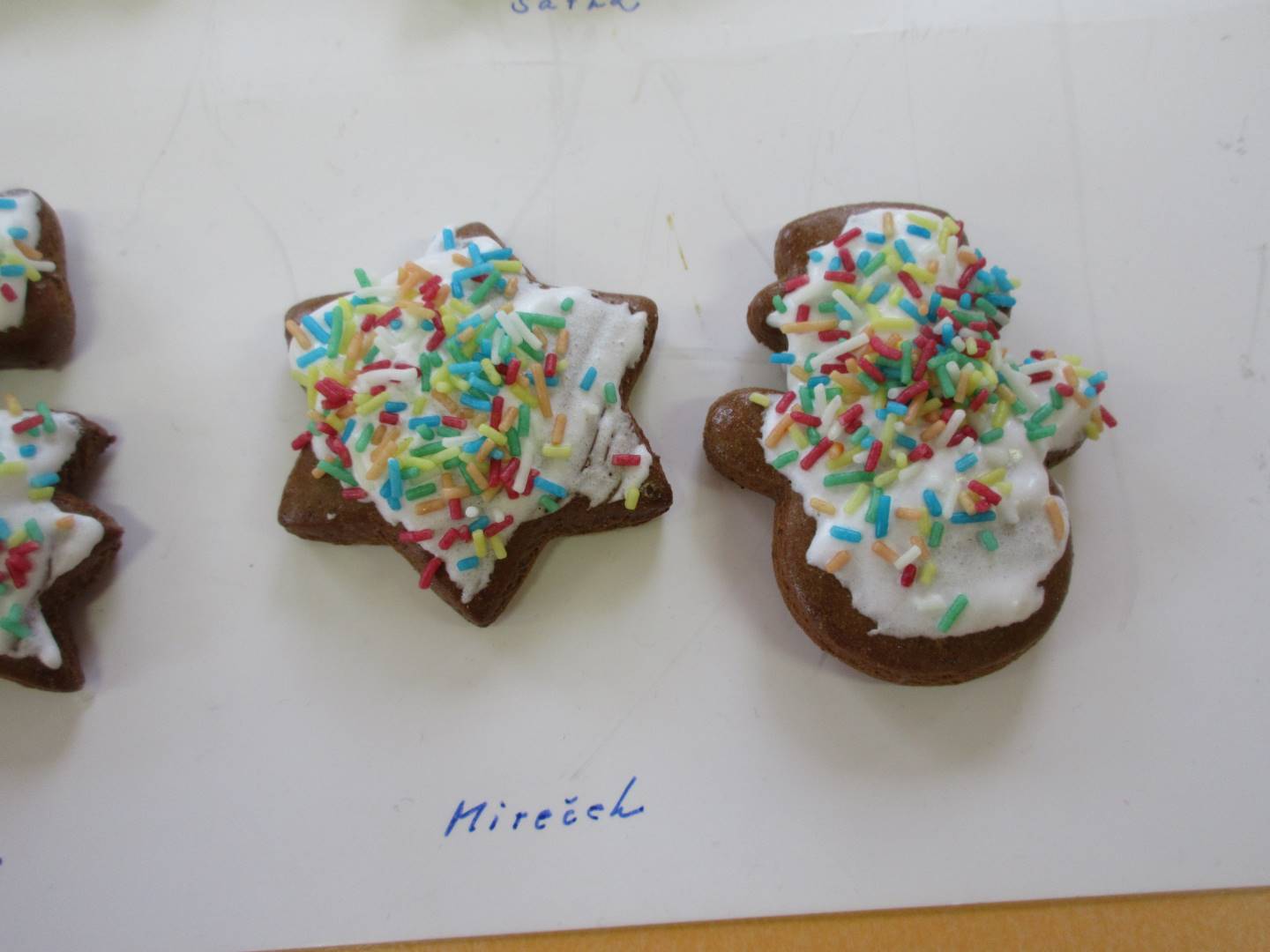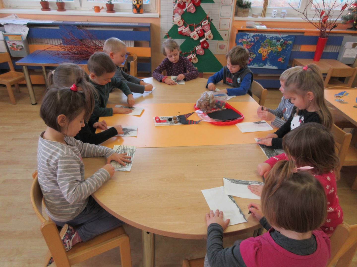 V prosinci jsme se věnovali tématu ,,Vánoční pohádka". Děti ozdobily vánoční stromeček před MŠ. Naučili jsme se nové básničky a písničky pro Mikuláše, který nás navštívil ve třídě a děti odměnil balíčkem. Postupně rozsvěcujeme svíčky na adventním věnci a také plníme úkoly z našeho adventního kalendáře. Vánoční příběh dětem vyprávěla paní Muchová, která jim poutavým způsobem přiblížila narození Ježíška. Vyrobili jsme krásná přáníčka z kapradin, zdobili perníčky a napsali dopis Ježíškovi. Předškoláci si udělali několik pracovních listů a nechybělo ani sportovní vyžití. V tělocvičně jsme se seznámili s novým gymnastickým nářadím RinoGym, které děti velmi zaujalo.
