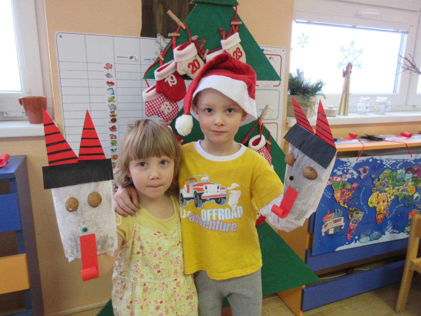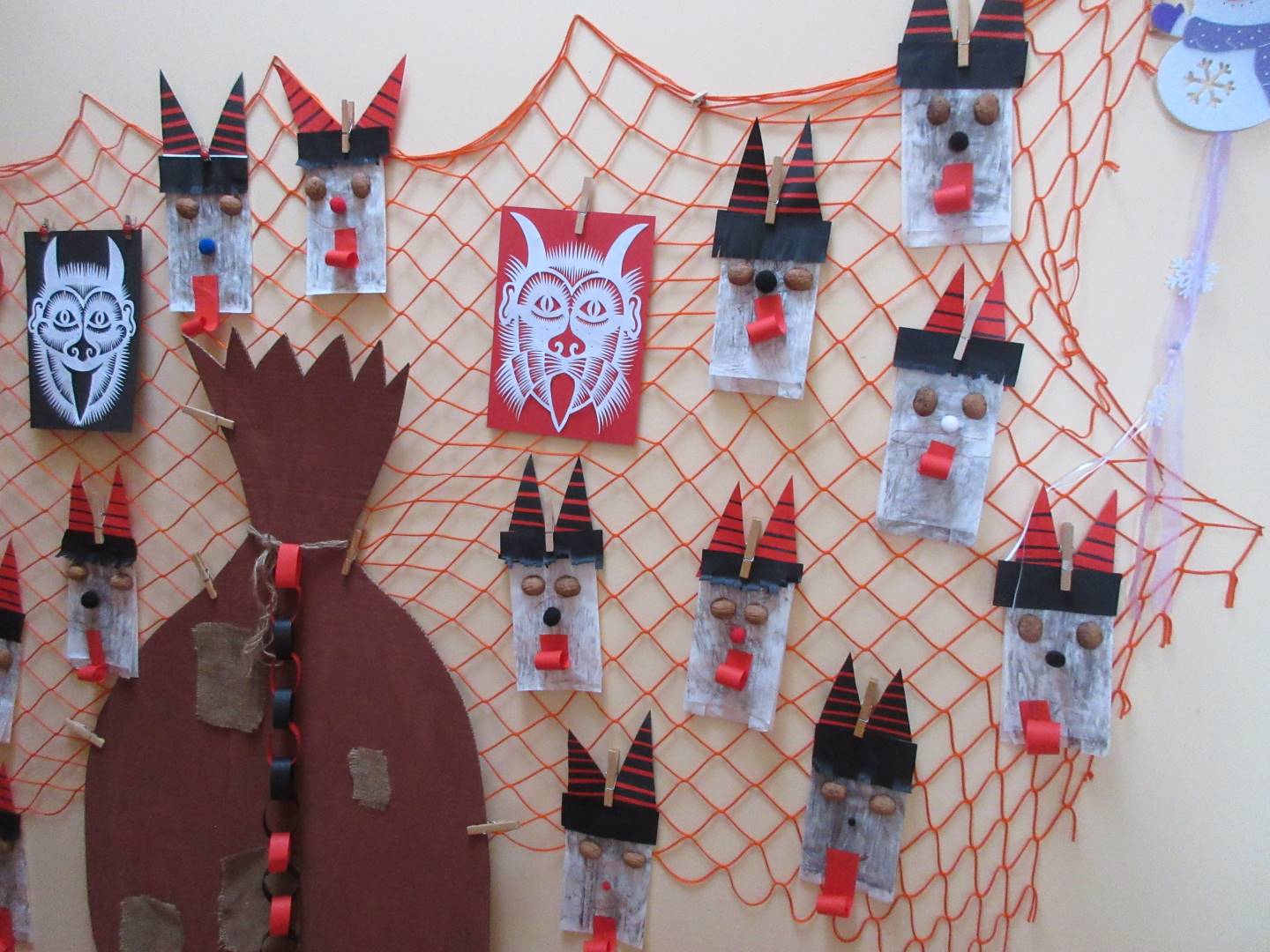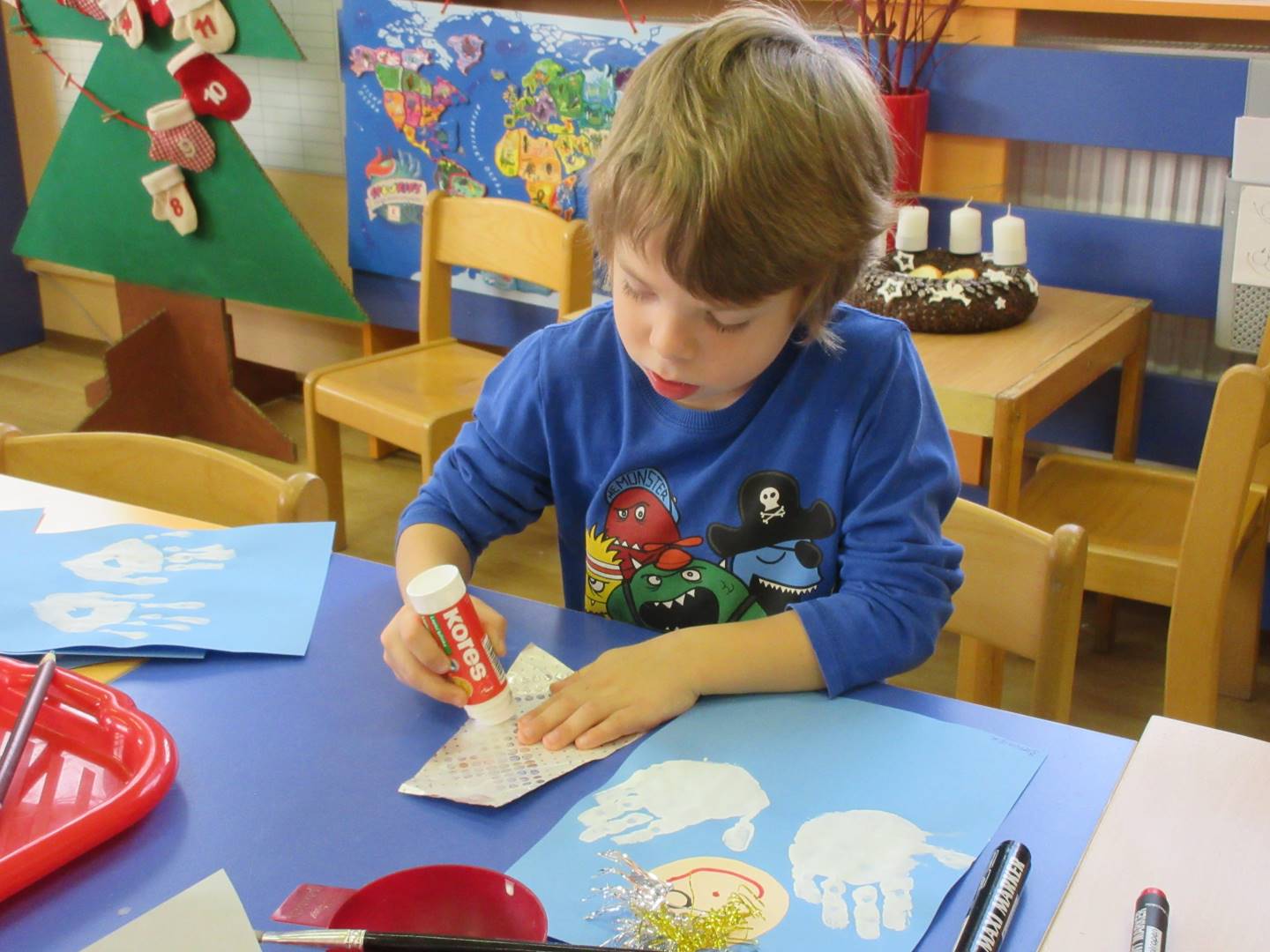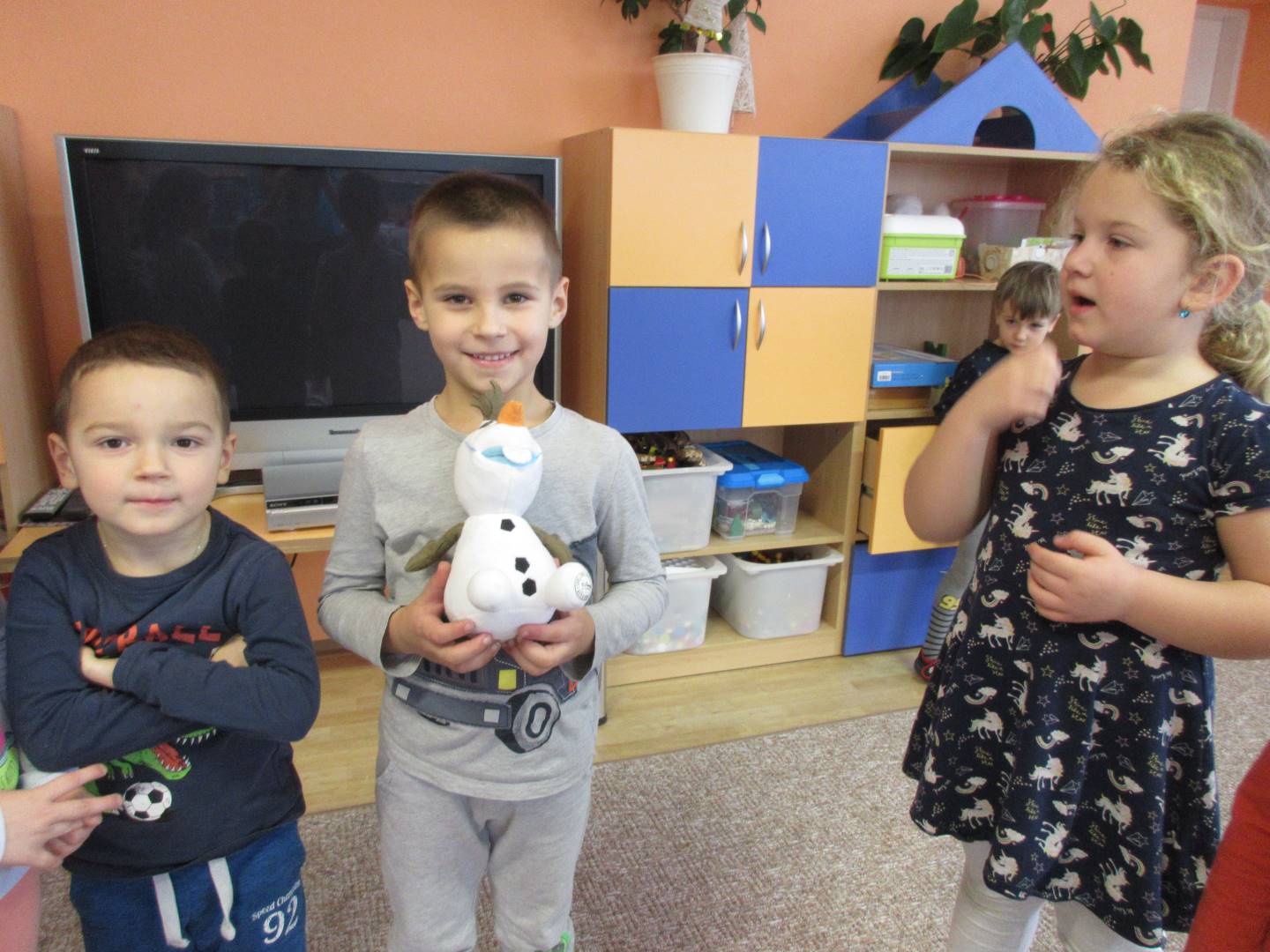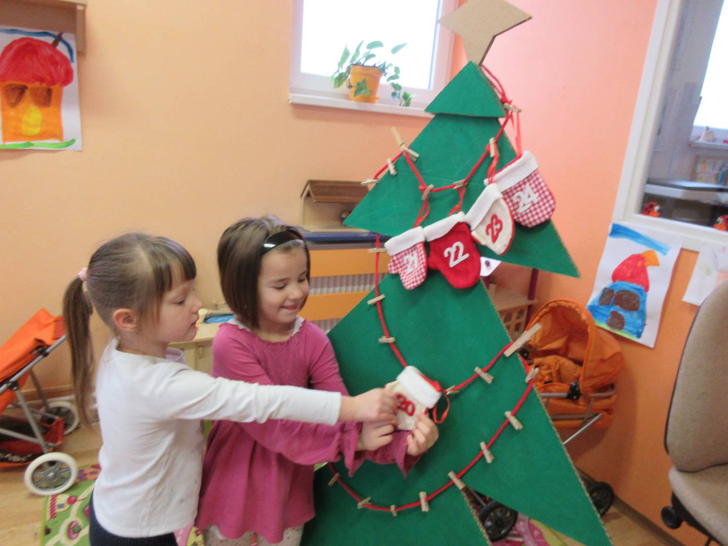 V prosinci jsme se věnovali tématu ,,Vánoční pohádka". Děti ozdobily vánoční stromeček před MŠ. Naučili jsme se nové básničky a písničky pro Mikuláše, který nás navštívil ve třídě a děti odměnil balíčkem. Postupně rozsvěcujeme svíčky na adventním věnci a také plníme úkoly z našeho adventního kalendáře. Vánoční příběh dětem vyprávěla paní Muchová, která jim poutavým způsobem přiblížila narození Ježíška. Vyrobili jsme krásná přáníčka z kapradin, zdobili perníčky a napsali dopis Ježíškovi. Předškoláci si udělali několik pracovních listů a nechybělo ani sportovní vyžití. V tělocvičně jsme se seznámili s novým gymnastickým nářadím RinoGym, které děti velmi zaujalo.