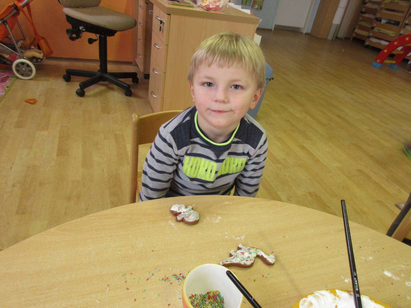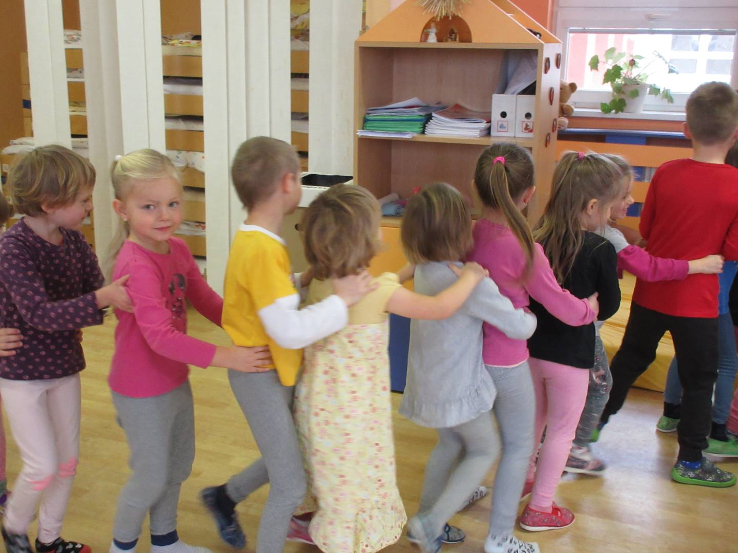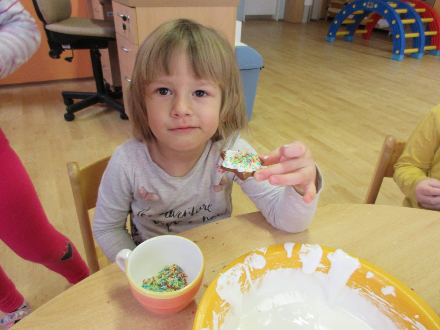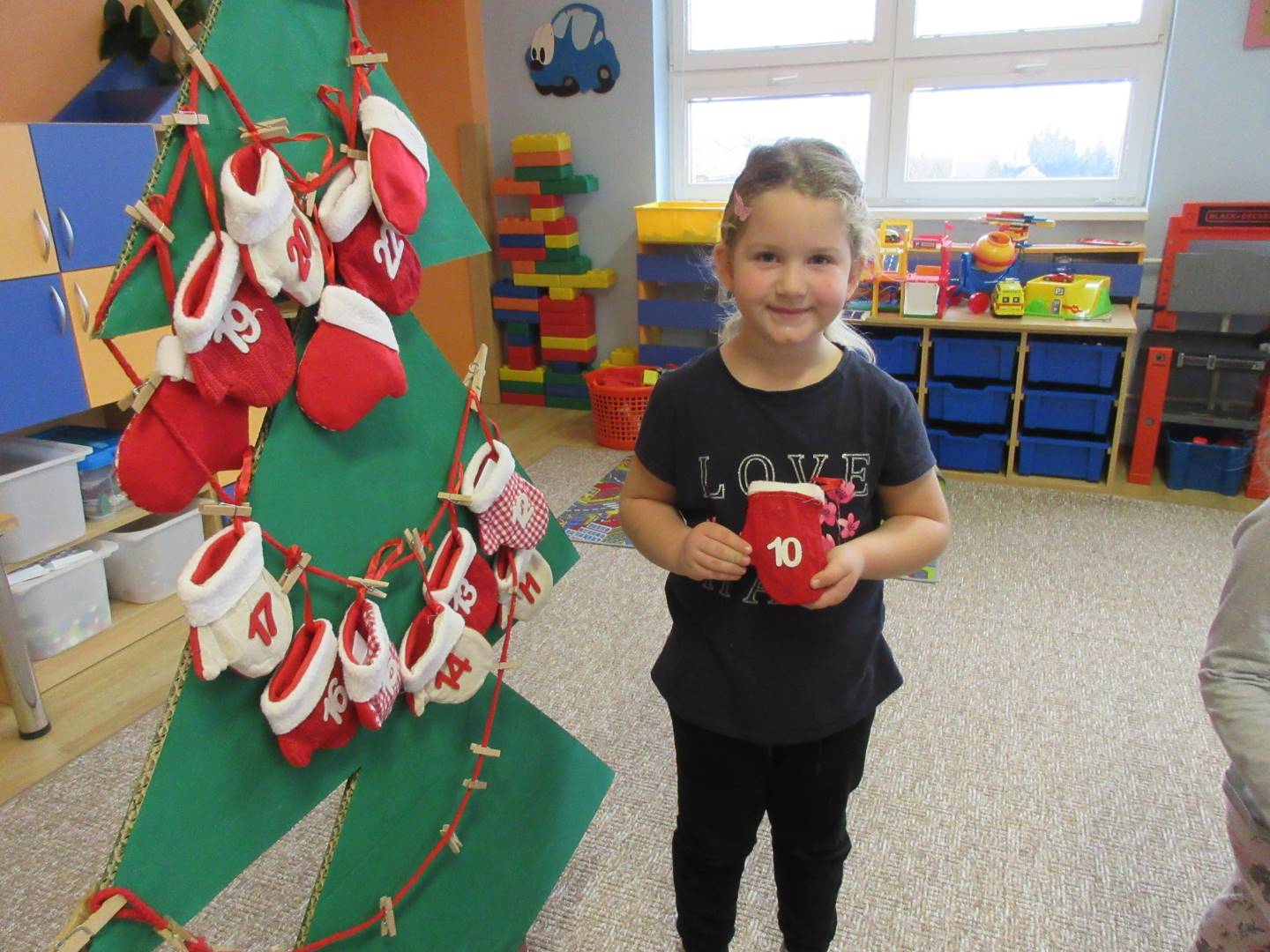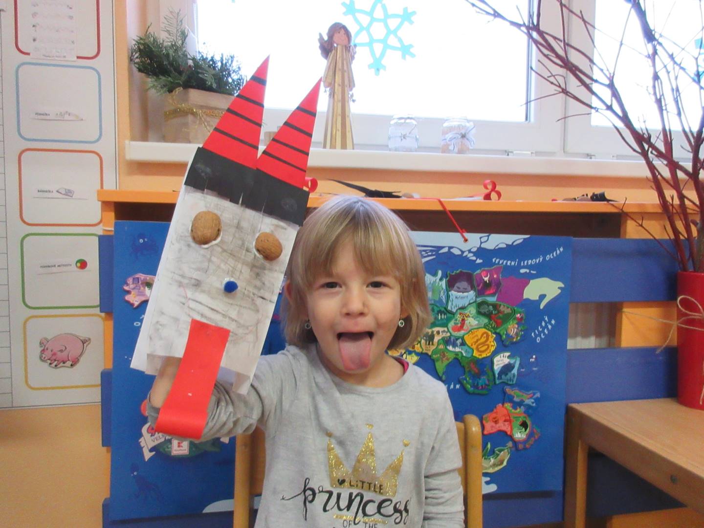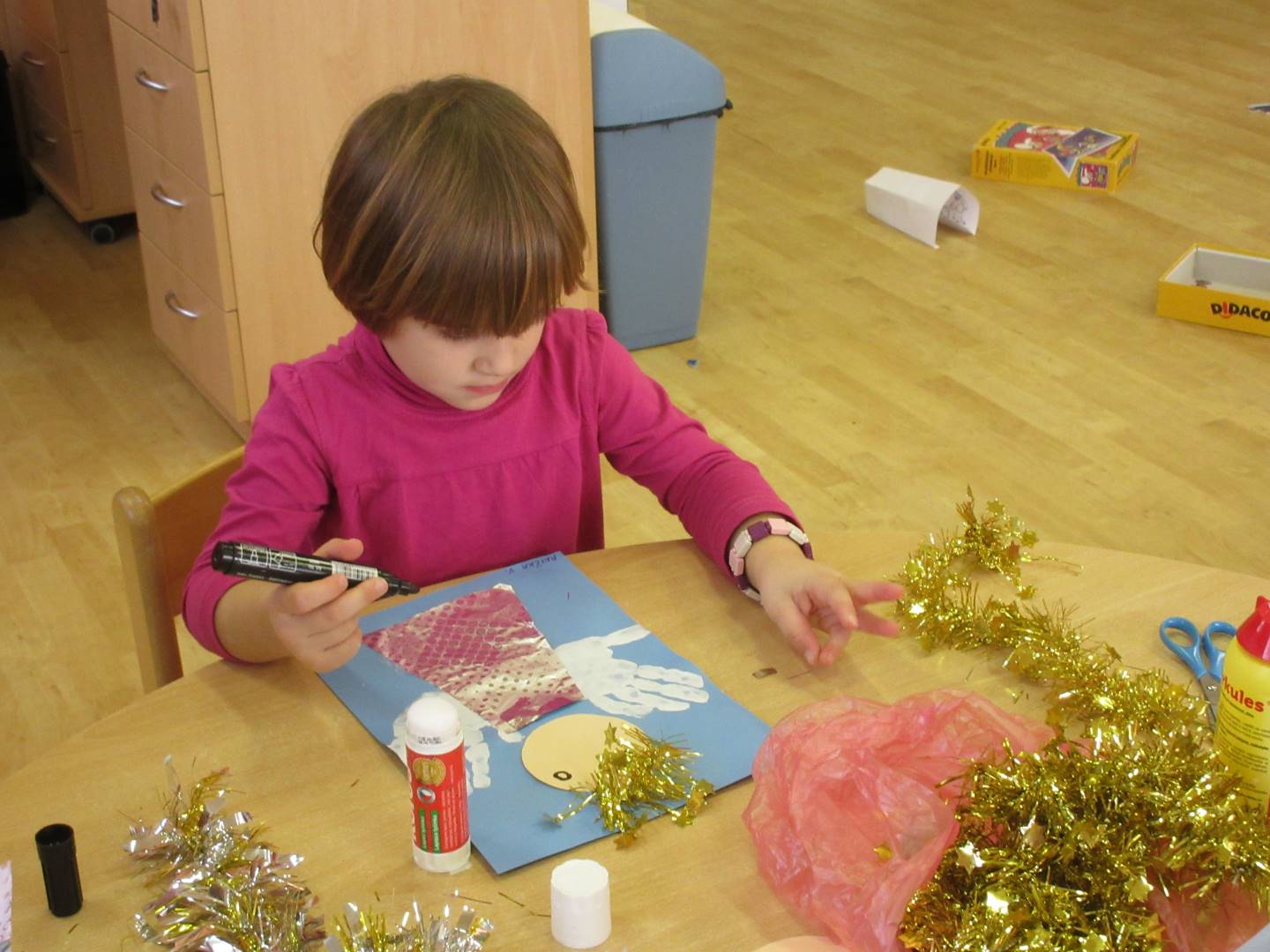 V prosinci jsme se věnovali tématu ,,Vánoční pohádka". Děti ozdobily vánoční stromeček před MŠ. Naučili jsme se nové básničky a písničky pro Mikuláše, který nás navštívil ve třídě a děti odměnil balíčkem. Postupně rozsvěcujeme svíčky na adventním věnci a také plníme úkoly z našeho adventního kalendáře. Vánoční příběh dětem vyprávěla paní Muchová, která jim poutavým způsobem přiblížila narození Ježíška. Vyrobili jsme krásná přáníčka z kapradin, zdobili perníčky a napsali dopis Ježíškovi. Předškoláci si udělali několik pracovních listů a nechybělo ani sportovní vyžití. V tělocvičně jsme se seznámili s novým gymnastickým nářadím RinoGym, které děti velmi zaujalo.