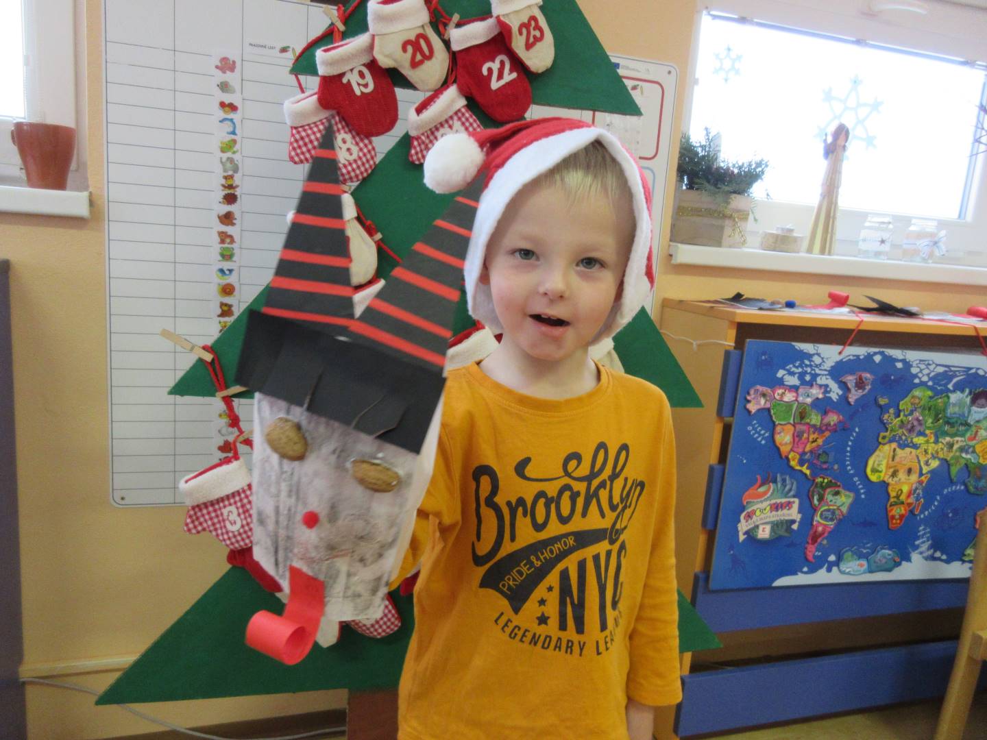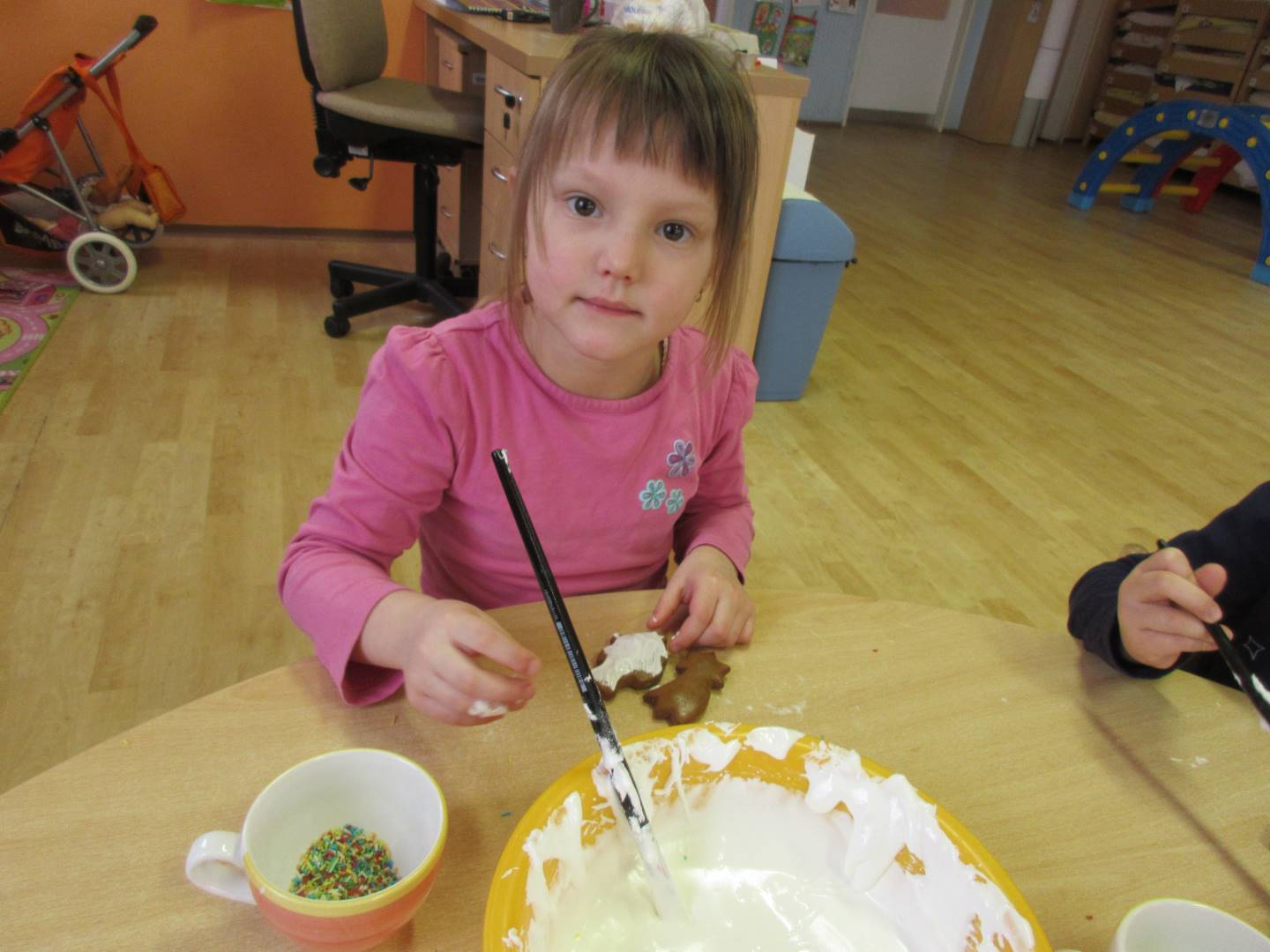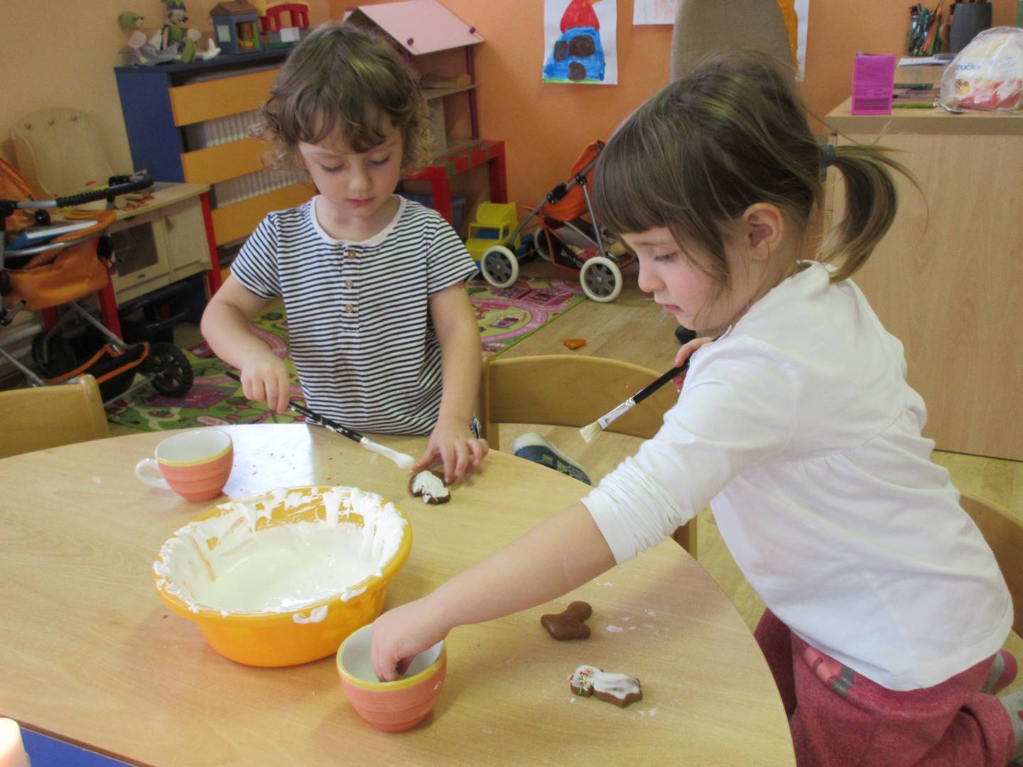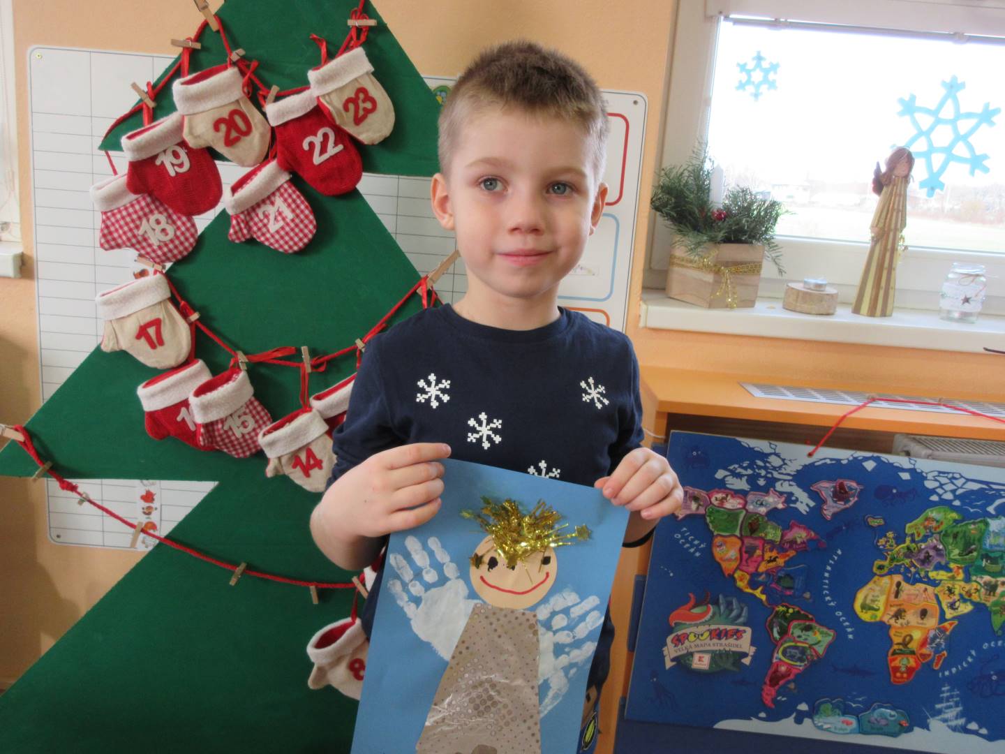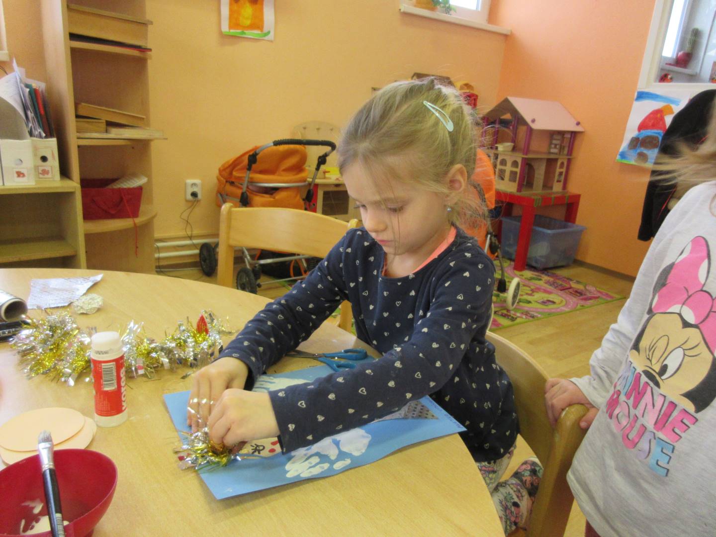 V prosinci jsme se věnovali tématu ,,Vánoční pohádka". Děti ozdobily vánoční stromeček před MŠ. Naučili jsme se nové básničky a písničky pro Mikuláše, který nás navštívil ve třídě a děti odměnil balíčkem. Postupně rozsvěcujeme svíčky na adventním věnci a také plníme úkoly z našeho adventního kalendáře. Vánoční příběh dětem vyprávěla paní Muchová, která jim poutavým způsobem přiblížila narození Ježíška. Vyrobili jsme krásná přáníčka z kapradin, zdobili perníčky a napsali dopis Ježíškovi. Předškoláci si udělali několik pracovních listů a nechybělo ani sportovní vyžití. V tělocvičně jsme se seznámili s novým gymnastickým nářadím RinoGym, které děti velmi zaujalo.