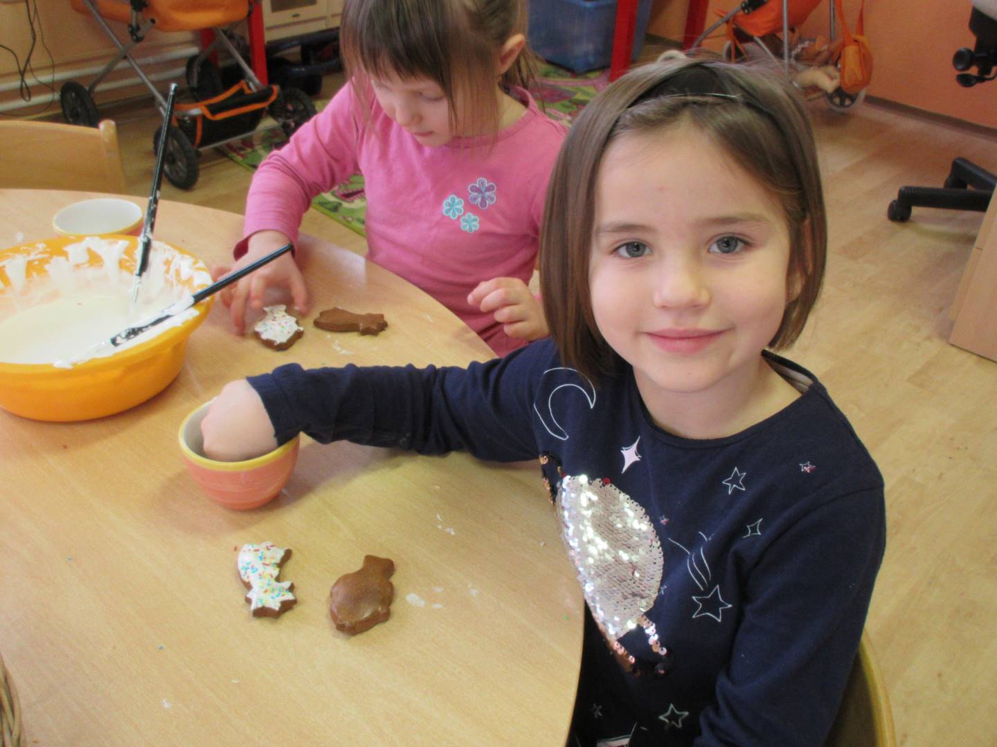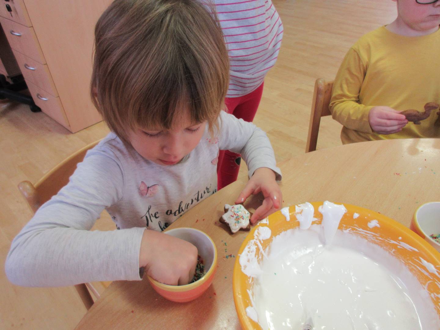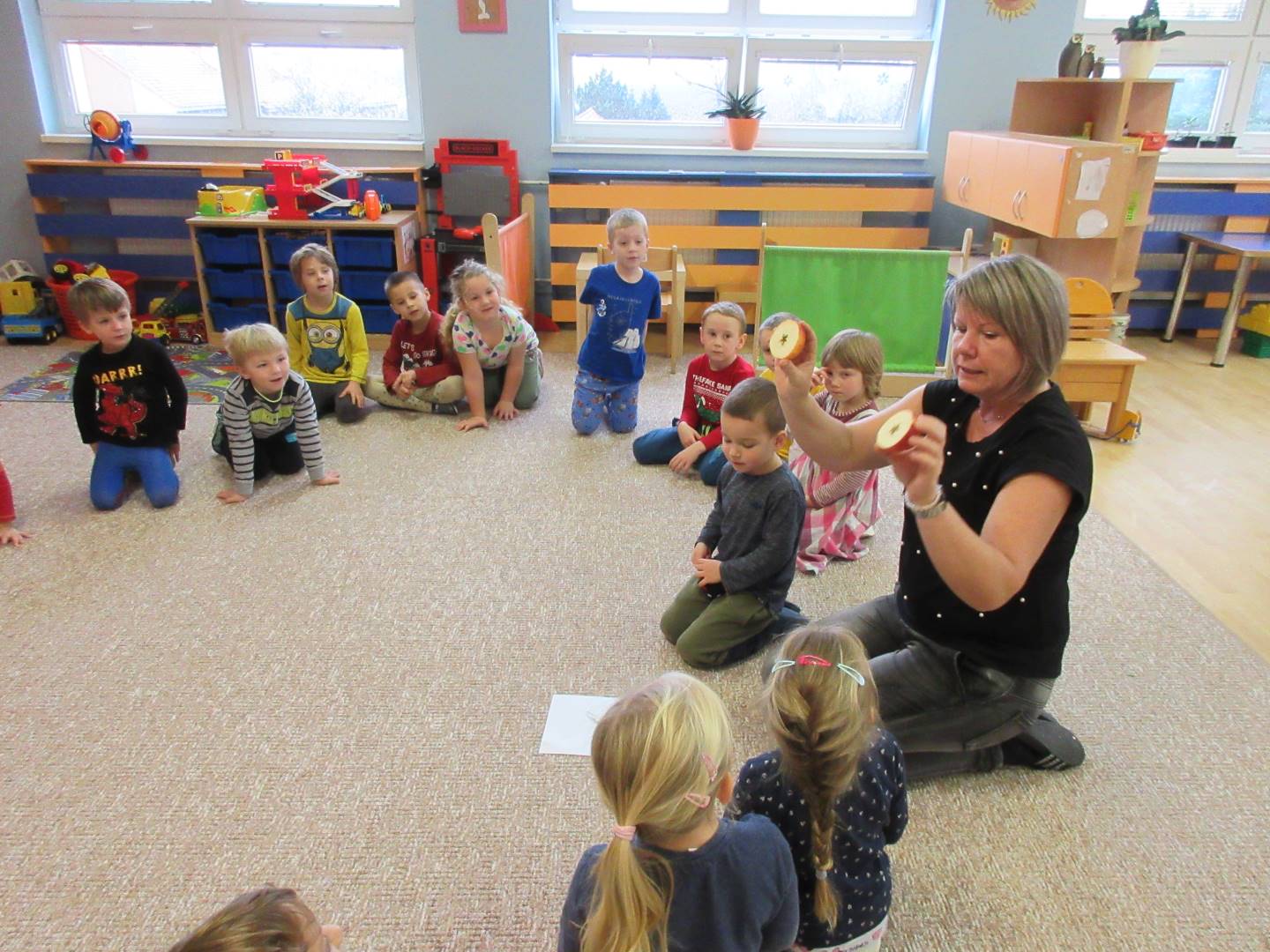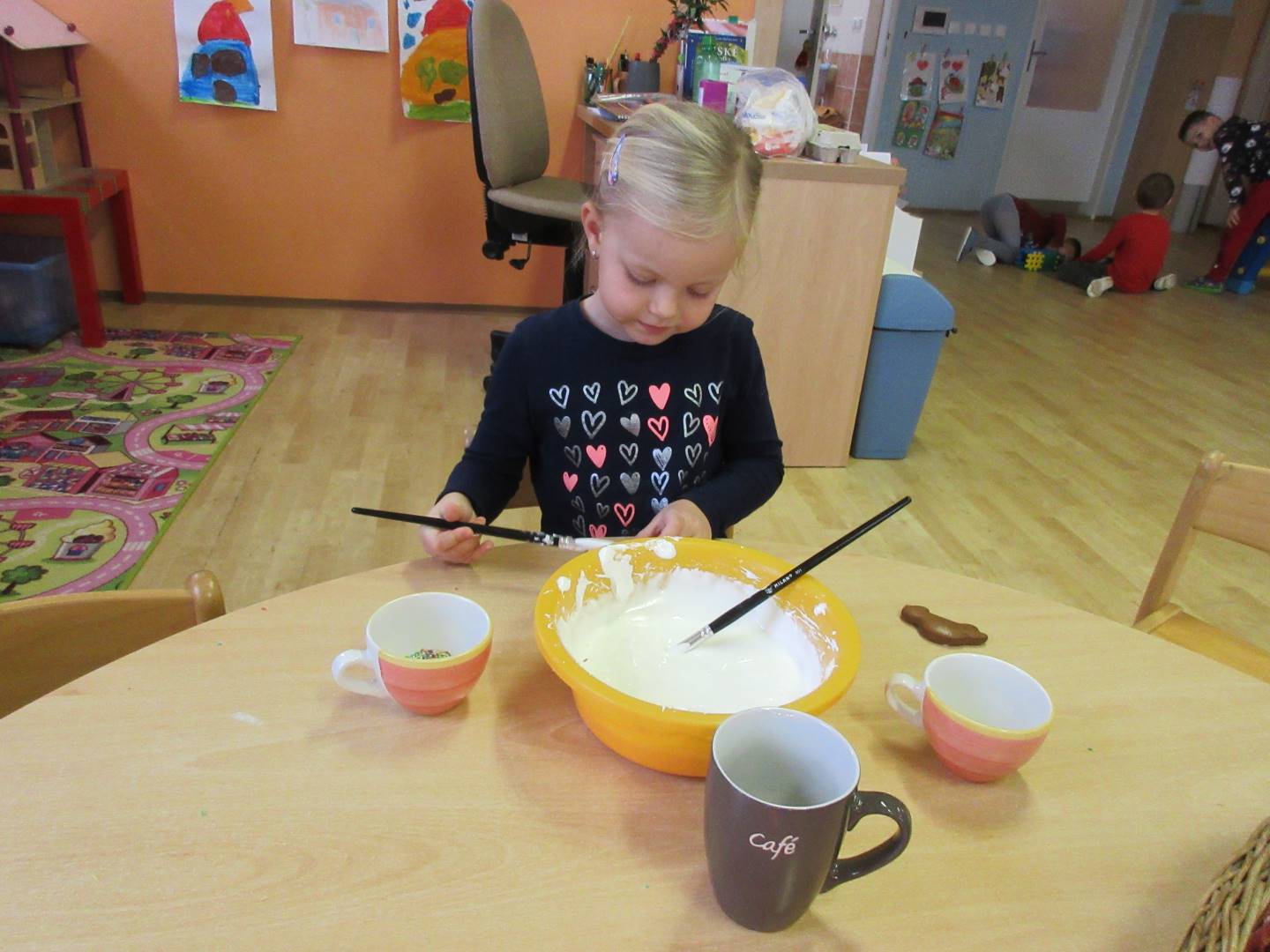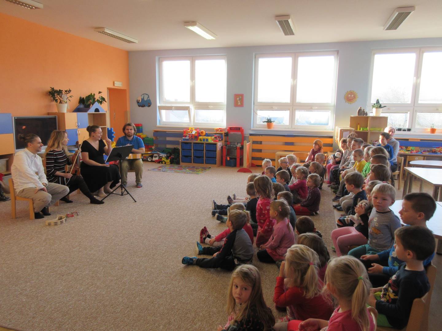 V prosinci jsme se věnovali tématu ,,Vánoční pohádka". Děti ozdobily vánoční stromeček před MŠ. Naučili jsme se nové básničky a písničky pro Mikuláše, který nás navštívil ve třídě a děti odměnil balíčkem. Postupně rozsvěcujeme svíčky na adventním věnci a také plníme úkoly z našeho adventního kalendáře. Vánoční příběh dětem vyprávěla paní Muchová, která jim poutavým způsobem přiblížila narození Ježíška. Vyrobili jsme krásná přáníčka z kapradin, zdobili perníčky a napsali dopis Ježíškovi. Předškoláci si udělali několik pracovních listů a nechybělo ani sportovní vyžití. V tělocvičně jsme se seznámili s novým gymnastickým nářadím RinoGym, které děti velmi zaujalo.