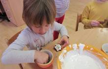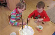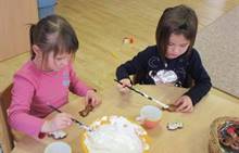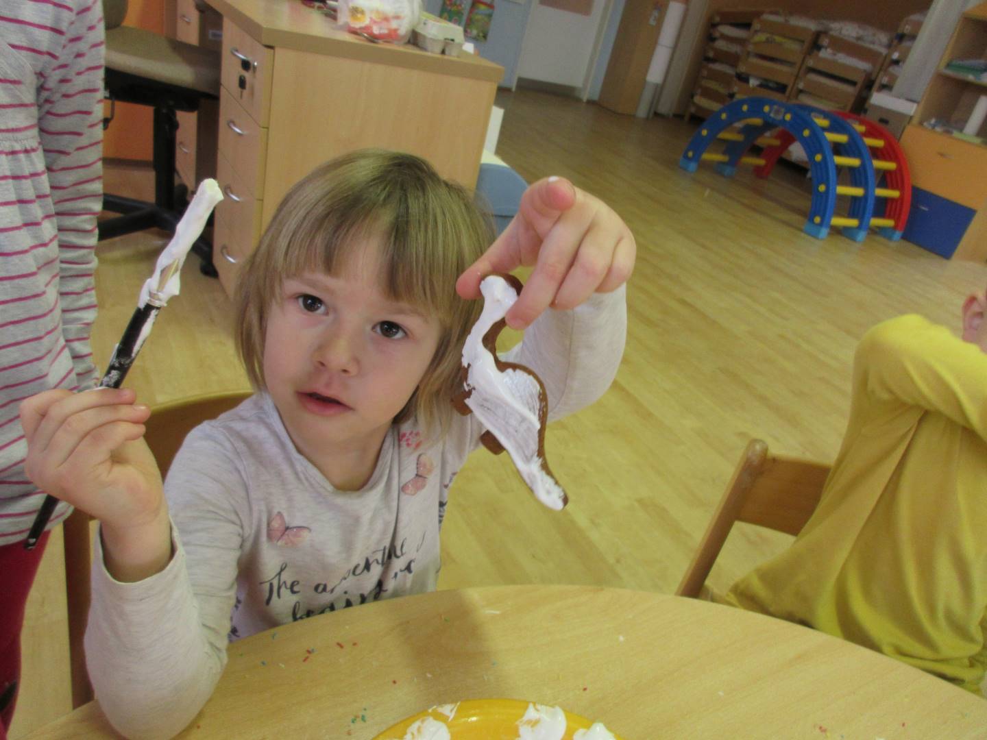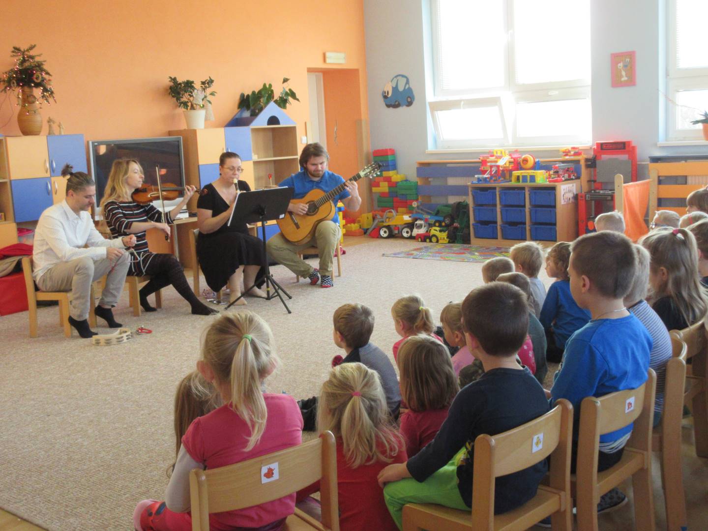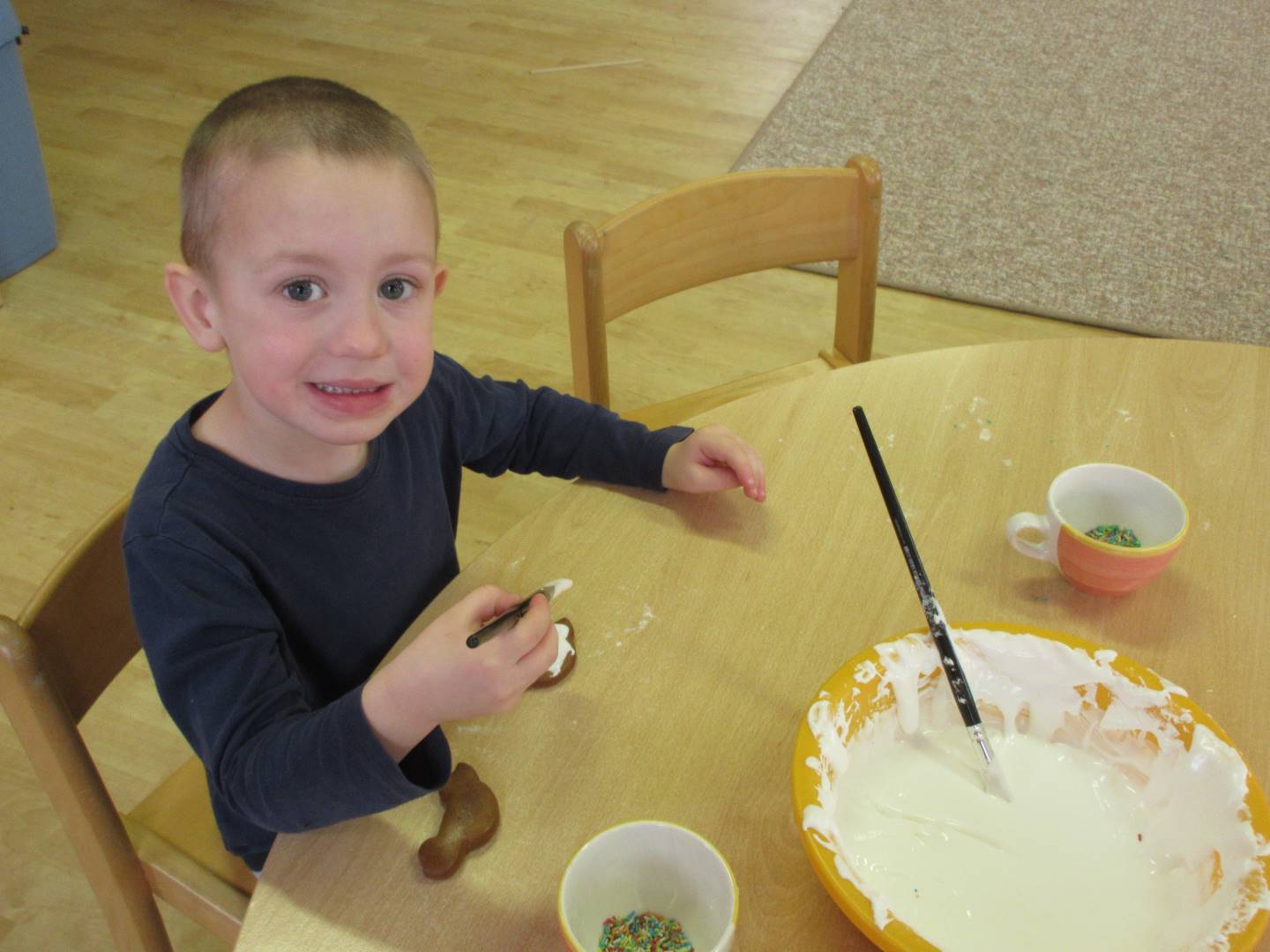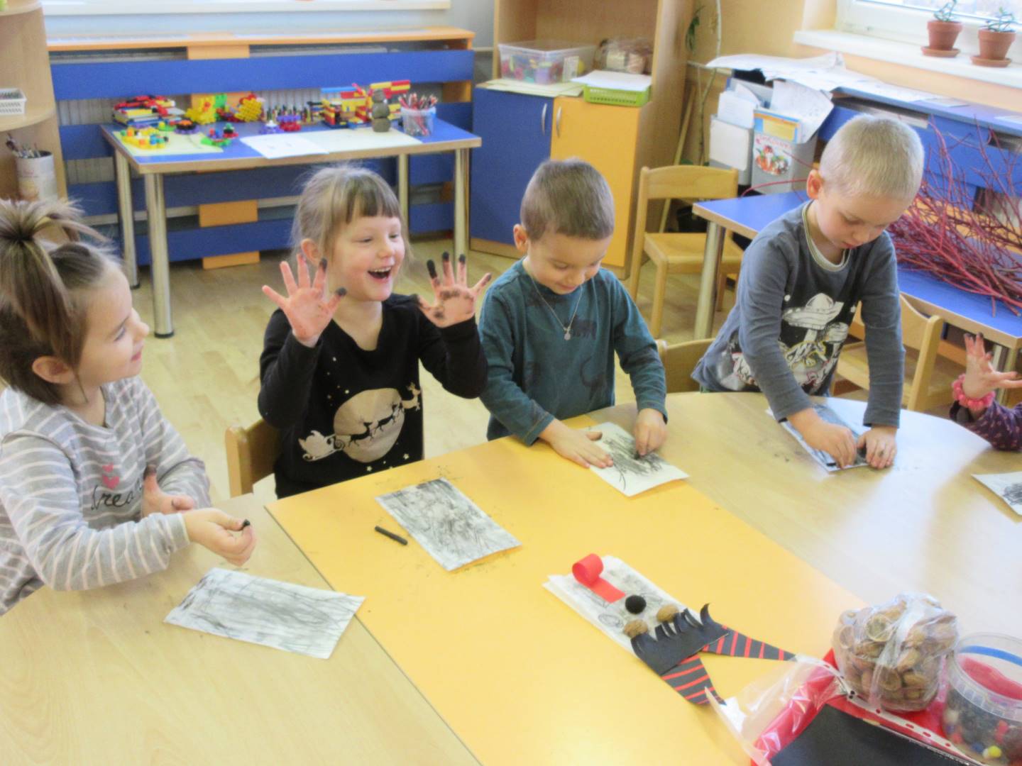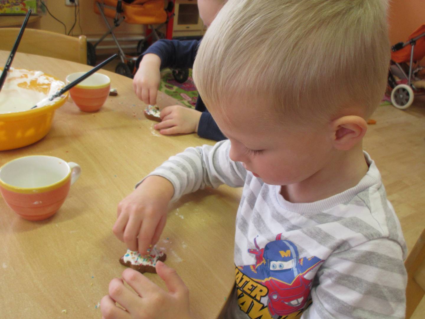 V prosinci jsme se věnovali tématu ,,Vánoční pohádka". Děti ozdobily vánoční stromeček před MŠ. Naučili jsme se nové básničky a písničky pro Mikuláše, který nás navštívil ve třídě a děti odměnil balíčkem. Postupně rozsvěcujeme svíčky na adventním věnci a také plníme úkoly z našeho adventního kalendáře. Vánoční příběh dětem vyprávěla paní Muchová, která jim poutavým způsobem přiblížila narození Ježíška. Vyrobili jsme krásná přáníčka z kapradin, zdobili perníčky a napsali dopis Ježíškovi. Předškoláci si udělali několik pracovních listů a nechybělo ani sportovní vyžití. V tělocvičně jsme se seznámili s novým gymnastickým nářadím RinoGym, které děti velmi zaujalo.