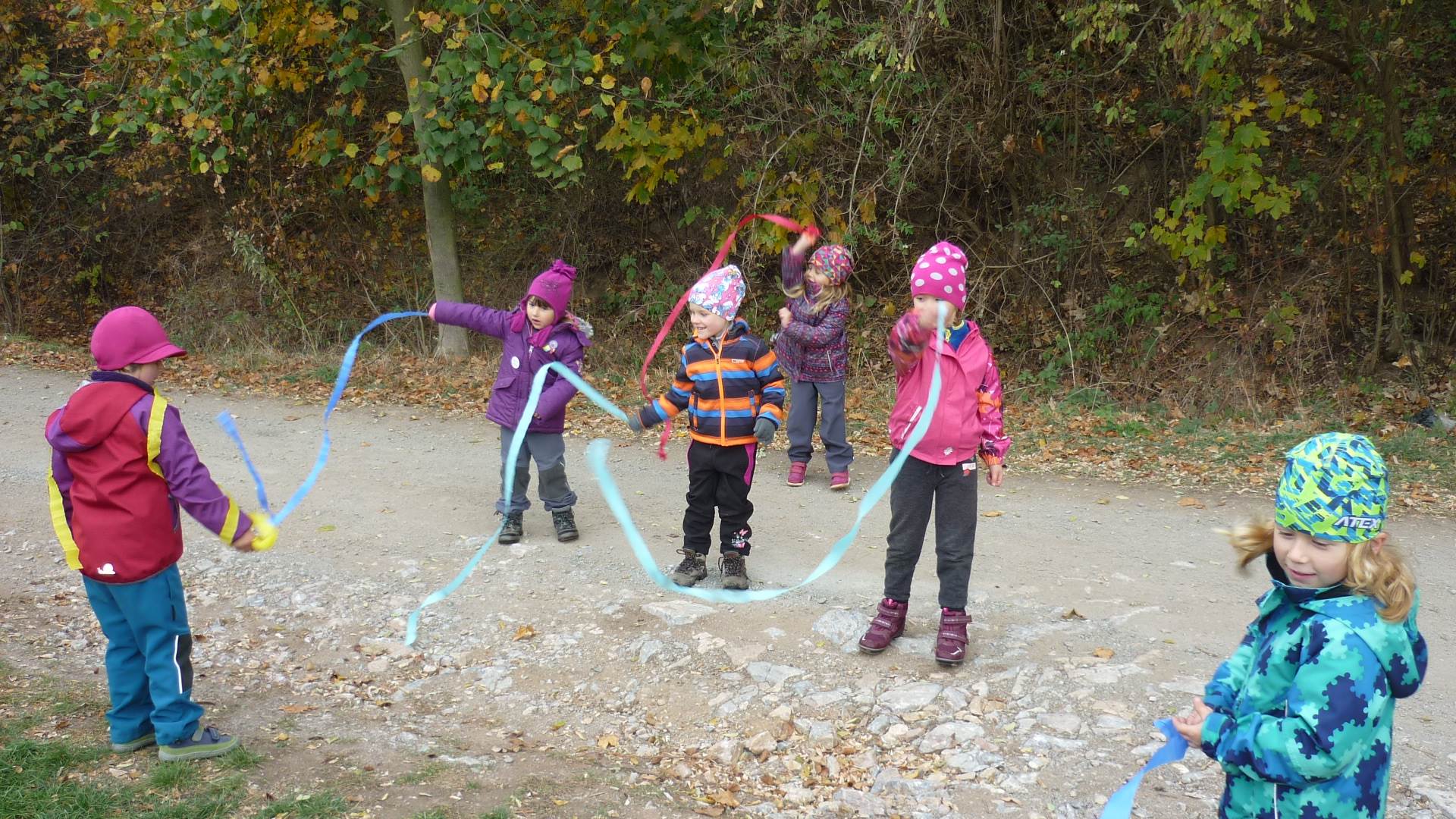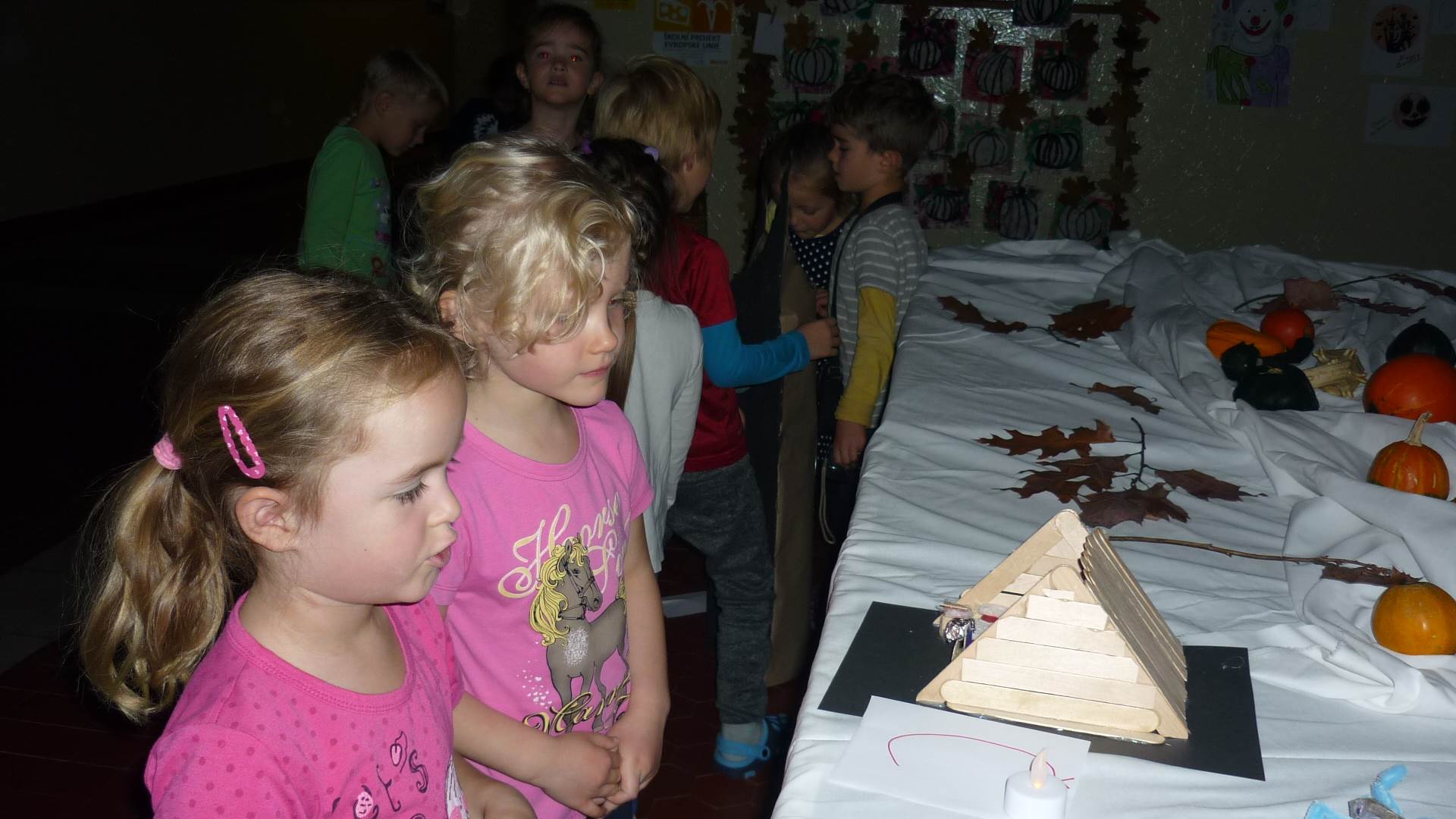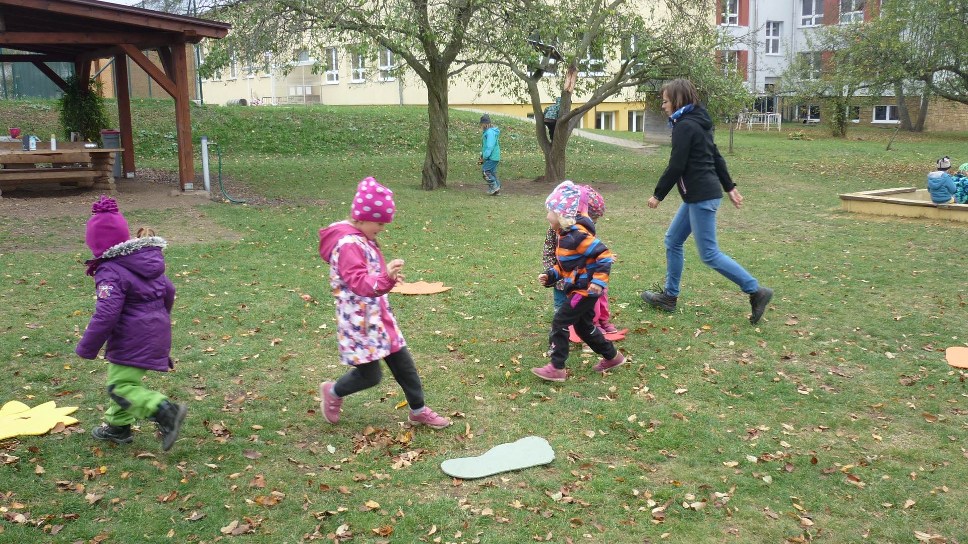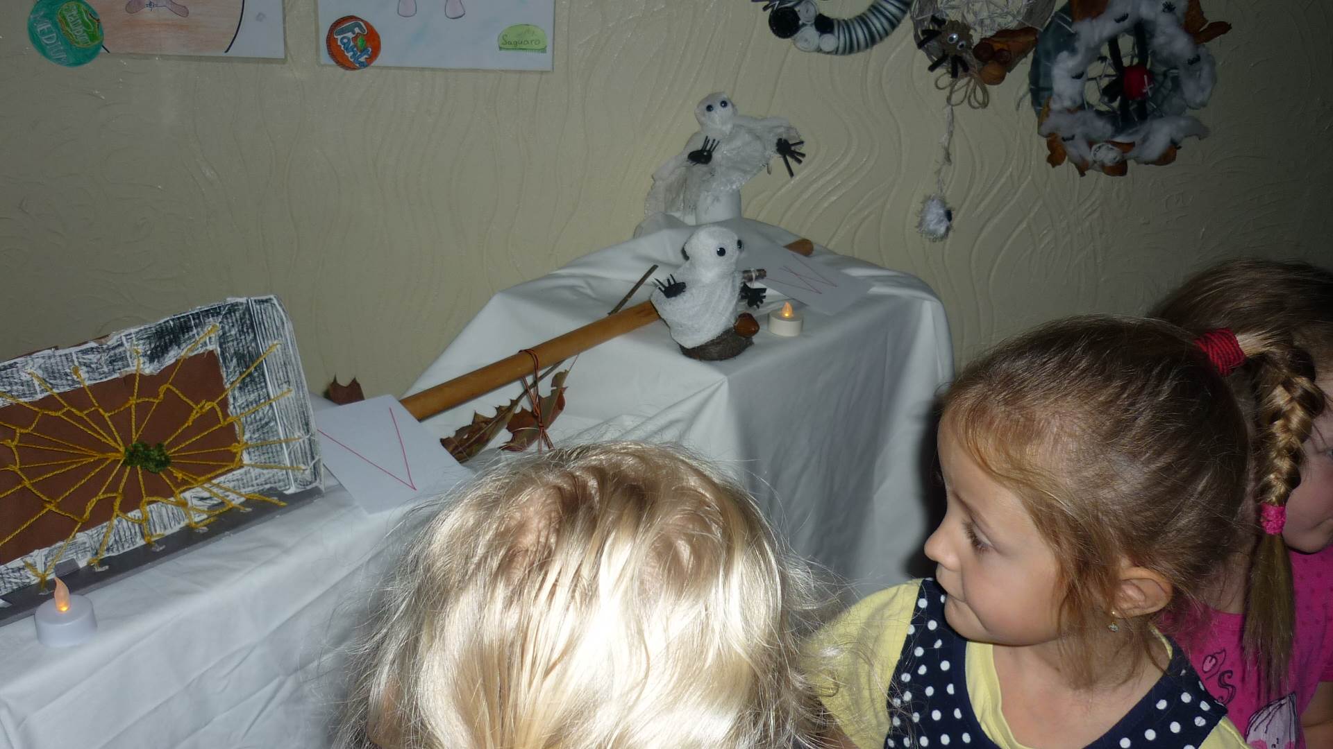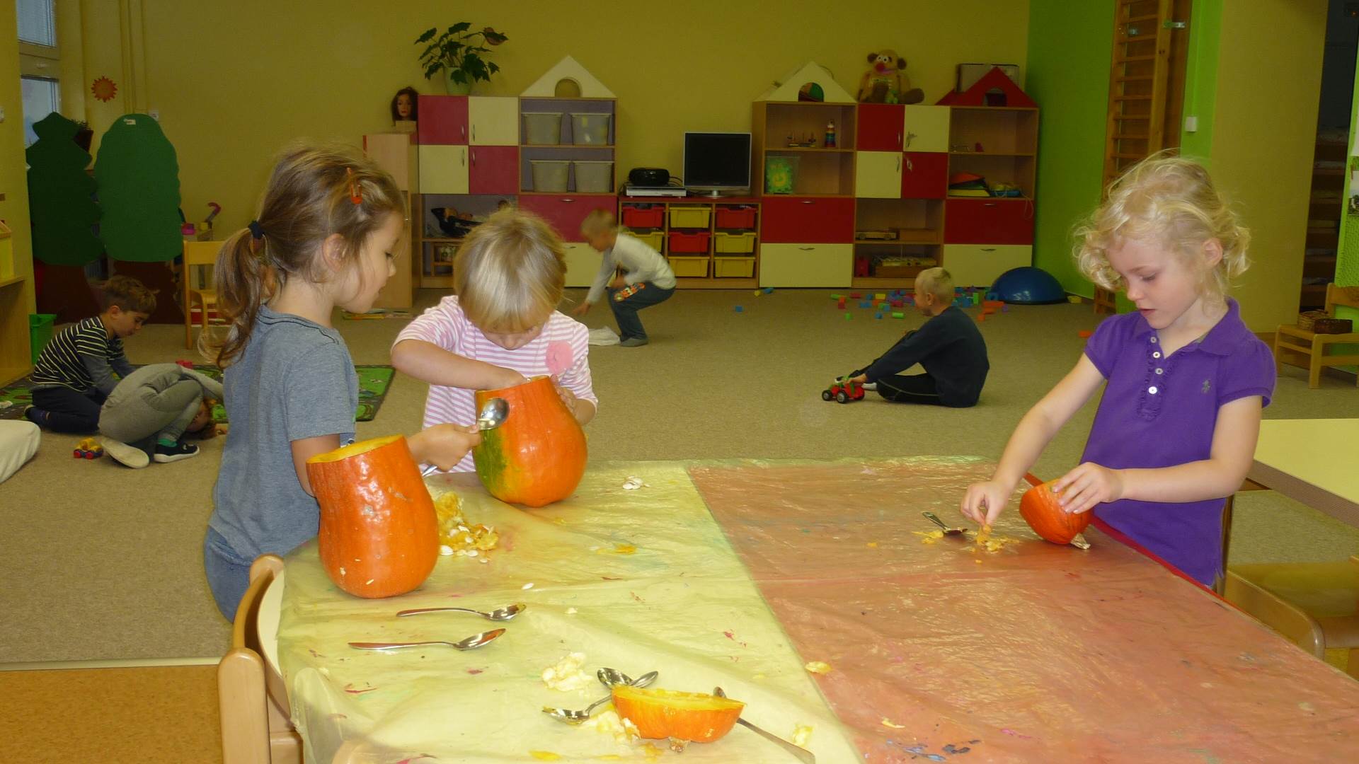 Týden jsme začali výletem do Skalice nad Svitavou. Byli jsme pozvaní do školy, kam teď chodí náš kamarád Elda. Zúčastnili jsme se tu hudebního pořadu Ladovy obrázky. Další den jsme si to už užívali u maringotky. Vyráběli jsme větrný rukáv, papírové draky a hráli si s dračími ocásky. Kluci pak holkám připravili stopovačku. Další den jsme vyráběli postýlku pro broučky a dlabali dýně. Foukal silný vítr, tak jsme šli ven později. Bylo po dešti a ještě mírně poprchávalo, ale alespoň jsme si to užili v kalužích. Povídali jsme si o počasí a napravovali škody napáchané větrem (převrácené vázy a svíčky u kostela). Na počasí jsme si hráli i ve školce a vyráběli jsme pavouky v pavučině. Na školní zahradě jsme pilně pracovali - sbírali jsme jablka a ořechy. V pátek jsme zkoušeli malovat podzimní krajinu a byli se podívat ve škole na výstavu Miss dýně. Venku jsme pak hráli různé hry a kontrolovali, jestli jsme při Uspávání broučků broučky dobře uspali. Zdá se, že ano!