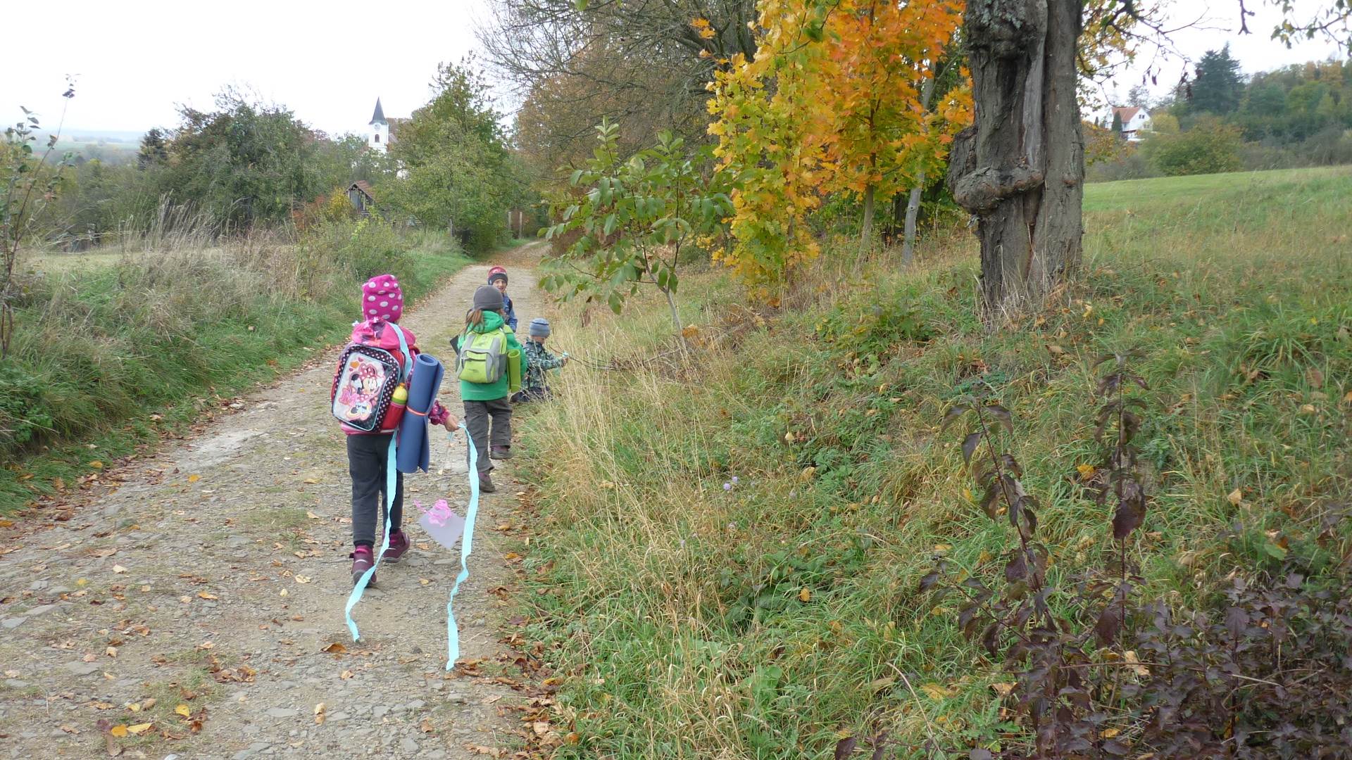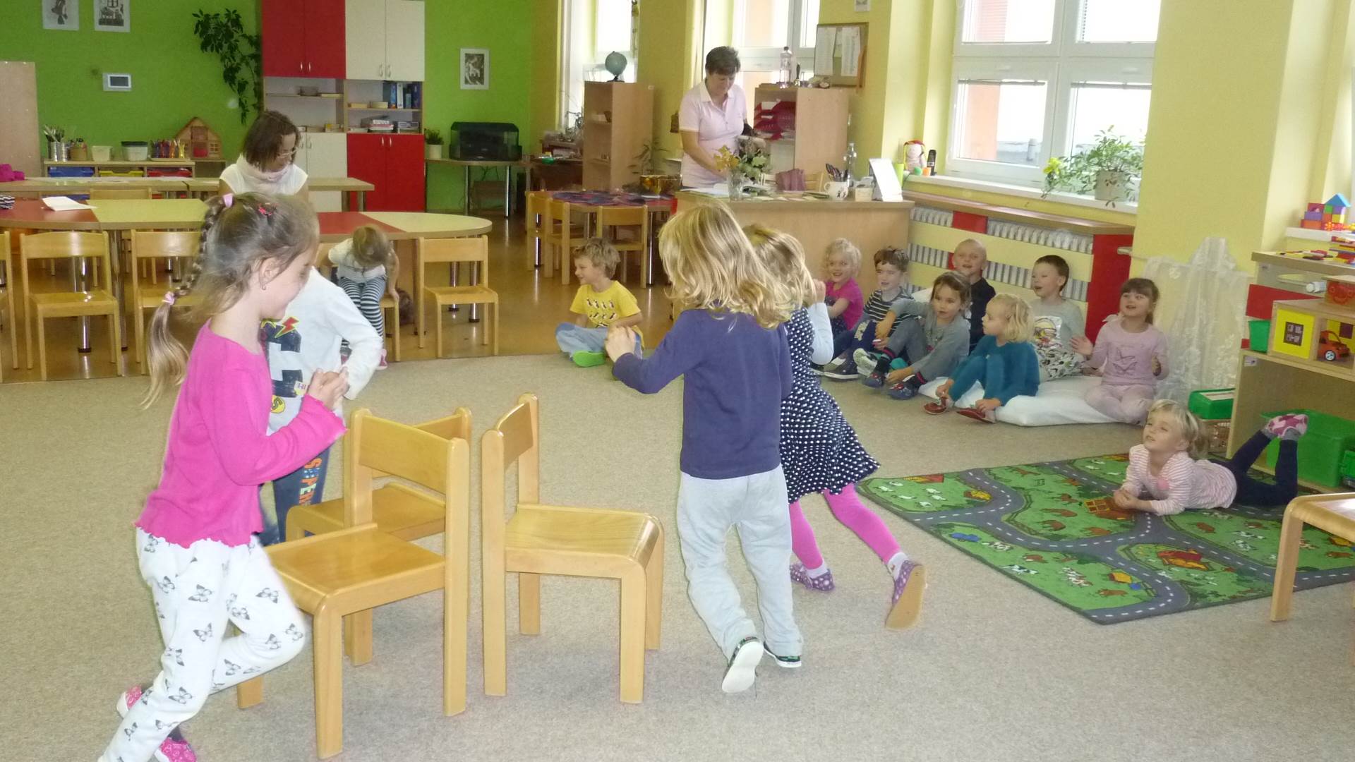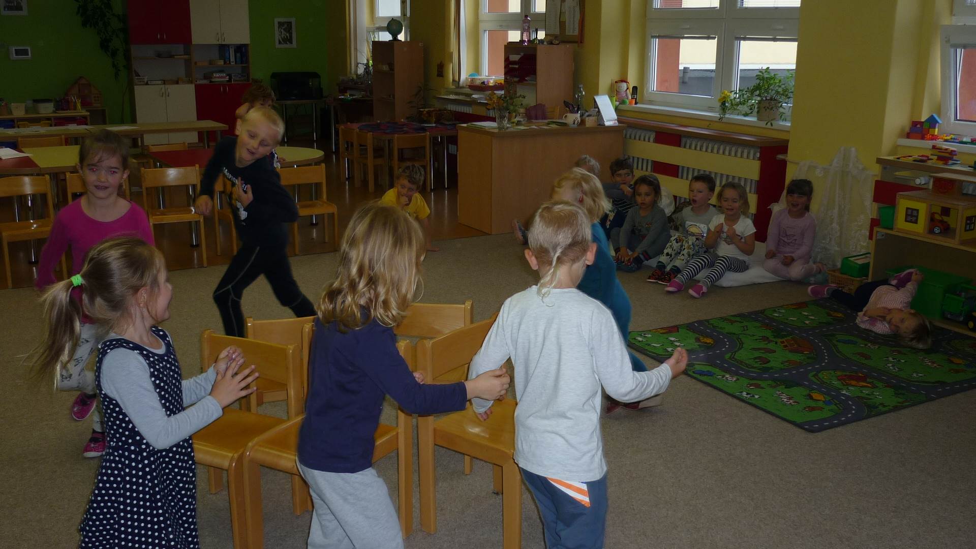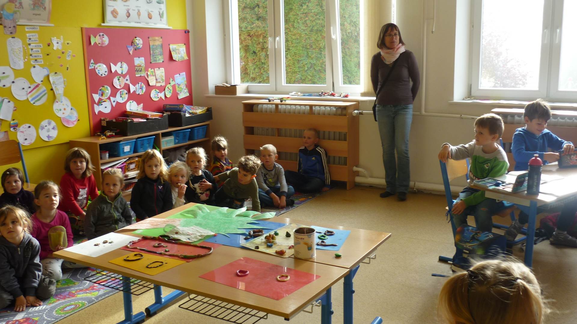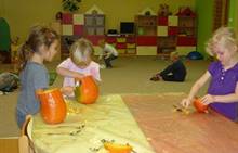 Týden jsme začali výletem do Skalice nad Svitavou. Byli jsme pozvaní do školy, kam teď chodí náš kamarád Elda. Zúčastnili jsme se tu hudebního pořadu Ladovy obrázky. Další den jsme si to už užívali u maringotky. Vyráběli jsme větrný rukáv, papírové draky a hráli si s dračími ocásky. Kluci pak holkám připravili stopovačku. Další den jsme vyráběli postýlku pro broučky a dlabali dýně. Foukal silný vítr, tak jsme šli ven později. Bylo po dešti a ještě mírně poprchávalo, ale alespoň jsme si to užili v kalužích. Povídali jsme si o počasí a napravovali škody napáchané větrem (převrácené vázy a svíčky u kostela). Na počasí jsme si hráli i ve školce a vyráběli jsme pavouky v pavučině. Na školní zahradě jsme pilně pracovali - sbírali jsme jablka a ořechy. V pátek jsme zkoušeli malovat podzimní krajinu a byli se podívat ve škole na výstavu Miss dýně. Venku jsme pak hráli různé hry a kontrolovali, jestli jsme při Uspávání broučků broučky dobře uspali. Zdá se, že ano!