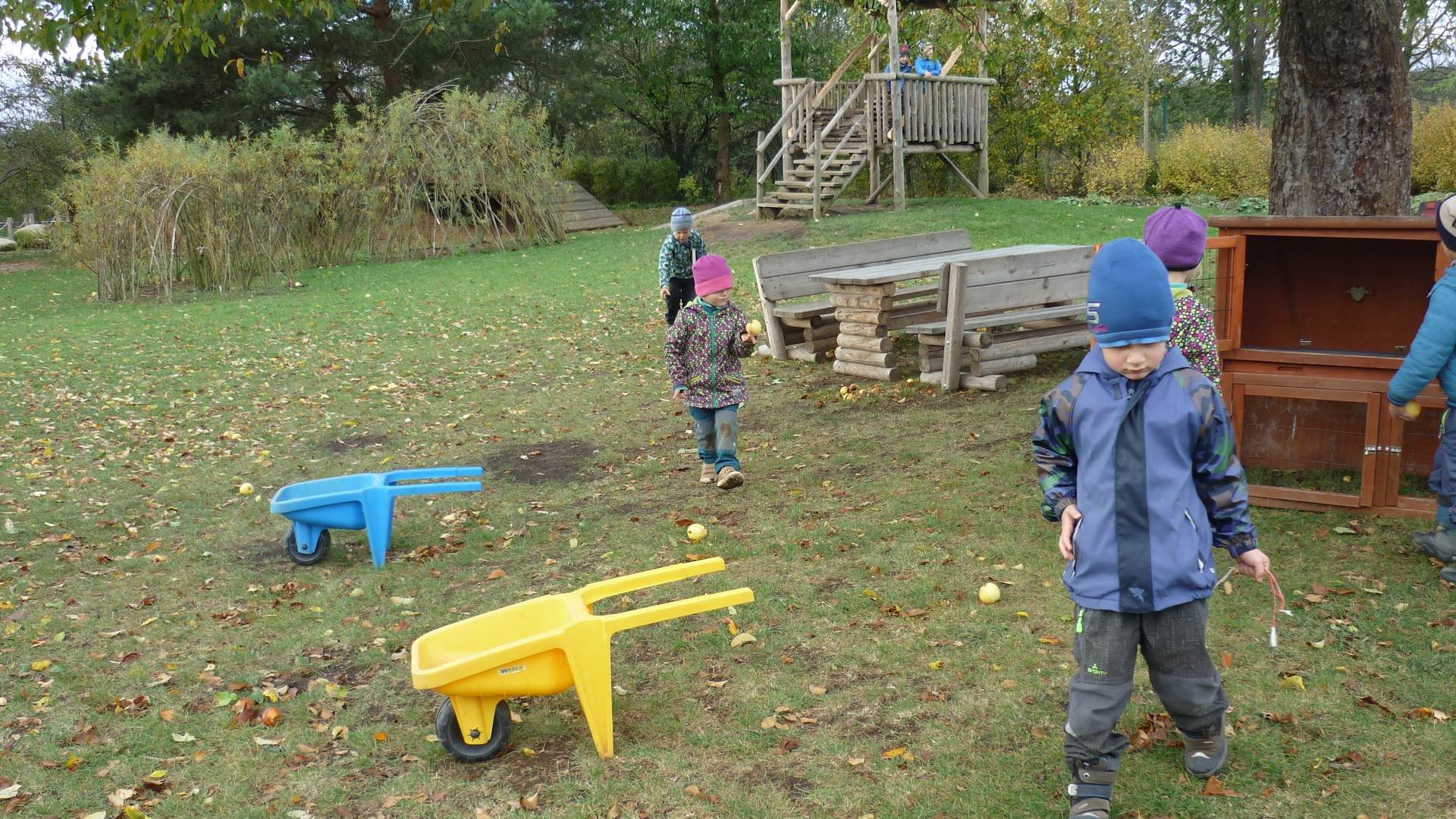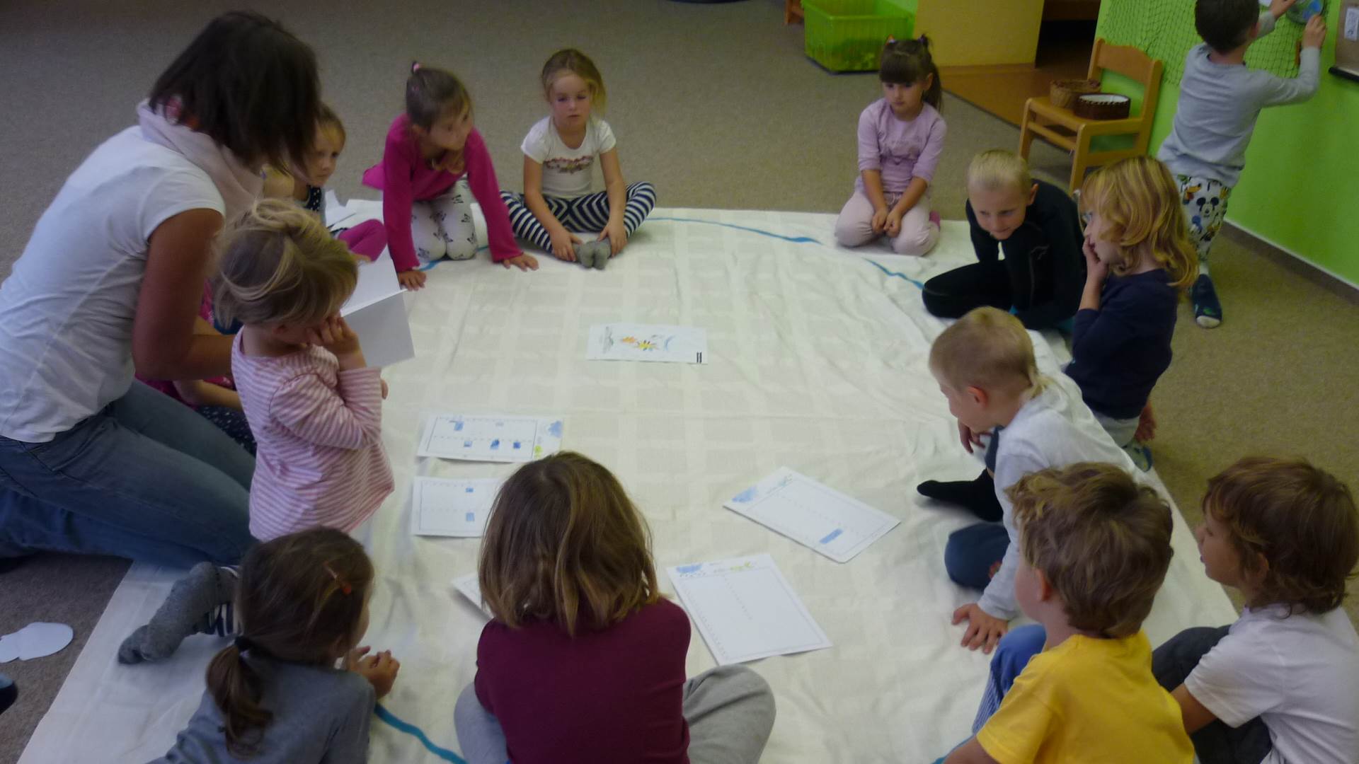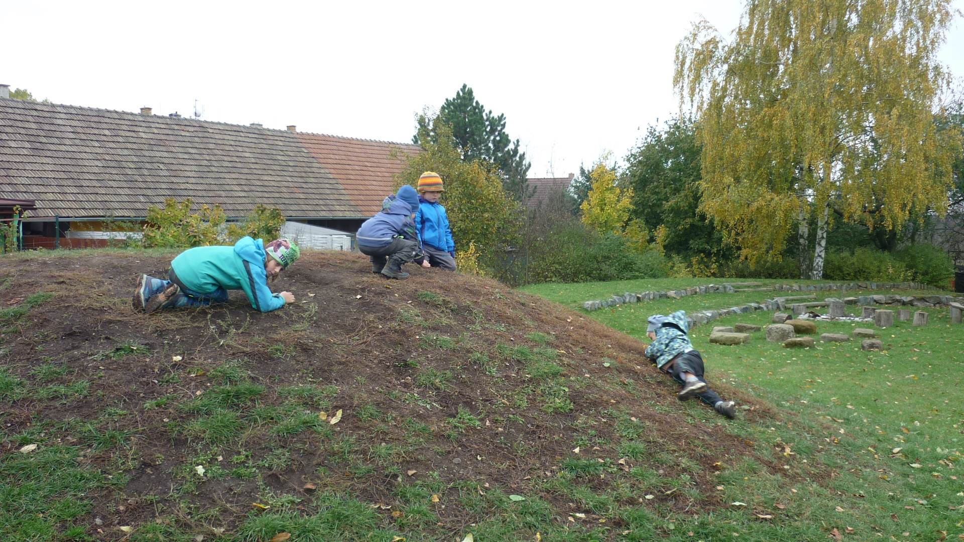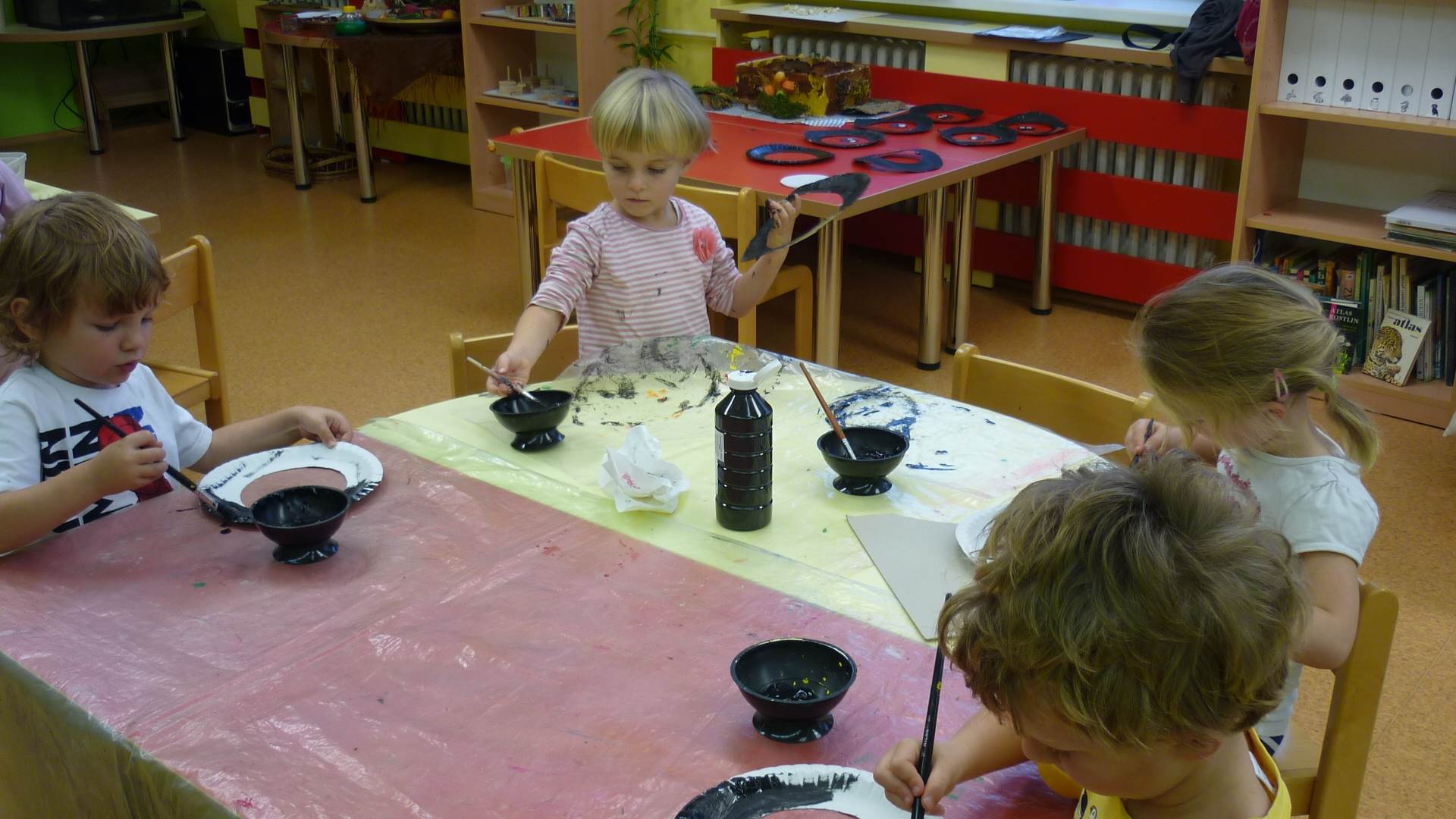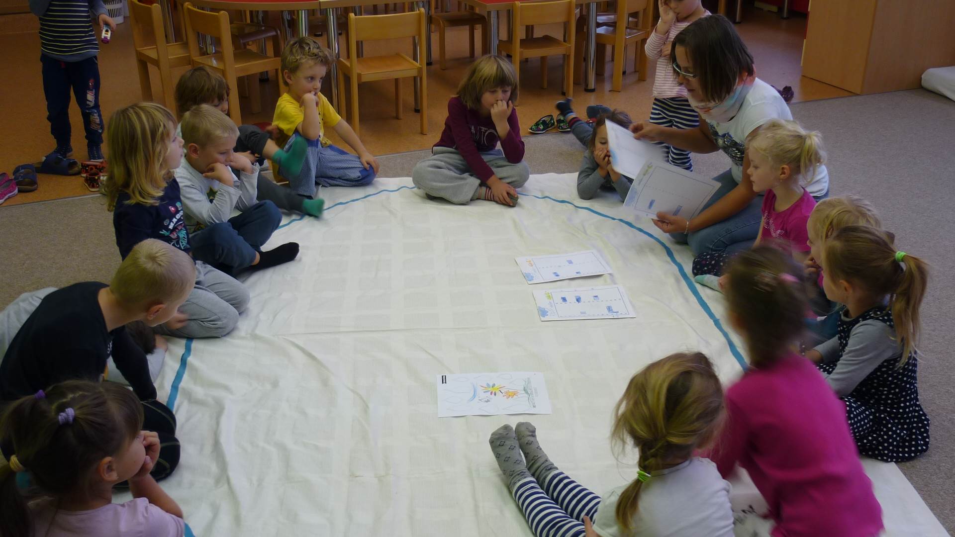 Týden jsme začali výletem do Skalice nad Svitavou. Byli jsme pozvaní do školy, kam teď chodí náš kamarád Elda. Zúčastnili jsme se tu hudebního pořadu Ladovy obrázky. Další den jsme si to už užívali u maringotky. Vyráběli jsme větrný rukáv, papírové draky a hráli si s dračími ocásky. Kluci pak holkám připravili stopovačku. Další den jsme vyráběli postýlku pro broučky a dlabali dýně. Foukal silný vítr, tak jsme šli ven později. Bylo po dešti a ještě mírně poprchávalo, ale alespoň jsme si to užili v kalužích. Povídali jsme si o počasí a napravovali škody napáchané větrem (převrácené vázy a svíčky u kostela). Na počasí jsme si hráli i ve školce a vyráběli jsme pavouky v pavučině. Na školní zahradě jsme pilně pracovali - sbírali jsme jablka a ořechy. V pátek jsme zkoušeli malovat podzimní krajinu a byli se podívat ve škole na výstavu Miss dýně. Venku jsme pak hráli různé hry a kontrolovali, jestli jsme při Uspávání broučků broučky dobře uspali. Zdá se, že ano!