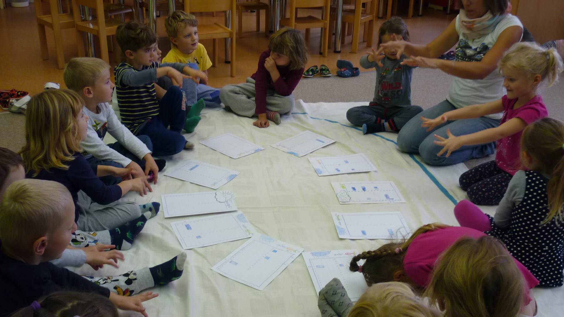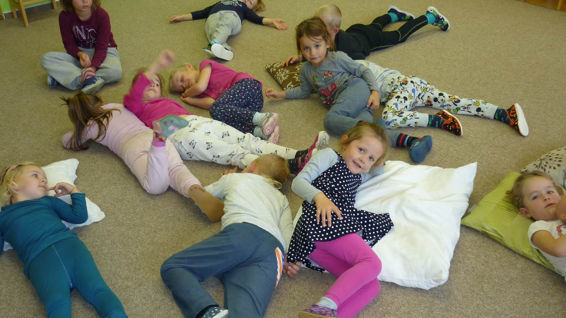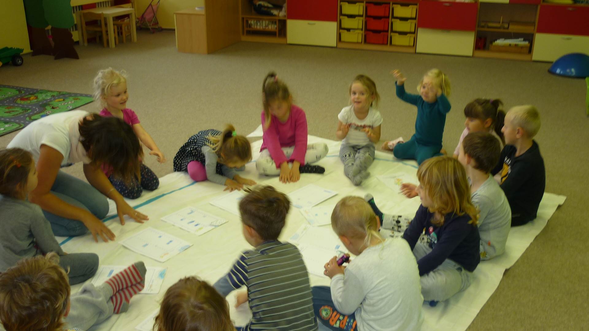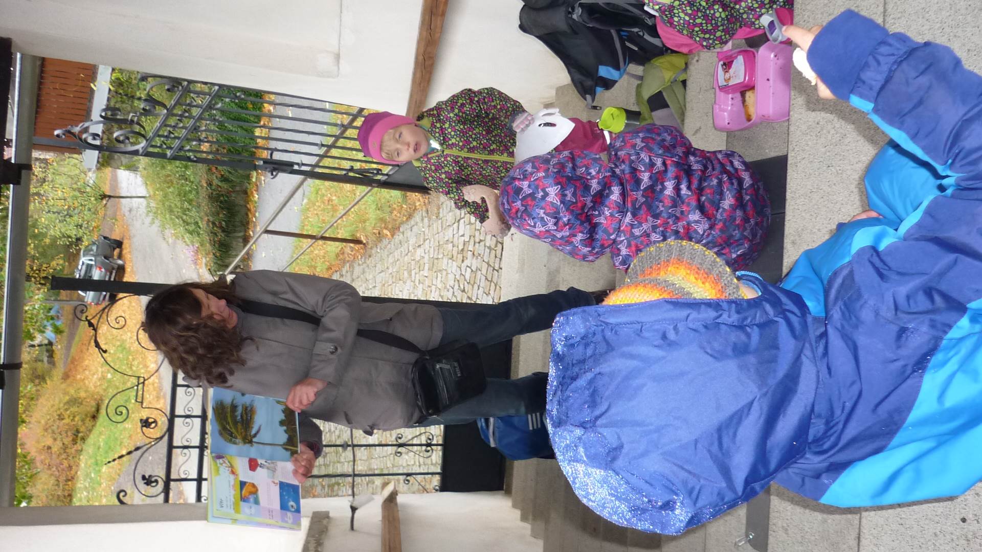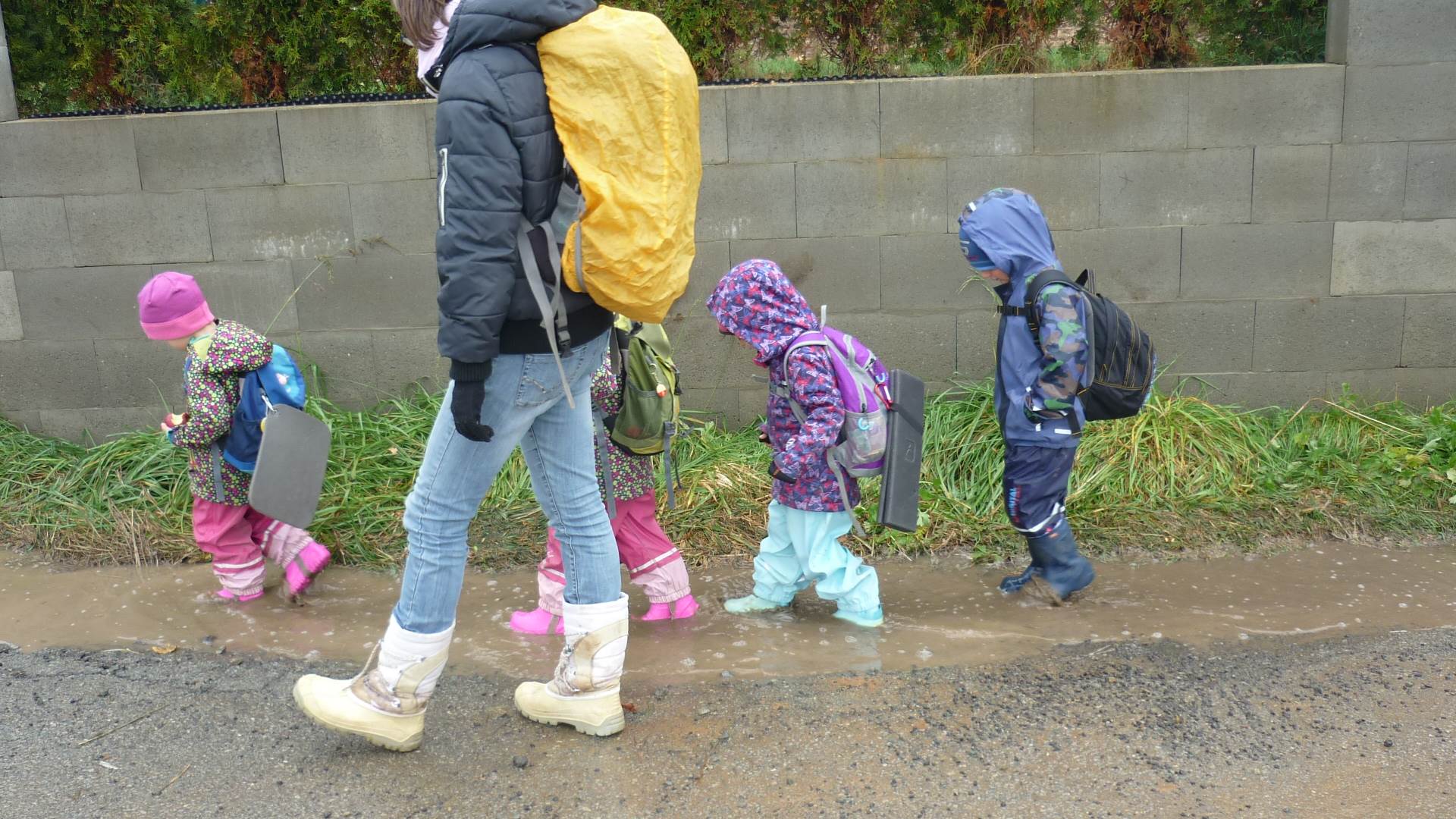 Týden jsme začali výletem do Skalice nad Svitavou. Byli jsme pozvaní do školy, kam teď chodí náš kamarád Elda. Zúčastnili jsme se tu hudebního pořadu Ladovy obrázky. Další den jsme si to už užívali u maringotky. Vyráběli jsme větrný rukáv, papírové draky a hráli si s dračími ocásky. Kluci pak holkám připravili stopovačku. Další den jsme vyráběli postýlku pro broučky a dlabali dýně. Foukal silný vítr, tak jsme šli ven později. Bylo po dešti a ještě mírně poprchávalo, ale alespoň jsme si to užili v kalužích. Povídali jsme si o počasí a napravovali škody napáchané větrem (převrácené vázy a svíčky u kostela). Na počasí jsme si hráli i ve školce a vyráběli jsme pavouky v pavučině. Na školní zahradě jsme pilně pracovali - sbírali jsme jablka a ořechy. V pátek jsme zkoušeli malovat podzimní krajinu a byli se podívat ve škole na výstavu Miss dýně. Venku jsme pak hráli různé hry a kontrolovali, jestli jsme při Uspávání broučků broučky dobře uspali. Zdá se, že ano!