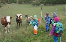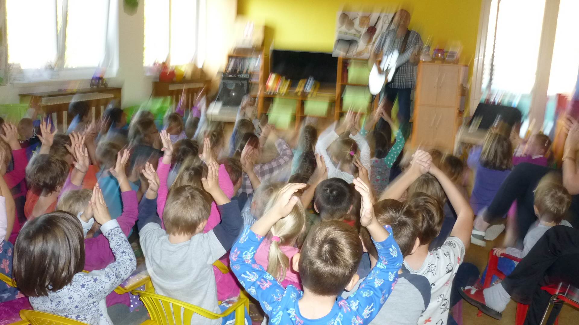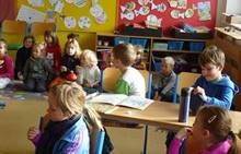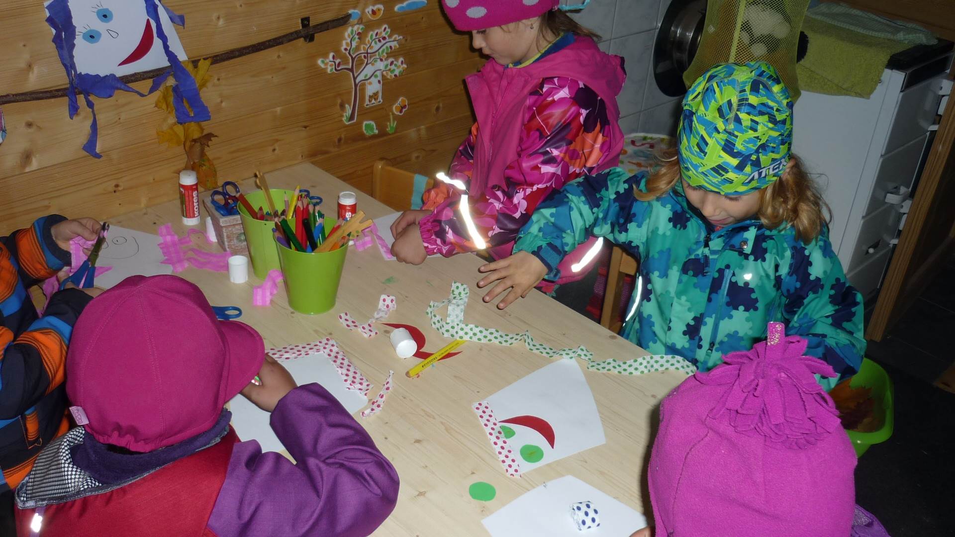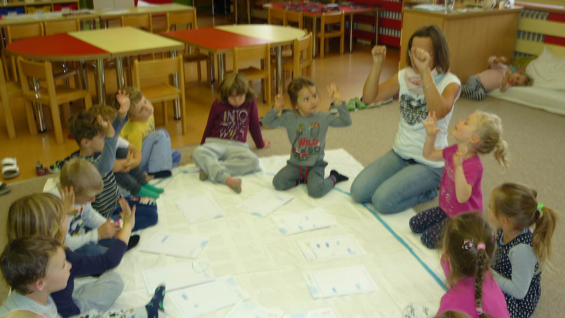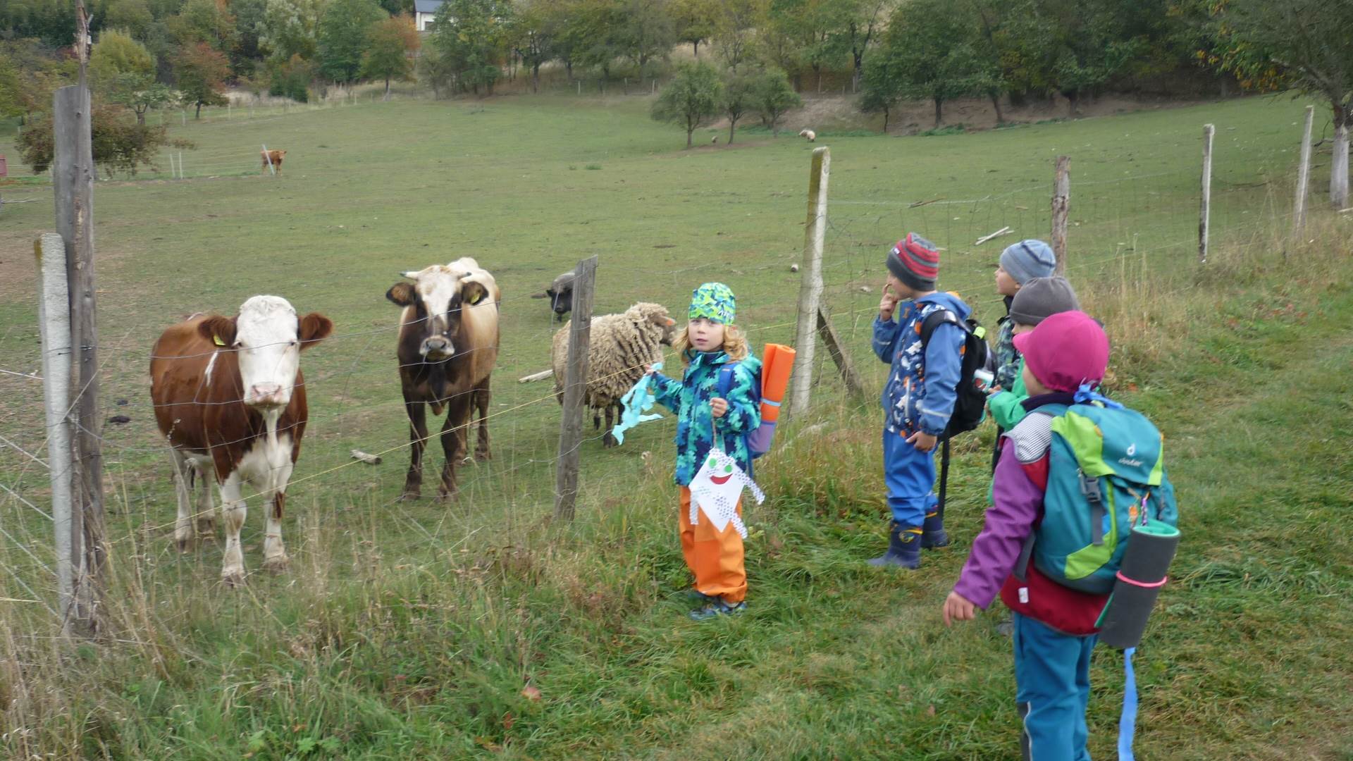 Týden jsme začali výletem do Skalice nad Svitavou. Byli jsme pozvaní do školy, kam teď chodí náš kamarád Elda. Zúčastnili jsme se tu hudebního pořadu Ladovy obrázky. Další den jsme si to už užívali u maringotky. Vyráběli jsme větrný rukáv, papírové draky a hráli si s dračími ocásky. Kluci pak holkám připravili stopovačku. Další den jsme vyráběli postýlku pro broučky a dlabali dýně. Foukal silný vítr, tak jsme šli ven později. Bylo po dešti a ještě mírně poprchávalo, ale alespoň jsme si to užili v kalužích. Povídali jsme si o počasí a napravovali škody napáchané větrem (převrácené vázy a svíčky u kostela). Na počasí jsme si hráli i ve školce a vyráběli jsme pavouky v pavučině. Na školní zahradě jsme pilně pracovali - sbírali jsme jablka a ořechy. V pátek jsme zkoušeli malovat podzimní krajinu a byli se podívat ve škole na výstavu Miss dýně. Venku jsme pak hráli různé hry a kontrolovali, jestli jsme při Uspávání broučků broučky dobře uspali. Zdá se, že ano!
