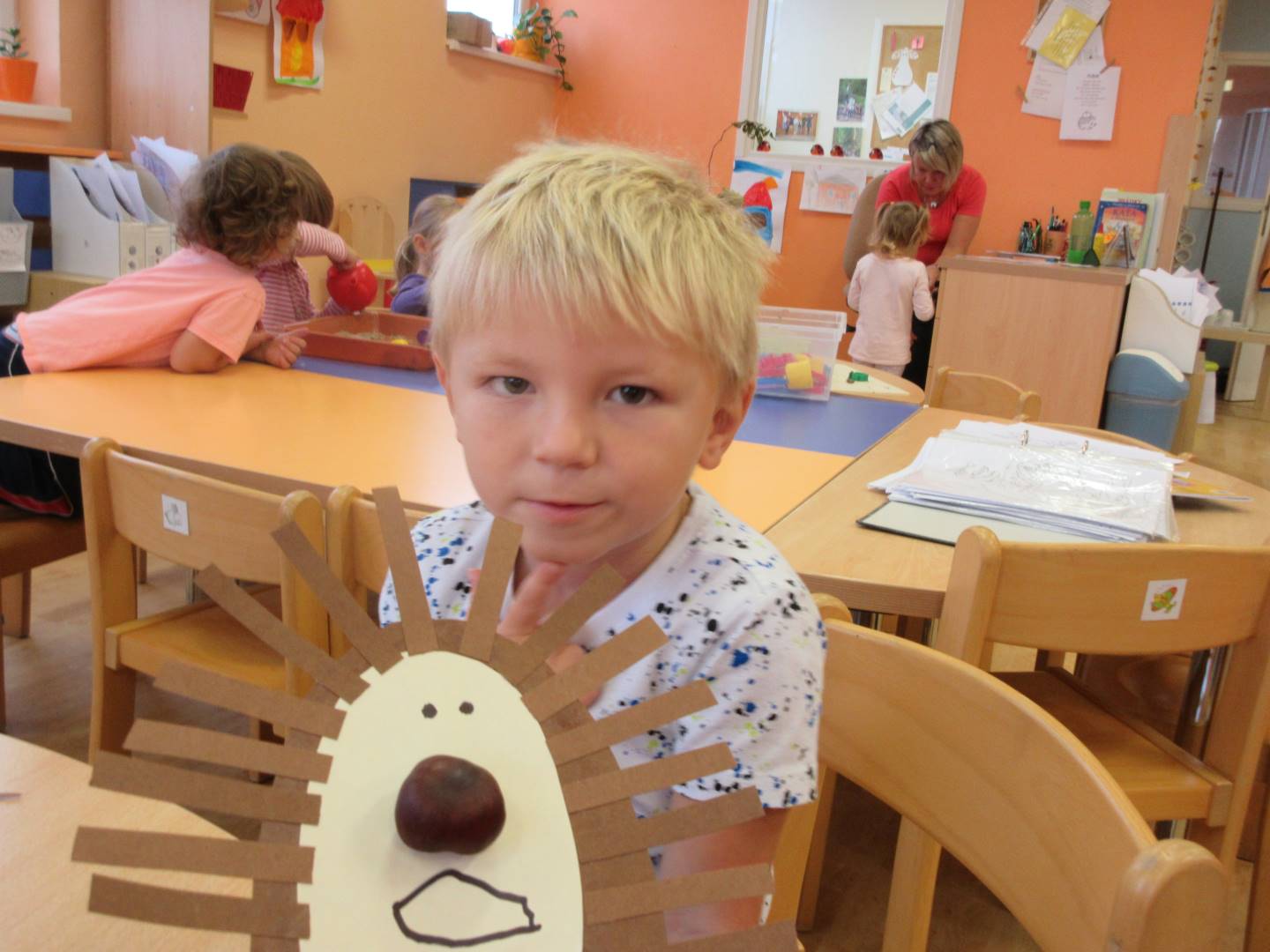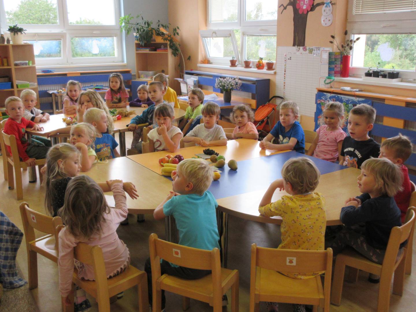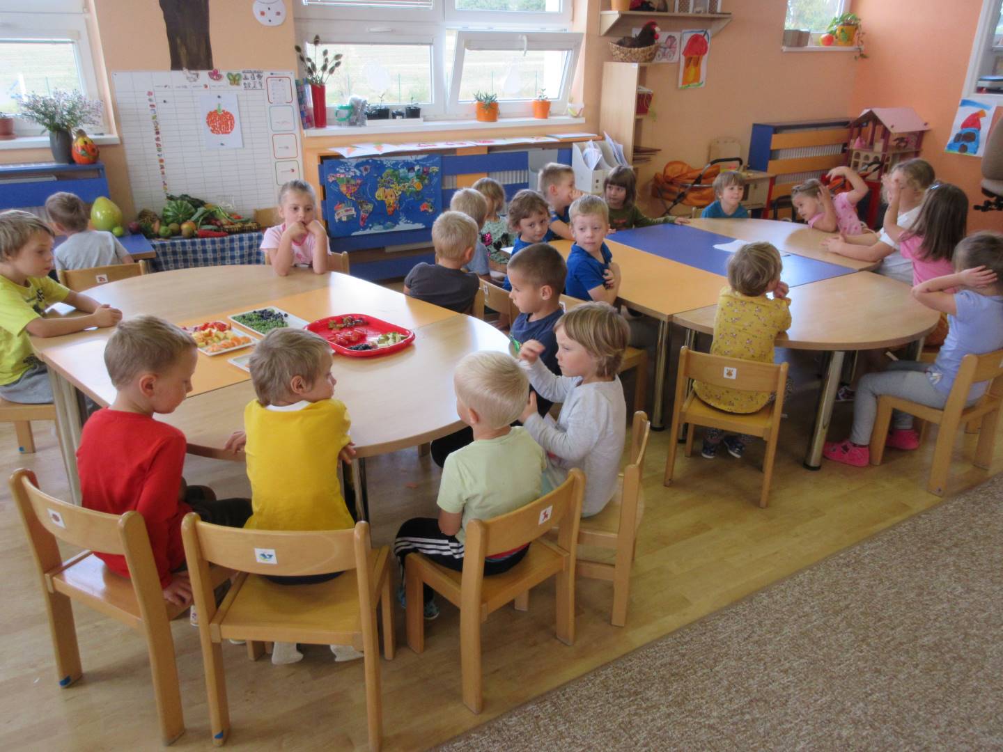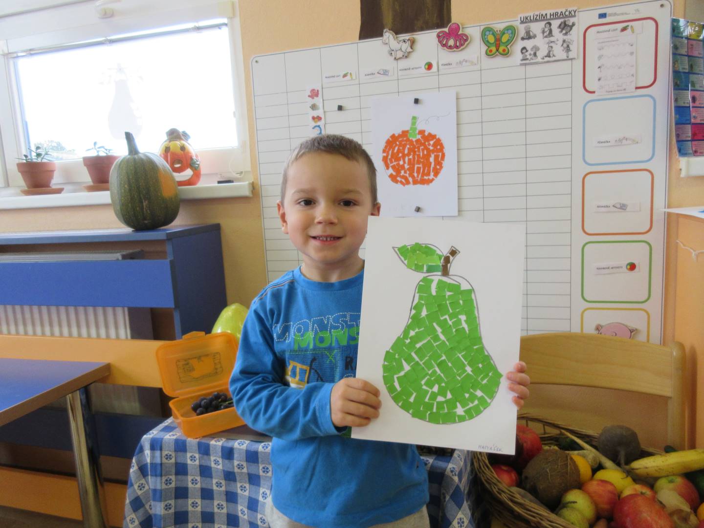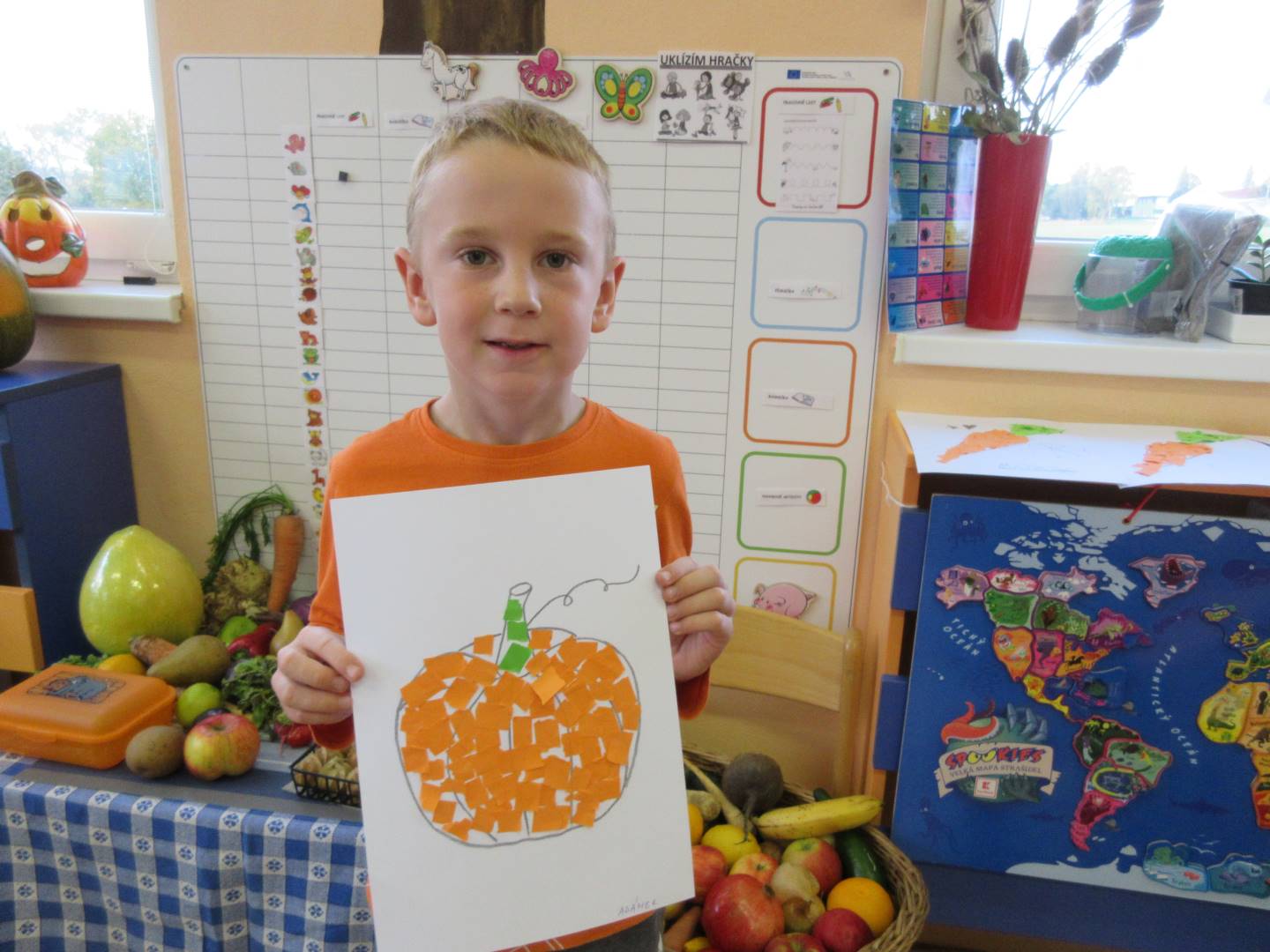 V měsíci říjnu jsme se v Beruškách věnovali tématu ,,Jablíčko se kutálelo“. Ve třídě jsme měli nádhernou výstavu ovoce a zeleniny, za kterou patří i velké poděkování rodičům. Děti se naučily rozeznávat ovoce a zeleninu, poznávání podle hmatu, chuti a čichu. Zahráli jsme si hru s barvičkami a říkanku ,,Barvy ovoce“. Vyprávěli jsme si pohádku ,,O veliké řepě“ a naučili se říkanku s pohybem ,,Kutálí se brambora“. Ovoce a zeleninu jsme si také vyrobili – MOZAIKA. Povídali jsme si o zvířátkách, která se ukládají k zimnímu spánku a pozorovali ježka na zahradě. Z nasbíraných kaštanů jsme si také ježečka vyrobili a naučili se novou básničku. Hodně času jsme trávili venku, hráli si a pozorovali změny v přírodě. Nechyběl ani zpěv, pracovní listy a sportovní vyžití.
