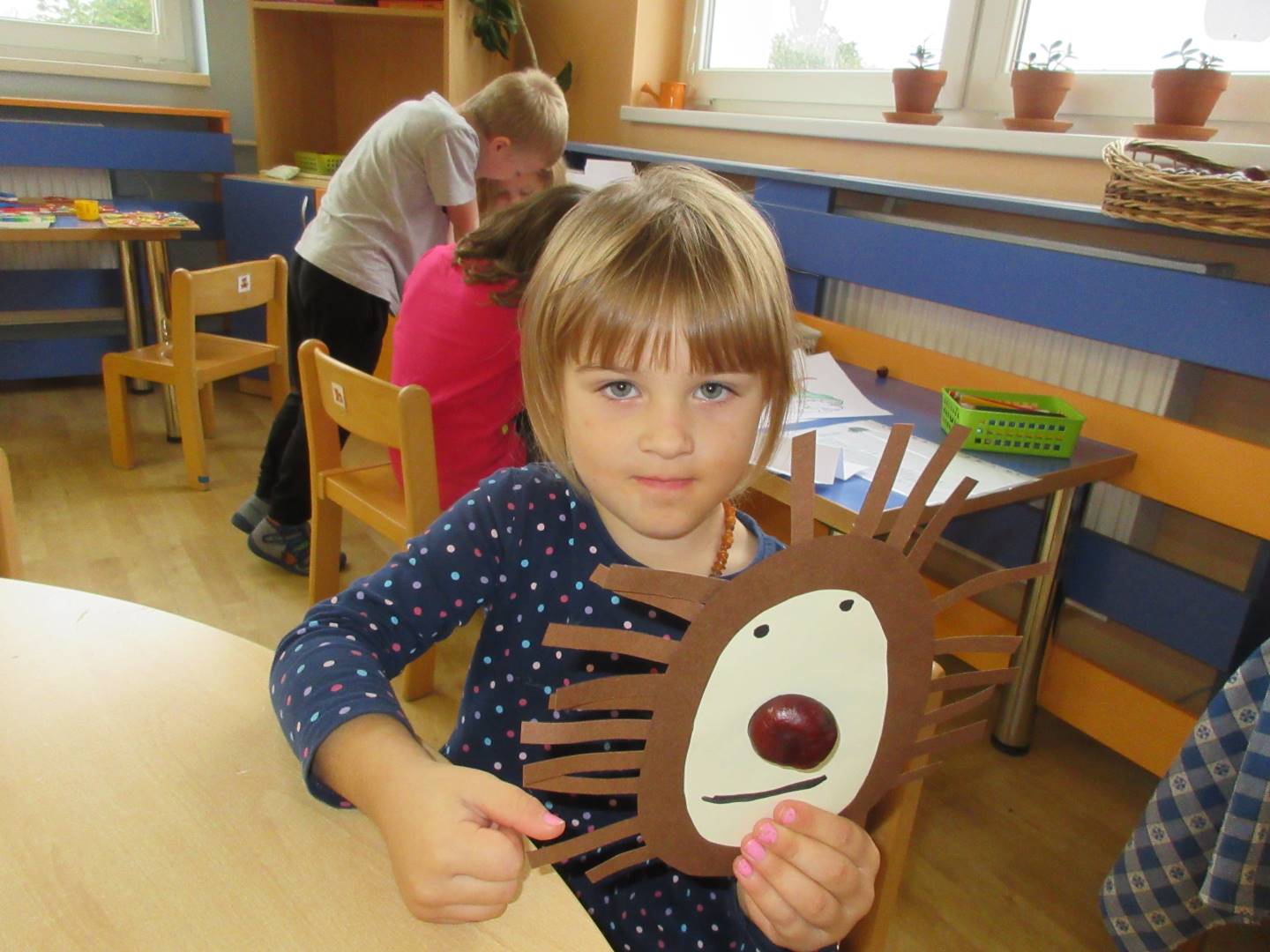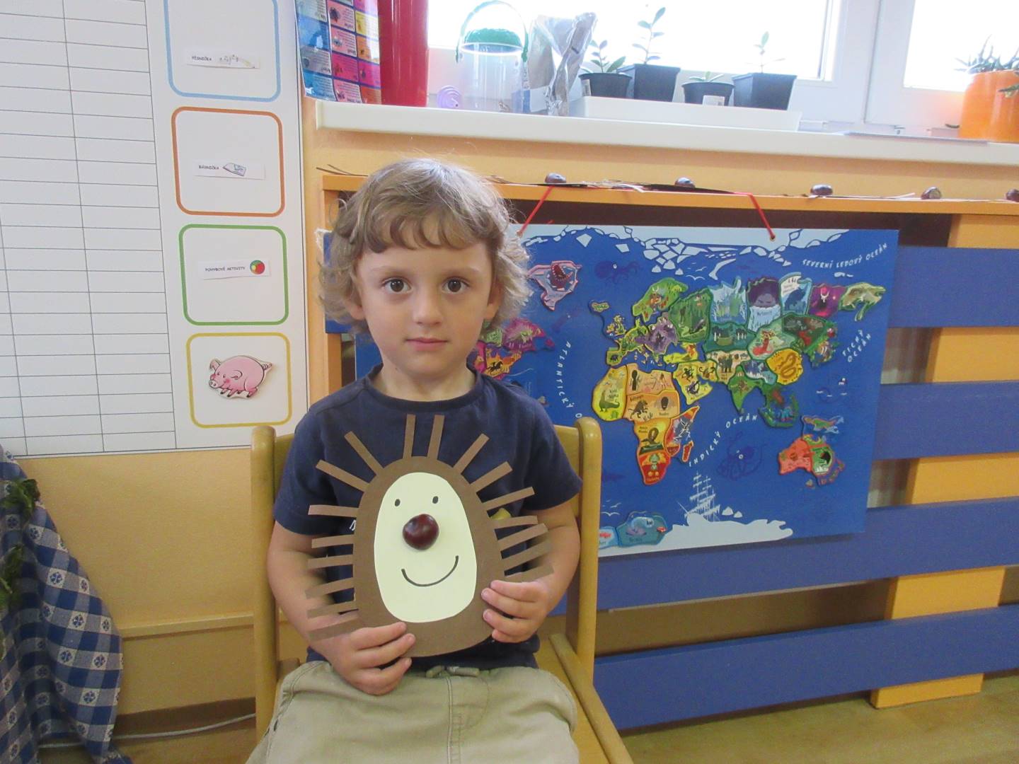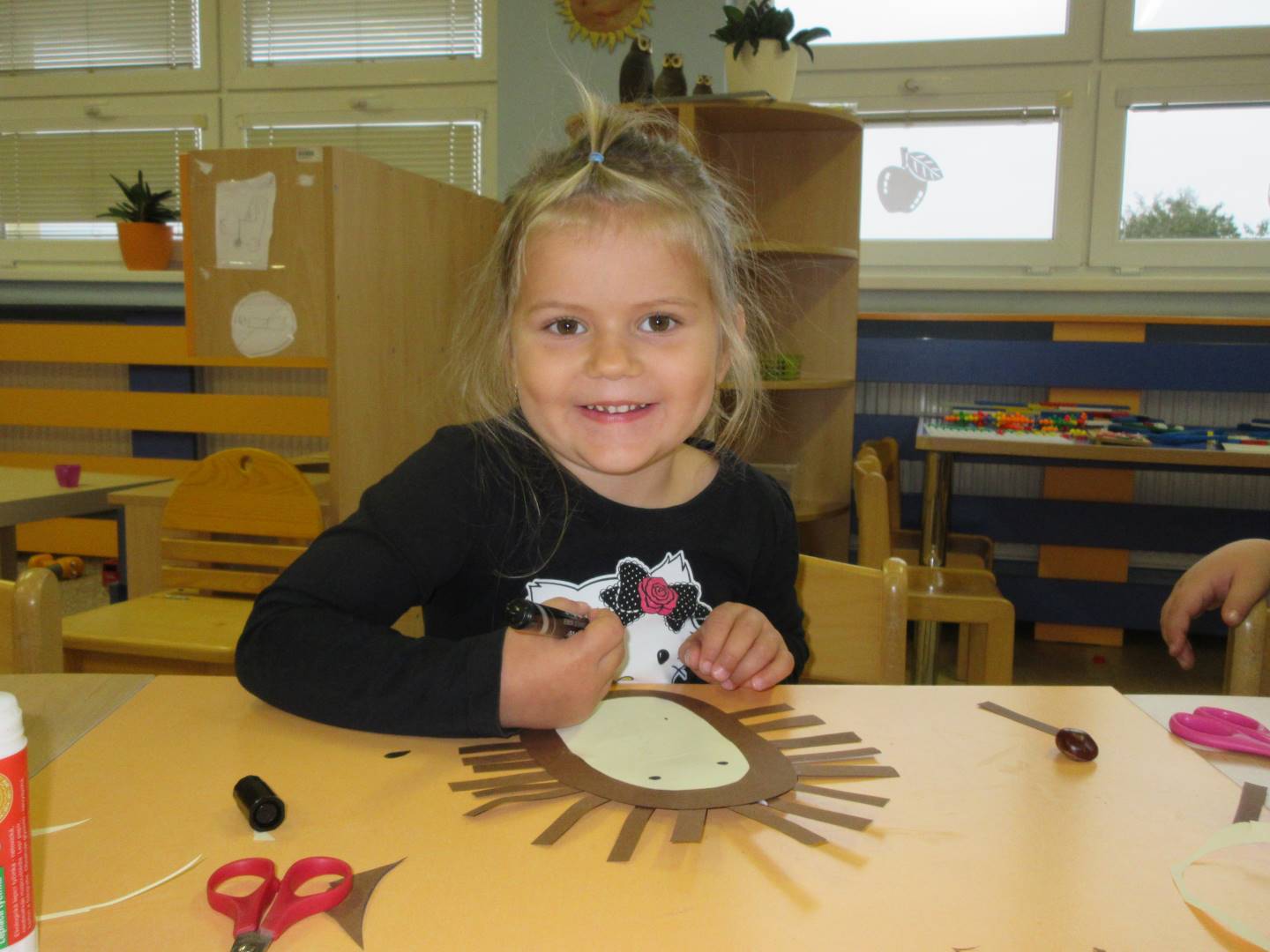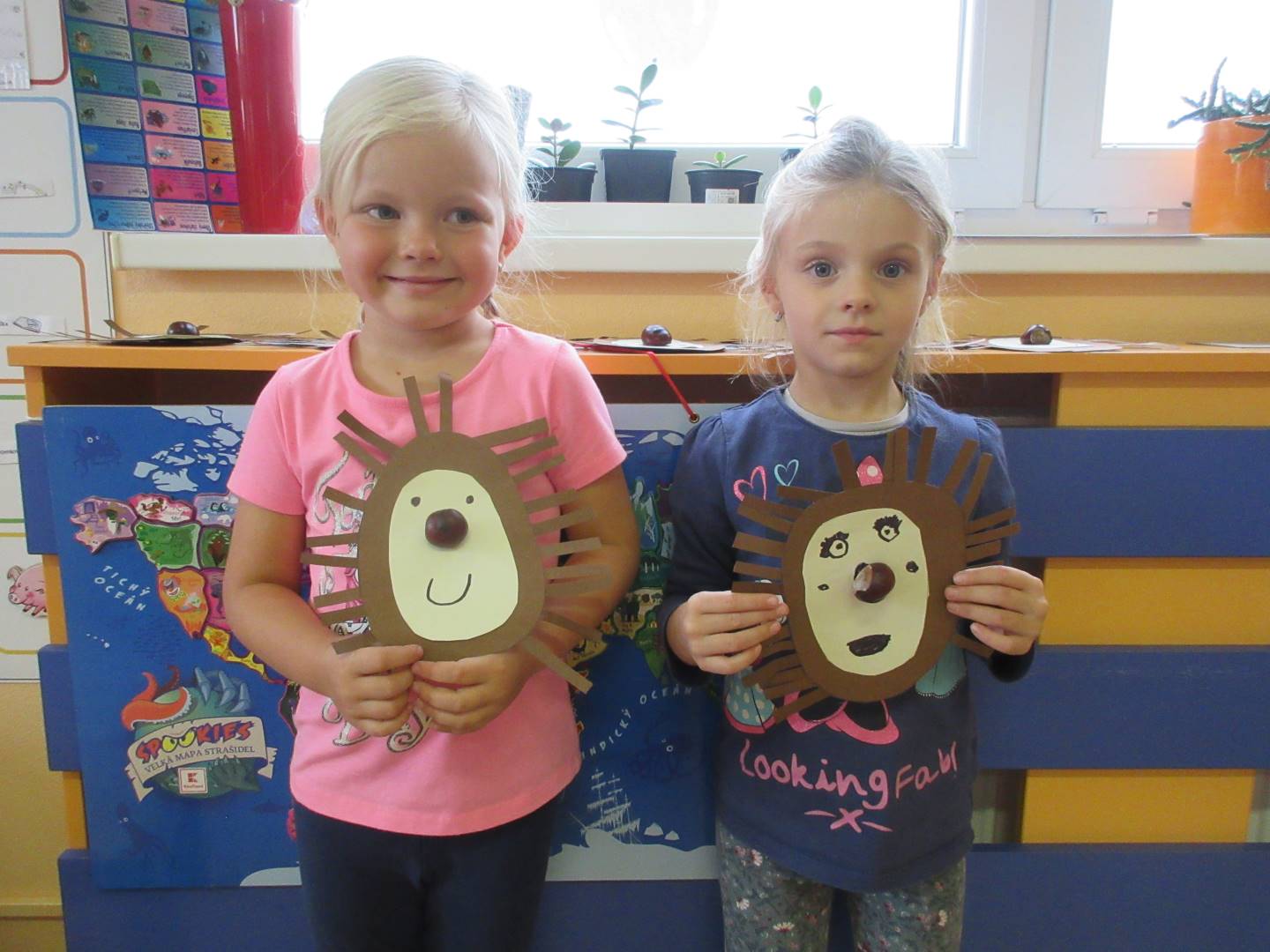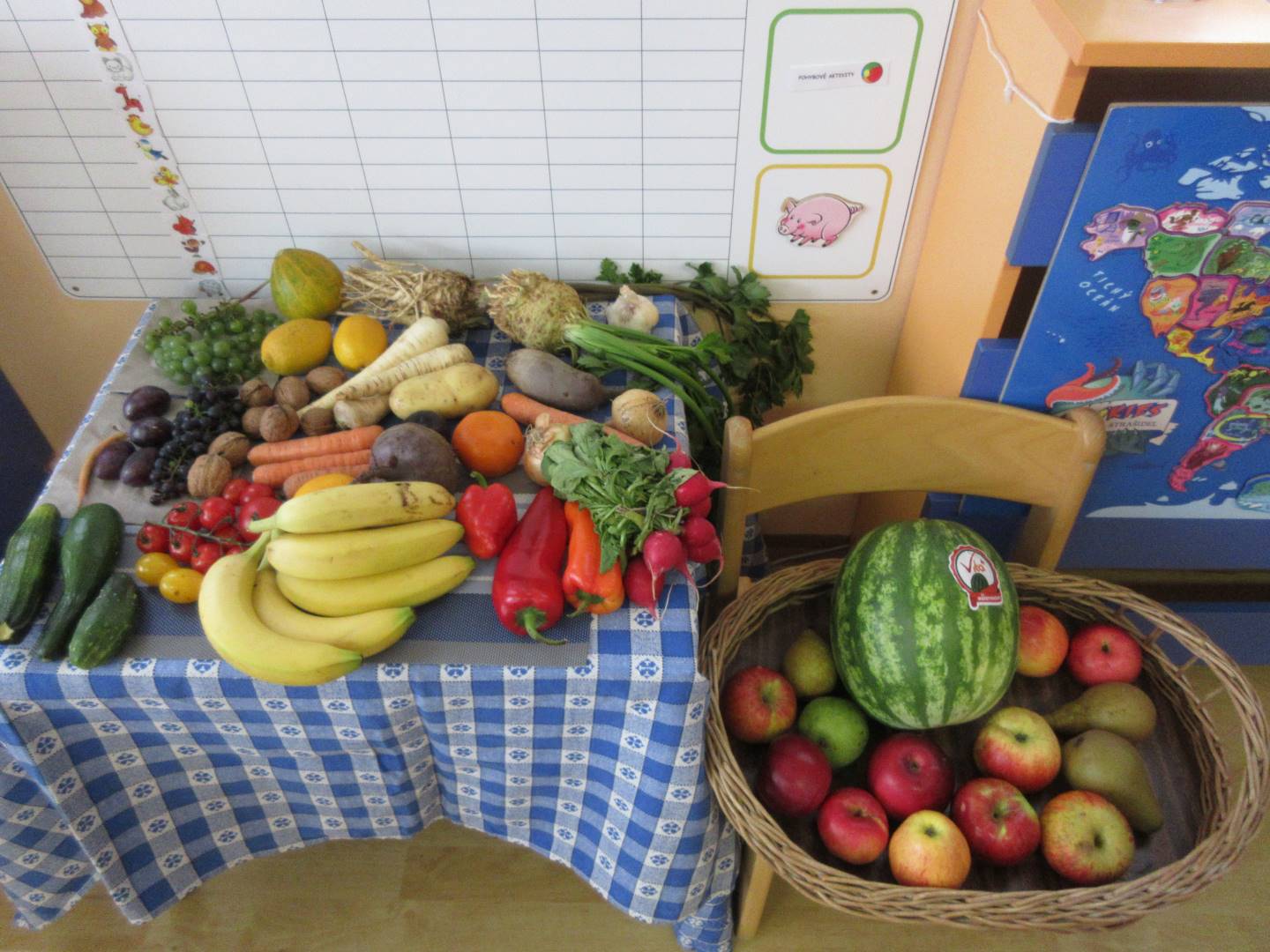 V měsíci říjnu jsme se v Beruškách věnovali tématu ,,Jablíčko se kutálelo“. Ve třídě jsme měli nádhernou výstavu ovoce a zeleniny, za kterou patří i velké poděkování rodičům. Děti se naučily rozeznávat ovoce a zeleninu, poznávání podle hmatu, chuti a čichu. Zahráli jsme si hru s barvičkami a říkanku ,,Barvy ovoce“. Vyprávěli jsme si pohádku ,,O veliké řepě“ a naučili se říkanku s pohybem ,,Kutálí se brambora“. Ovoce a zeleninu jsme si také vyrobili – MOZAIKA. Povídali jsme si o zvířátkách, která se ukládají k zimnímu spánku a pozorovali ježka na zahradě. Z nasbíraných kaštanů jsme si také ježečka vyrobili a naučili se novou básničku. Hodně času jsme trávili venku, hráli si a pozorovali změny v přírodě. Nechyběl ani zpěv, pracovní listy a sportovní vyžití.