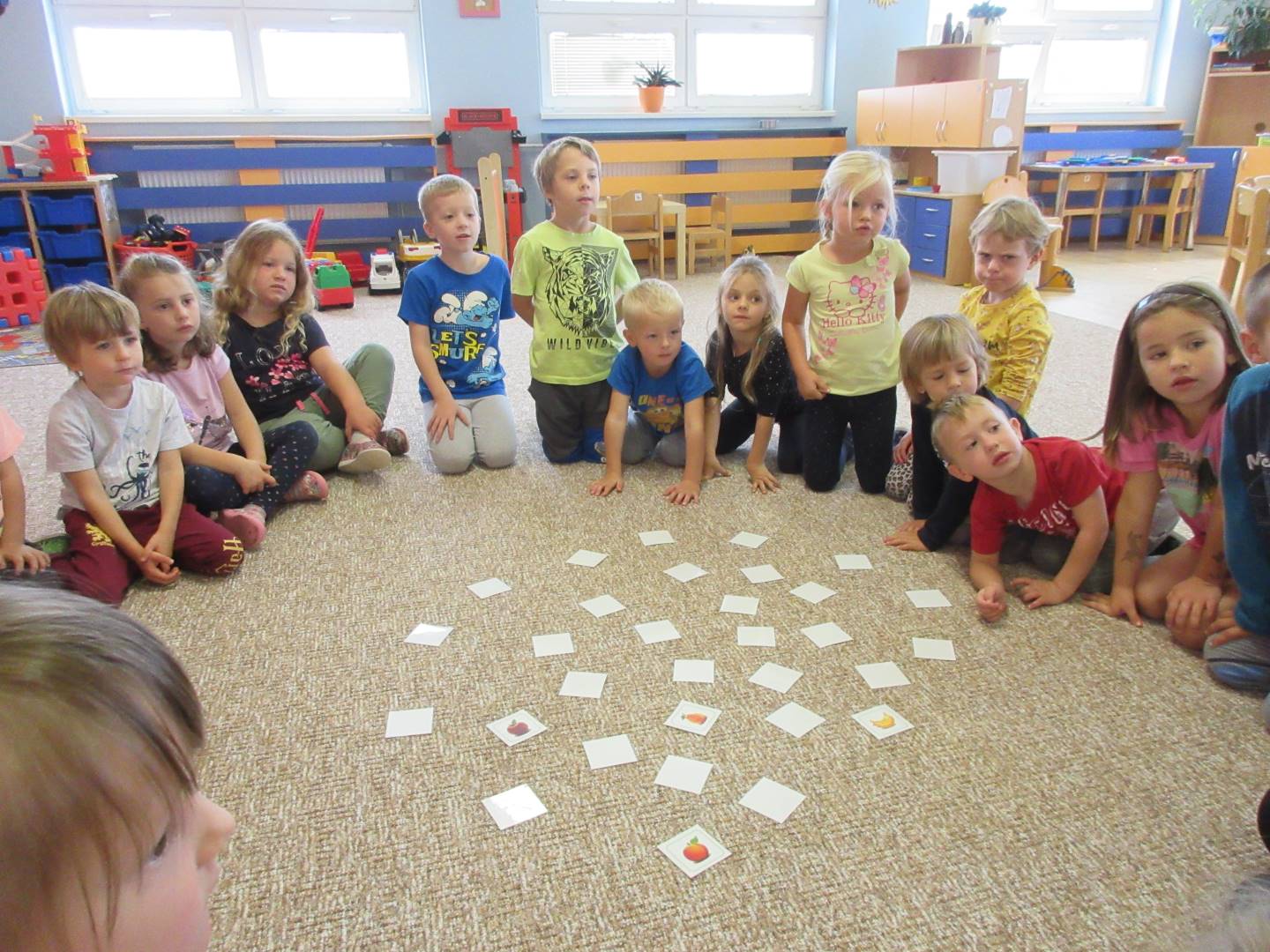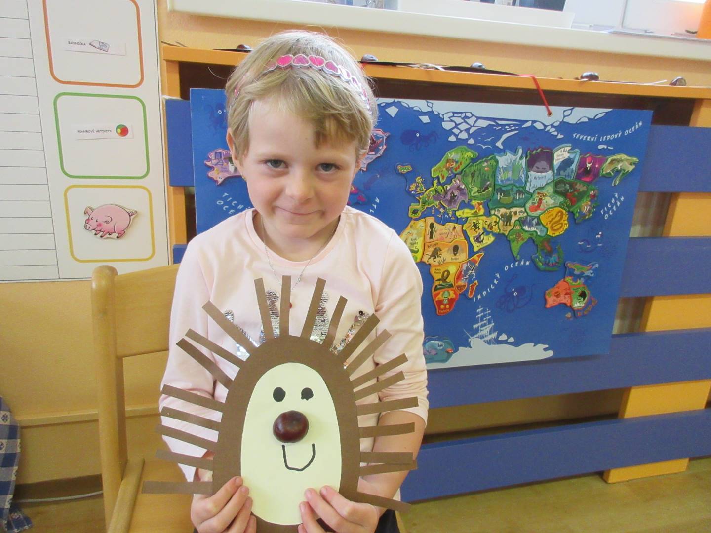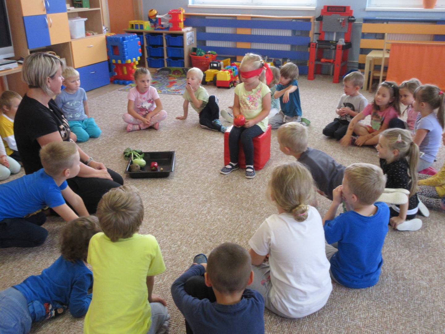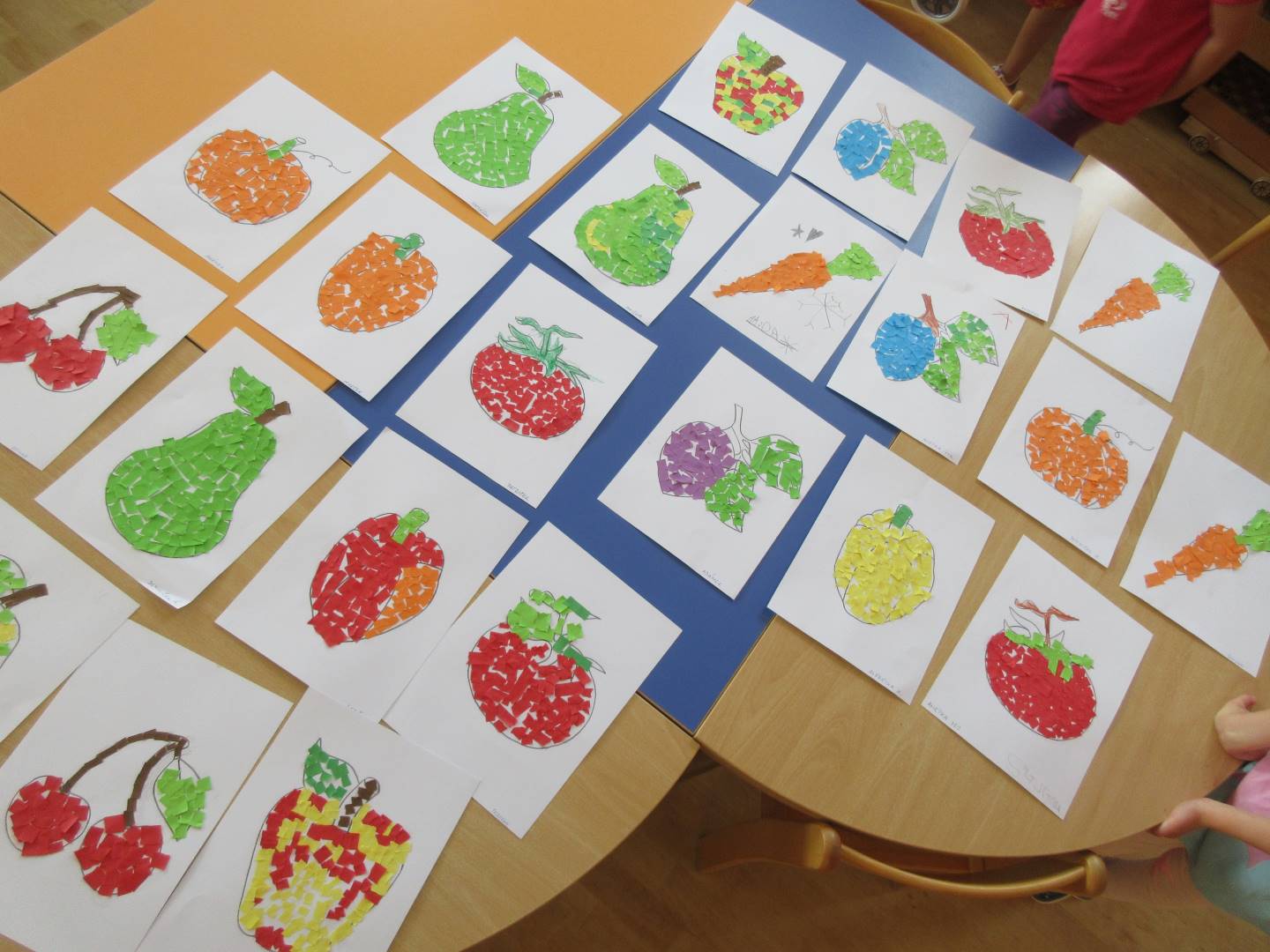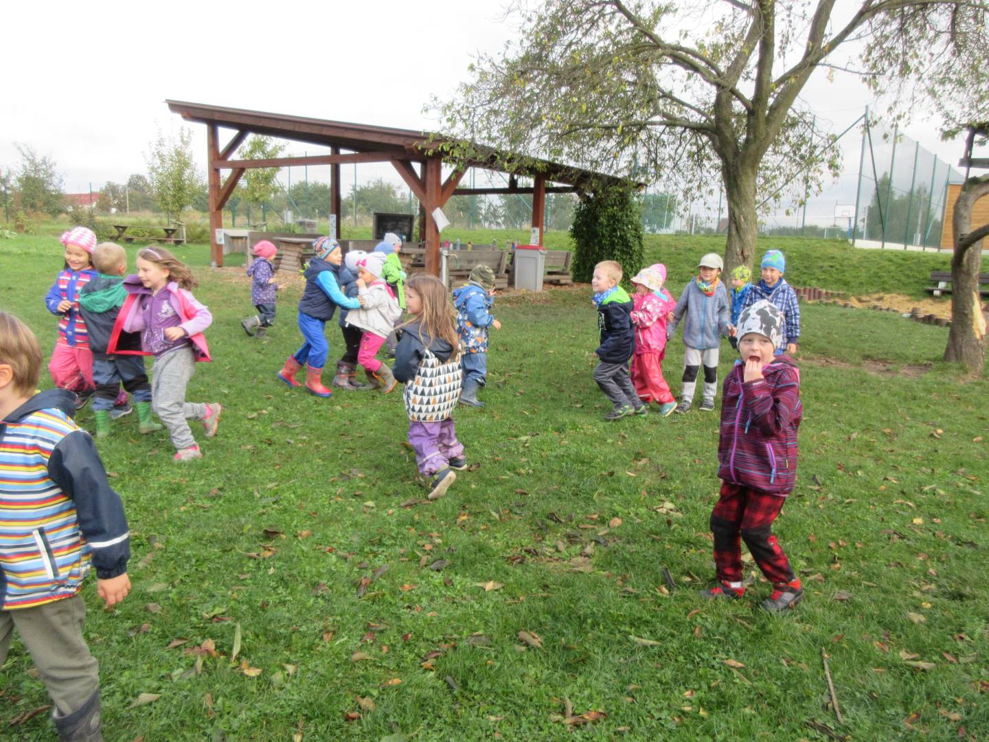 V měsíci říjnu jsme se v Beruškách věnovali tématu ,,Jablíčko se kutálelo“. Ve třídě jsme měli nádhernou výstavu ovoce a zeleniny, za kterou patří i velké poděkování rodičům. Děti se naučily rozeznávat ovoce a zeleninu, poznávání podle hmatu, chuti a čichu. Zahráli jsme si hru s barvičkami a říkanku ,,Barvy ovoce“. Vyprávěli jsme si pohádku ,,O veliké řepě“ a naučili se říkanku s pohybem ,,Kutálí se brambora“. Ovoce a zeleninu jsme si také vyrobili – MOZAIKA. Povídali jsme si o zvířátkách, která se ukládají k zimnímu spánku a pozorovali ježka na zahradě. Z nasbíraných kaštanů jsme si také ježečka vyrobili a naučili se novou básničku. Hodně času jsme trávili venku, hráli si a pozorovali změny v přírodě. Nechyběl ani zpěv, pracovní listy a sportovní vyžití.