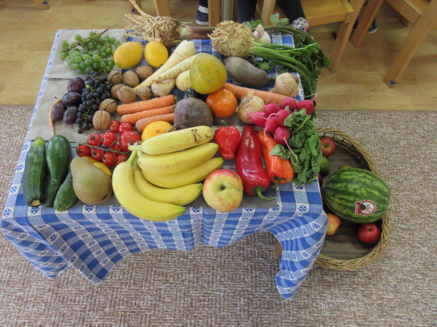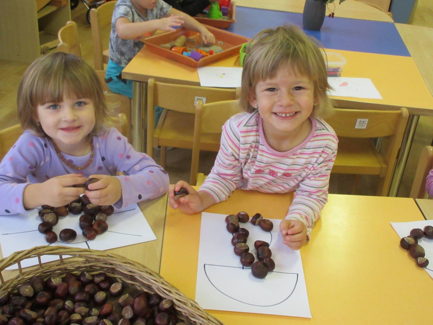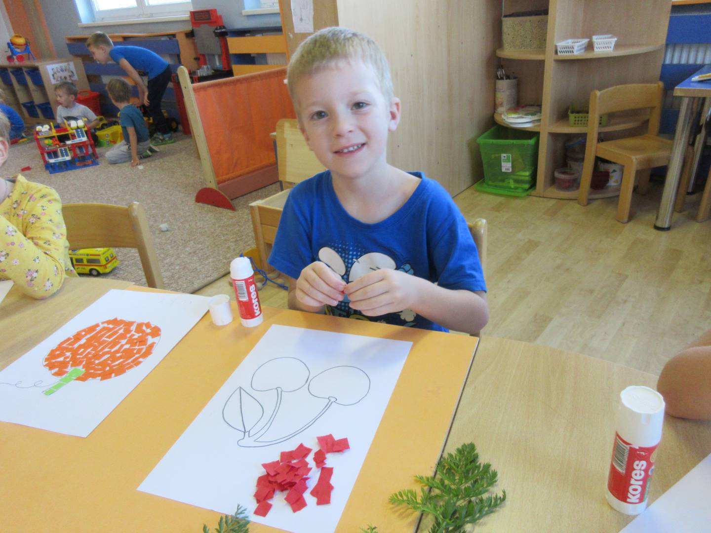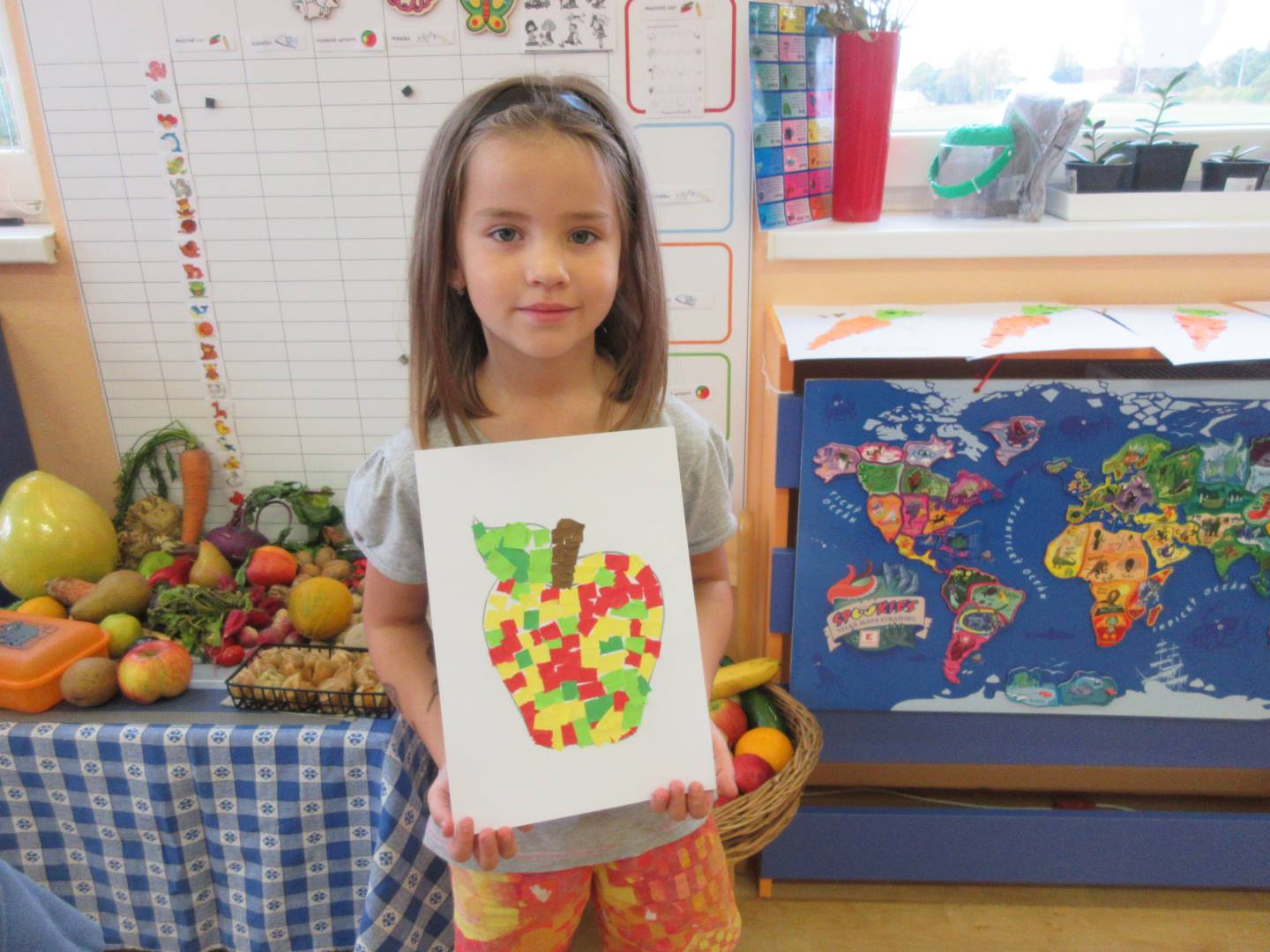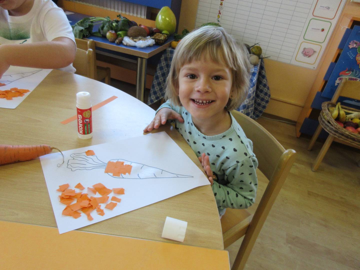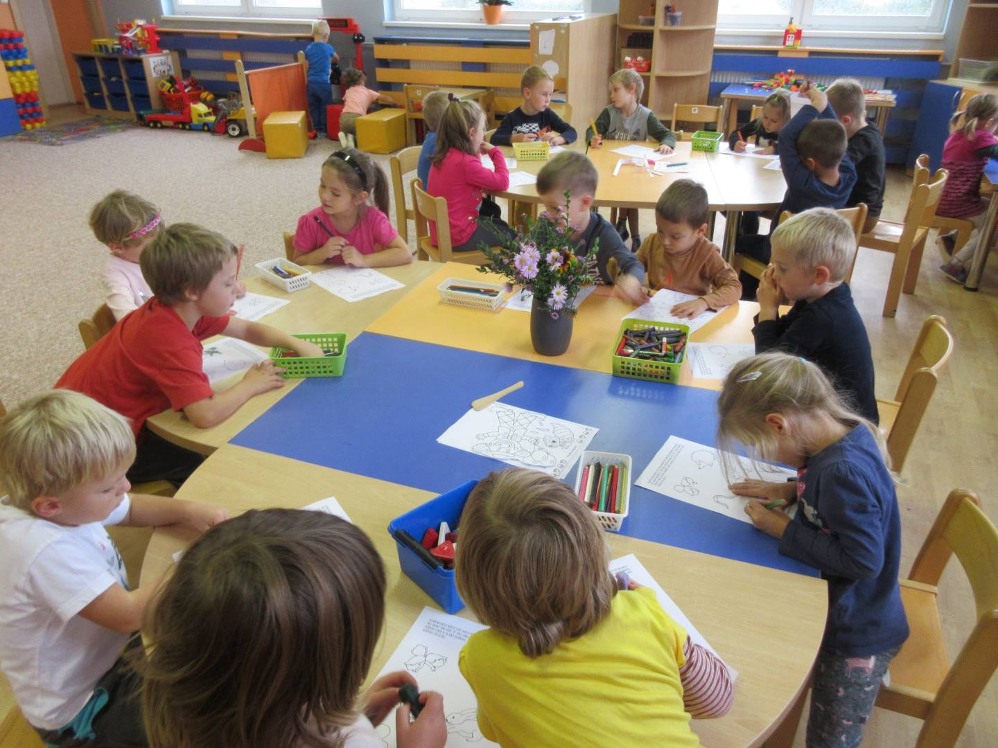 V měsíci říjnu jsme se v Beruškách věnovali tématu ,,Jablíčko se kutálelo“. Ve třídě jsme měli nádhernou výstavu ovoce a zeleniny, za kterou patří i velké poděkování rodičům. Děti se naučily rozeznávat ovoce a zeleninu, poznávání podle hmatu, chuti a čichu. Zahráli jsme si hru s barvičkami a říkanku ,,Barvy ovoce“. Vyprávěli jsme si pohádku ,,O veliké řepě“ a naučili se říkanku s pohybem ,,Kutálí se brambora“. Ovoce a zeleninu jsme si také vyrobili – MOZAIKA. Povídali jsme si o zvířátkách, která se ukládají k zimnímu spánku a pozorovali ježka na zahradě. Z nasbíraných kaštanů jsme si také ježečka vyrobili a naučili se novou básničku. Hodně času jsme trávili venku, hráli si a pozorovali změny v přírodě. Nechyběl ani zpěv, pracovní listy a sportovní vyžití.