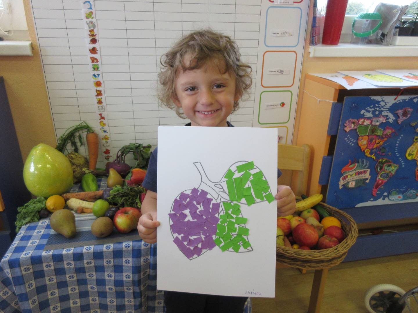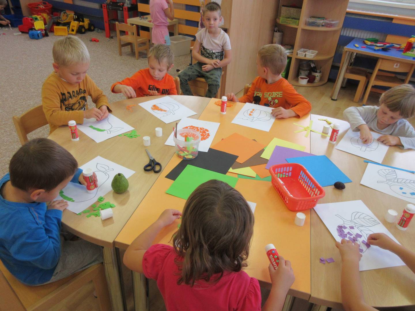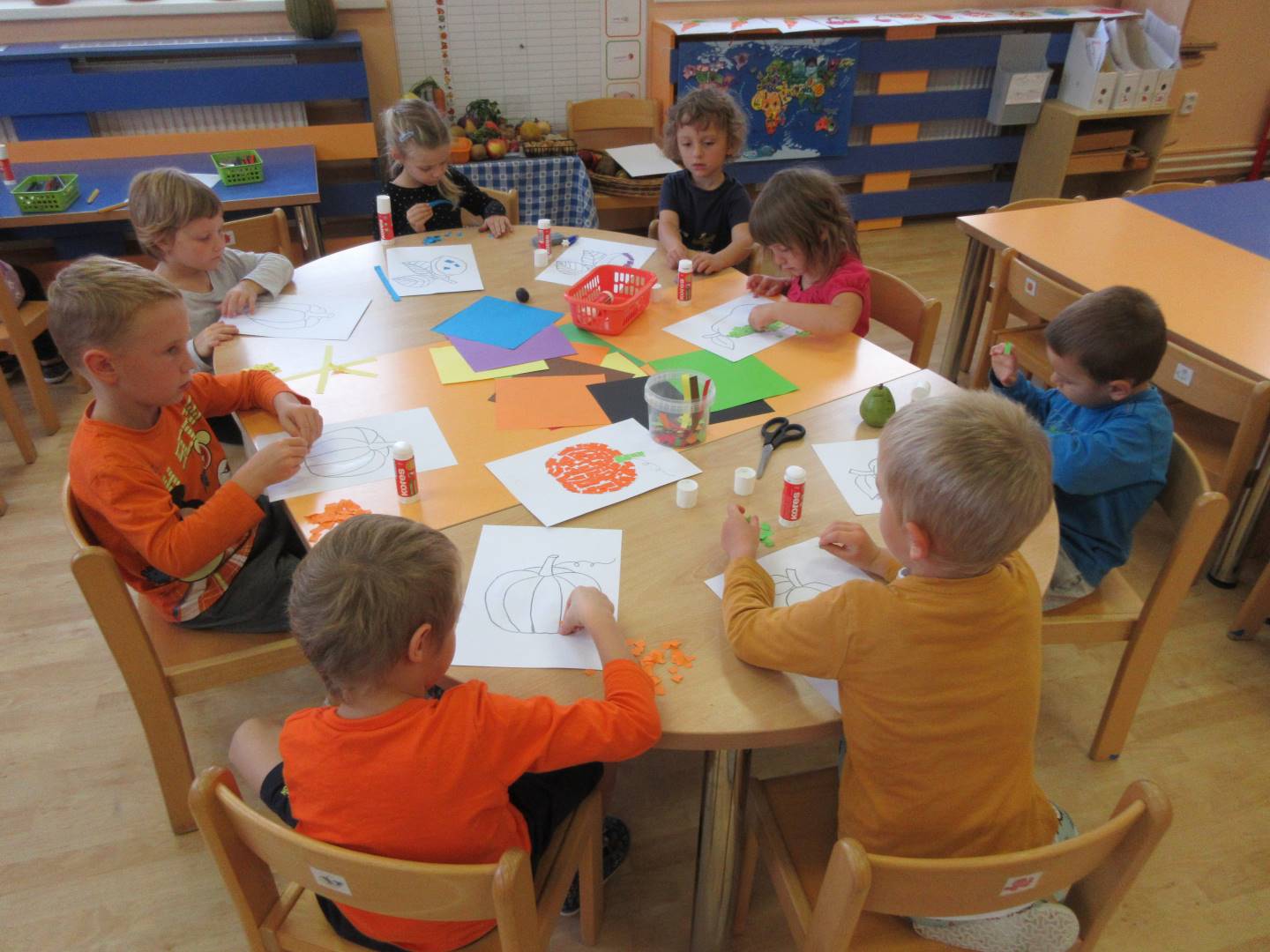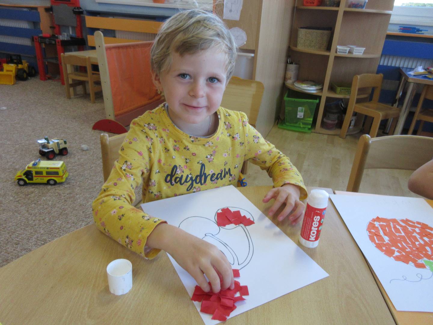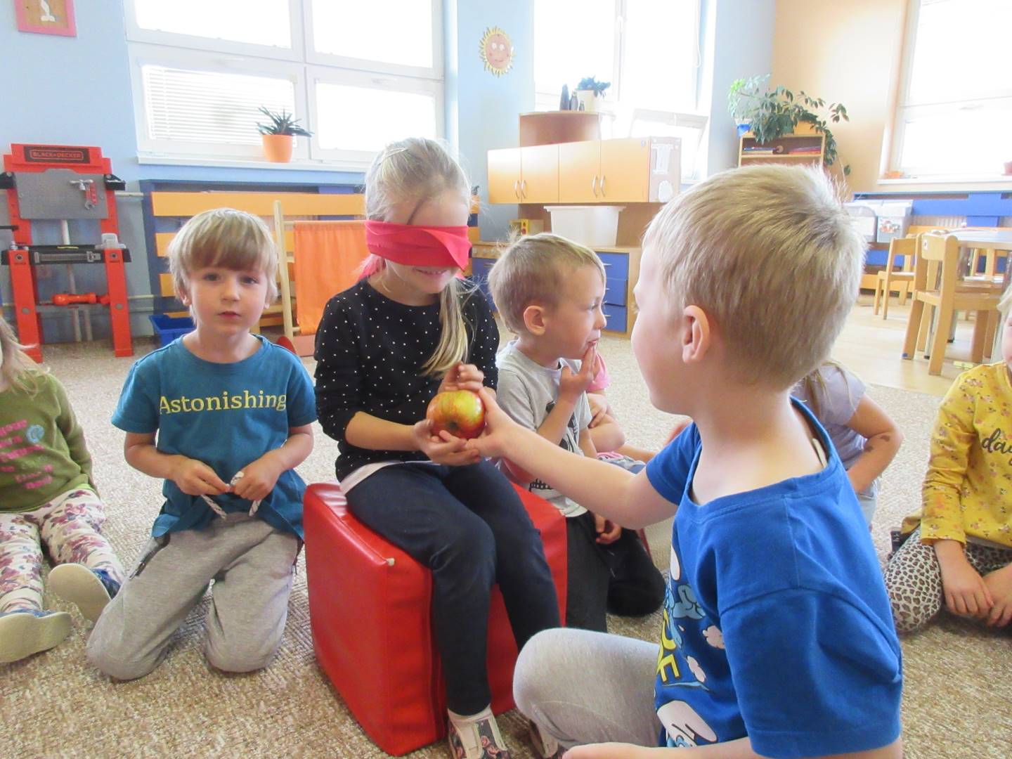 V měsíci říjnu jsme se v Beruškách věnovali tématu ,,Jablíčko se kutálelo“. Ve třídě jsme měli nádhernou výstavu ovoce a zeleniny, za kterou patří i velké poděkování rodičům. Děti se naučily rozeznávat ovoce a zeleninu, poznávání podle hmatu, chuti a čichu. Zahráli jsme si hru s barvičkami a říkanku ,,Barvy ovoce“. Vyprávěli jsme si pohádku ,,O veliké řepě“ a naučili se říkanku s pohybem ,,Kutálí se brambora“. Ovoce a zeleninu jsme si také vyrobili – MOZAIKA. Povídali jsme si o zvířátkách, která se ukládají k zimnímu spánku a pozorovali ježka na zahradě. Z nasbíraných kaštanů jsme si také ježečka vyrobili a naučili se novou básničku. Hodně času jsme trávili venku, hráli si a pozorovali změny v přírodě. Nechyběl ani zpěv, pracovní listy a sportovní vyžití.