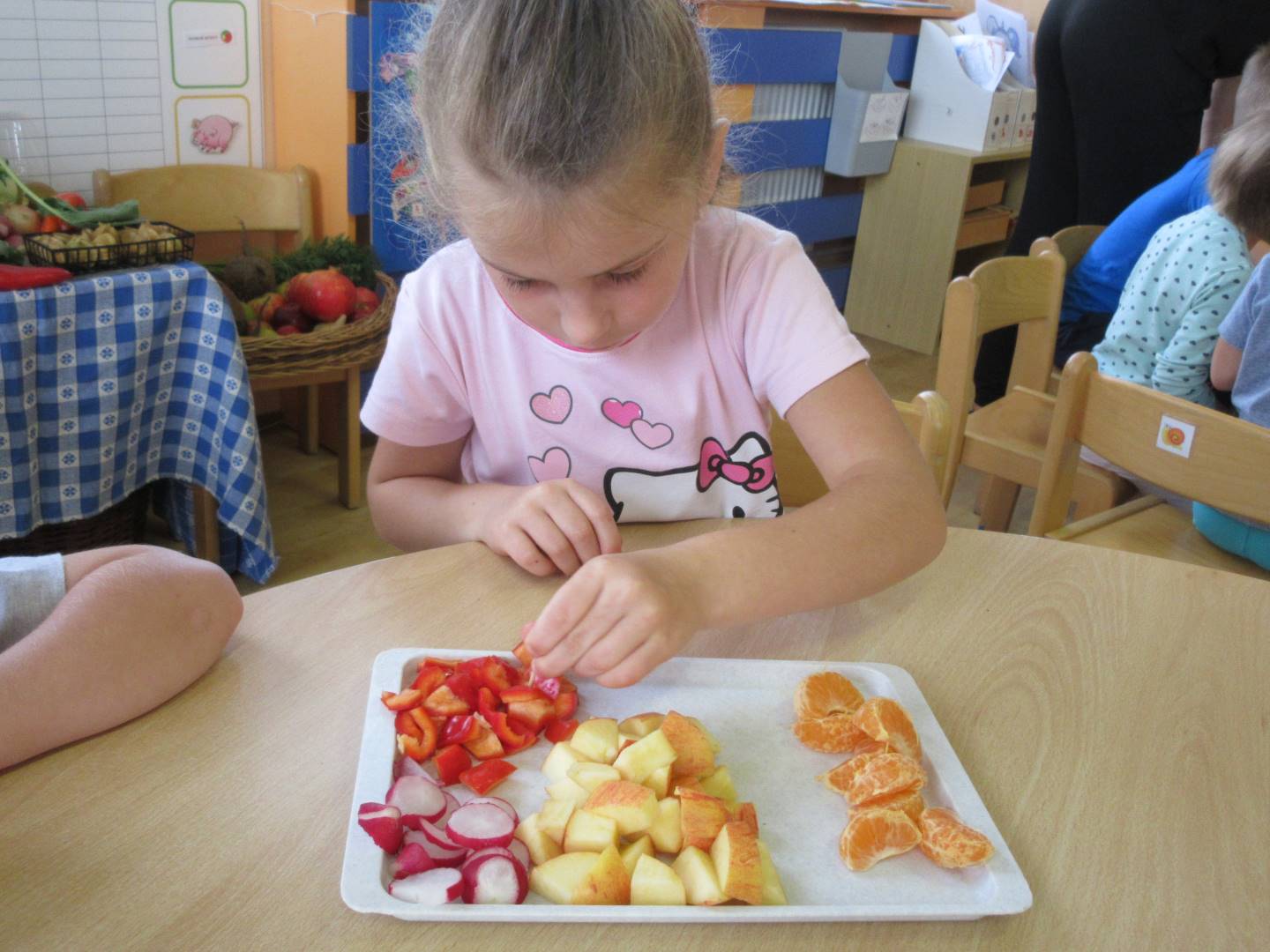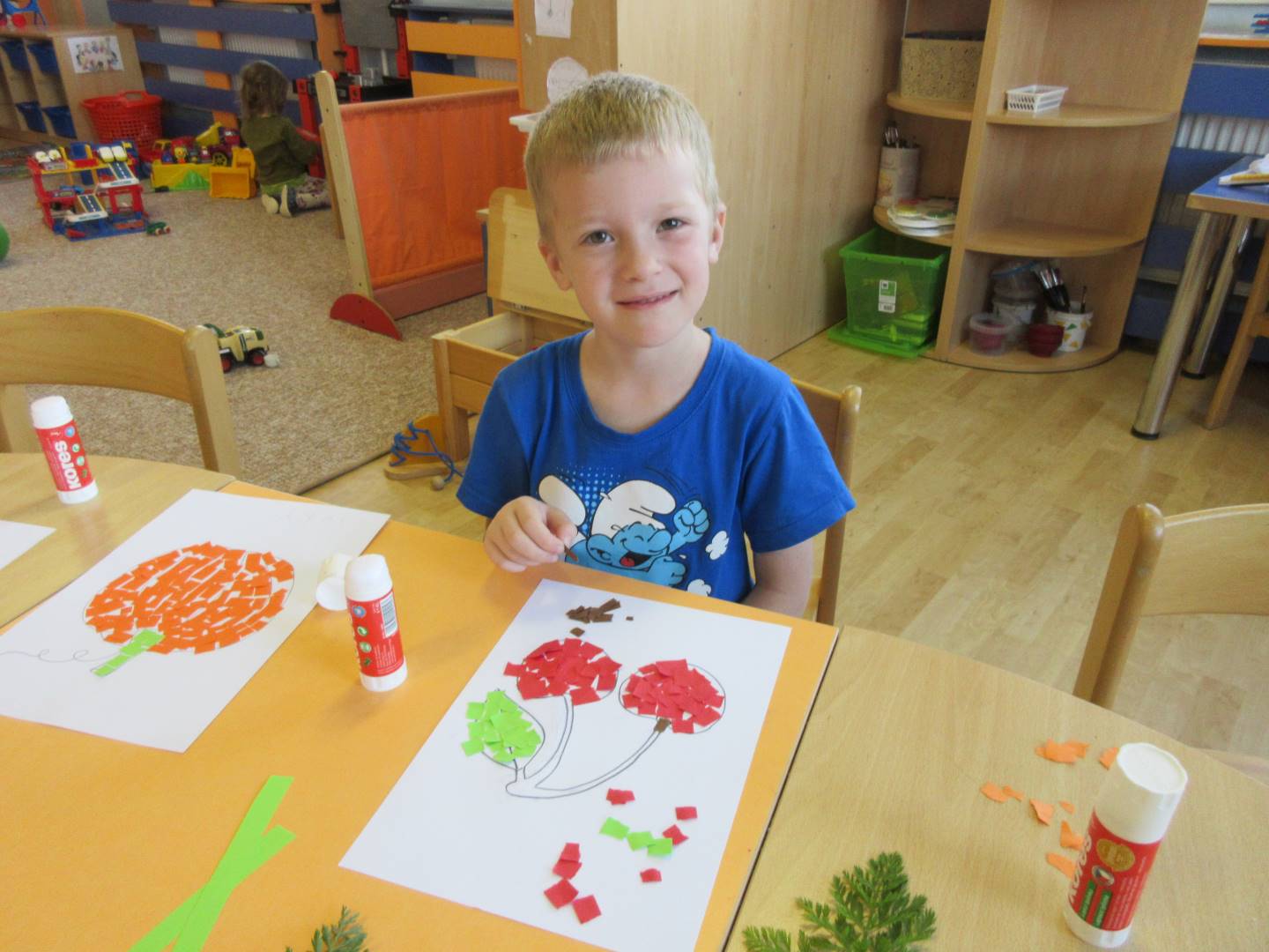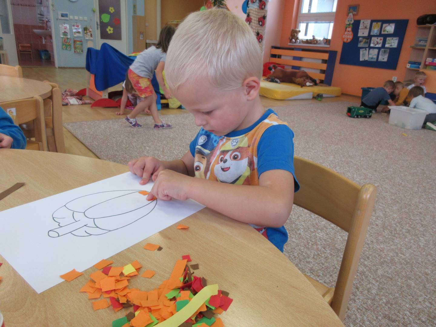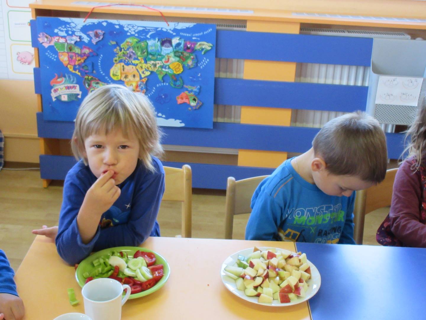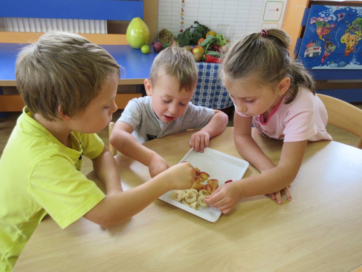 V měsíci říjnu jsme se v Beruškách věnovali tématu ,,Jablíčko se kutálelo“. Ve třídě jsme měli nádhernou výstavu ovoce a zeleniny, za kterou patří i velké poděkování rodičům. Děti se naučily rozeznávat ovoce a zeleninu, poznávání podle hmatu, chuti a čichu. Zahráli jsme si hru s barvičkami a říkanku ,,Barvy ovoce“. Vyprávěli jsme si pohádku ,,O veliké řepě“ a naučili se říkanku s pohybem ,,Kutálí se brambora“. Ovoce a zeleninu jsme si také vyrobili – MOZAIKA. Povídali jsme si o zvířátkách, která se ukládají k zimnímu spánku a pozorovali ježka na zahradě. Z nasbíraných kaštanů jsme si také ježečka vyrobili a naučili se novou básničku. Hodně času jsme trávili venku, hráli si a pozorovali změny v přírodě. Nechyběl ani zpěv, pracovní listy a sportovní vyžití.