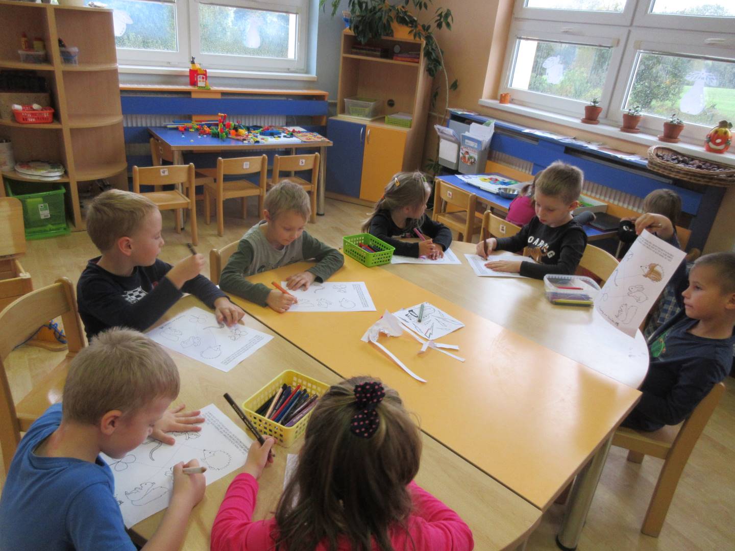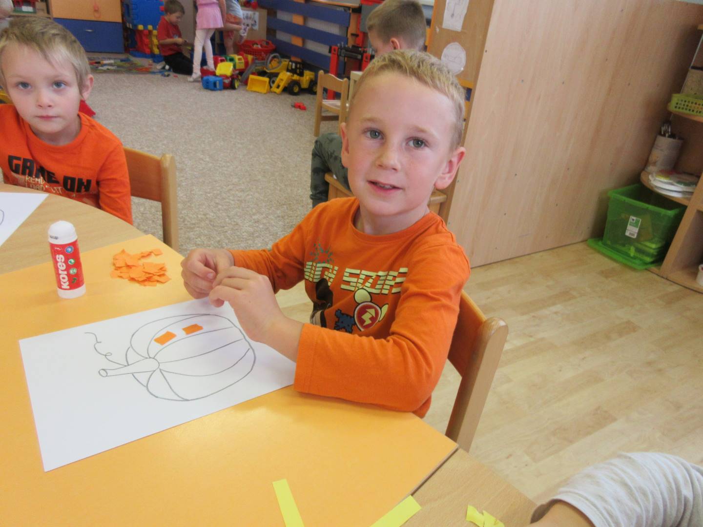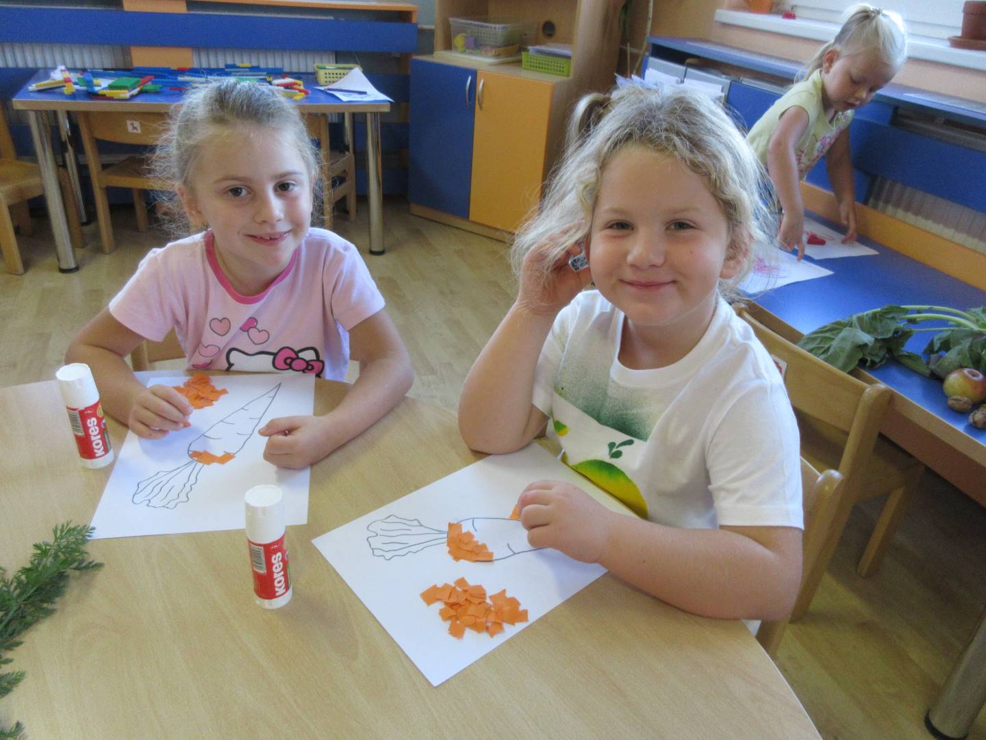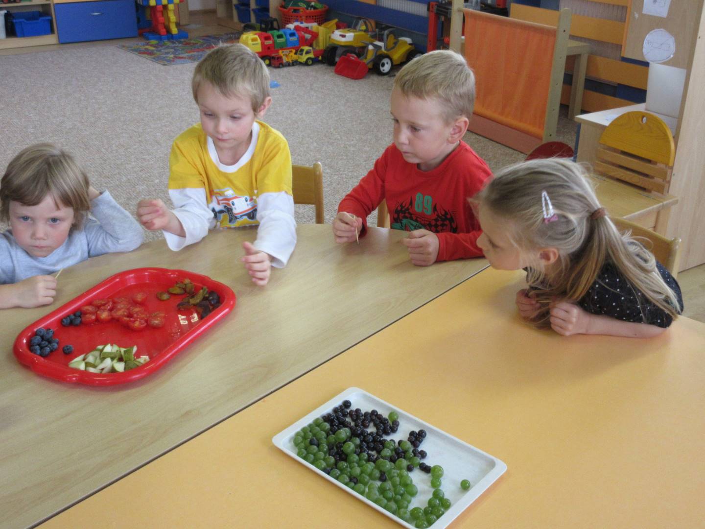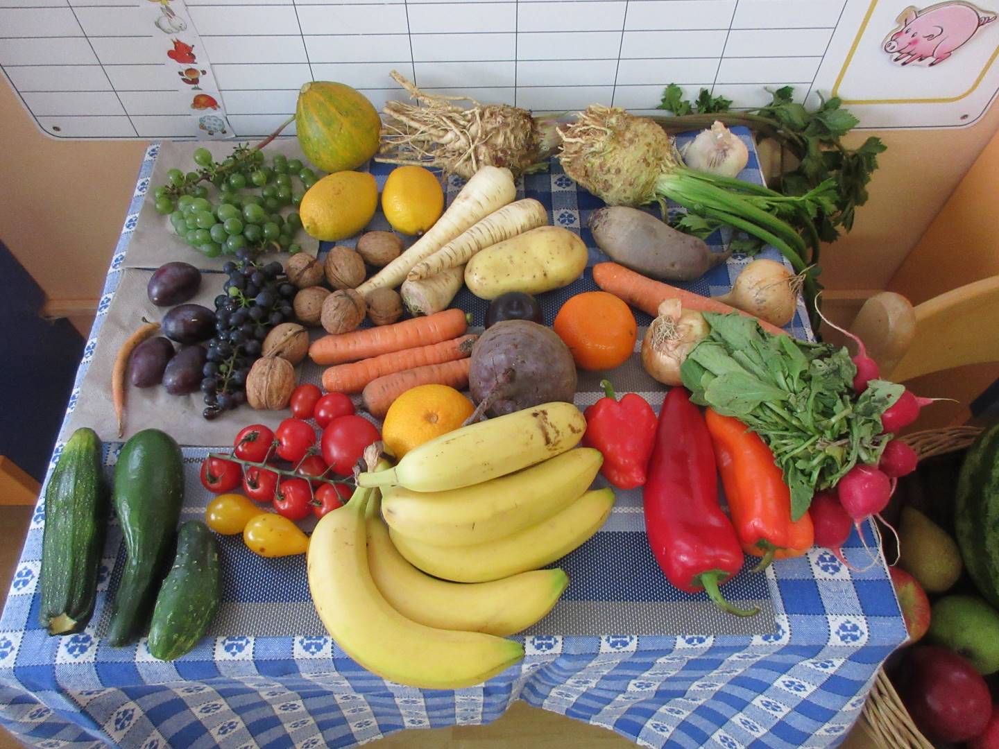 V měsíci říjnu jsme se v Beruškách věnovali tématu ,,Jablíčko se kutálelo“. Ve třídě jsme měli nádhernou výstavu ovoce a zeleniny, za kterou patří i velké poděkování rodičům. Děti se naučily rozeznávat ovoce a zeleninu, poznávání podle hmatu, chuti a čichu. Zahráli jsme si hru s barvičkami a říkanku ,,Barvy ovoce“. Vyprávěli jsme si pohádku ,,O veliké řepě“ a naučili se říkanku s pohybem ,,Kutálí se brambora“. Ovoce a zeleninu jsme si také vyrobili – MOZAIKA. Povídali jsme si o zvířátkách, která se ukládají k zimnímu spánku a pozorovali ježka na zahradě. Z nasbíraných kaštanů jsme si také ježečka vyrobili a naučili se novou básničku. Hodně času jsme trávili venku, hráli si a pozorovali změny v přírodě. Nechyběl ani zpěv, pracovní listy a sportovní vyžití.