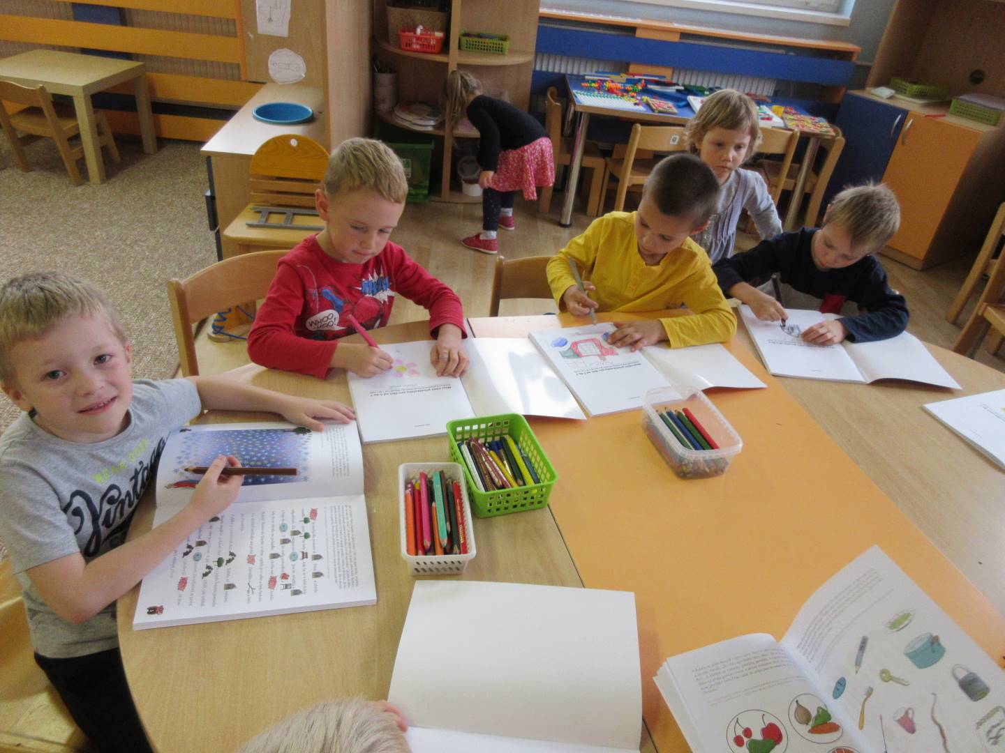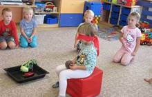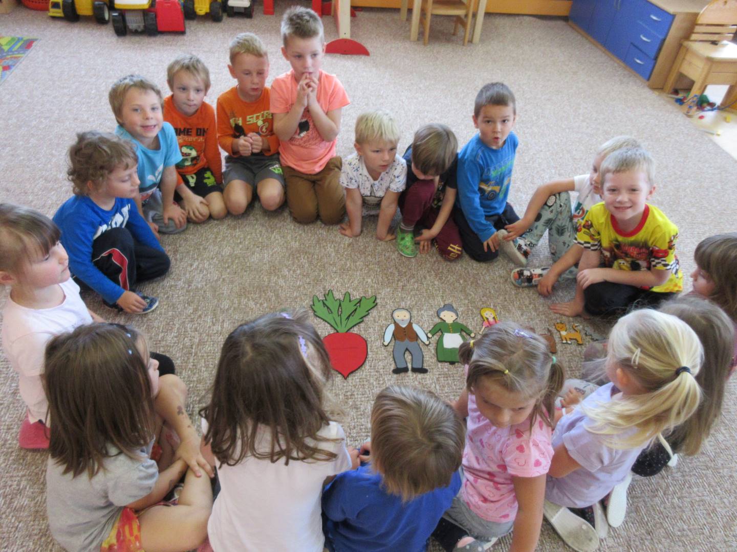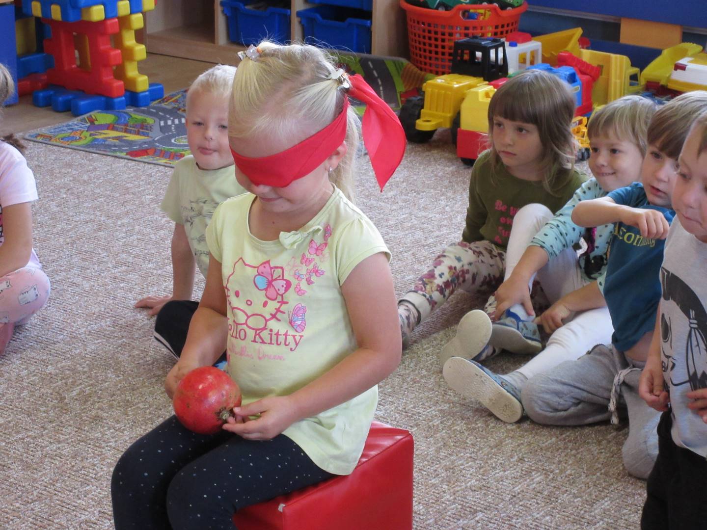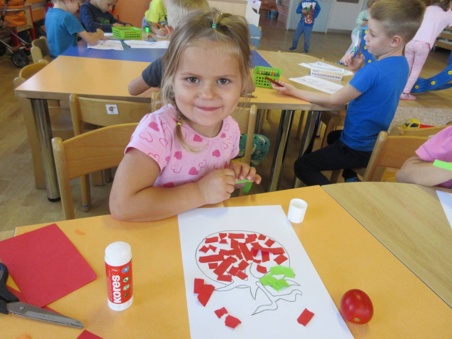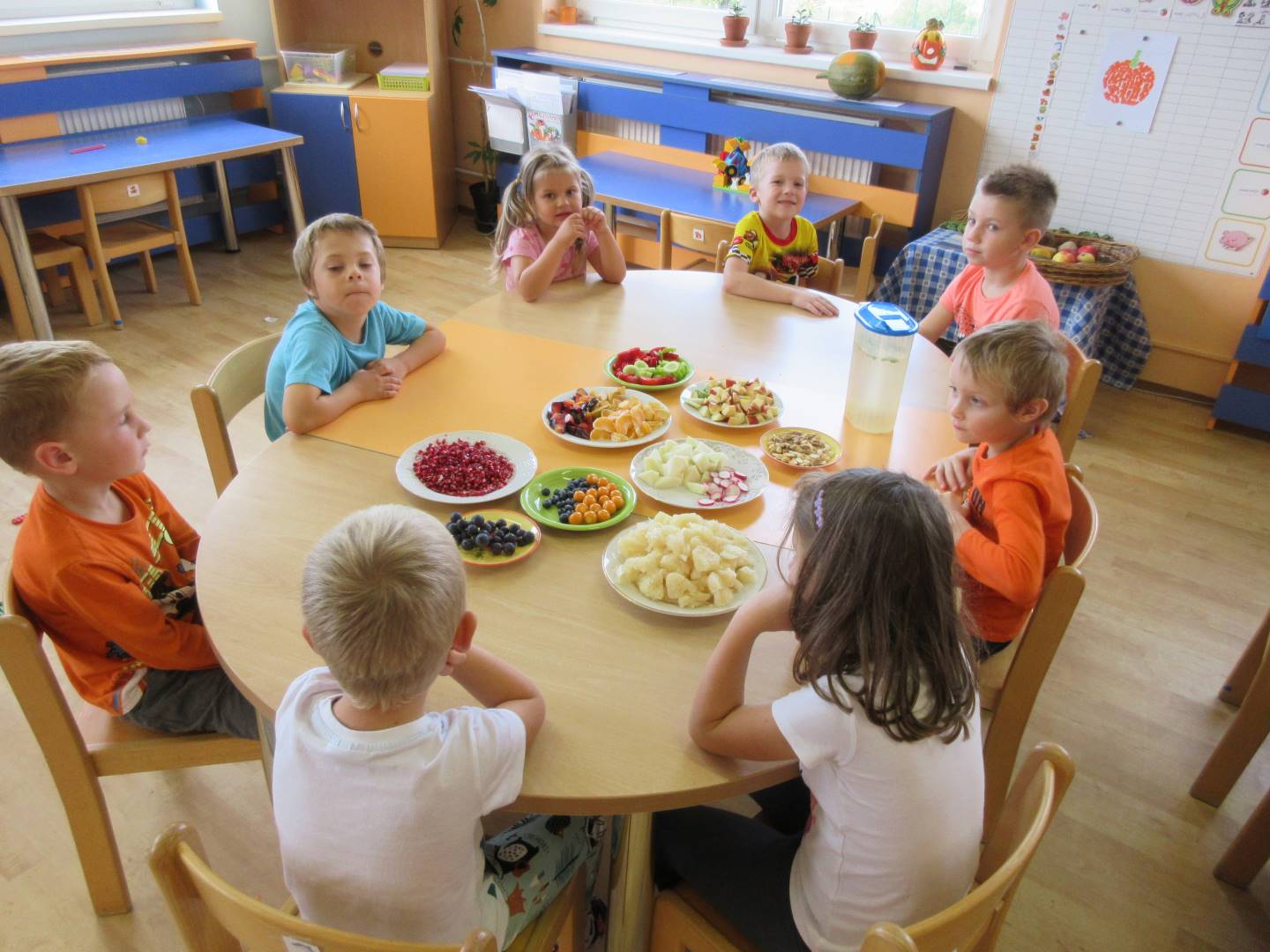 V měsíci říjnu jsme se v Beruškách věnovali tématu ,,Jablíčko se kutálelo“. Ve třídě jsme měli nádhernou výstavu ovoce a zeleniny, za kterou patří i velké poděkování rodičům. Děti se naučily rozeznávat ovoce a zeleninu, poznávání podle hmatu, chuti a čichu. Zahráli jsme si hru s barvičkami a říkanku ,,Barvy ovoce“. Vyprávěli jsme si pohádku ,,O veliké řepě“ a naučili se říkanku s pohybem ,,Kutálí se brambora“. Ovoce a zeleninu jsme si také vyrobili – MOZAIKA. Povídali jsme si o zvířátkách, která se ukládají k zimnímu spánku a pozorovali ježka na zahradě. Z nasbíraných kaštanů jsme si také ježečka vyrobili a naučili se novou básničku. Hodně času jsme trávili venku, hráli si a pozorovali změny v přírodě. Nechyběl ani zpěv, pracovní listy a sportovní vyžití.