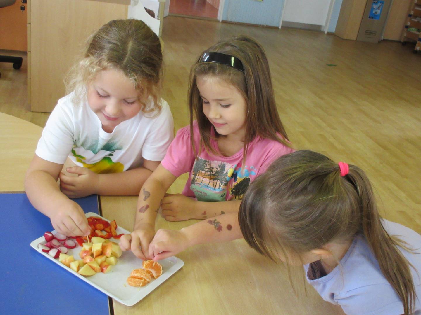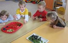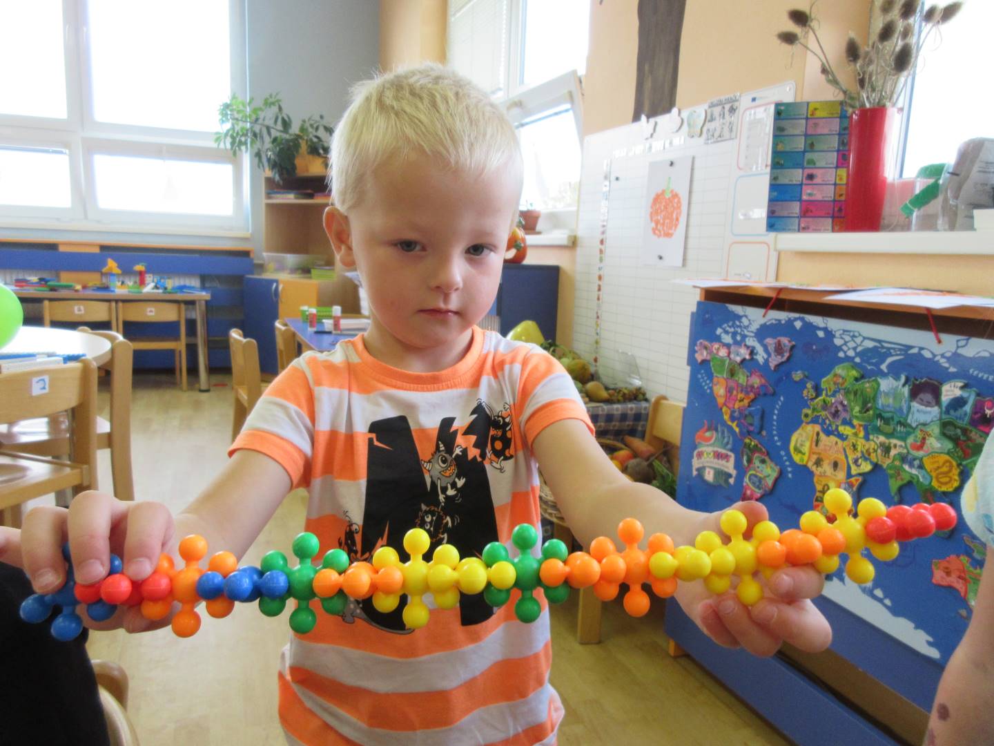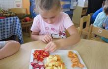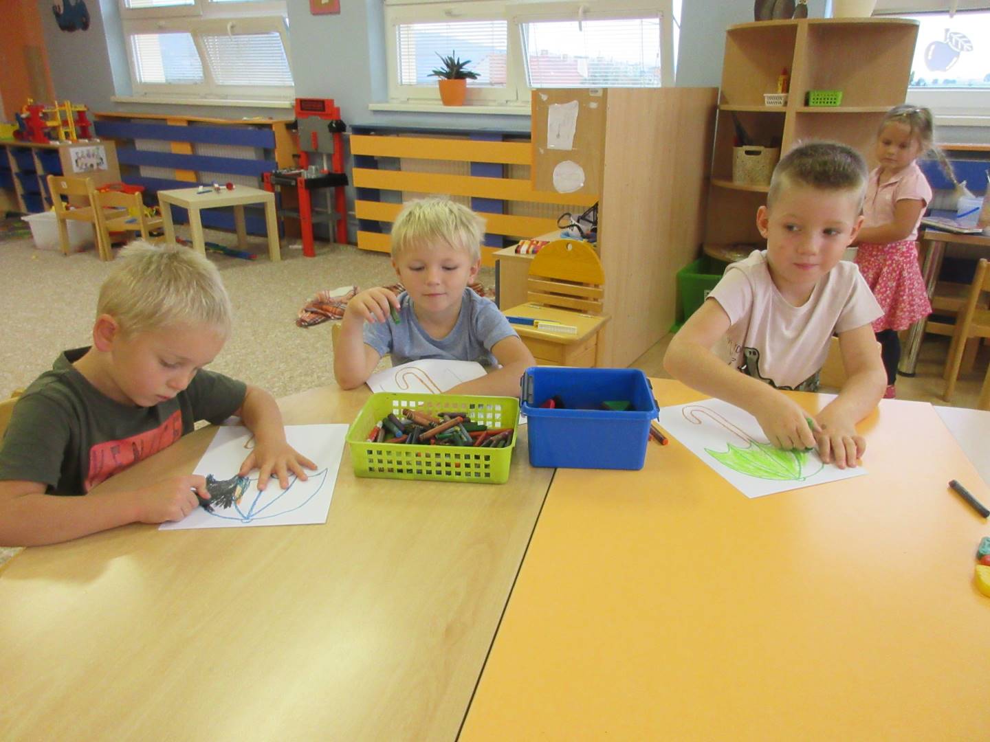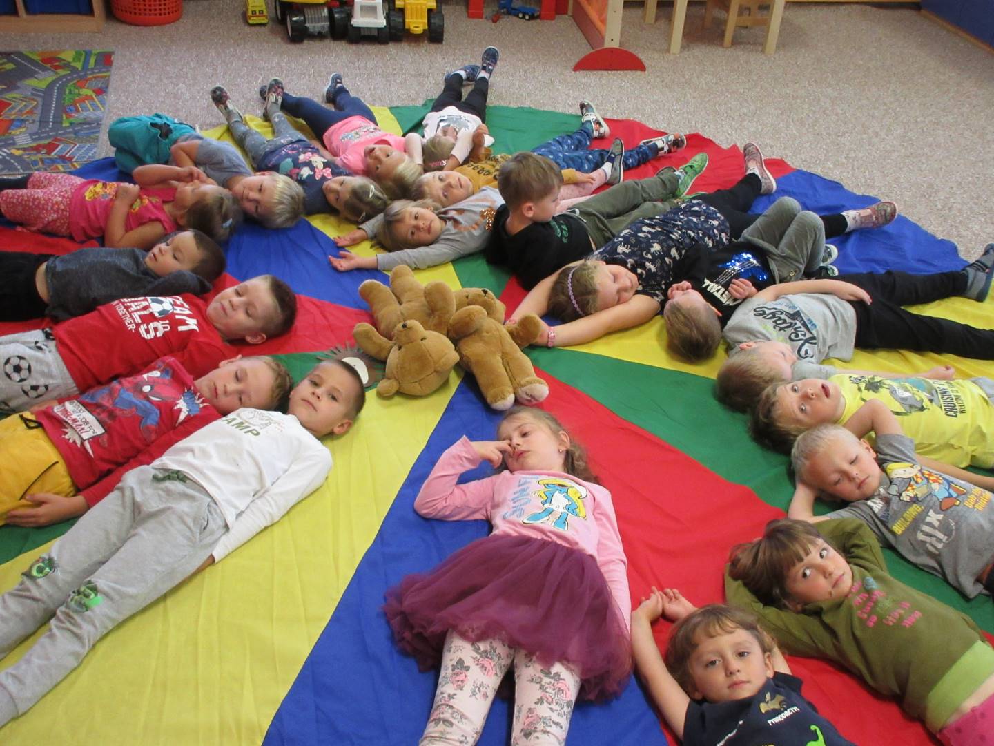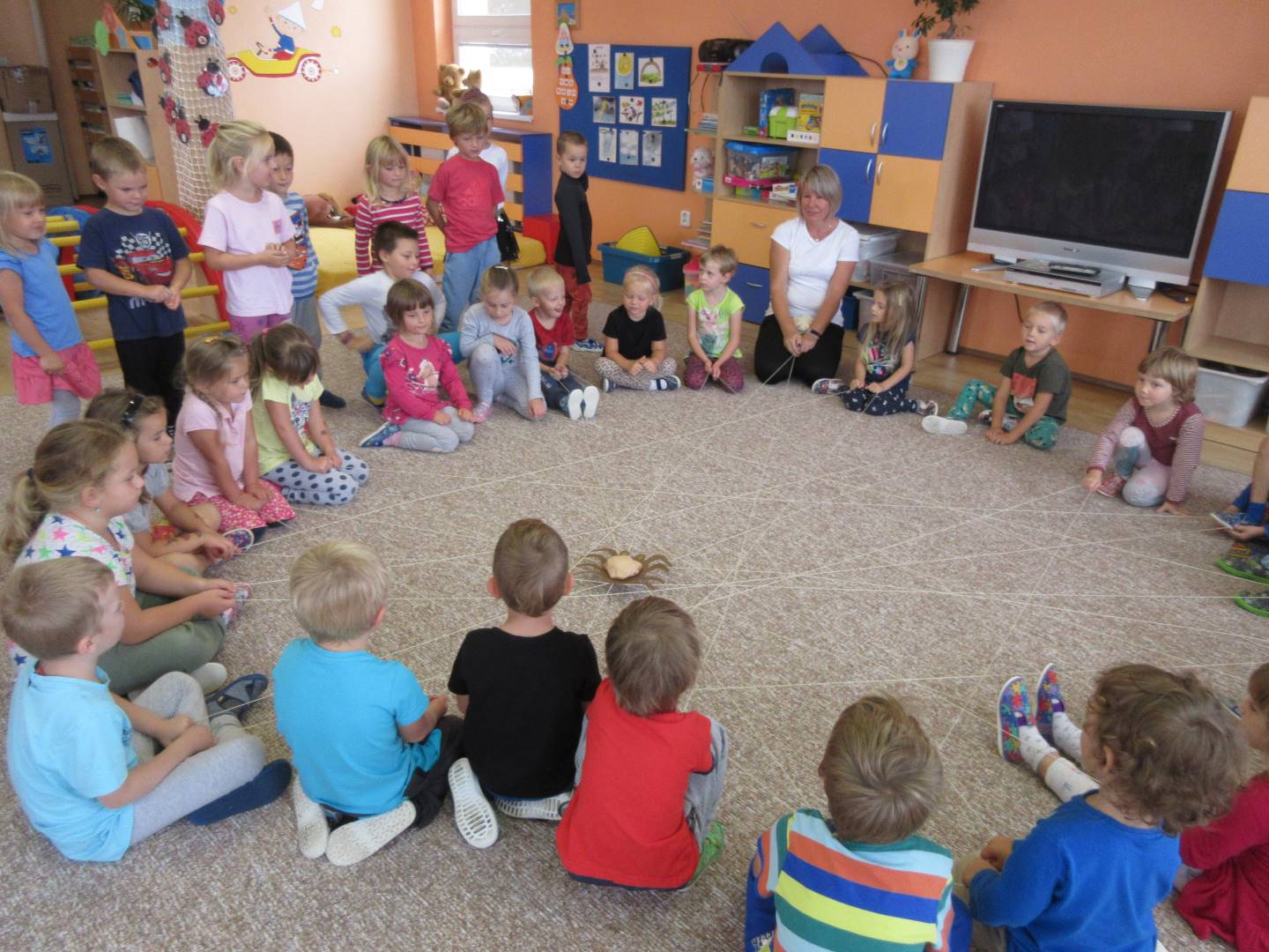 V měsíci říjnu jsme se v Beruškách věnovali tématu ,,Jablíčko se kutálelo“. Ve třídě jsme měli nádhernou výstavu ovoce a zeleniny, za kterou patří i velké poděkování rodičům. Děti se naučily rozeznávat ovoce a zeleninu, poznávání podle hmatu, chuti a čichu. Zahráli jsme si hru s barvičkami a říkanku ,,Barvy ovoce“. Vyprávěli jsme si pohádku ,,O veliké řepě“ a naučili se říkanku s pohybem ,,Kutálí se brambora“. Ovoce a zeleninu jsme si také vyrobili – MOZAIKA. Povídali jsme si o zvířátkách, která se ukládají k zimnímu spánku a pozorovali ježka na zahradě. Z nasbíraných kaštanů jsme si také ježečka vyrobili a naučili se novou básničku. Hodně času jsme trávili venku, hráli si a pozorovali změny v přírodě. Nechyběl ani zpěv, pracovní listy a sportovní vyžití.