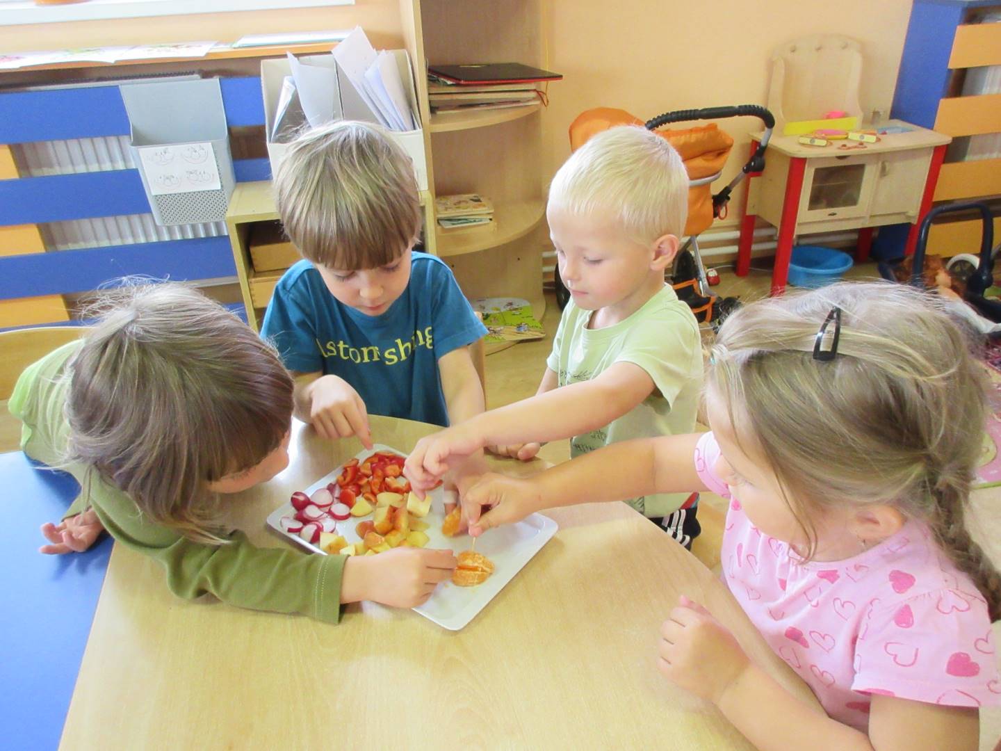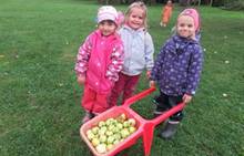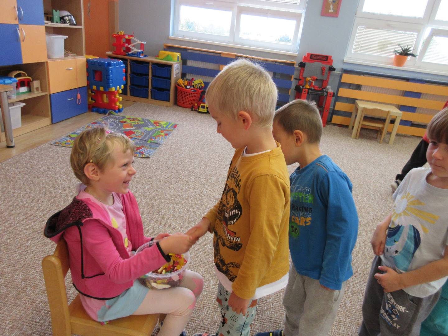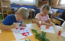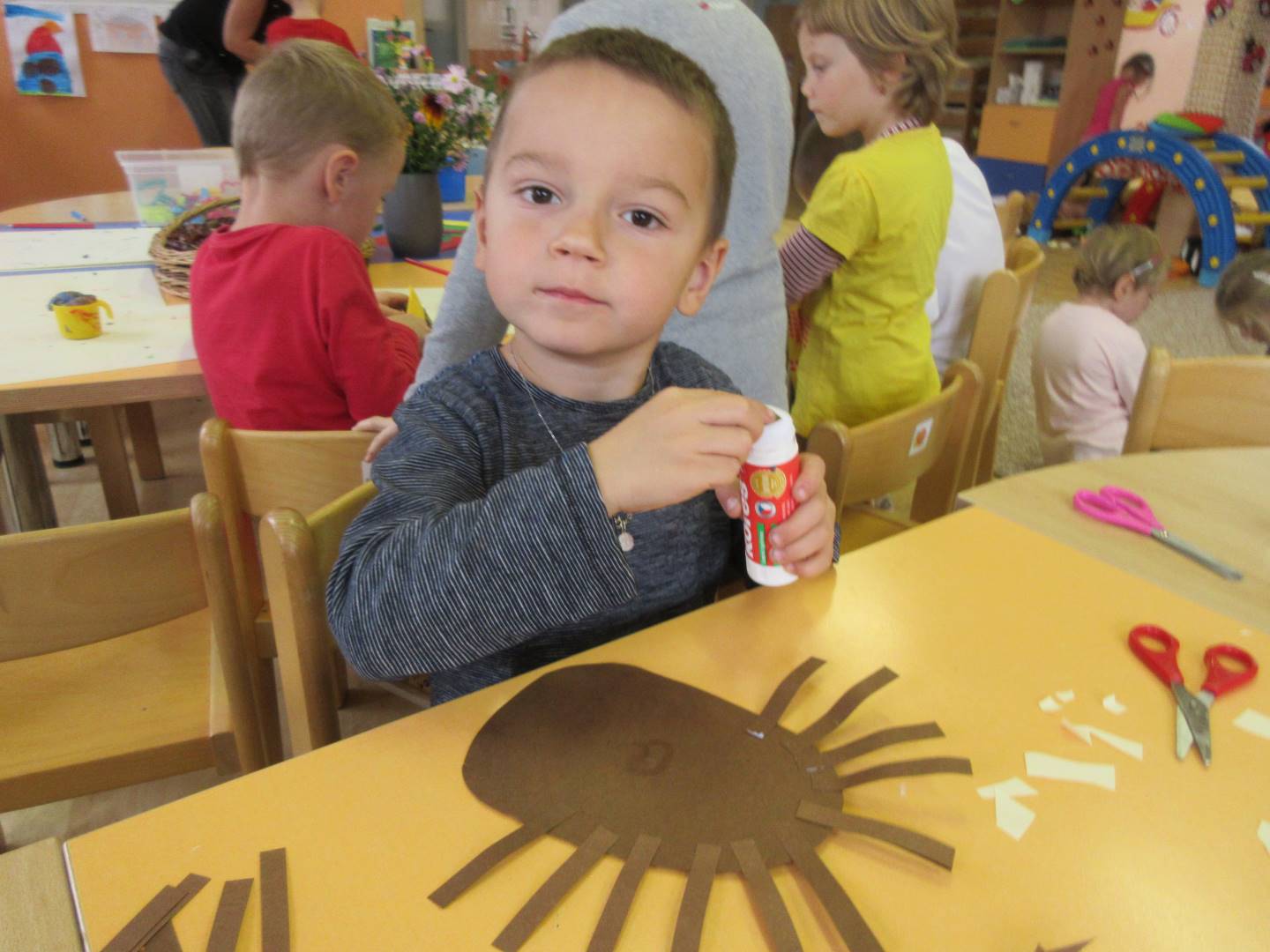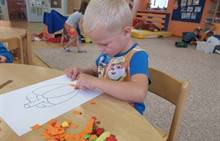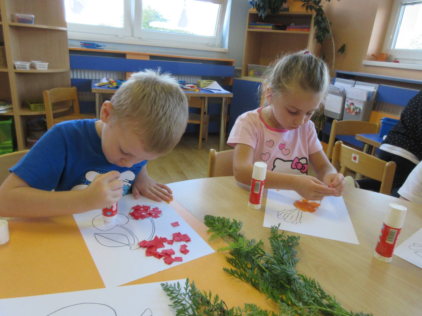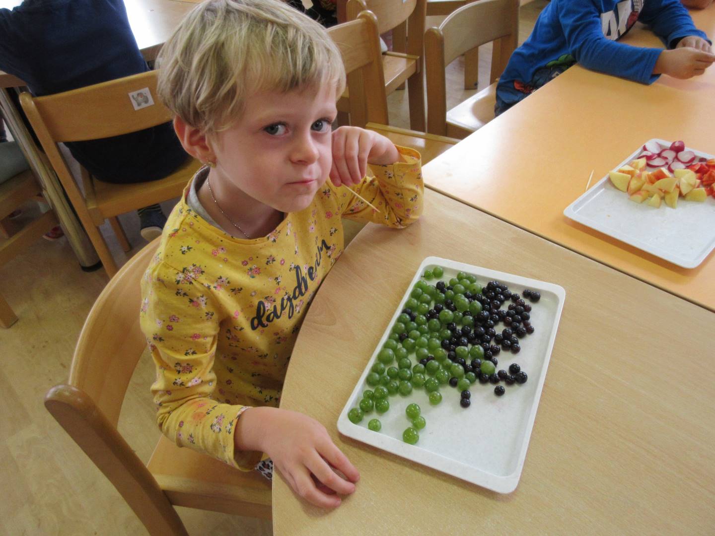 V měsíci říjnu jsme se v Beruškách věnovali tématu ,,Jablíčko se kutálelo“. Ve třídě jsme měli nádhernou výstavu ovoce a zeleniny, za kterou patří i velké poděkování rodičům. Děti se naučily rozeznávat ovoce a zeleninu, poznávání podle hmatu, chuti a čichu. Zahráli jsme si hru s barvičkami a říkanku ,,Barvy ovoce“. Vyprávěli jsme si pohádku ,,O veliké řepě“ a naučili se říkanku s pohybem ,,Kutálí se brambora“. Ovoce a zeleninu jsme si také vyrobili – MOZAIKA. Povídali jsme si o zvířátkách, která se ukládají k zimnímu spánku a pozorovali ježka na zahradě. Z nasbíraných kaštanů jsme si také ježečka vyrobili a naučili se novou básničku. Hodně času jsme trávili venku, hráli si a pozorovali změny v přírodě. Nechyběl ani zpěv, pracovní listy a sportovní vyžití.