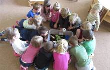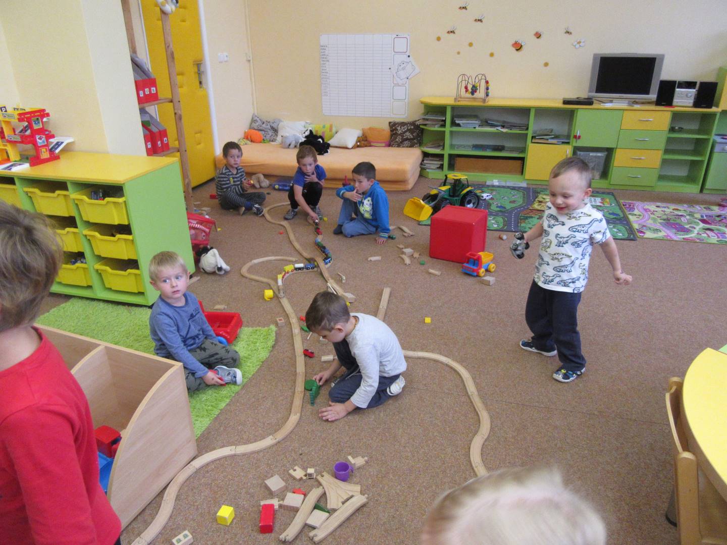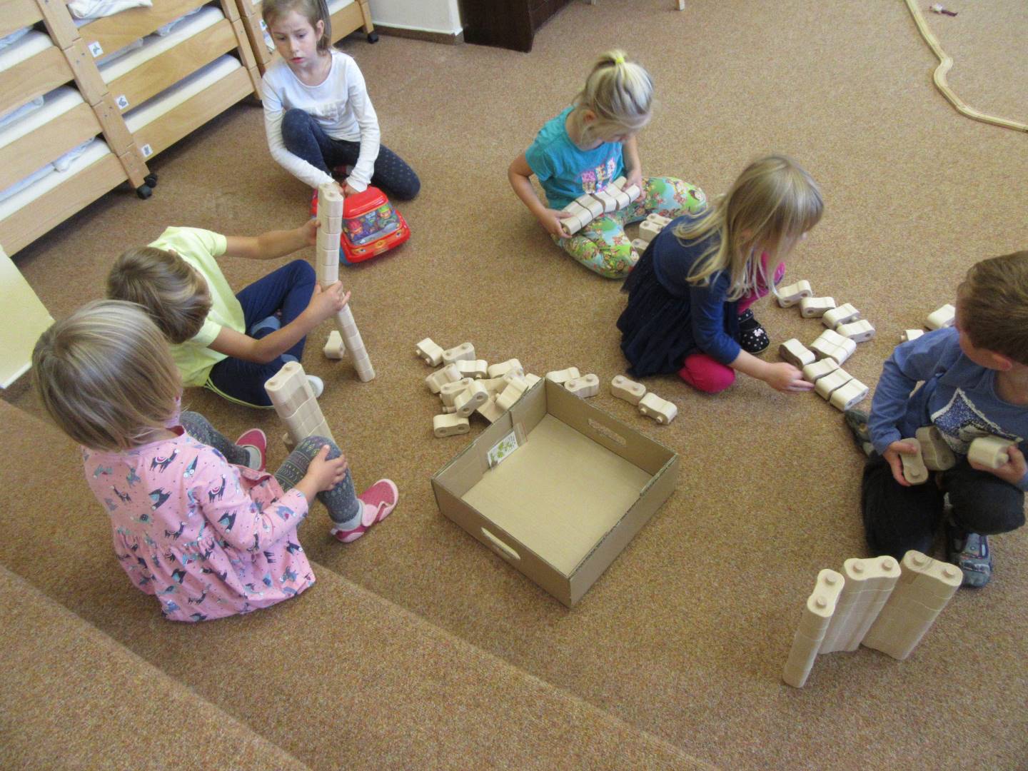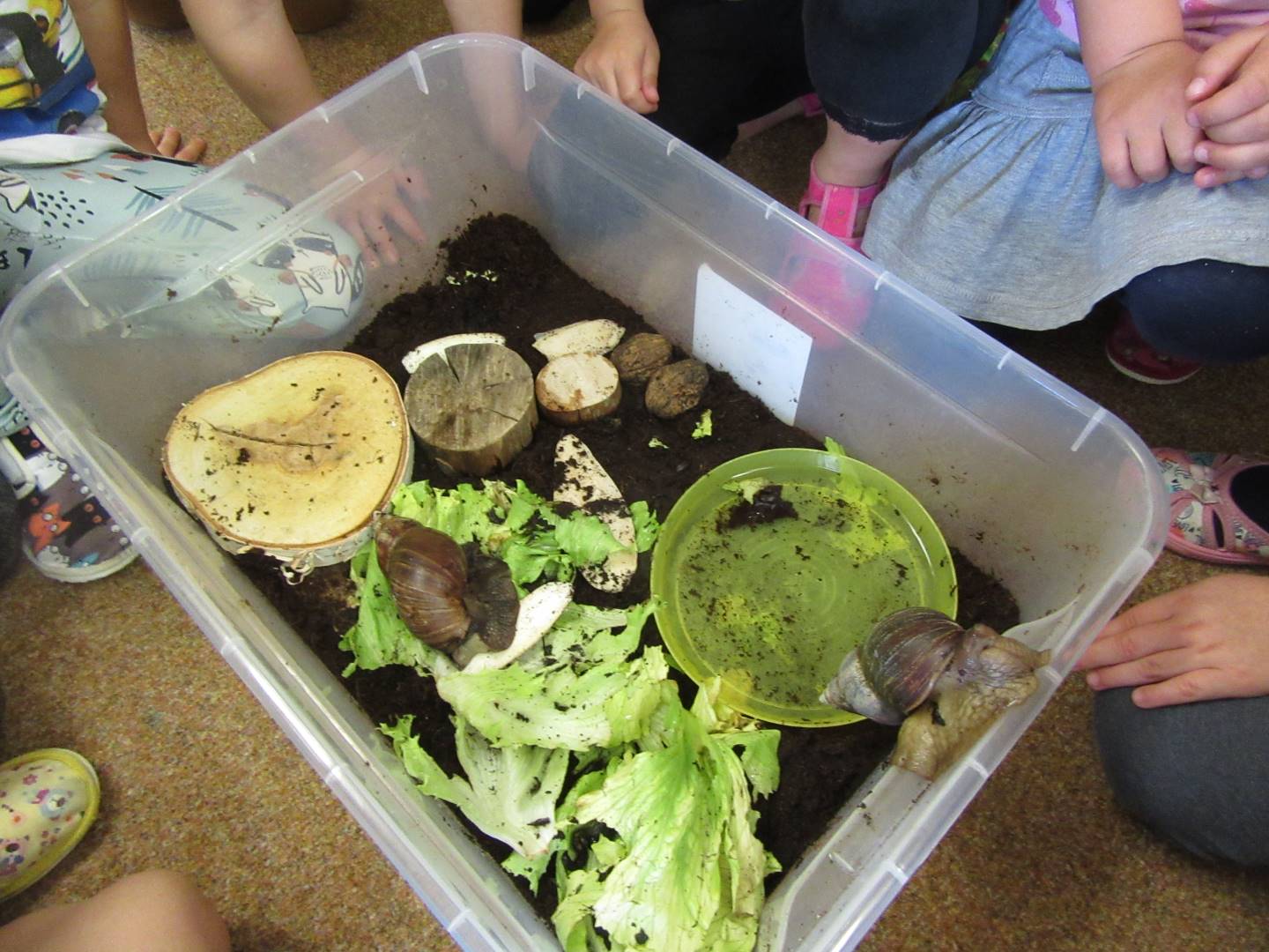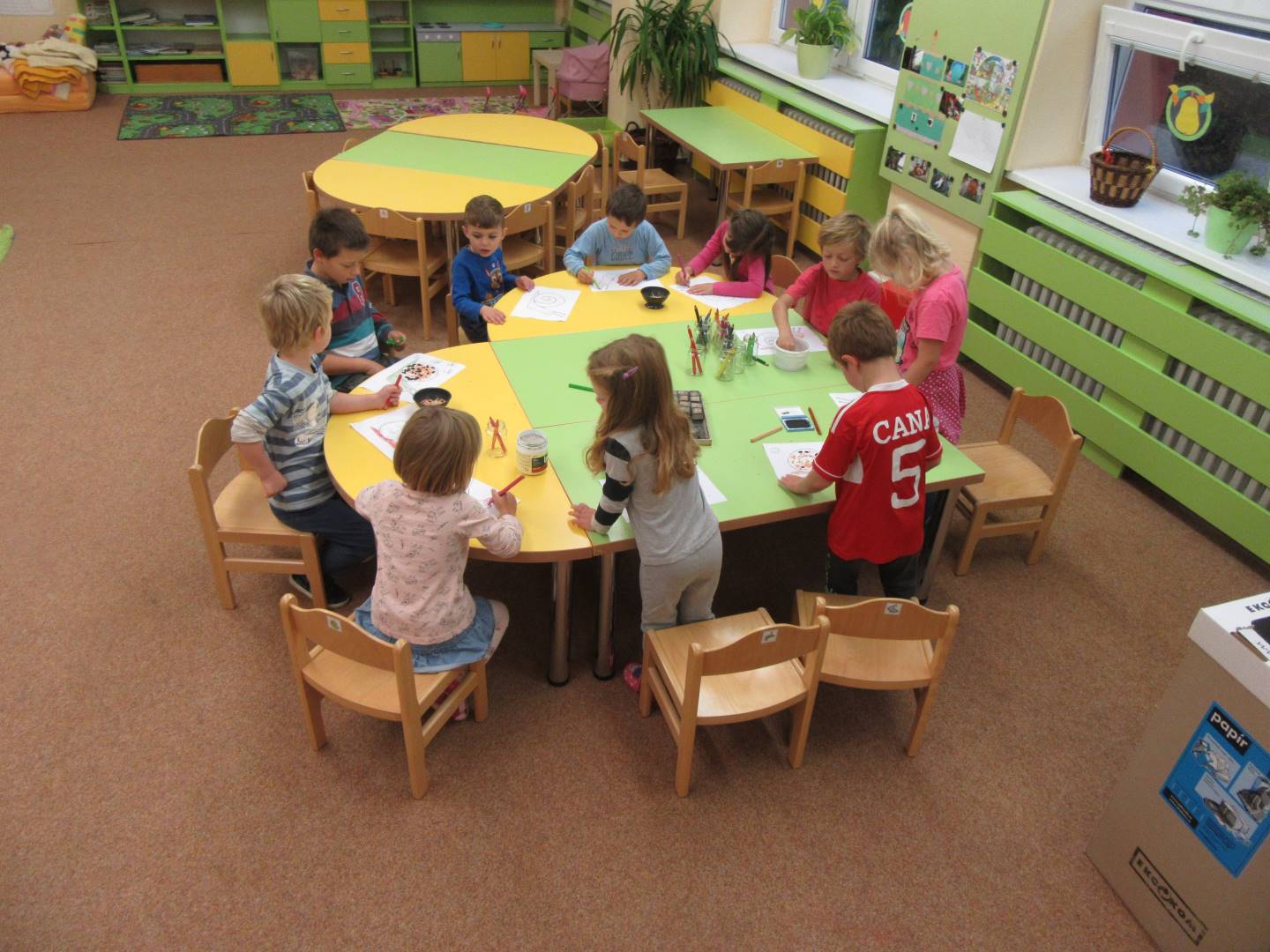 V měsíci říjnu jsme měli podtéma "U rozvážného hlemýždě". Povídali jsme si o podzimní přírodě a změnách, které nastávají v tomto období, o počasí i o tom, jaké plody nám podzim přináší. Naučili jsme se básničku s pohybem o šnekovi a každý si jednoho šneka také vyrobil pomocí luštěnin. U maringotky si děti vyrobily strašidýlka z látky a šišky. Ve třídě jsme přivitali nové kamarády, šnečky Bleska a Maxe, pro které si děti samy vymyslely jména.