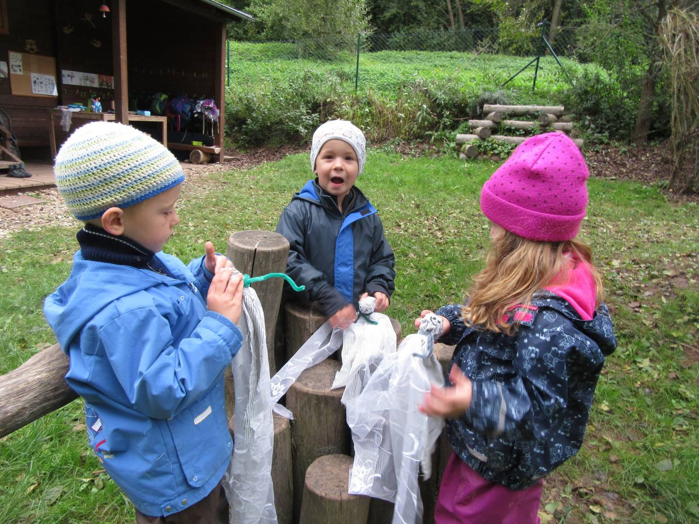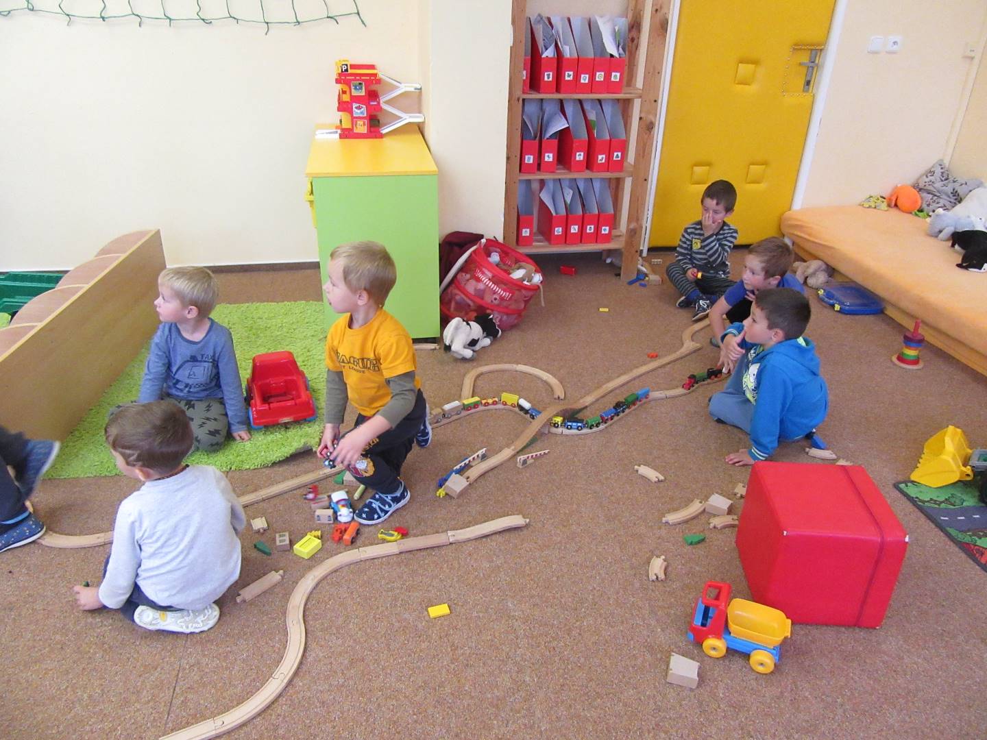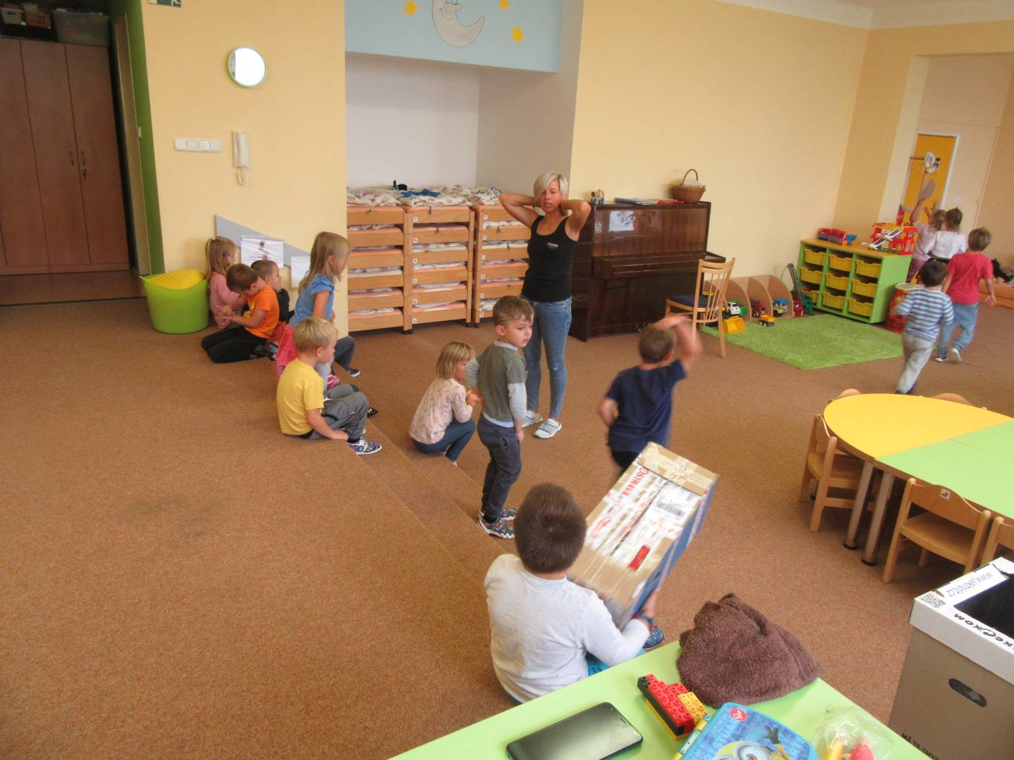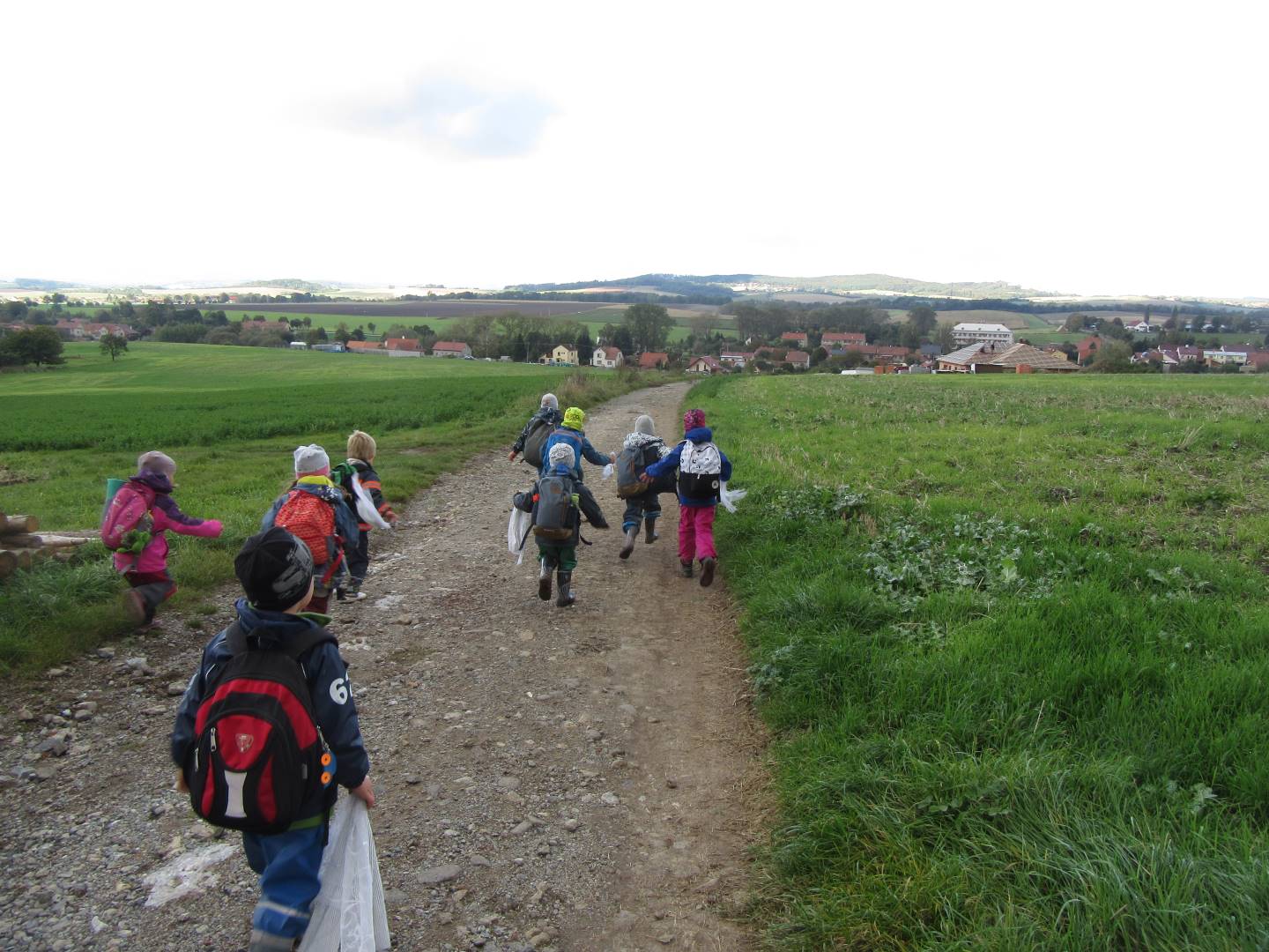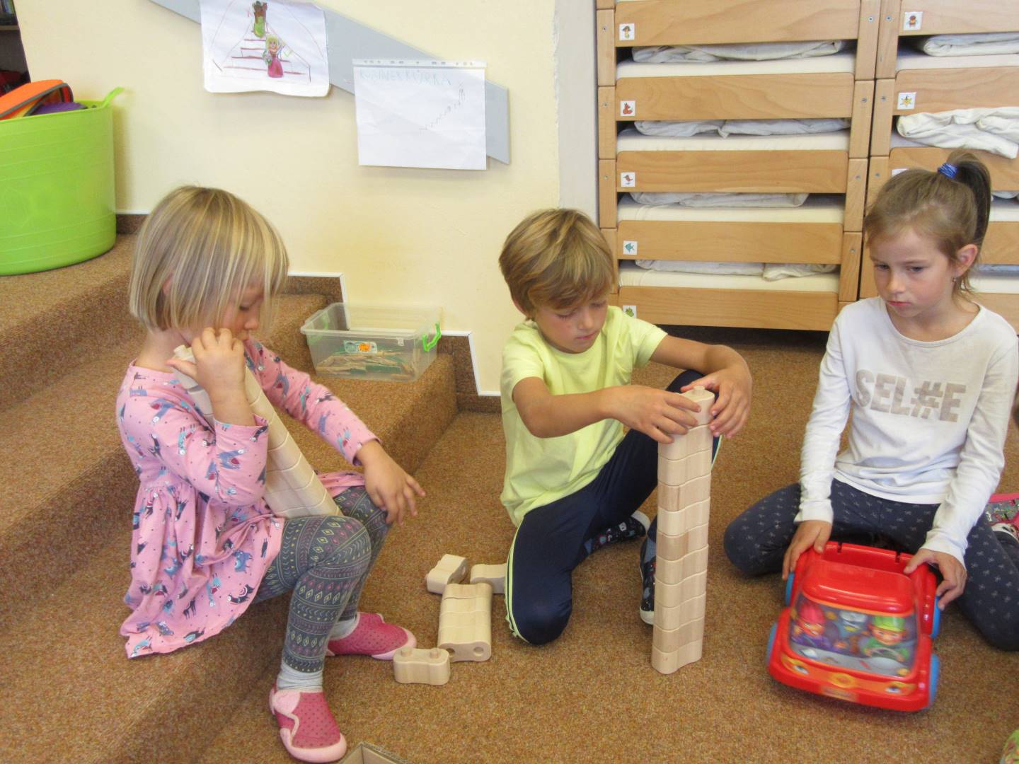 V měsíci říjnu jsme měli podtéma "U rozvážného hlemýždě". Povídali jsme si o podzimní přírodě a změnách, které nastávají v tomto období, o počasí i o tom, jaké plody nám podzim přináší. Naučili jsme se básničku s pohybem o šnekovi a každý si jednoho šneka také vyrobil pomocí luštěnin. U maringotky si děti vyrobily strašidýlka z látky a šišky. Ve třídě jsme přivitali nové kamarády, šnečky Bleska a Maxe, pro které si děti samy vymyslely jména.