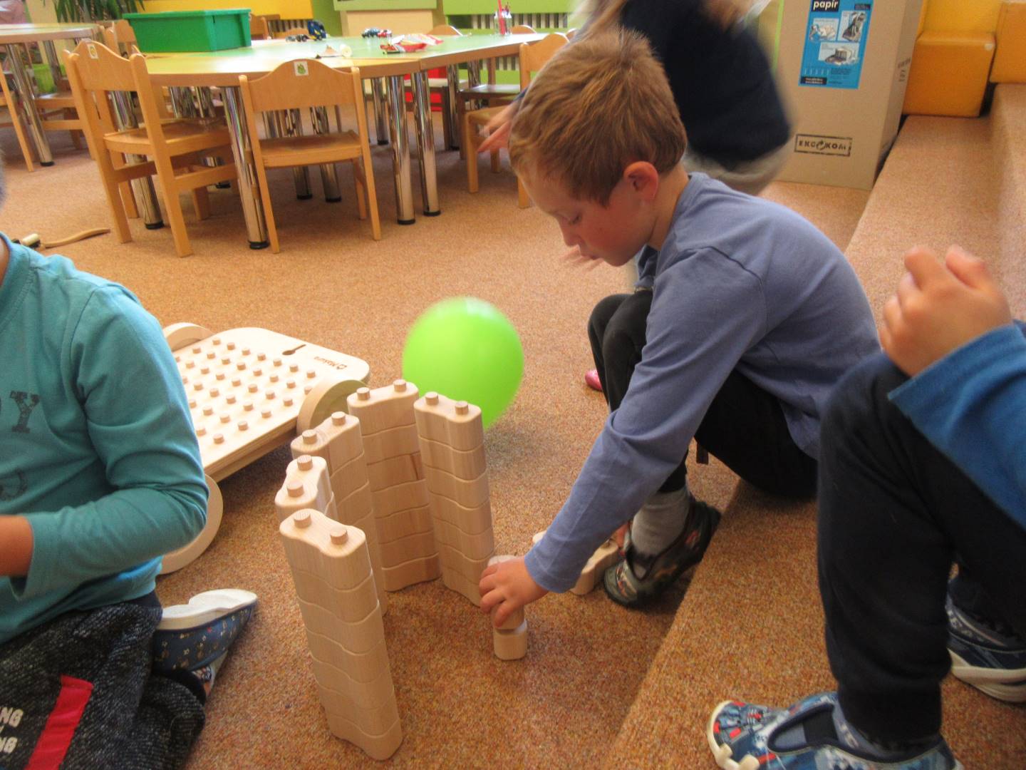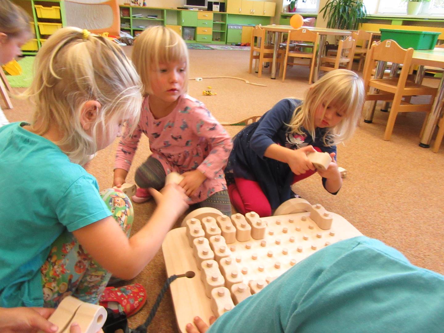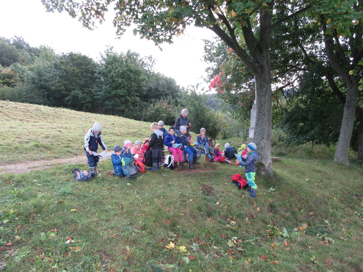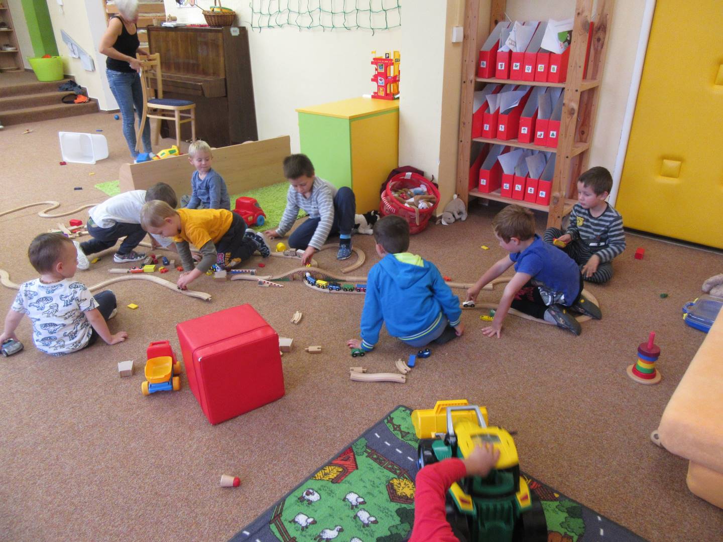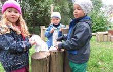 V měsíci říjnu jsme měli podtéma "U rozvážného hlemýždě". Povídali jsme si o podzimní přírodě a změnách, které nastávají v tomto období, o počasí i o tom, jaké plody nám podzim přináší. Naučili jsme se básničku s pohybem o šnekovi a každý si jednoho šneka také vyrobil pomocí luštěnin. U maringotky si děti vyrobily strašidýlka z látky a šišky. Ve třídě jsme přivitali nové kamarády, šnečky Bleska a Maxe, pro které si děti samy vymyslely jména.