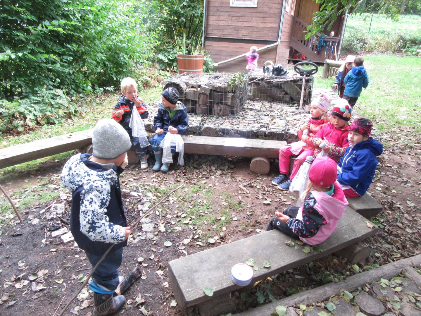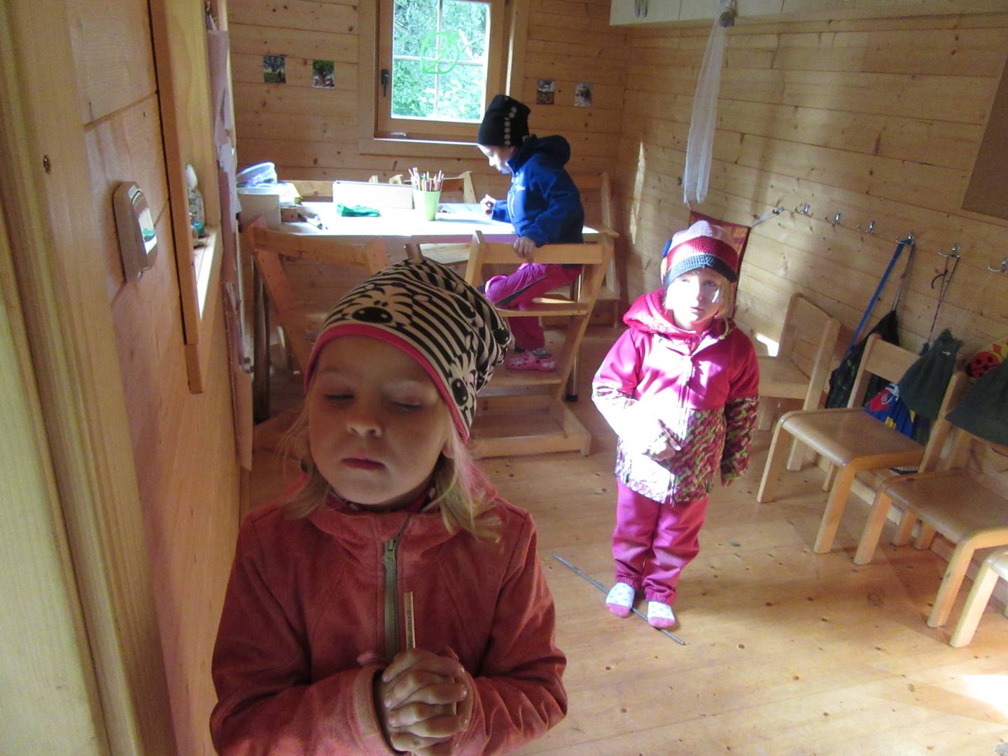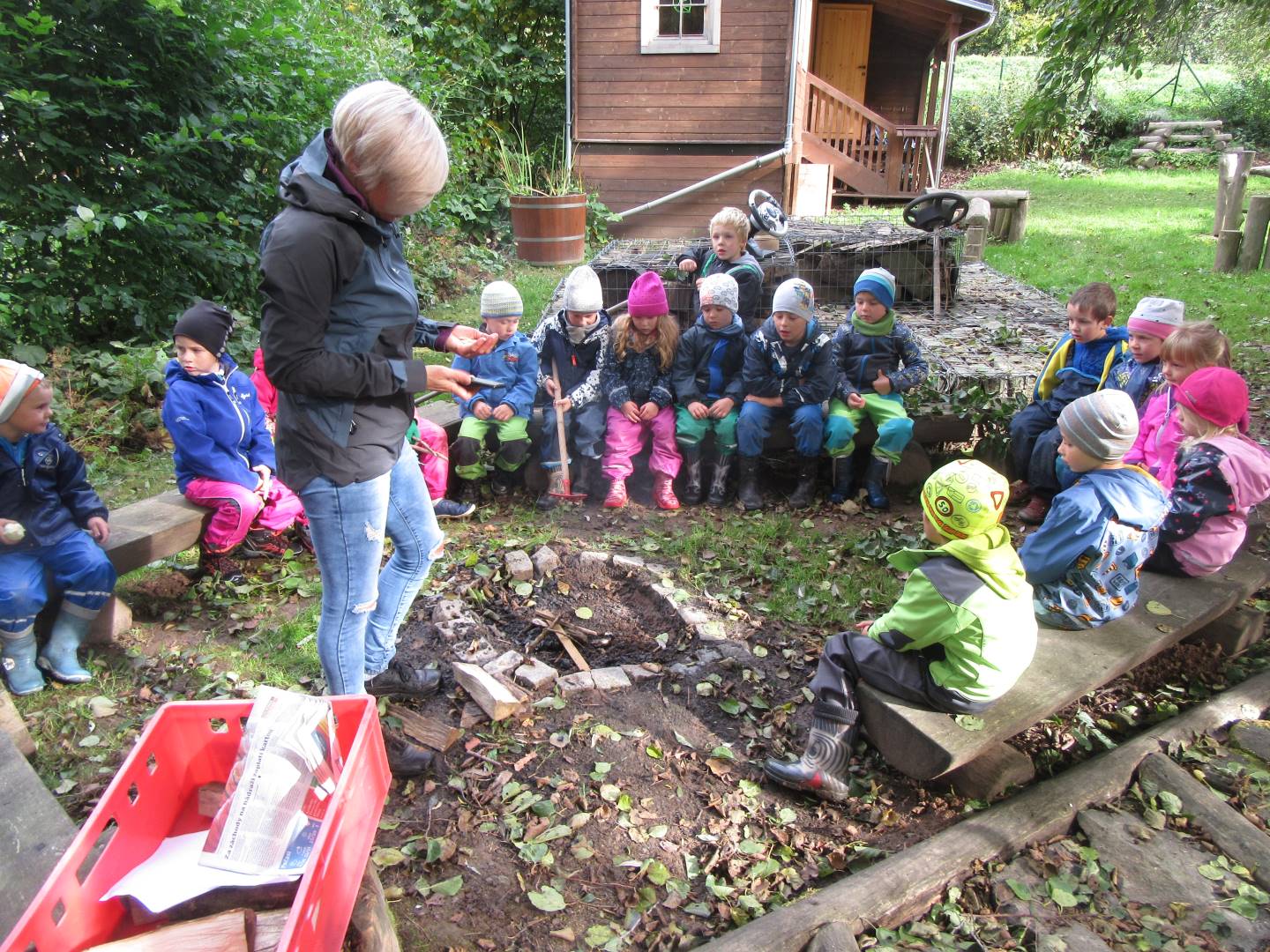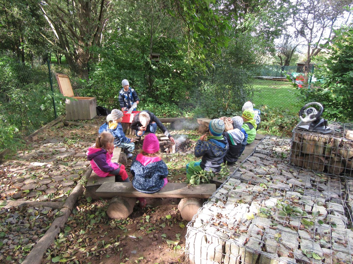 V měsíci říjnu jsme měli podtéma "U rozvážného hlemýždě". Povídali jsme si o podzimní přírodě a změnách, které nastávají v tomto období, o počasí i o tom, jaké plody nám podzim přináší. Naučili jsme se básničku s pohybem o šnekovi a každý si jednoho šneka také vyrobil pomocí luštěnin. U maringotky si děti vyrobily strašidýlka z látky a šišky. Ve třídě jsme přivitali nové kamarády, šnečky Bleska a Maxe, pro které si děti samy vymyslely jména.