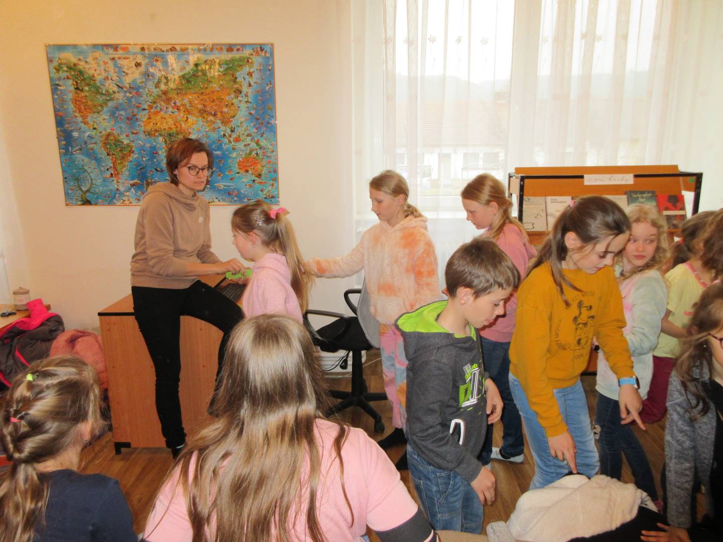 V rámci března – měsíce knihy jsme ve čtvrtek 31.3. se školní družinou navštívili místní knihovnu v Knínicích. S úsměvem nás přivítala paní Simona Vybíhalová, která má nyní knihovnu na starost. Pro děti si připravila zábavné aktivity spojené s knihami a jejich postavami, přečetla nám kapitolu z knihy Ivany Peroutkové „ Valentýnka a veterinární ordinace“. Na závěr si žáci vyrobili svoji záložku do knížky, a jako vzpomínku na příjemně strávené odpoledne v knihovně dostali i malý dáreček. Tímto paní Vybíhalové děkujeme za krásný doprovodný program a věříme, že se děti budou do knihovny rády vracet.