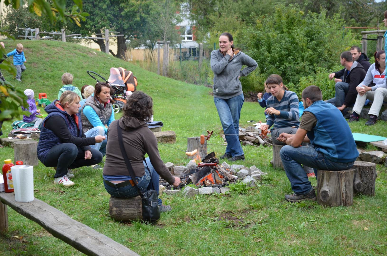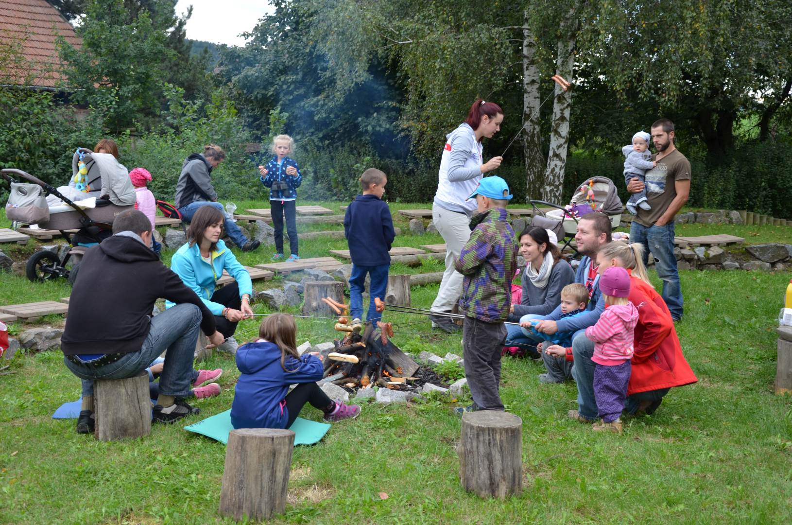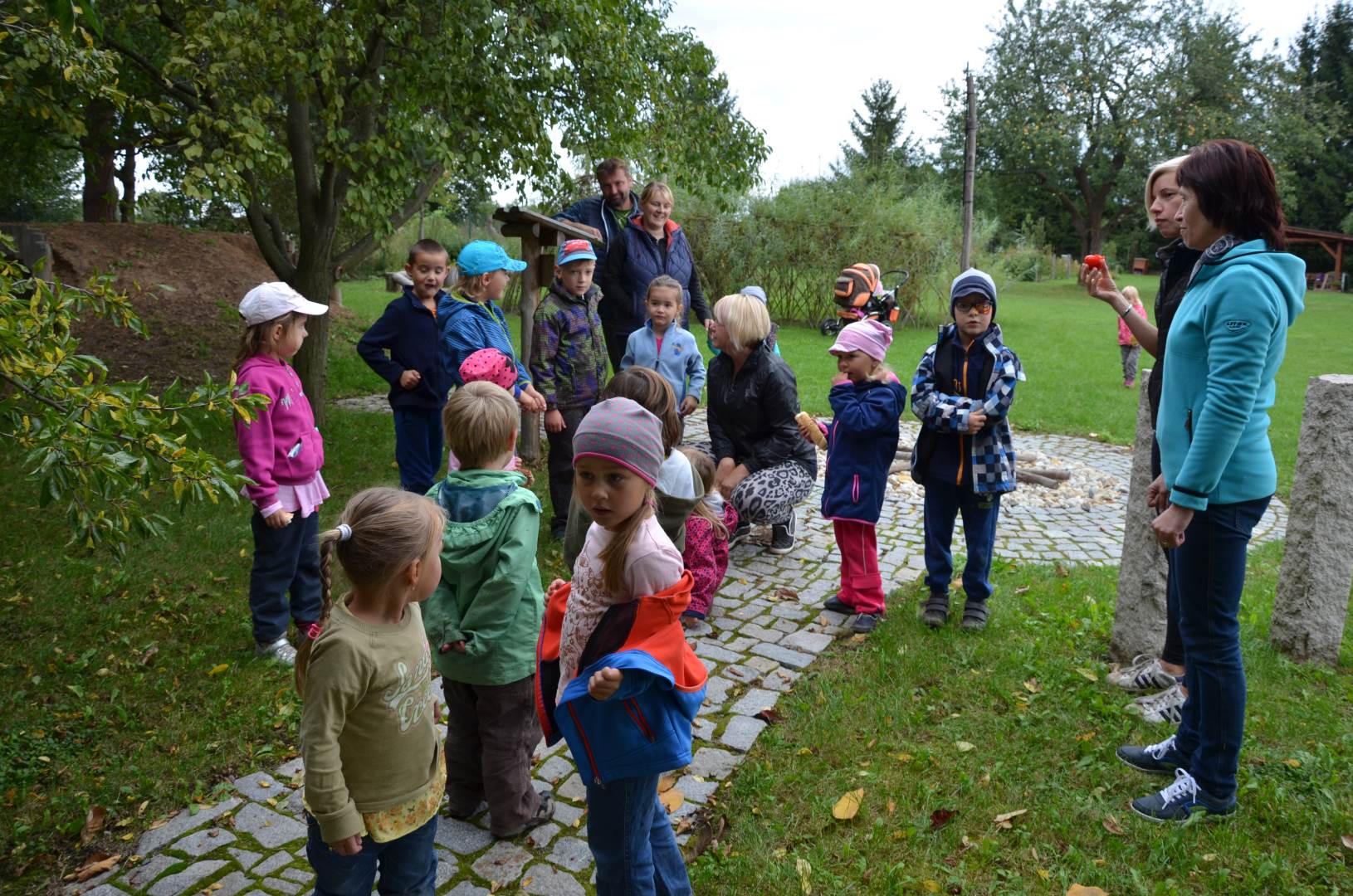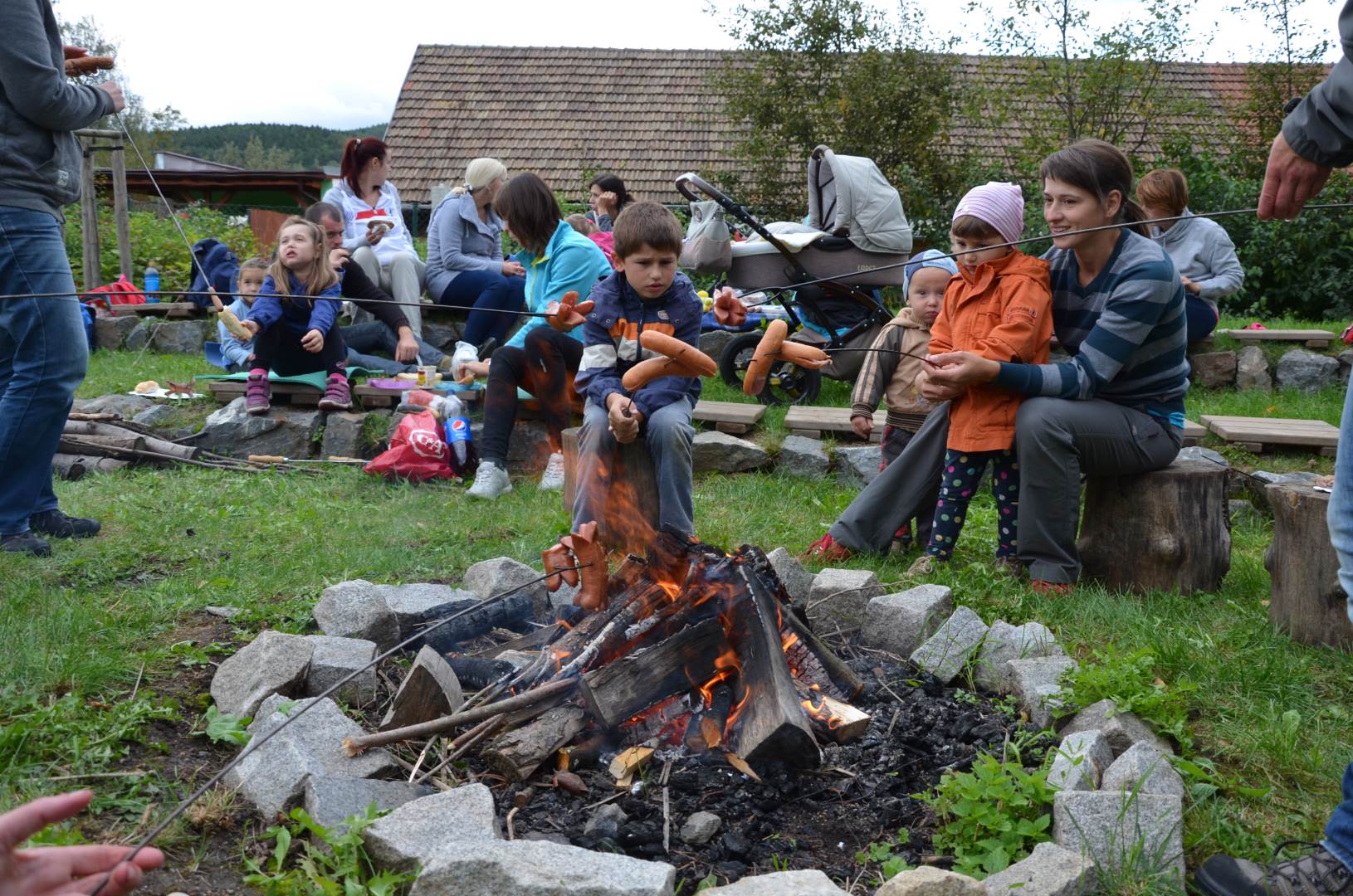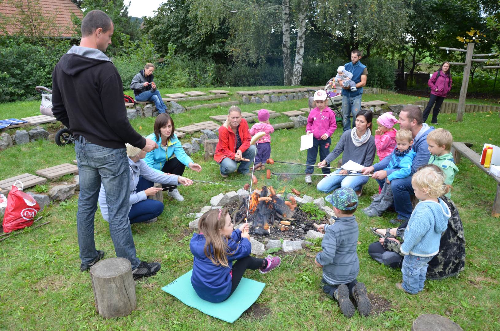 V pátek 15. 9. jsme se sešli společně (rodiče s dětmi a paní učitelky) na přírodní zahradě MŠ, abychom se vzájemně lépe poznali. V družném hovoru čas rychle utíkal. Počasí nám přálo, a tak jsme si mohli opéct i párky. Každé dítě si pak na cestu domů utrhlo se zavázanýma očima jednu sladkou odměnu.