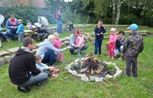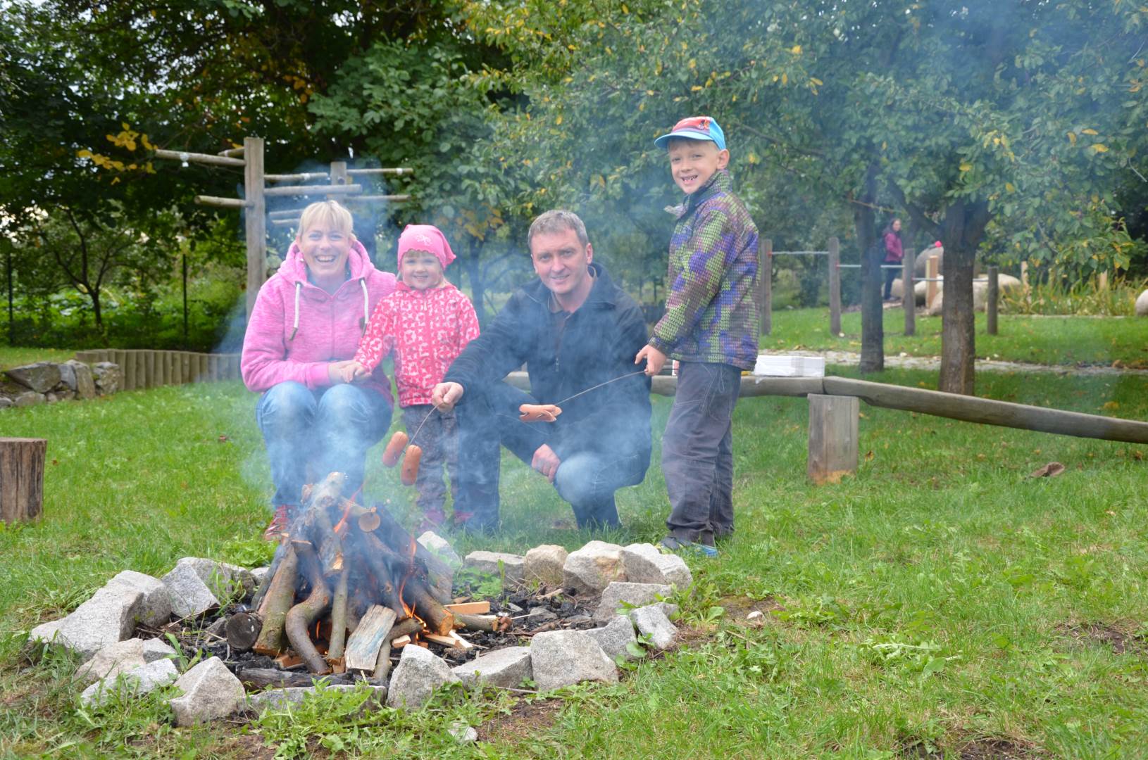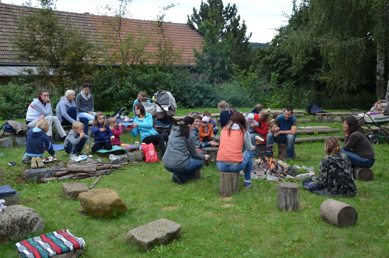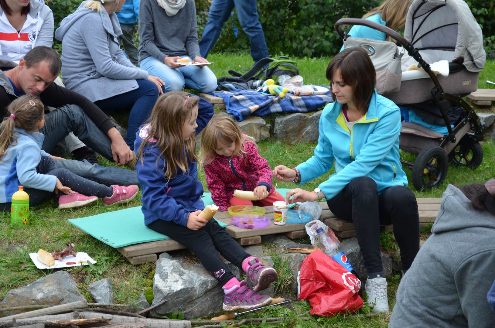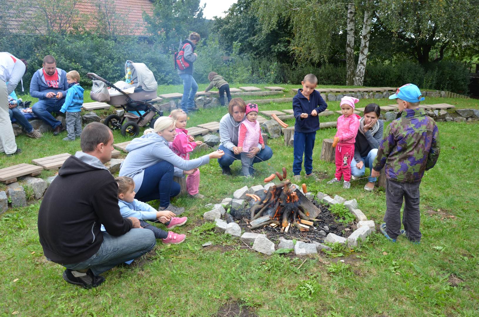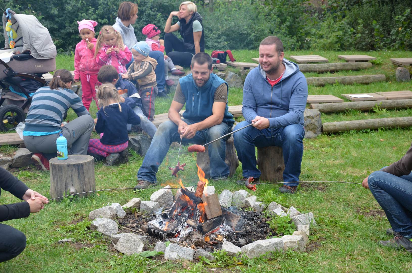 V pátek 15. 9. jsme se sešli společně (rodiče s dětmi a paní učitelky) na přírodní zahradě MŠ, abychom se vzájemně lépe poznali. V družném hovoru čas rychle utíkal. Počasí nám přálo, a tak jsme si mohli opéct i párky. Každé dítě si pak na cestu domů utrhlo se zavázanýma očima jednu sladkou odměnu.