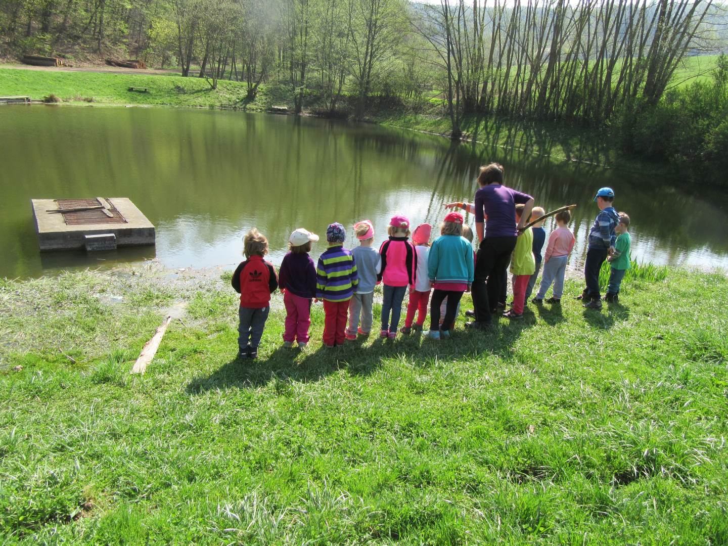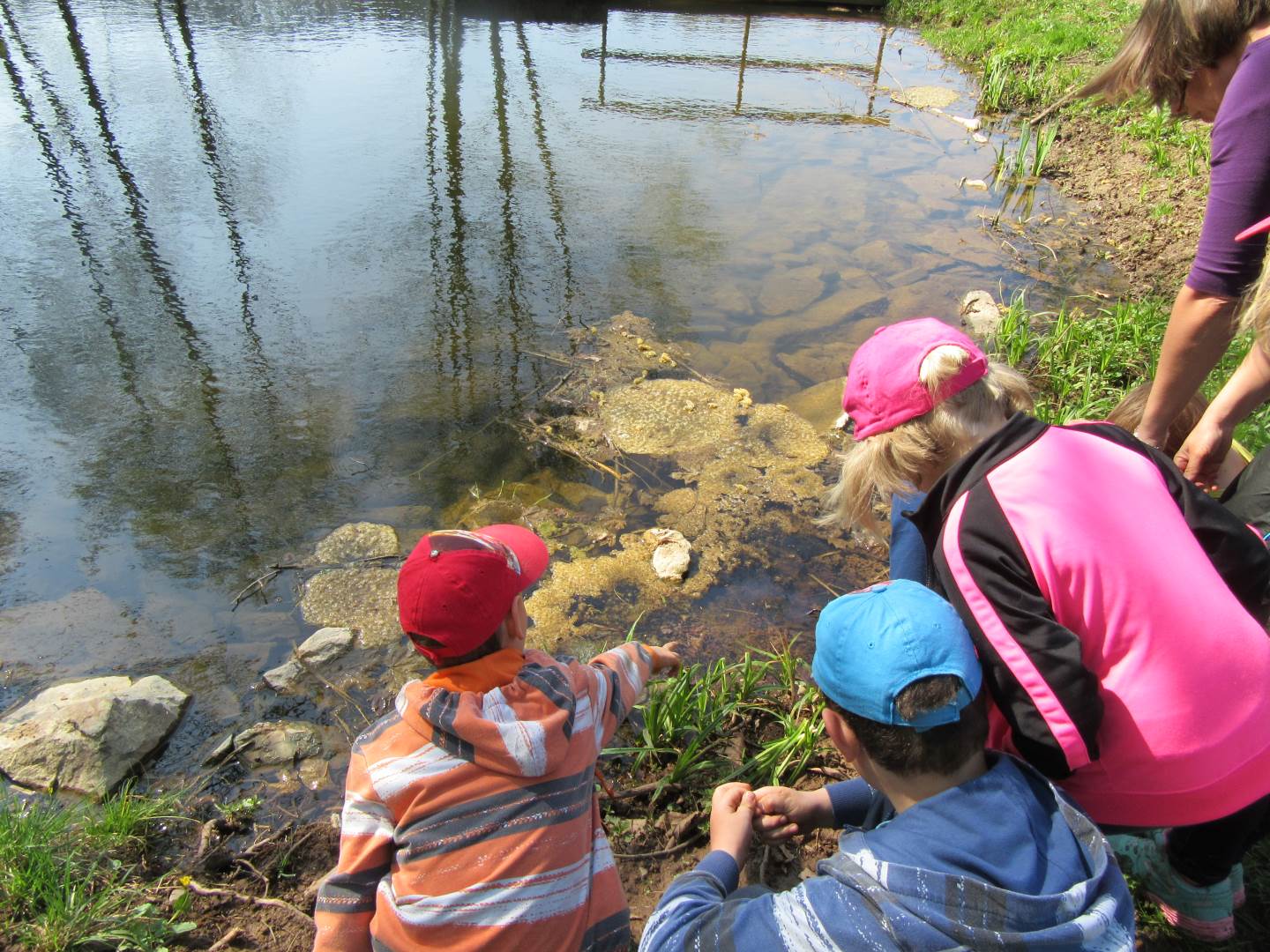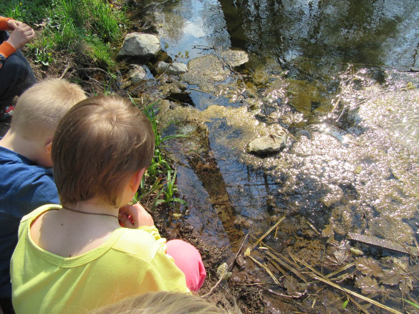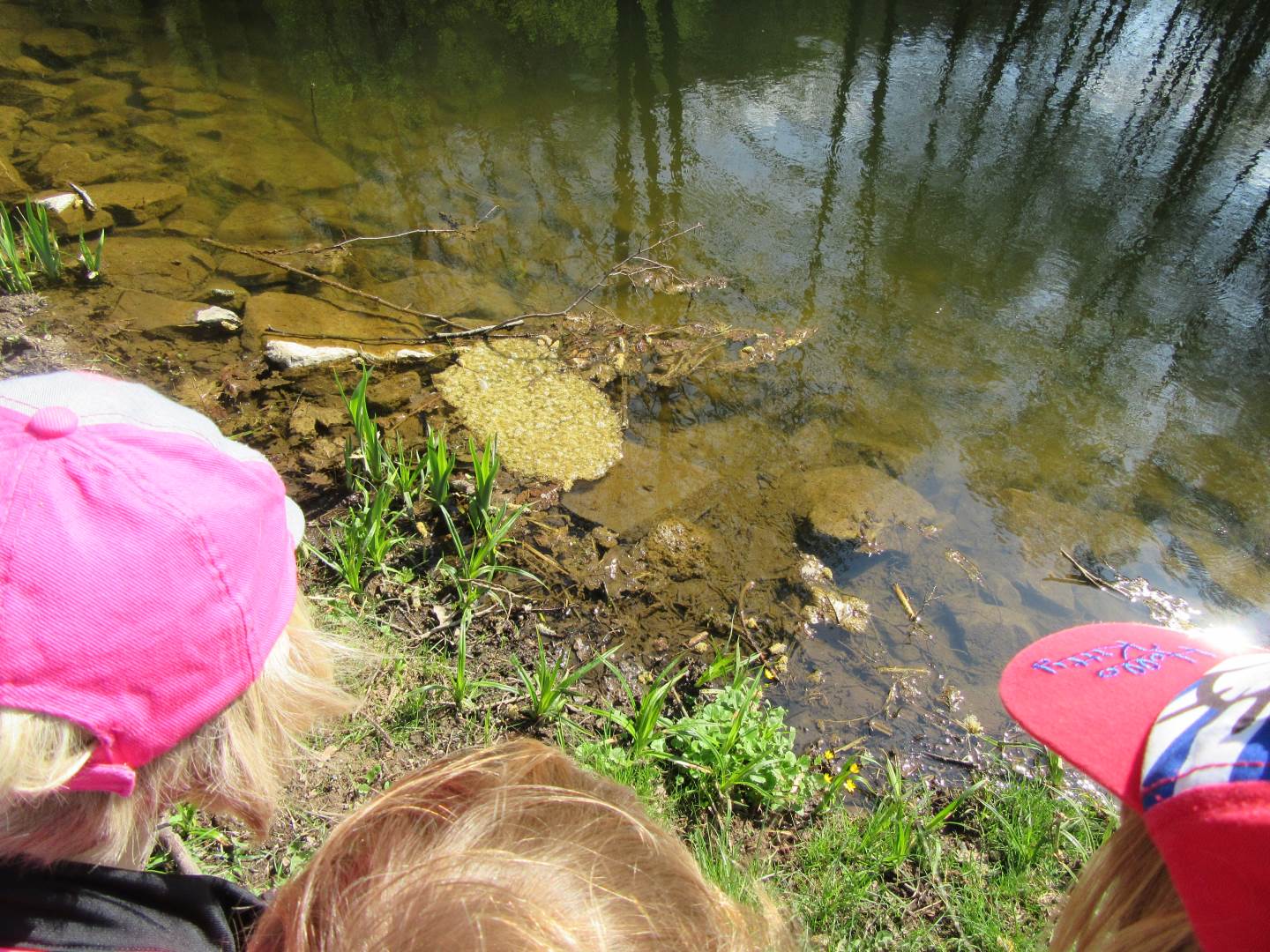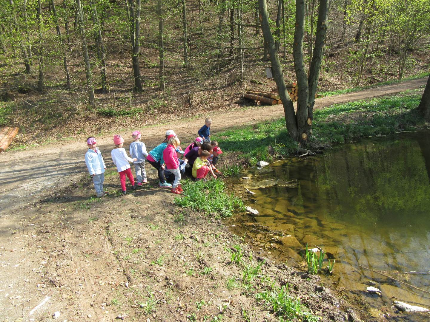 Dnešní dopoledne jsme prožili v příjemném prostředí lesního zázemí u rybníčka. Děti pokračovaly v pozorování živé i neživé přírody. Zkoumali jsme vajíčka skokanů a ropuch. Chlapci stavěli hráze na potůčku,společně jsme si zahráli hru na žáby. Kdo chtěl, mohl si za dozoru p. učitelek, zatloukat hřebíčky nebo řezat klacíky malou pilkou.