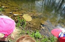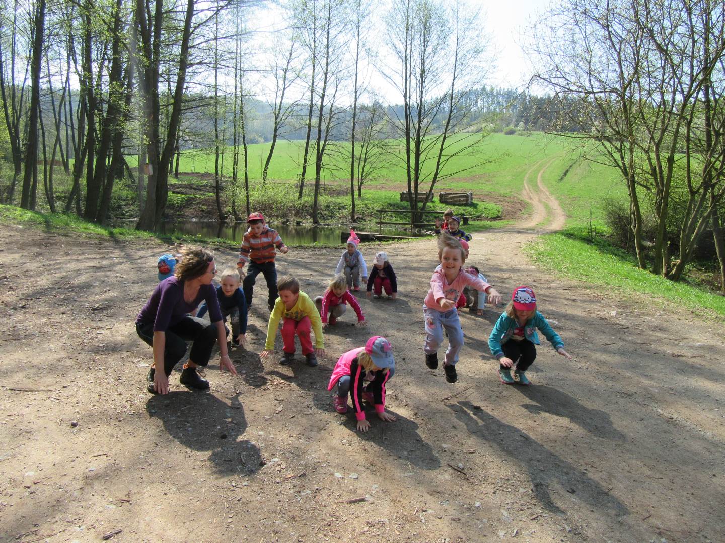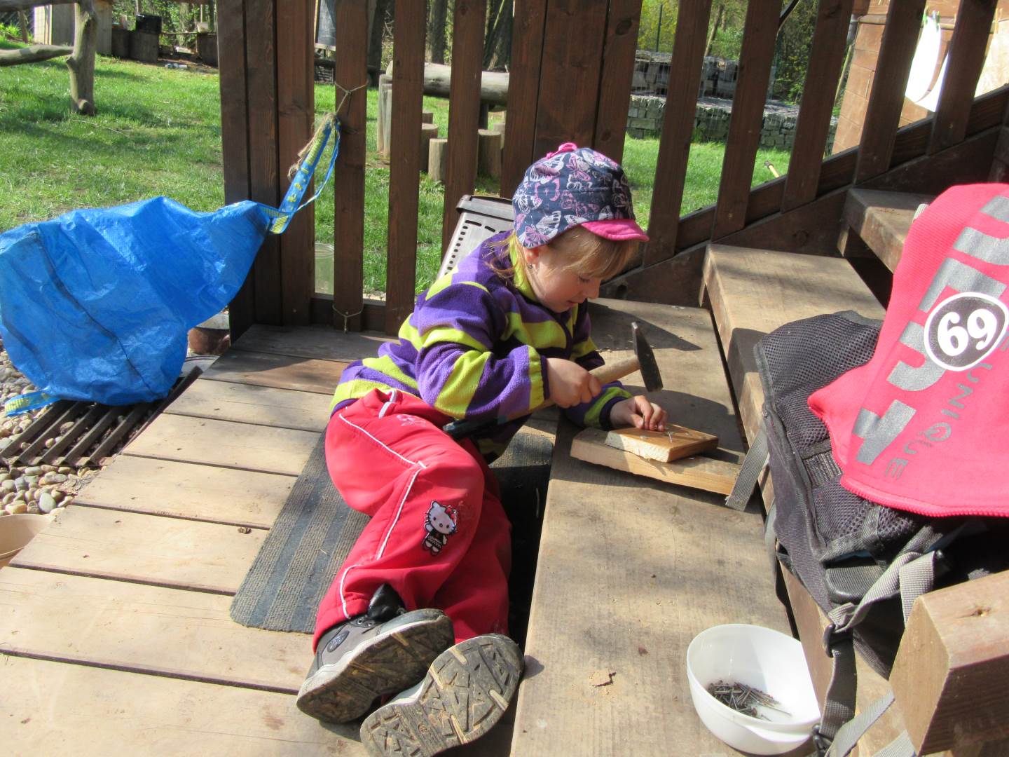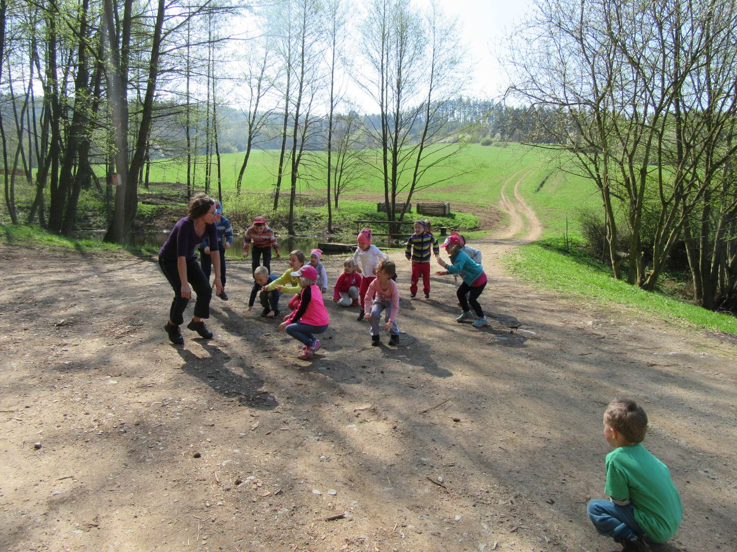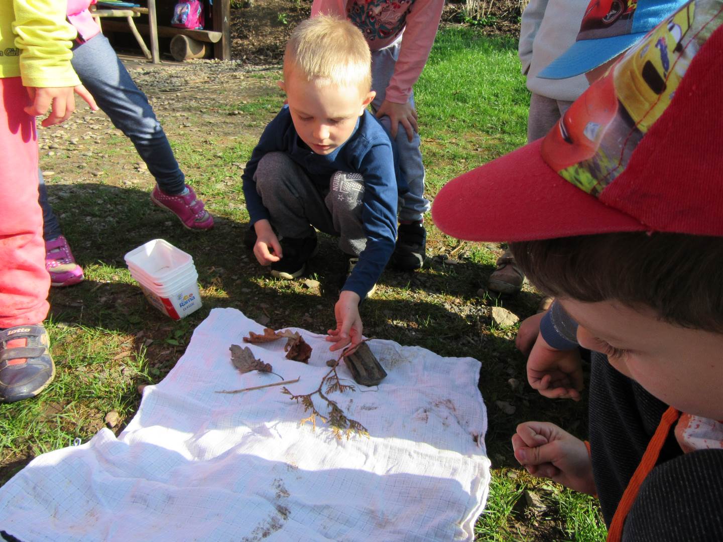 Dnešní dopoledne jsme prožili v příjemném prostředí lesního zázemí u rybníčka. Děti pokračovaly v pozorování živé i neživé přírody. Zkoumali jsme vajíčka skokanů a ropuch. Chlapci stavěli hráze na potůčku,společně jsme si zahráli hru na žáby. Kdo chtěl, mohl si za dozoru p. učitelek, zatloukat hřebíčky nebo řezat klacíky malou pilkou.