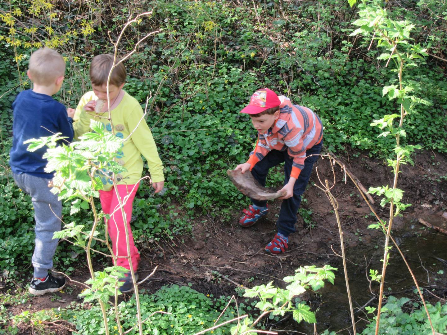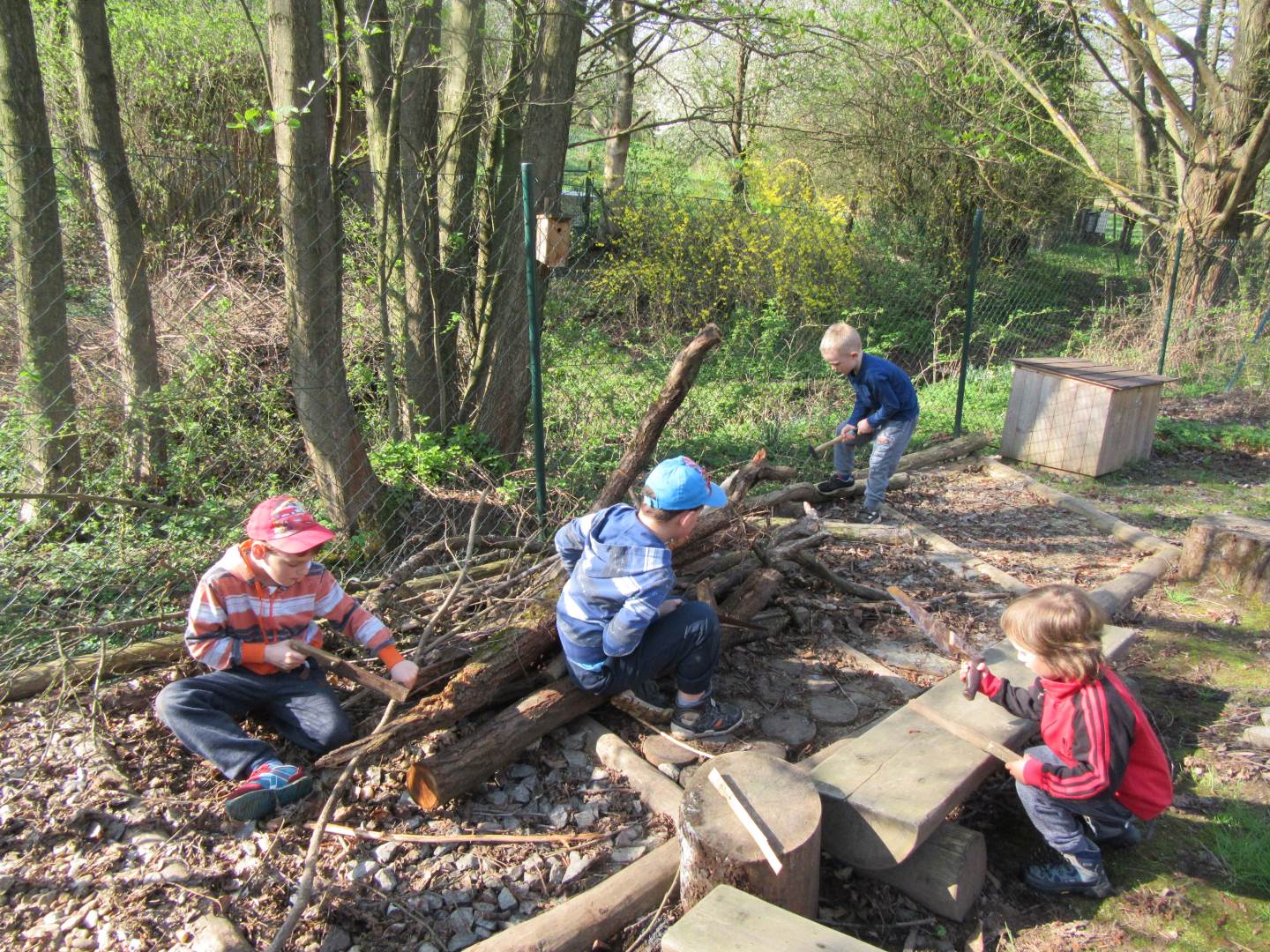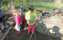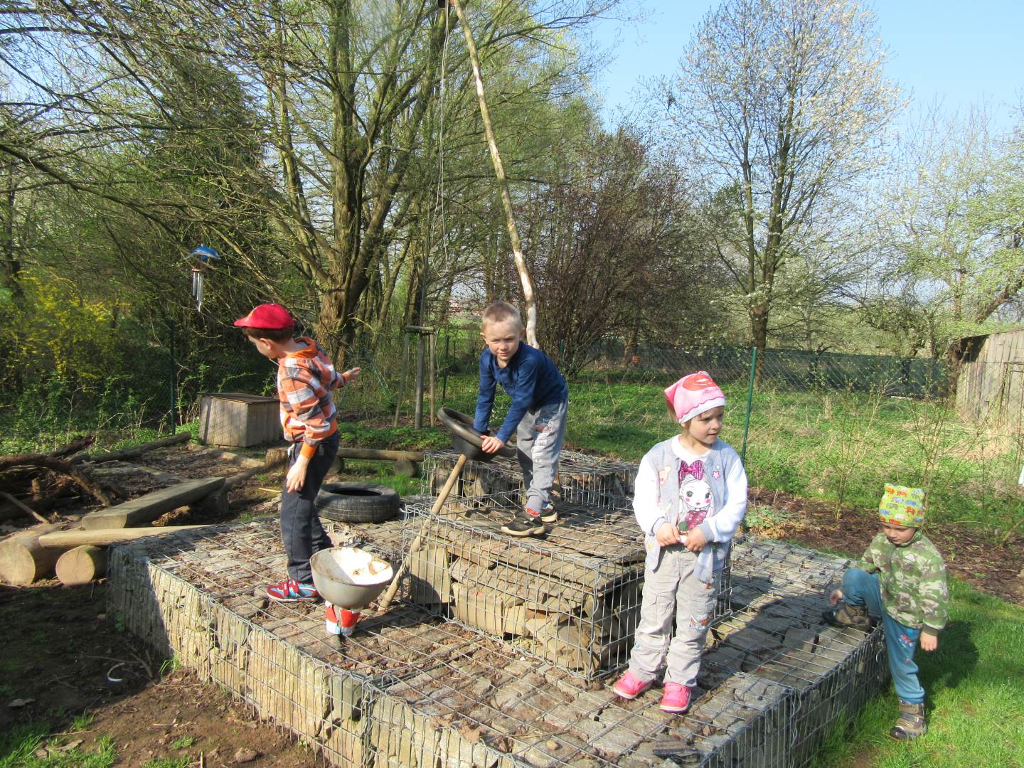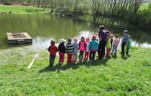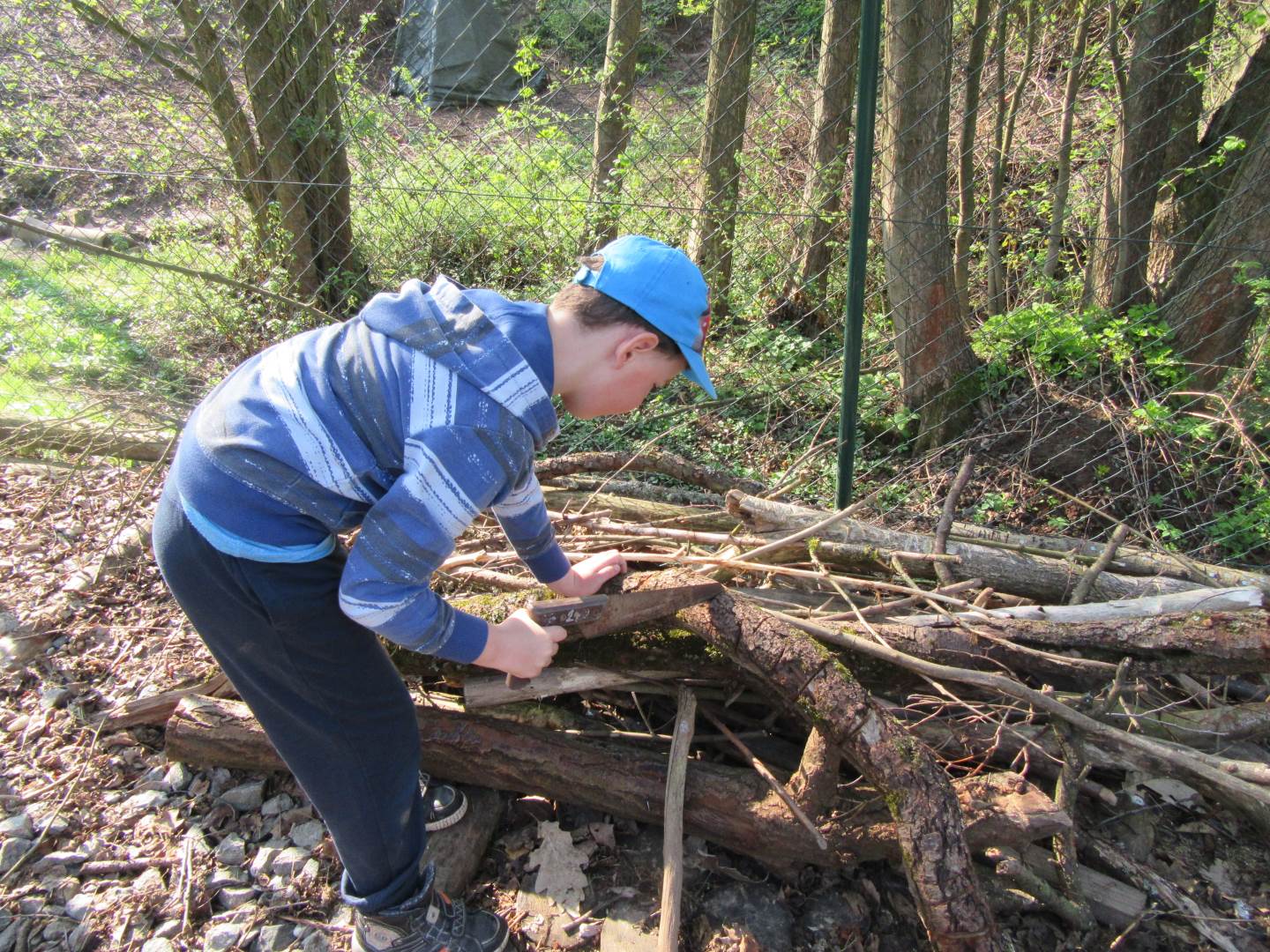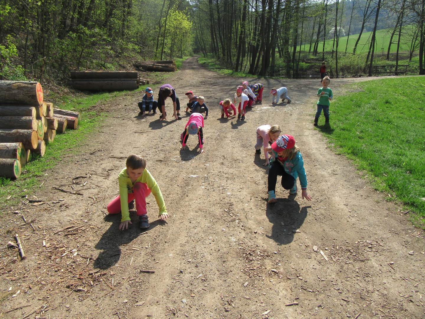 Dnešní dopoledne jsme prožili v příjemném prostředí lesního zázemí u rybníčka. Děti pokračovaly v pozorování živé i neživé přírody. Zkoumali jsme vajíčka skokanů a ropuch. Chlapci stavěli hráze na potůčku,společně jsme si zahráli hru na žáby. Kdo chtěl, mohl si za dozoru p. učitelek, zatloukat hřebíčky nebo řezat klacíky malou pilkou.