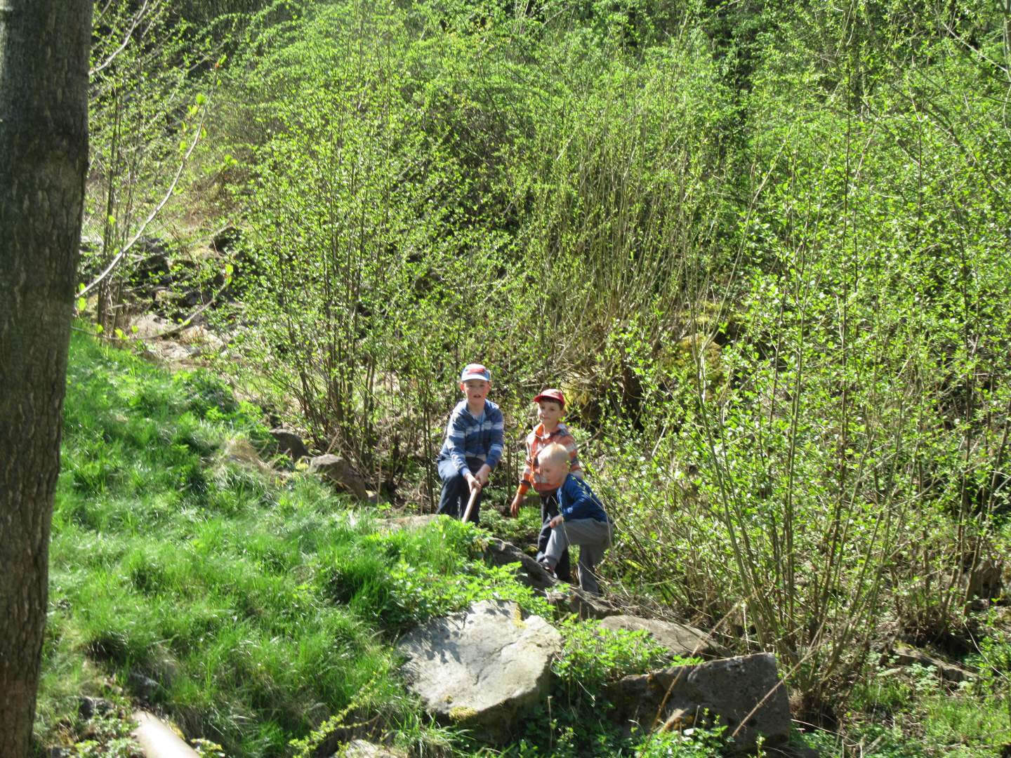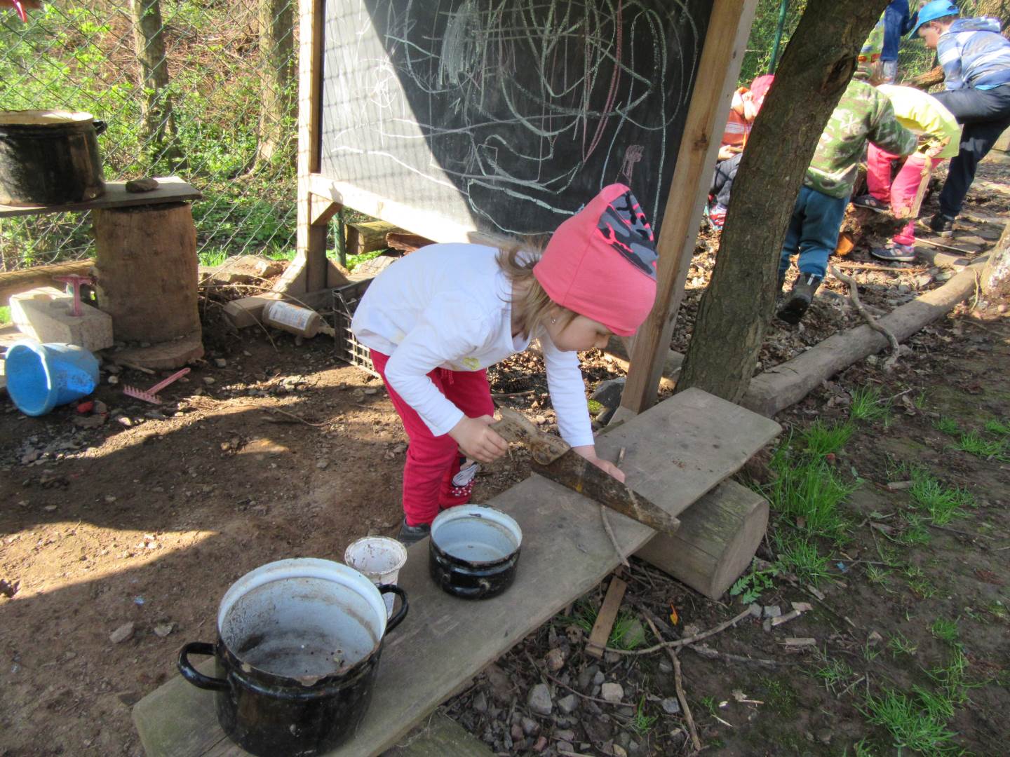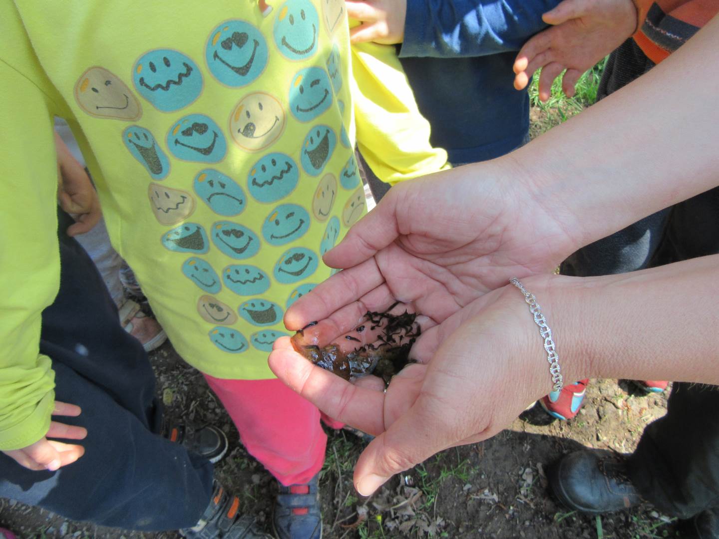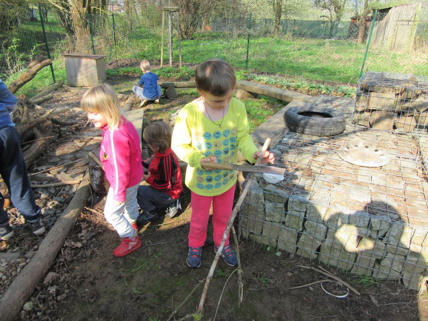 Dnešní dopoledne jsme prožili v příjemném prostředí lesního zázemí u rybníčka. Děti pokračovaly v pozorování živé i neživé přírody. Zkoumali jsme vajíčka skokanů a ropuch. Chlapci stavěli hráze na potůčku,společně jsme si zahráli hru na žáby. Kdo chtěl, mohl si za dozoru p. učitelek, zatloukat hřebíčky nebo řezat klacíky malou pilkou.