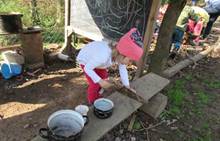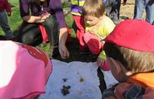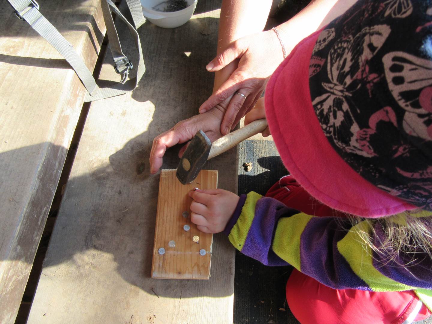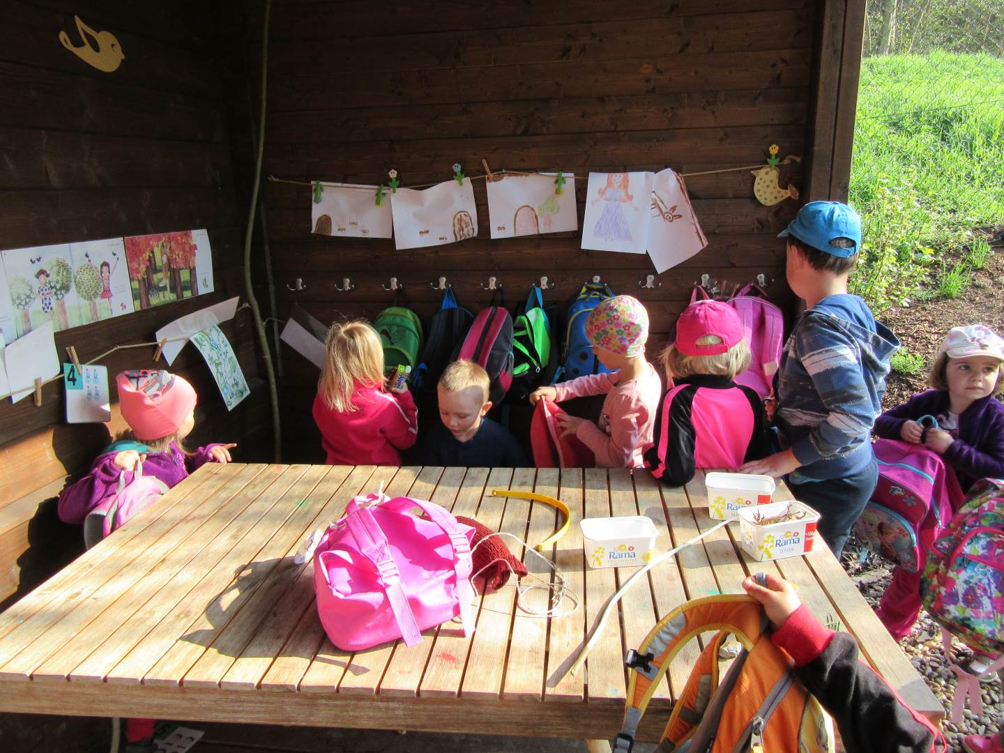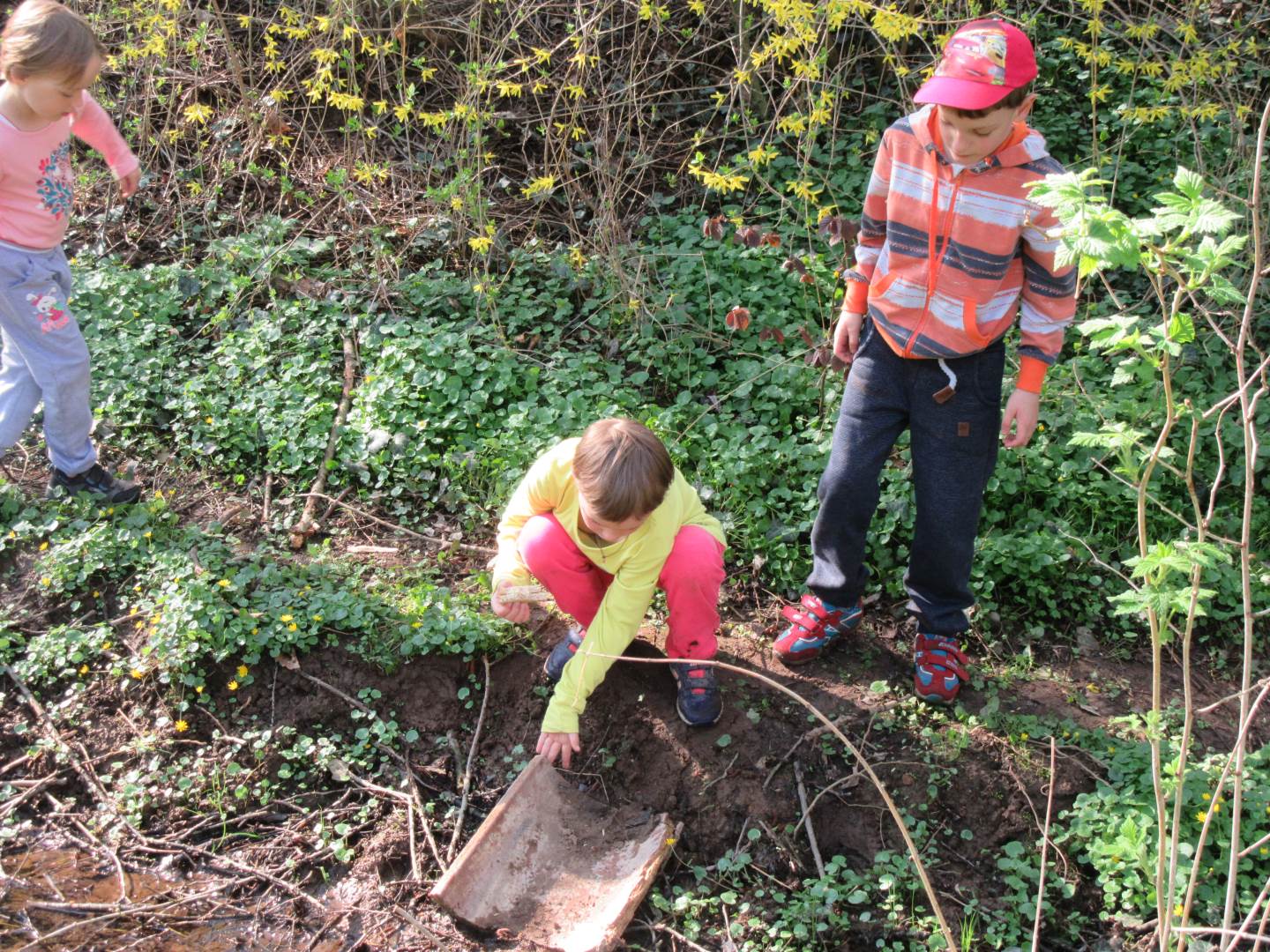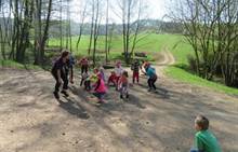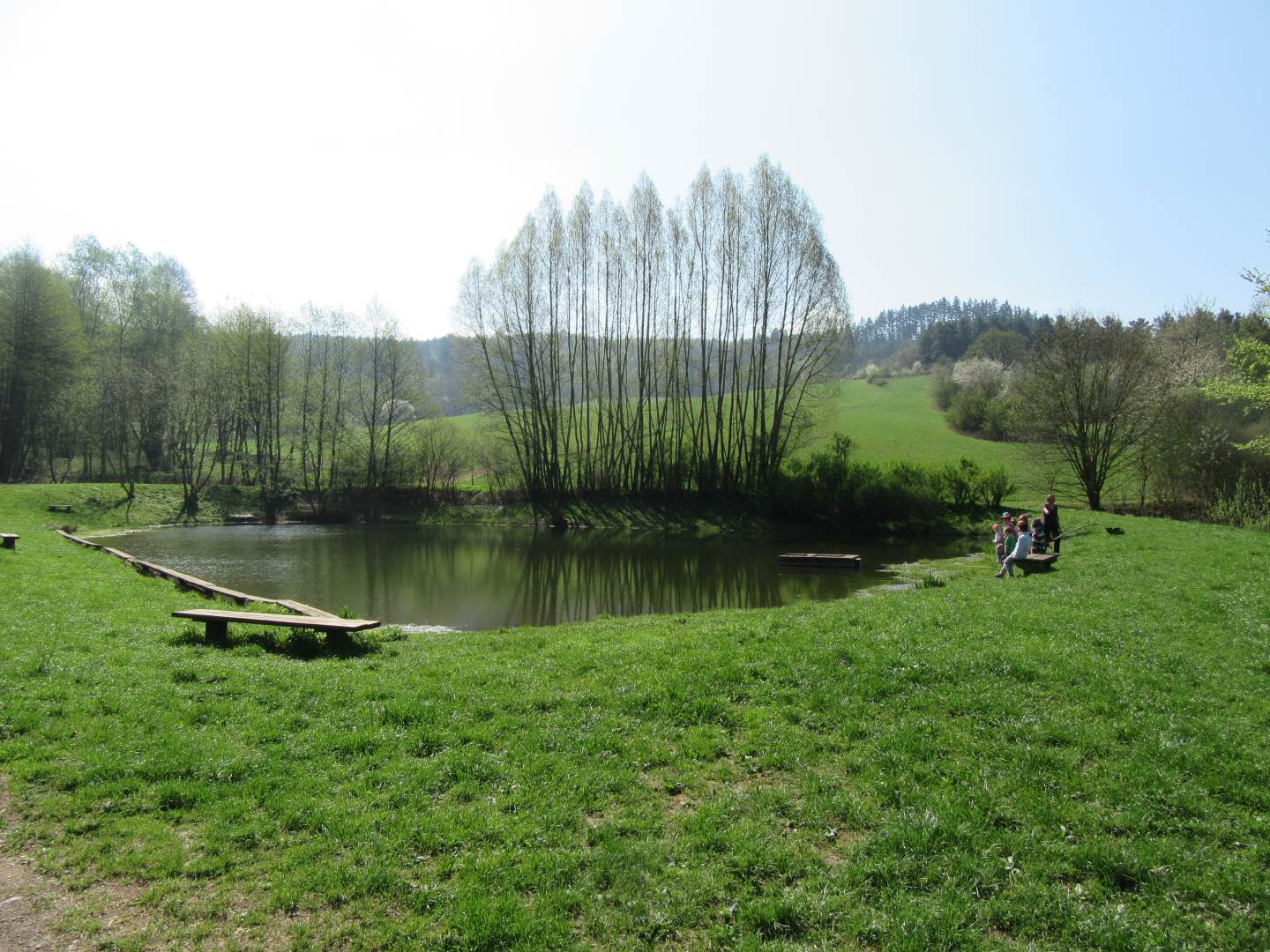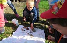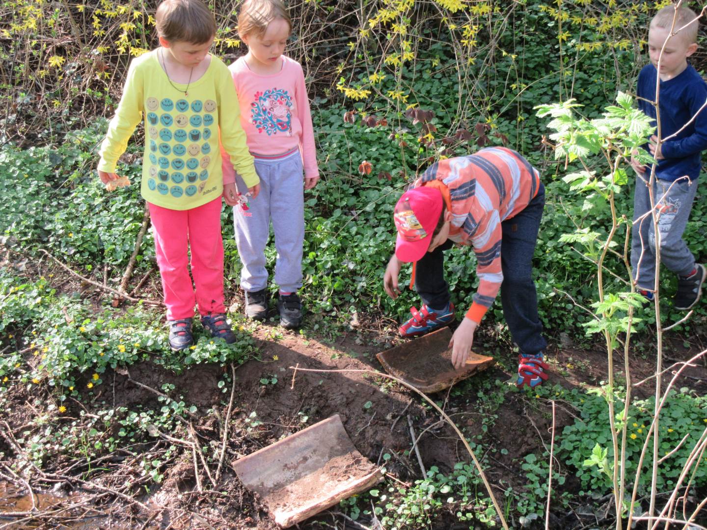 Dnešní dopoledne jsme prožili v příjemném prostředí lesního zázemí u rybníčka. Děti pokračovaly v pozorování živé i neživé přírody. Zkoumali jsme vajíčka skokanů a ropuch. Chlapci stavěli hráze na potůčku,společně jsme si zahráli hru na žáby. Kdo chtěl, mohl si za dozoru p. učitelek, zatloukat hřebíčky nebo řezat klacíky malou pilkou.