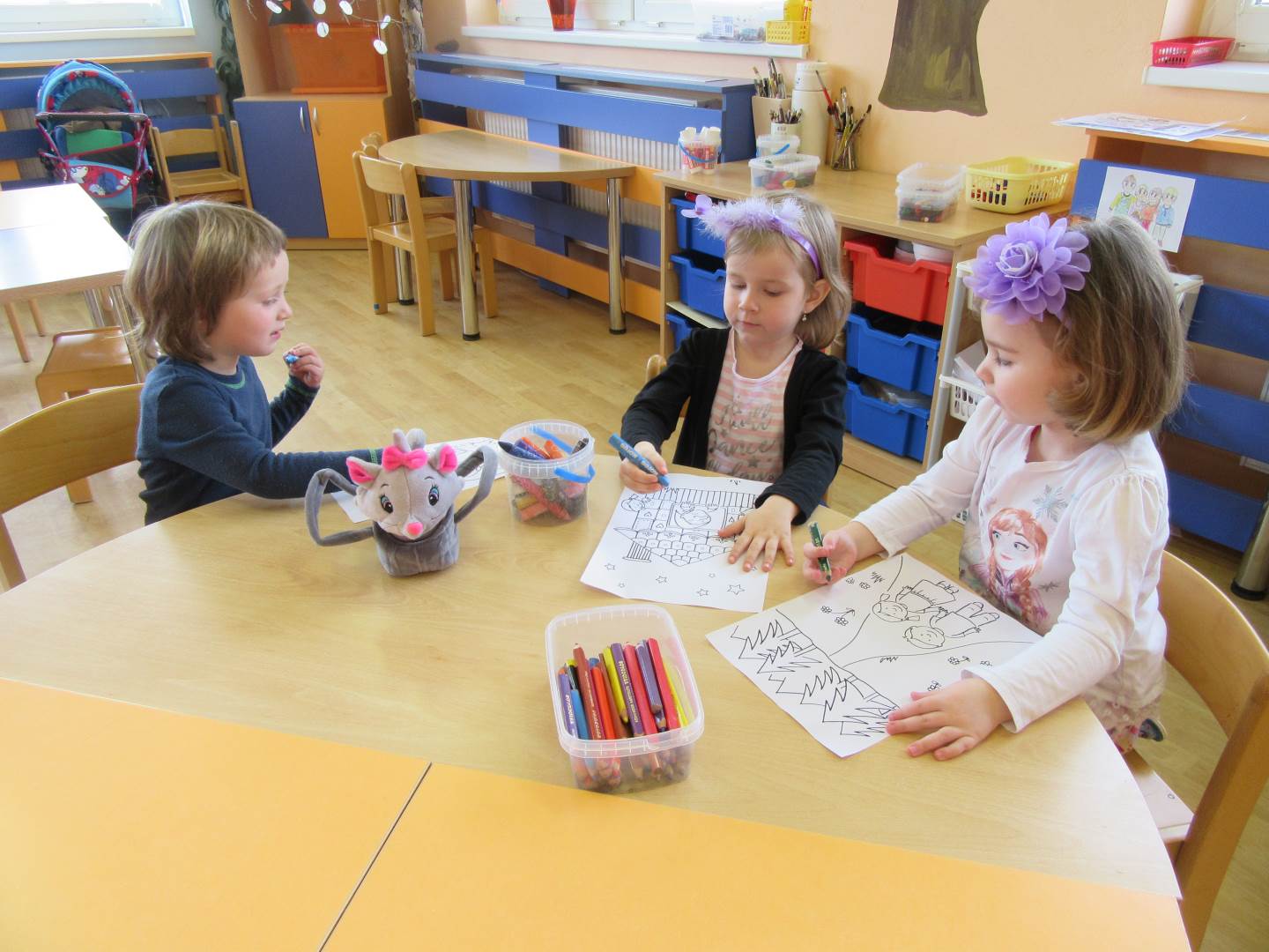 Měsíc březen nám ještě nepřinesl jarní počasí, tak jsme zůstali u zimních sportů. Povídali jsme si o lyžování, bruslení a ještě jsme vytáhli i boby a lopaty. Konečně jsme také odnesli poslední zásoby do krmelce. Minulý týden jsme si nazvali jako POHÁDKOVÝ. Třida byla plná princů a princezen, děti se učily básničky, písničky i taneček. Teď už čekáme na to jaro! Máme nachystaná semínka, budeme slavit Sluníčkový den a chystat se na velikonoční radovánky.